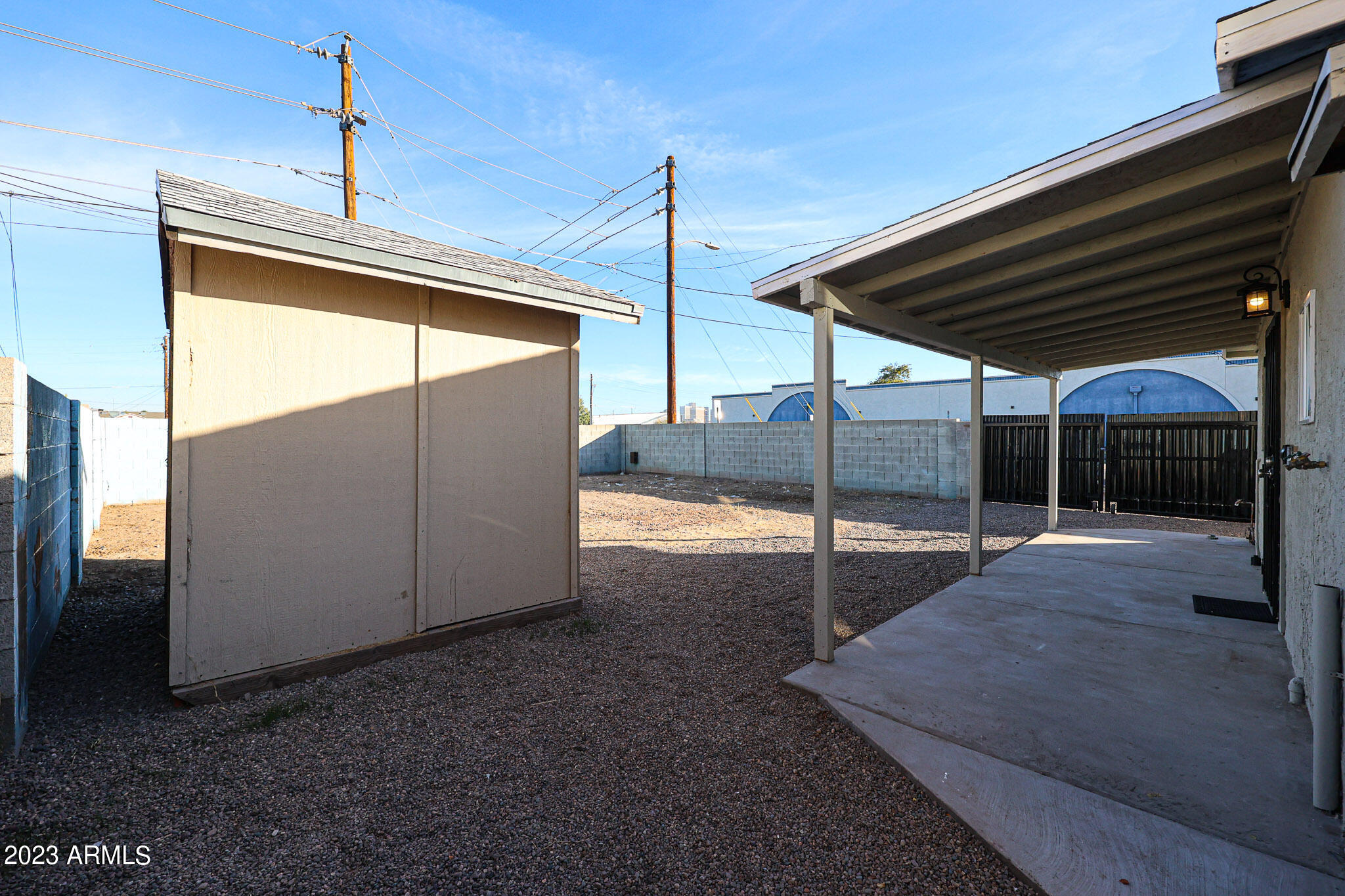 Exit to the spacious backyard featuring a wonderful covered patio with the scenic skyline of downtown Phoenix in the background.