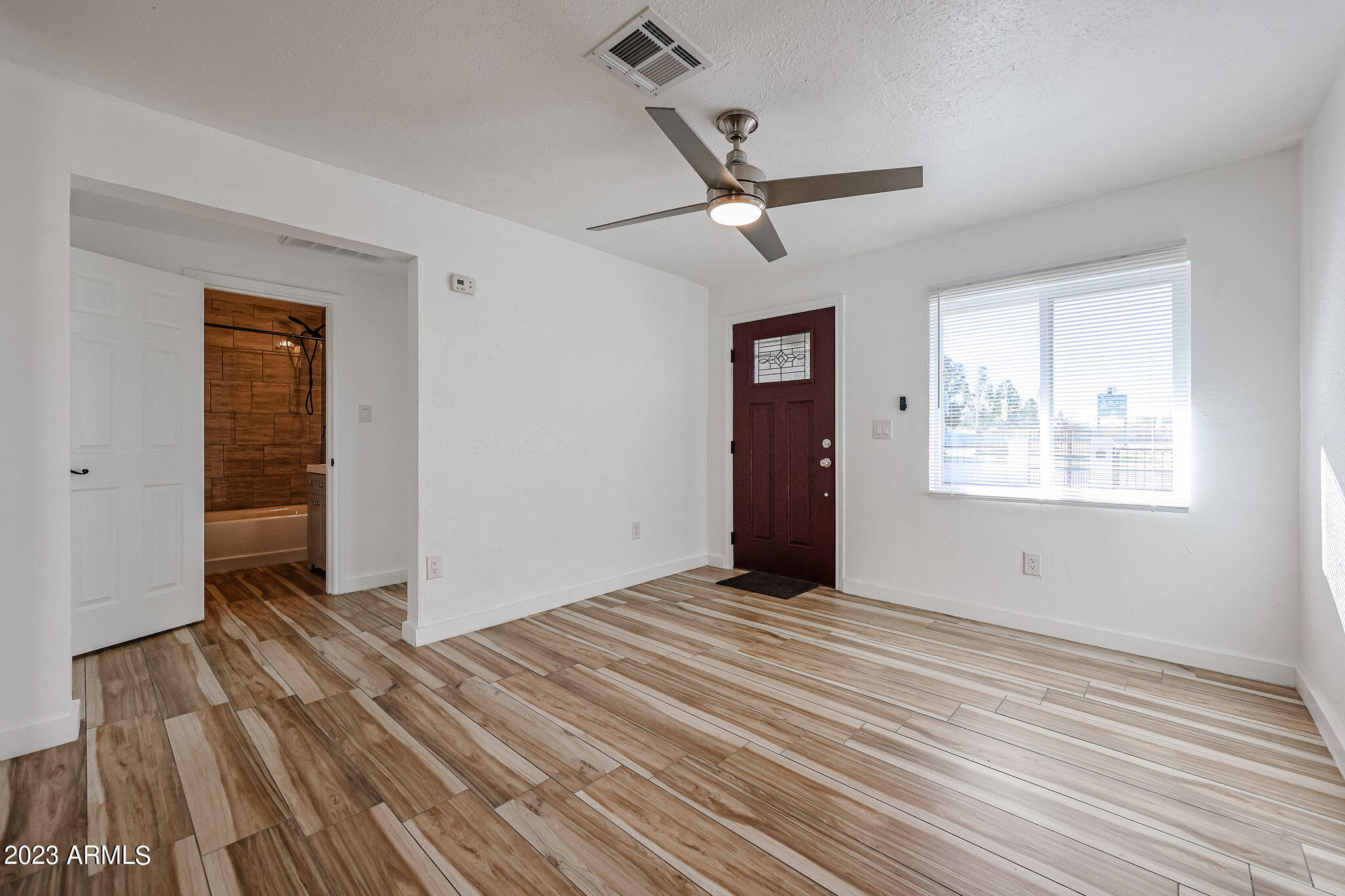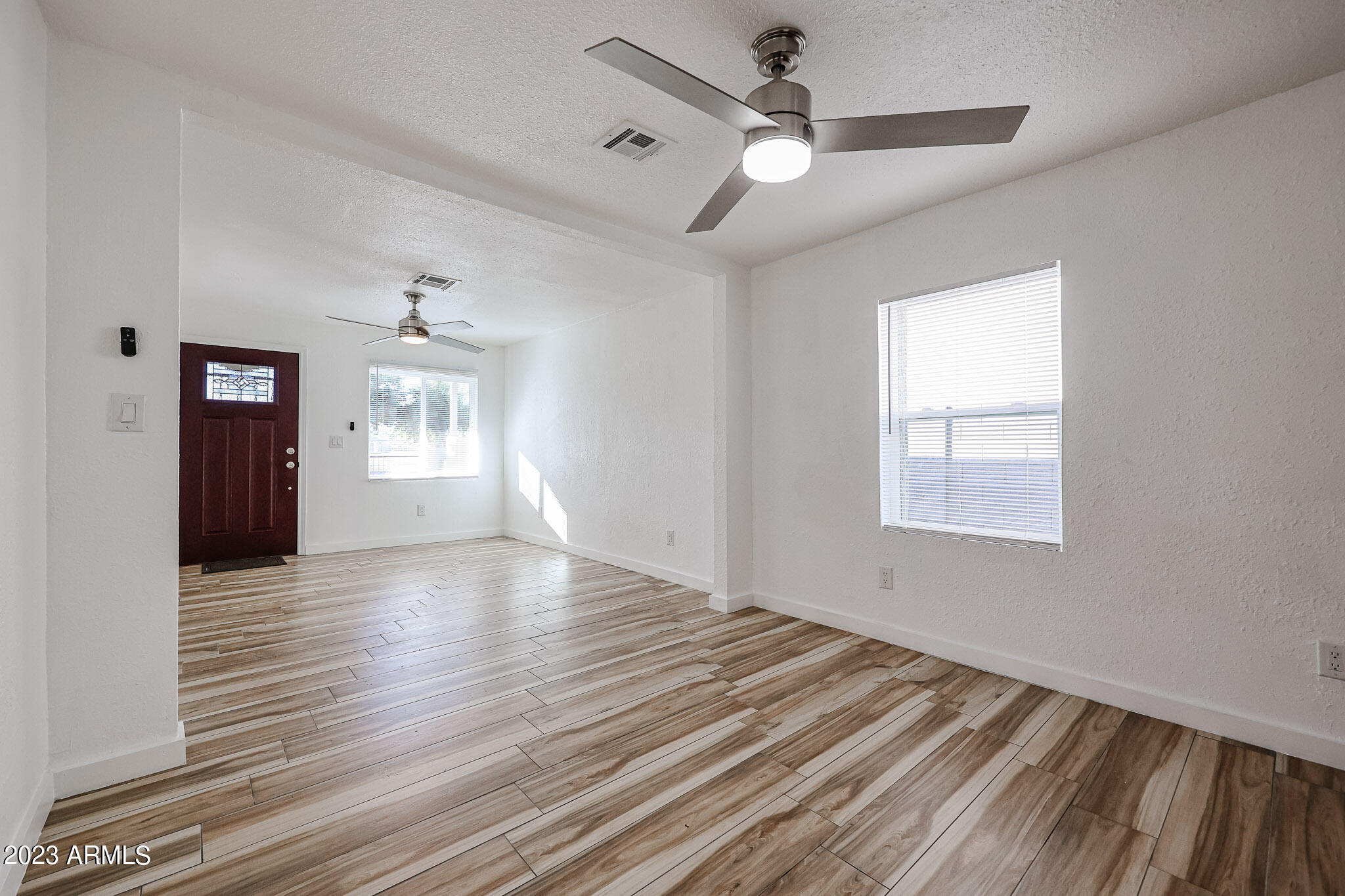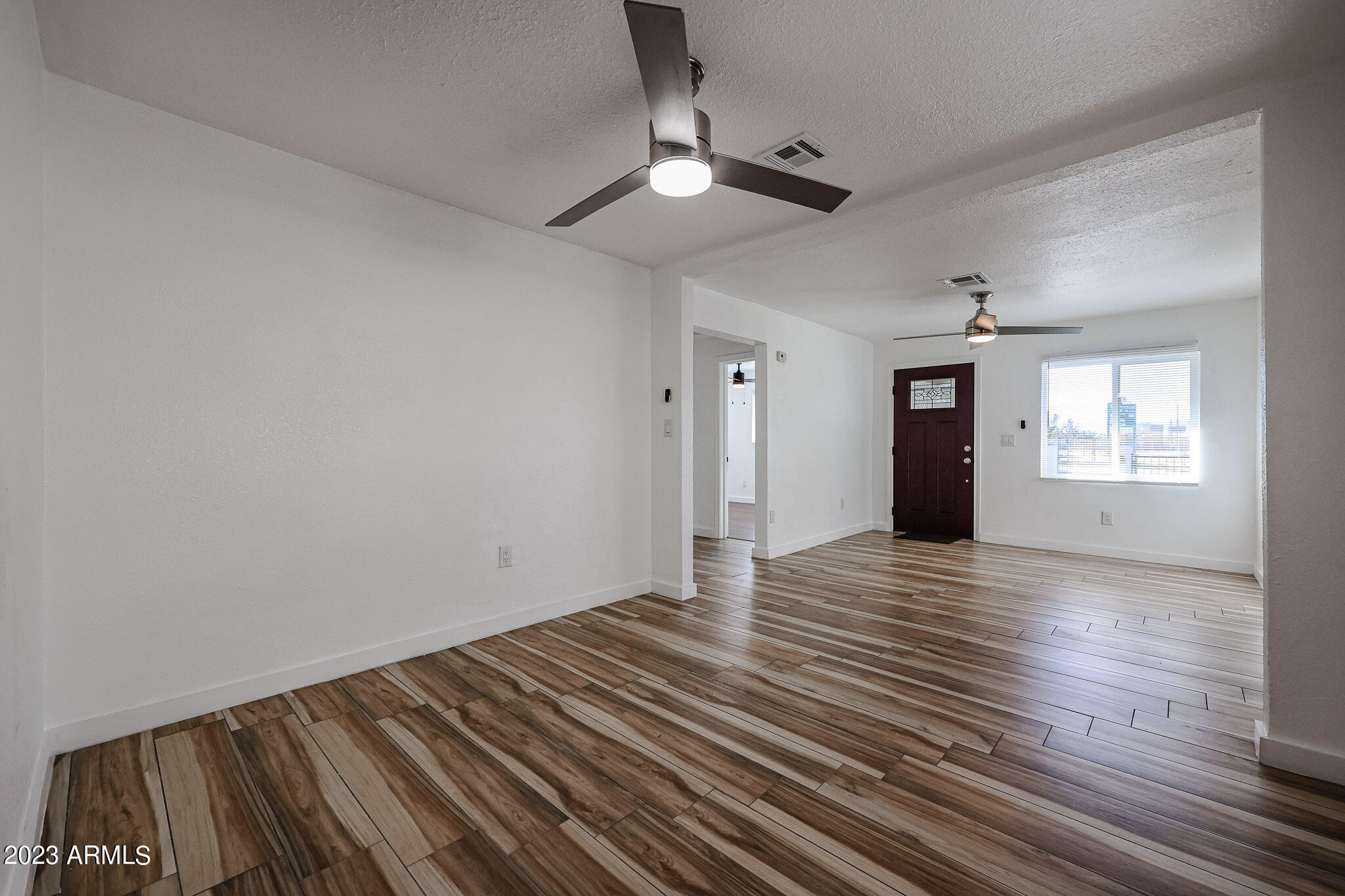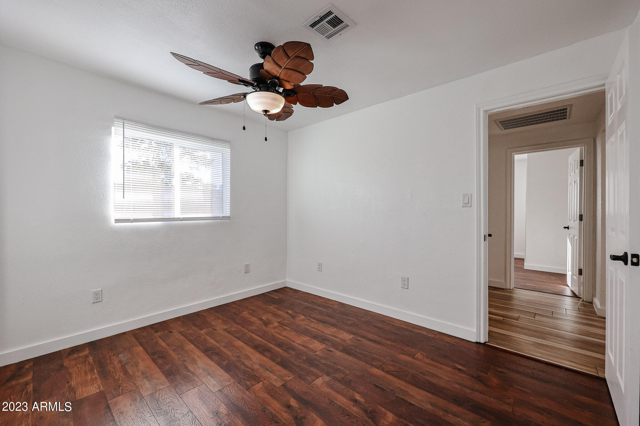 All three bedrooms feature wonderful engineered wood flooring, custom window covers, upgraded ceiling fans and nice closets.