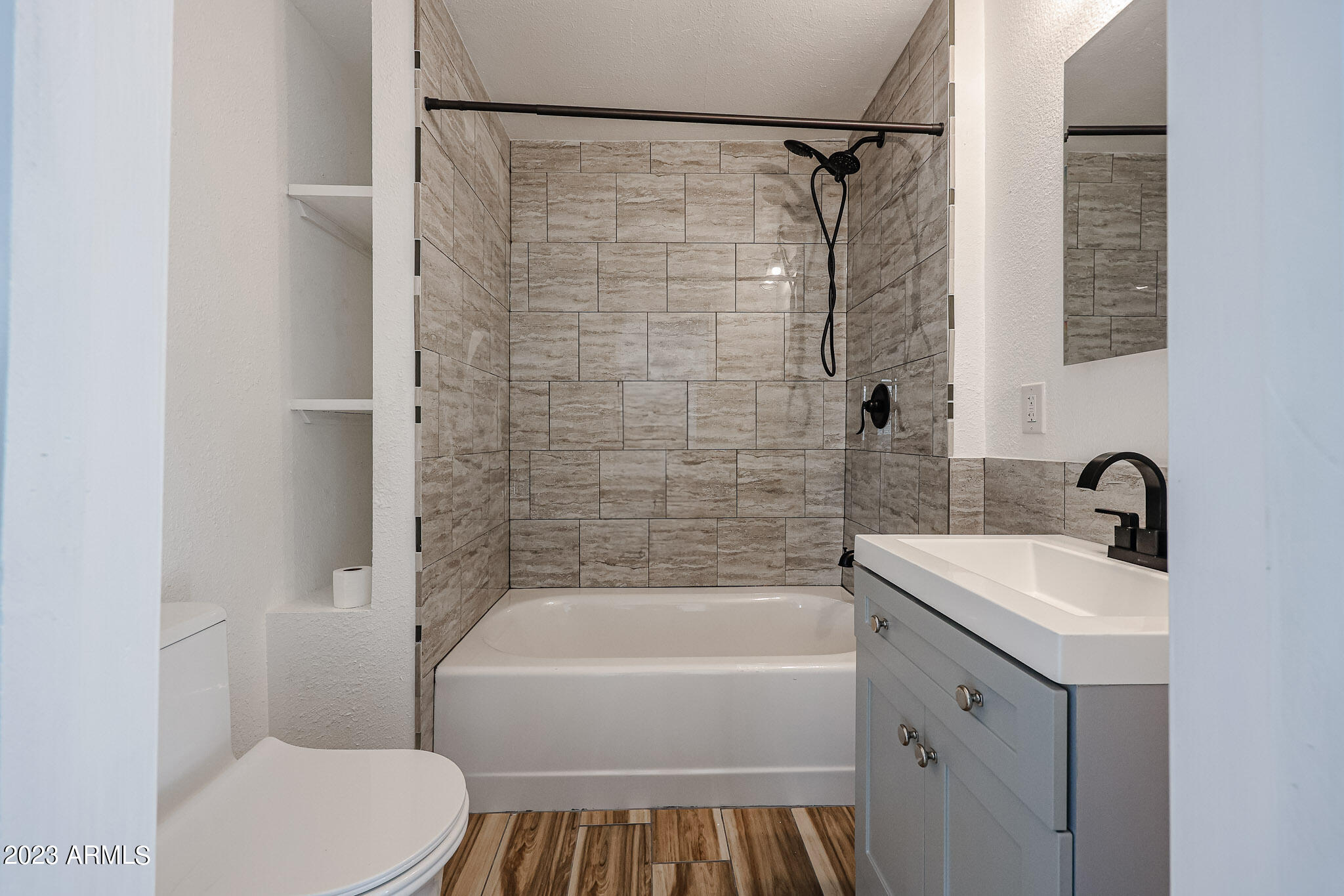 The spa inspired renovated bath is truly amazing and includes beautiful custom cabnitry with custom built-ins, large basin sink, Ove toilet, floor to ceiling tiled tub-shower enclosure and custom lighting, mirror and fixtures.