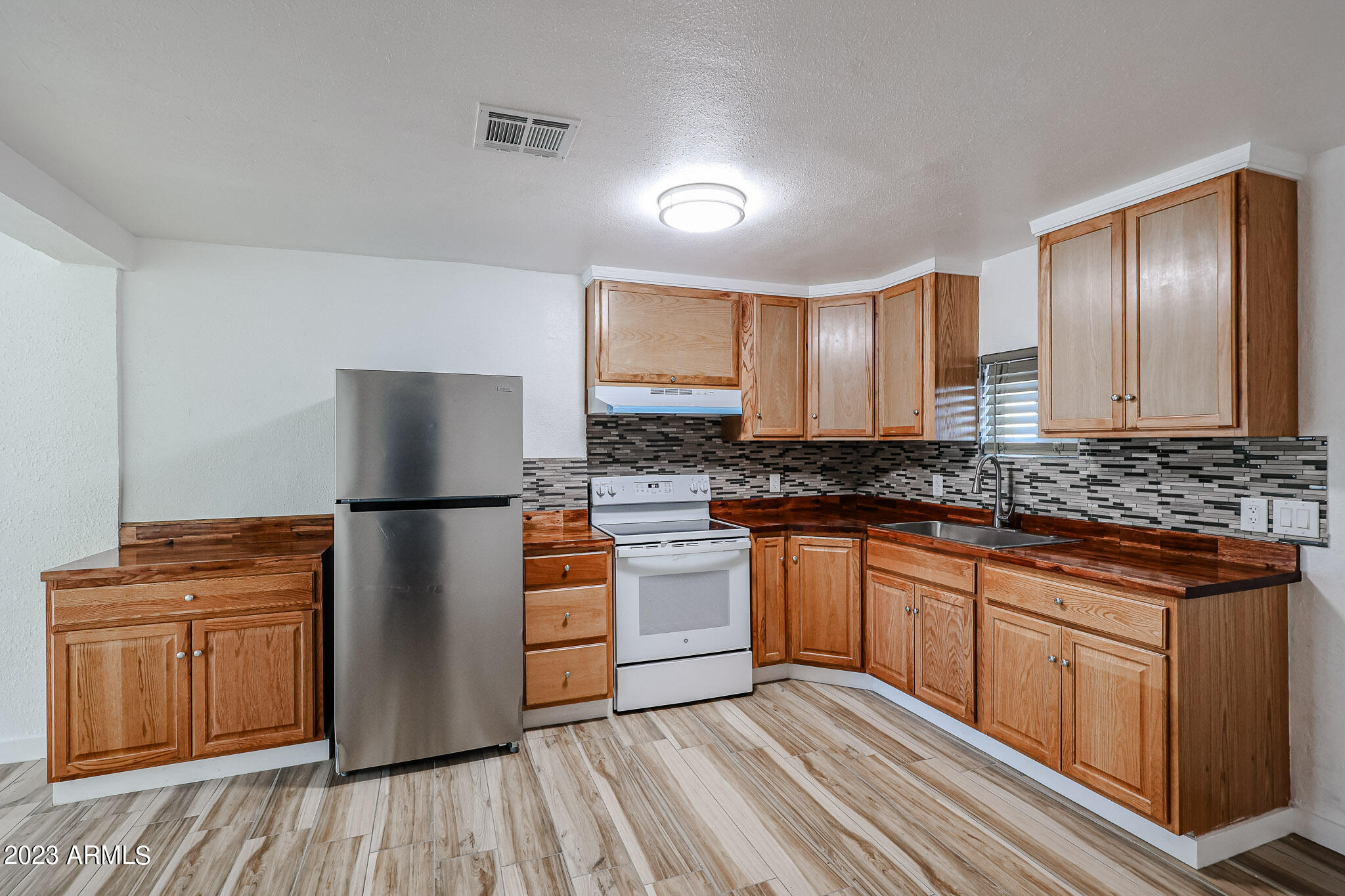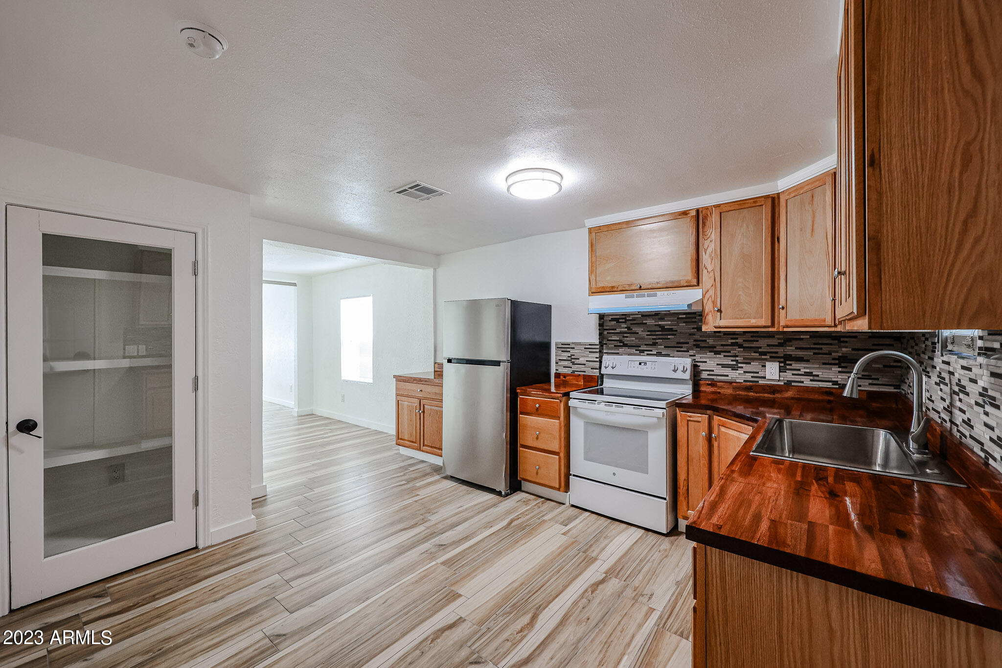 Like to cook, enjoy preparing lavish meals and memories in your chefs kitchen complete with rich raised panel solid oak cabinetry featuring beautiful butcher block countertops, decorative glass tiled backsplash, cutom pantry, deep soaking sink, prep island, stainless steel refrigerator and upgraded 4 burner cooktop.
