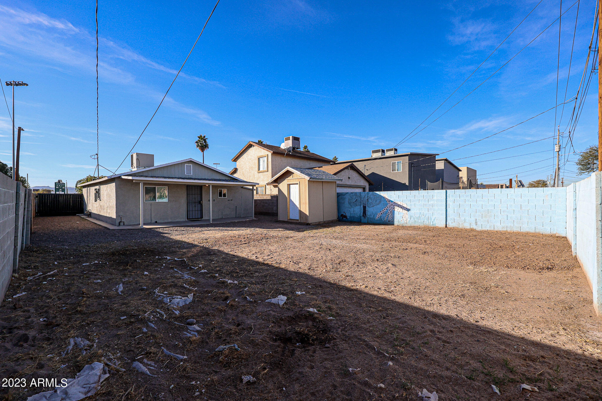 Got toys....The backyard is secured by a solid block wall and has plenty of space for all the toys with 3 RV gates creating parking options on both sides of the property as well as the backyard.
