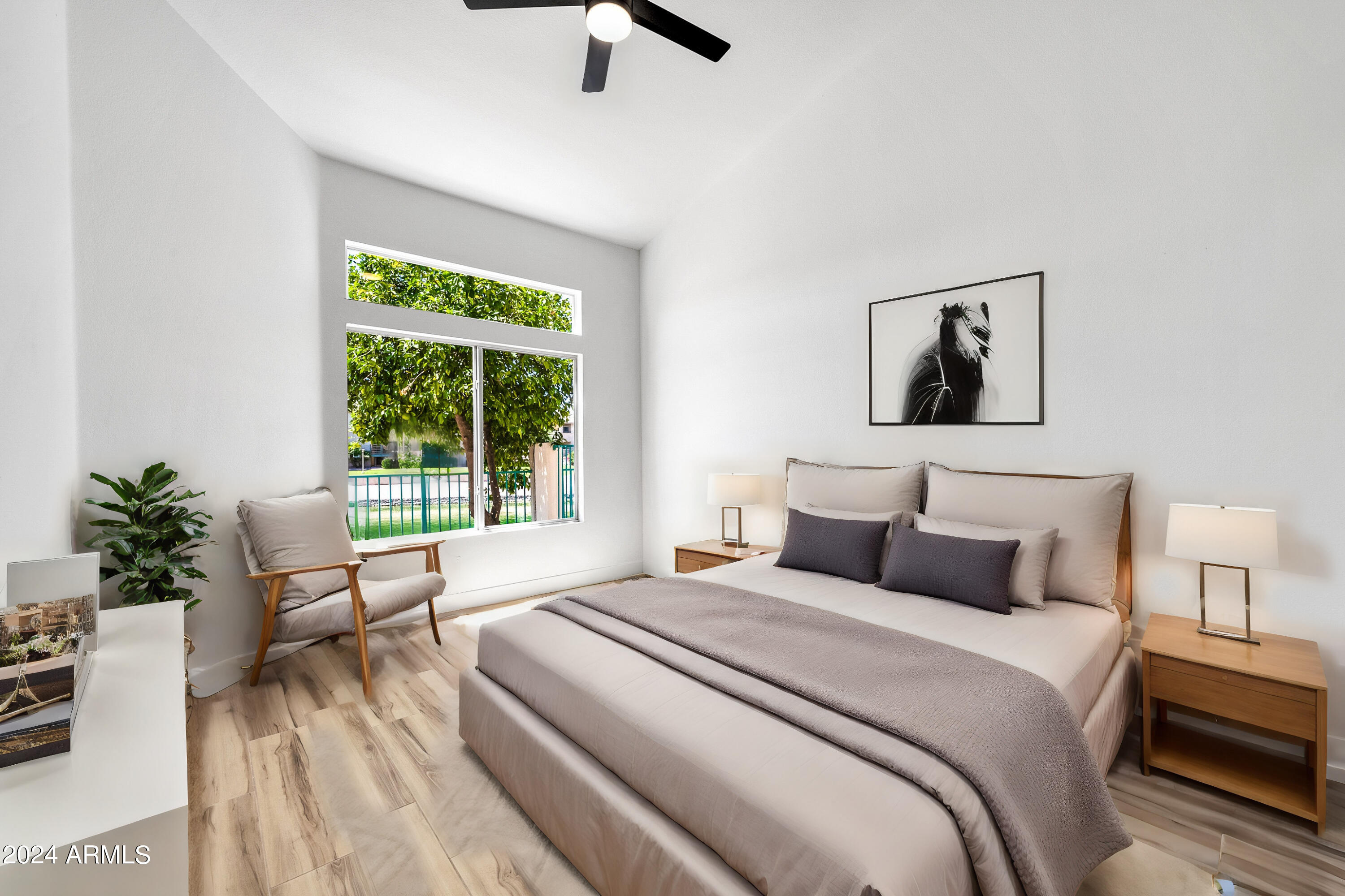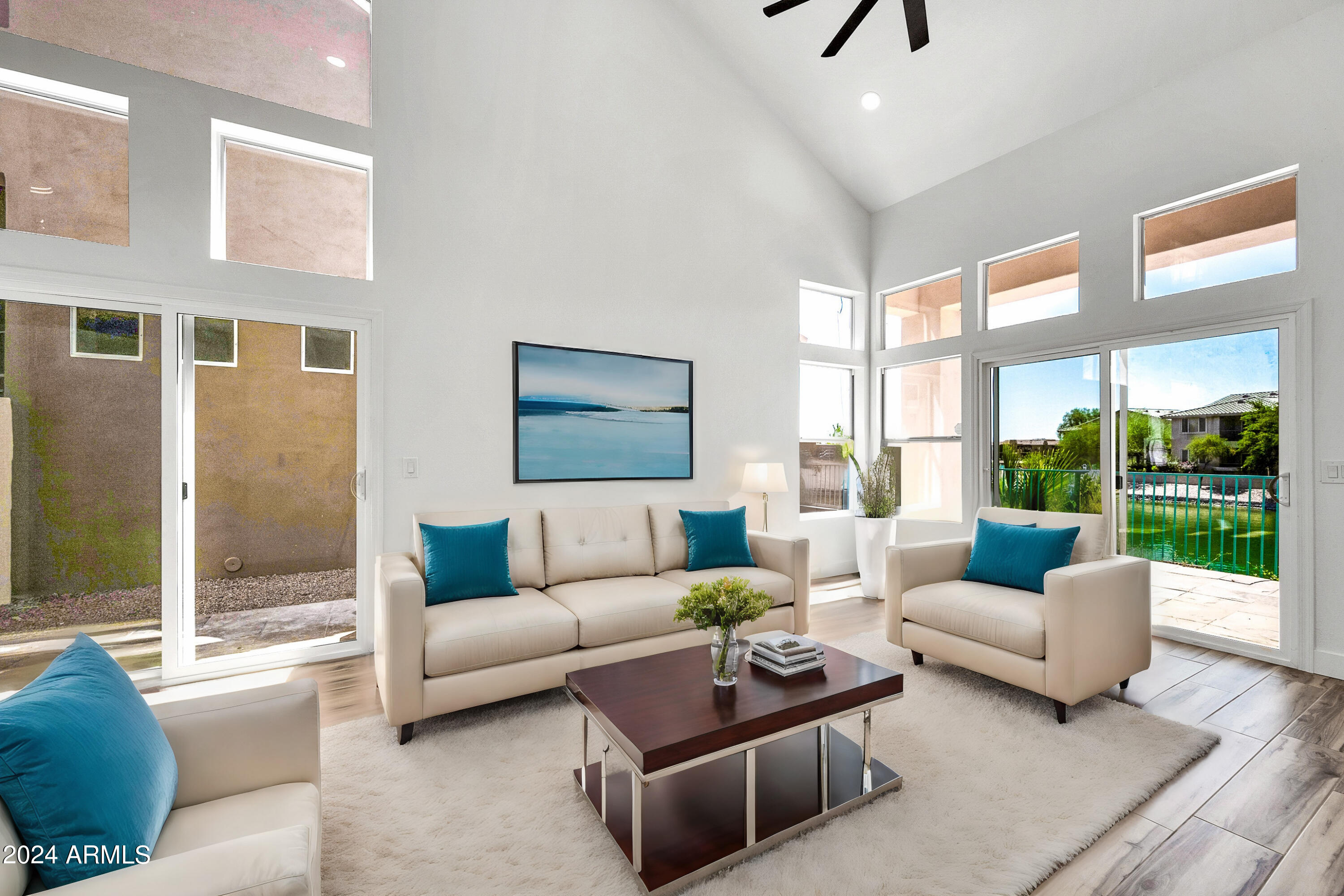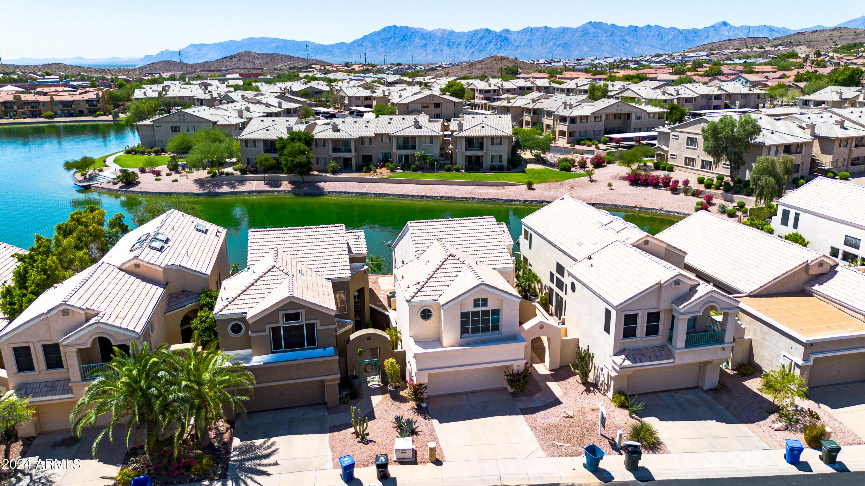 Welcome to your dream home in Ahwatukee, where luxury meets tranquility! This beautifully updated residence boasts a complete renovation with modern finishes and meticulous attention to detail. Step inside to discover a fresh, contemporary vibe enhanced by brand new tile flooring and plush carpet throughout. The heart of the home, the kitchen, has been transformed with sleek modern shaker cabinets, elegant quartz countertops, and state-of-the-art stainless steel appliances, including a coveted wine fridge. Every detail, from the new electrical fixtures to the stylish new doors and paint, reflects quality craftsmanship and a commitment to comfort. The best part...the backyard opens directly onto a serene lake, offering breathtaking water views and a peaceful retreat at your doorstep.