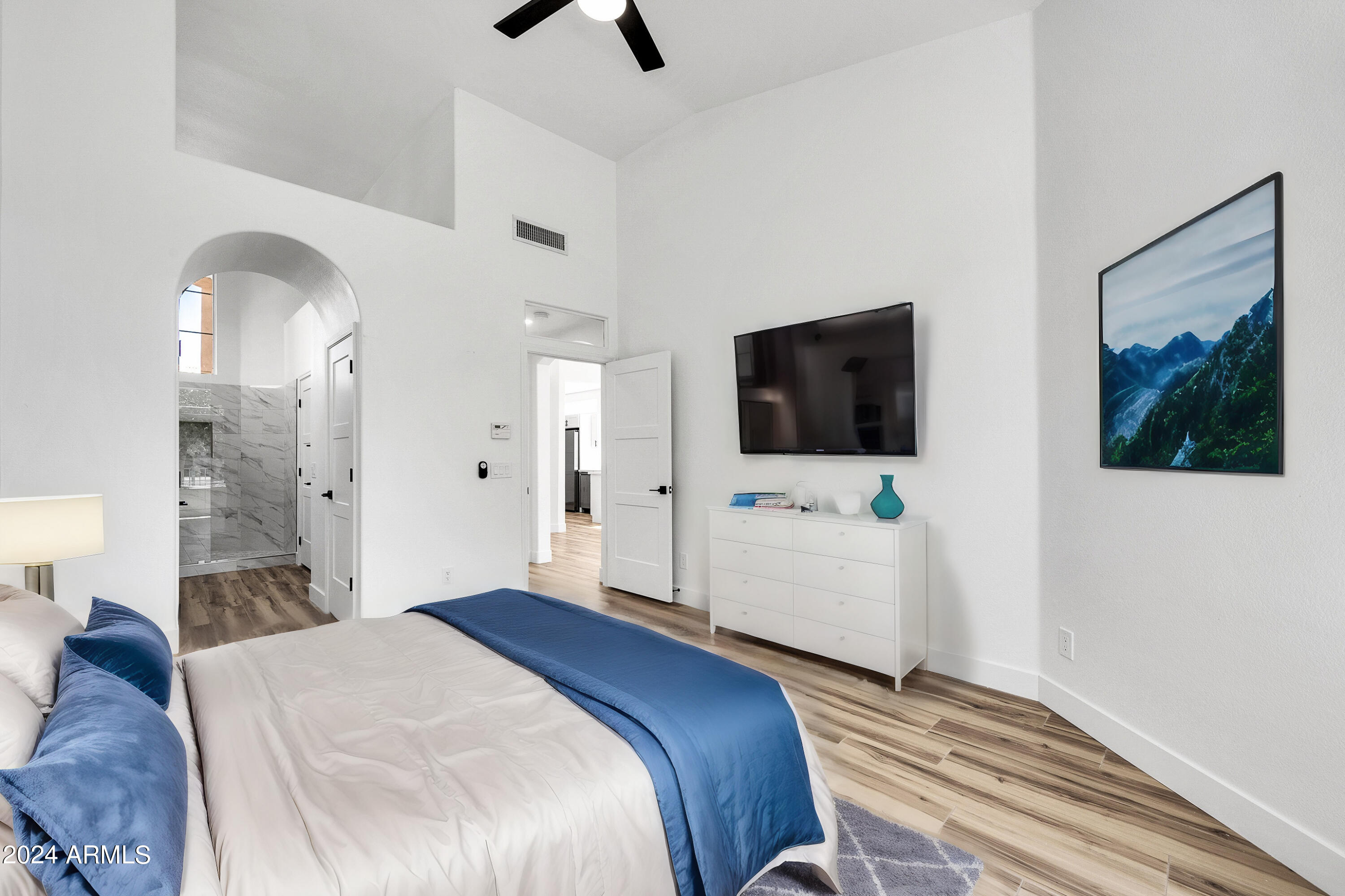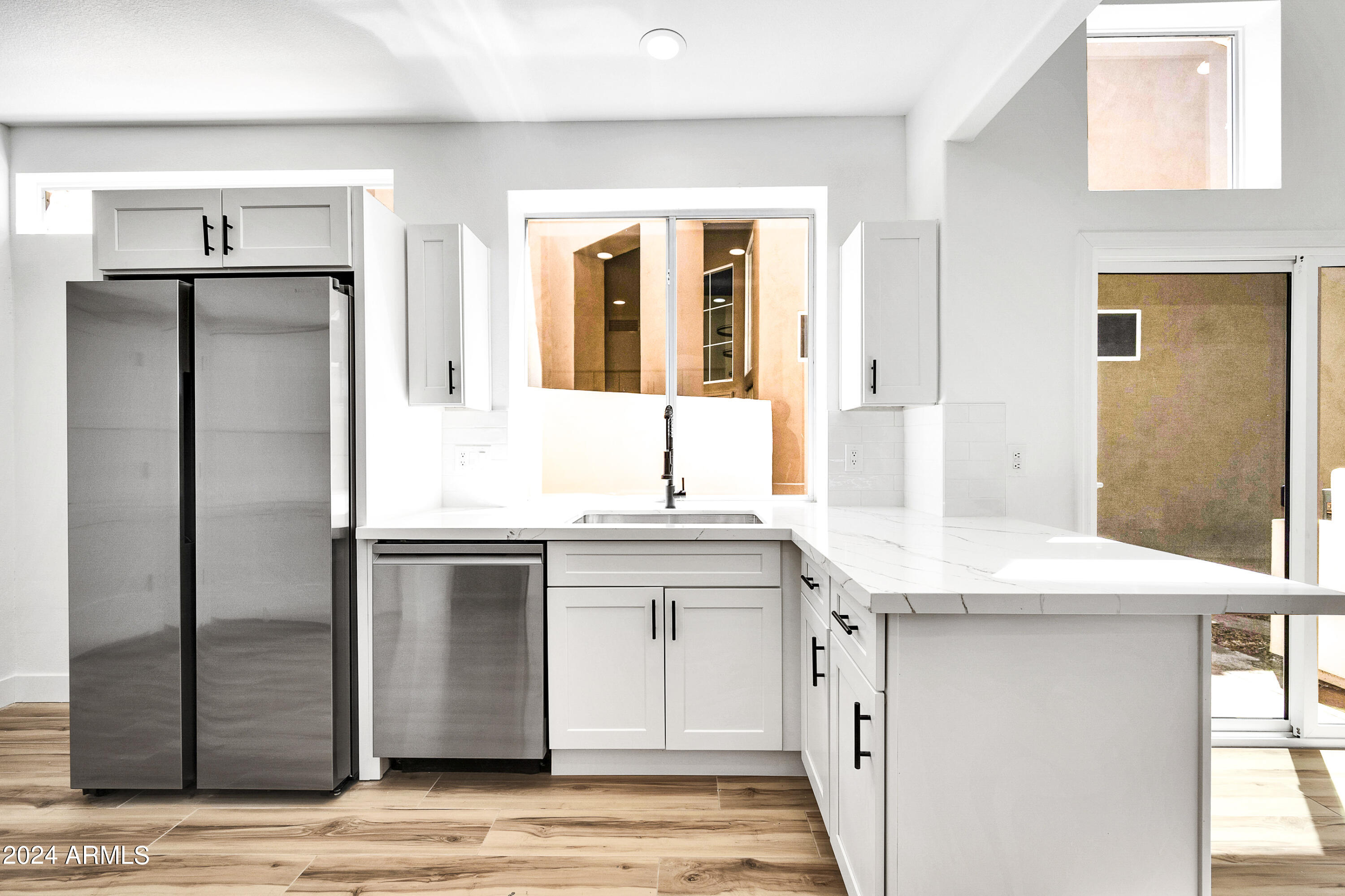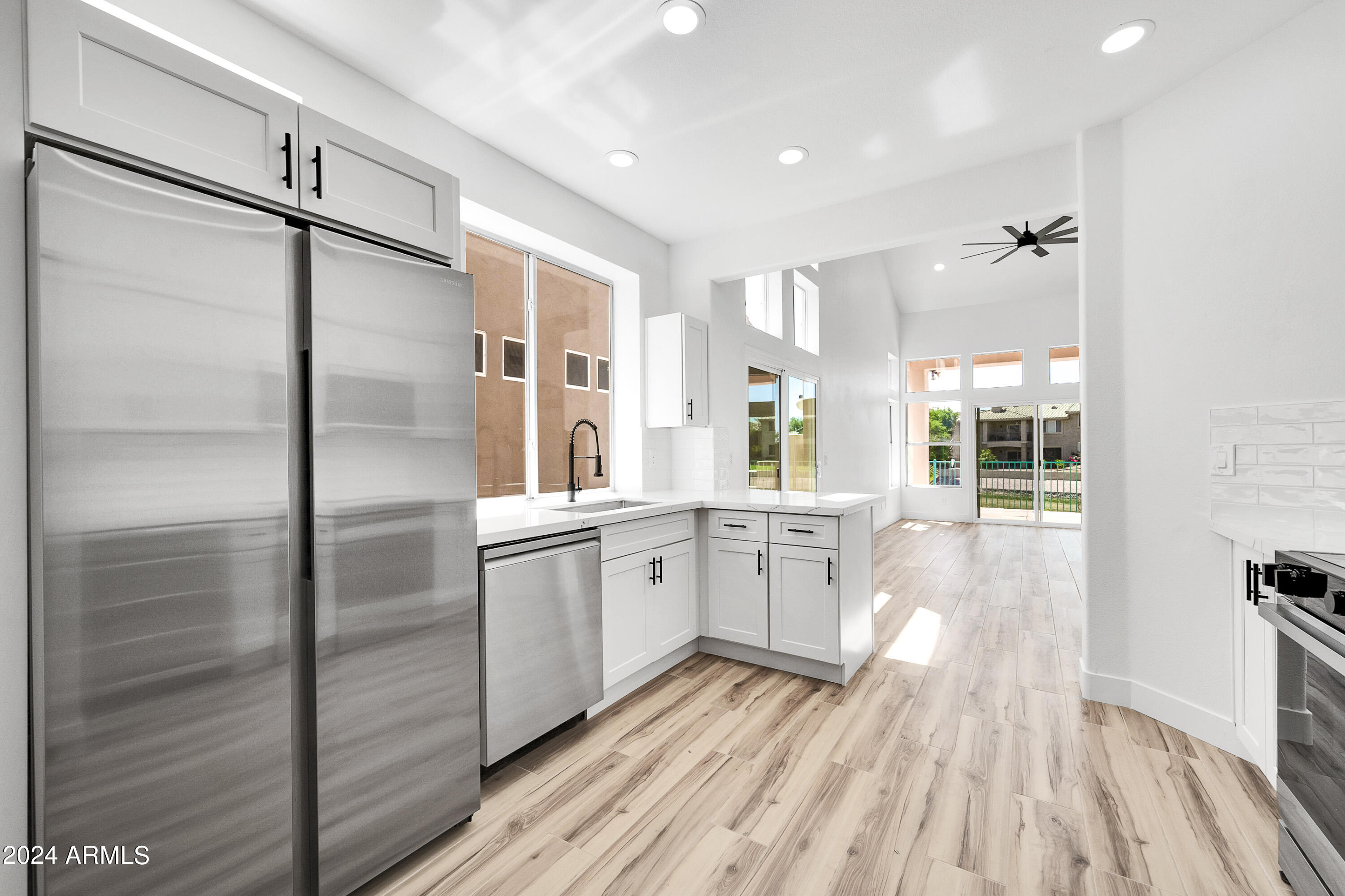 Welcome to your dream home in Ahwatukee, where luxury meets tranquility! This beautifully updated residence boasts a complete renovation with modern finishes and meticulous attention to detail. Step inside to discover a fresh, contemporary vibe enhanced by brand new tile flooring and plush carpet throughout. The heart of the home, the kitchen, has been transformed with sleek modern shaker cabinets, elegant quartz countertops, and state-of-the-art stainless steel appliances, including a coveted wine fridge. Every detail, from the new electrical fixtures to the stylish new doors and paint, reflects quality craftsmanship and a commitment to comfort. The best part...the backyard opens directly onto a serene lake, offering breathtaking water views and a peaceful retreat at your doorstep.
