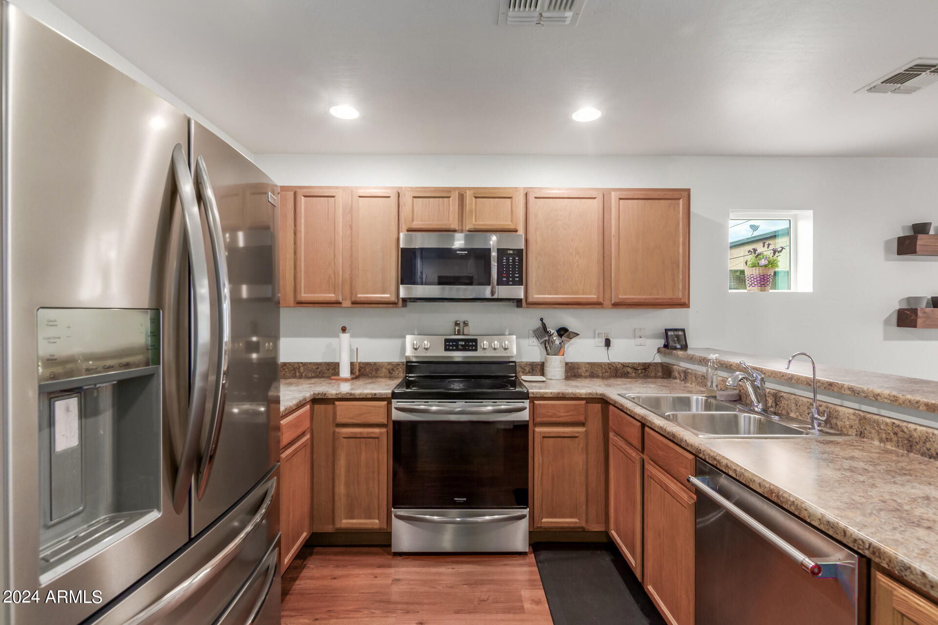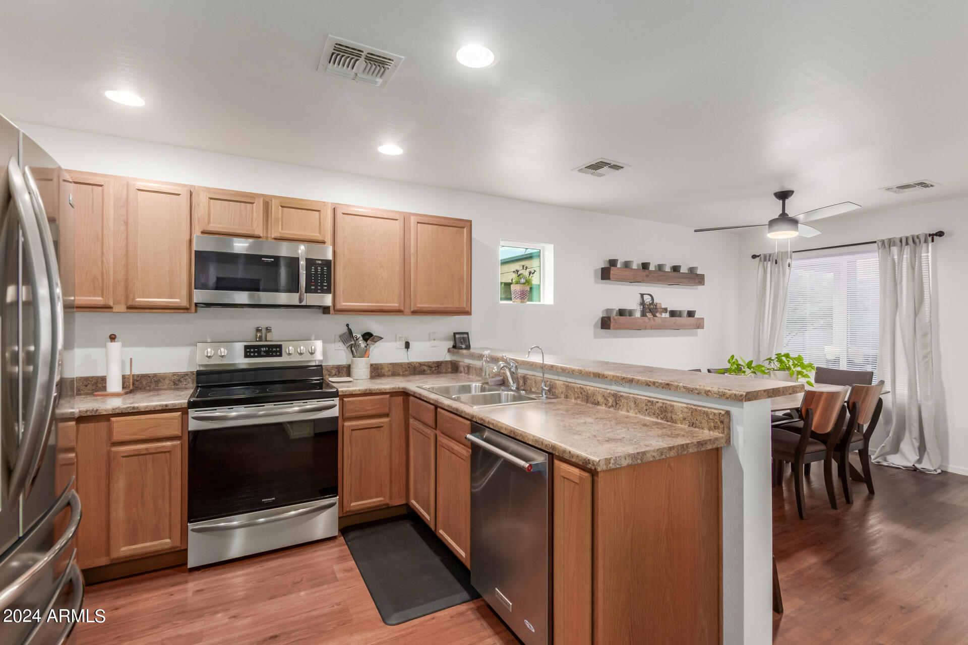 Perfectly located residence in the Bell Park neighborhood can be yours! Multi-generational Home! This immaculate, energy-efficient 4-bed/3 bath home showcases a mature front yard & a cozy porch. Discover a welcoming living room with a soothing palette, recessed lighting, & wood-look flooring. Enjoy delicious meals in the eat-in kitchen with ample wood cabinetry, SS appliances, a pantry, and a two-tier peninsula with a breakfast bar. The cozy main bedroom includes a walk-in closet & a private bathroom with a step-in shower. Enjoy breathtaking sunsets in the backyard, boasting a covered patio, pavers, & an inviting firepit. It is within walking distance to schools & Palomino Park. Close to an array of restaurants & shopping centers. SELLER TO PAY OFF $50,000 Solar! This is an AMAZING value!