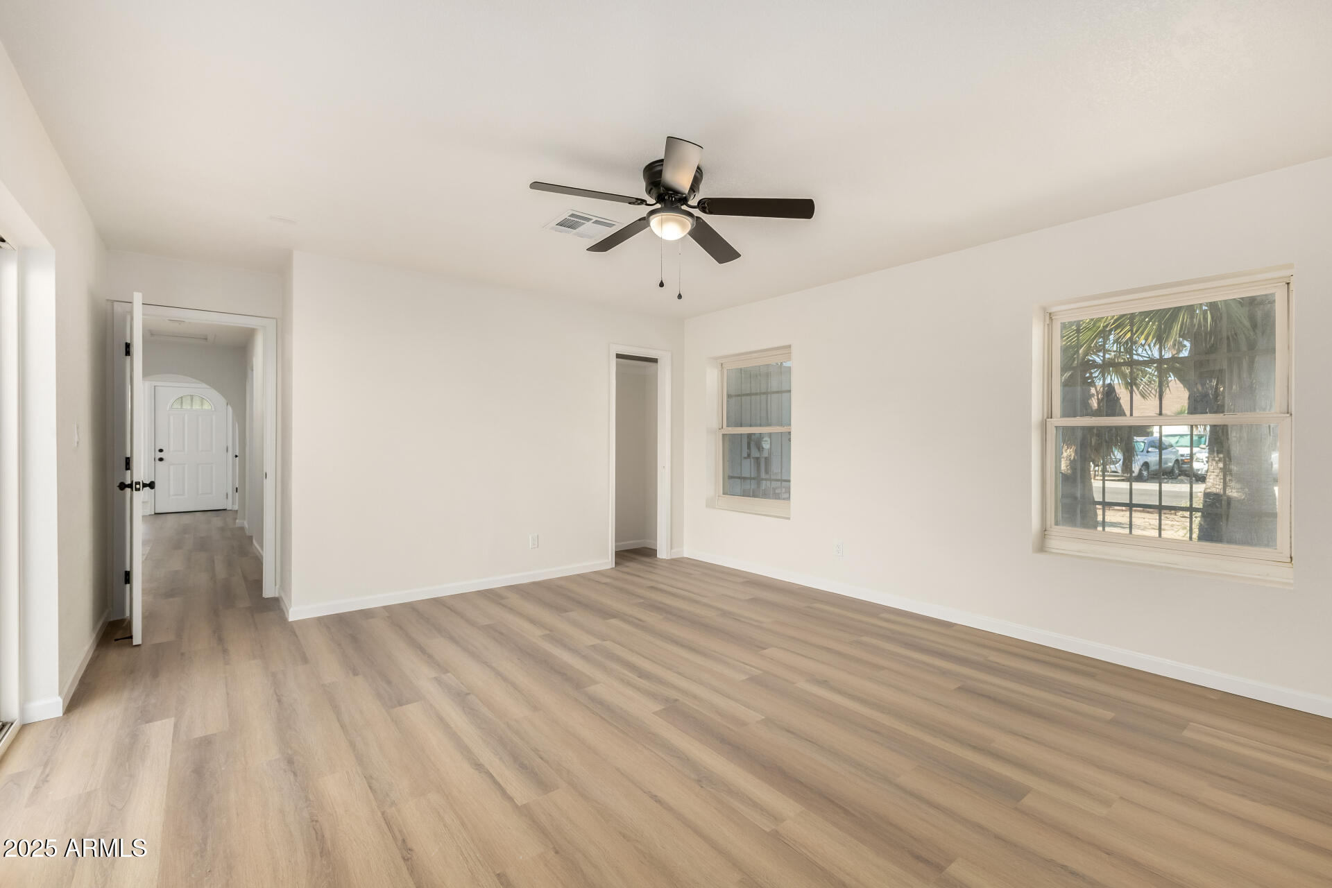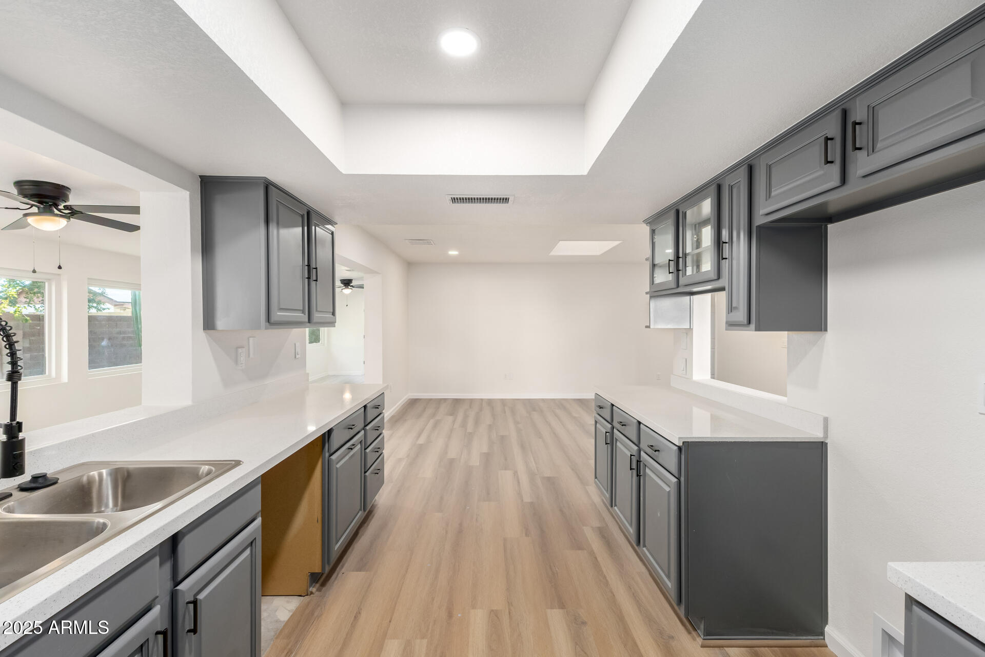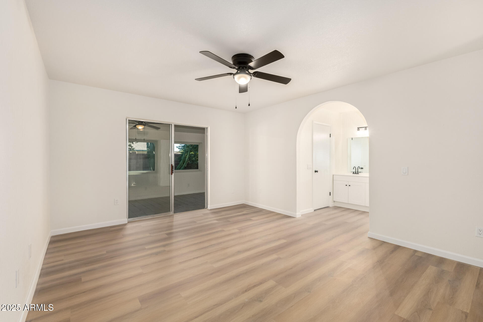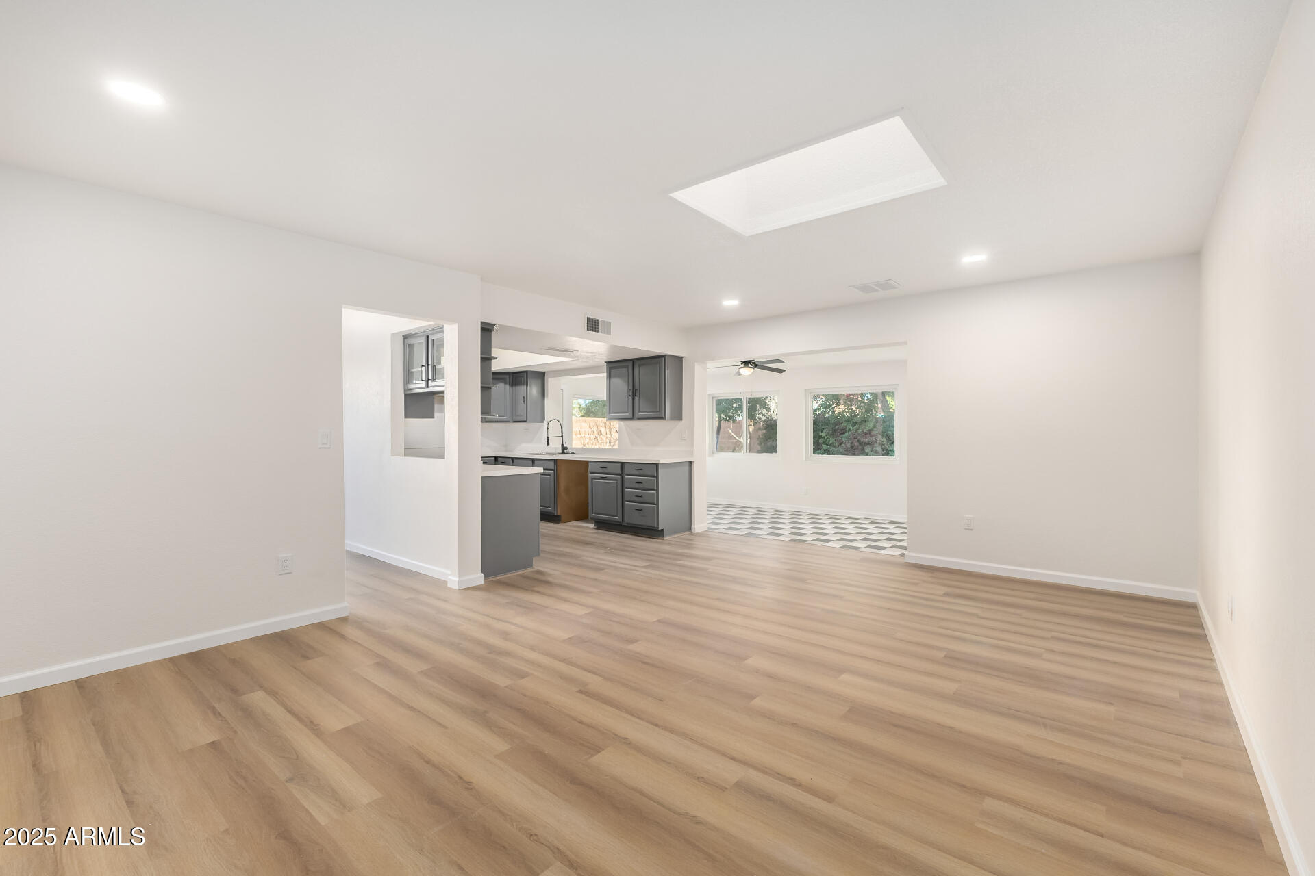 NO HOA! HUGE nearly 1/4 acre lot! Lovely 4-bedroom home on a quiet cul-de-sac! You're greeted by a 2-car garage, a sizeable front yard, and charming brick accents. Discover a sunken living room with vaulted ceilings, a soothing palette, wood-look flooring, and a cozy brick fireplace. The well-appointed family room has skylights for abundant natural light. Culinary adventures await in the kitchen, equipped with solid surface counters, a walk-in pantry, a serving window, and ample wood cabinets with crown moulding. Enjoy warm afternoons in the sunroom, perfect for enjoying the warm Arizona weather year-round. The main bedroom has an ensuite with dual sinks and a walk-in closet. Spend enchanting evenings in the backyard, complete with a spacious covered patio. Don't miss out on this gem!