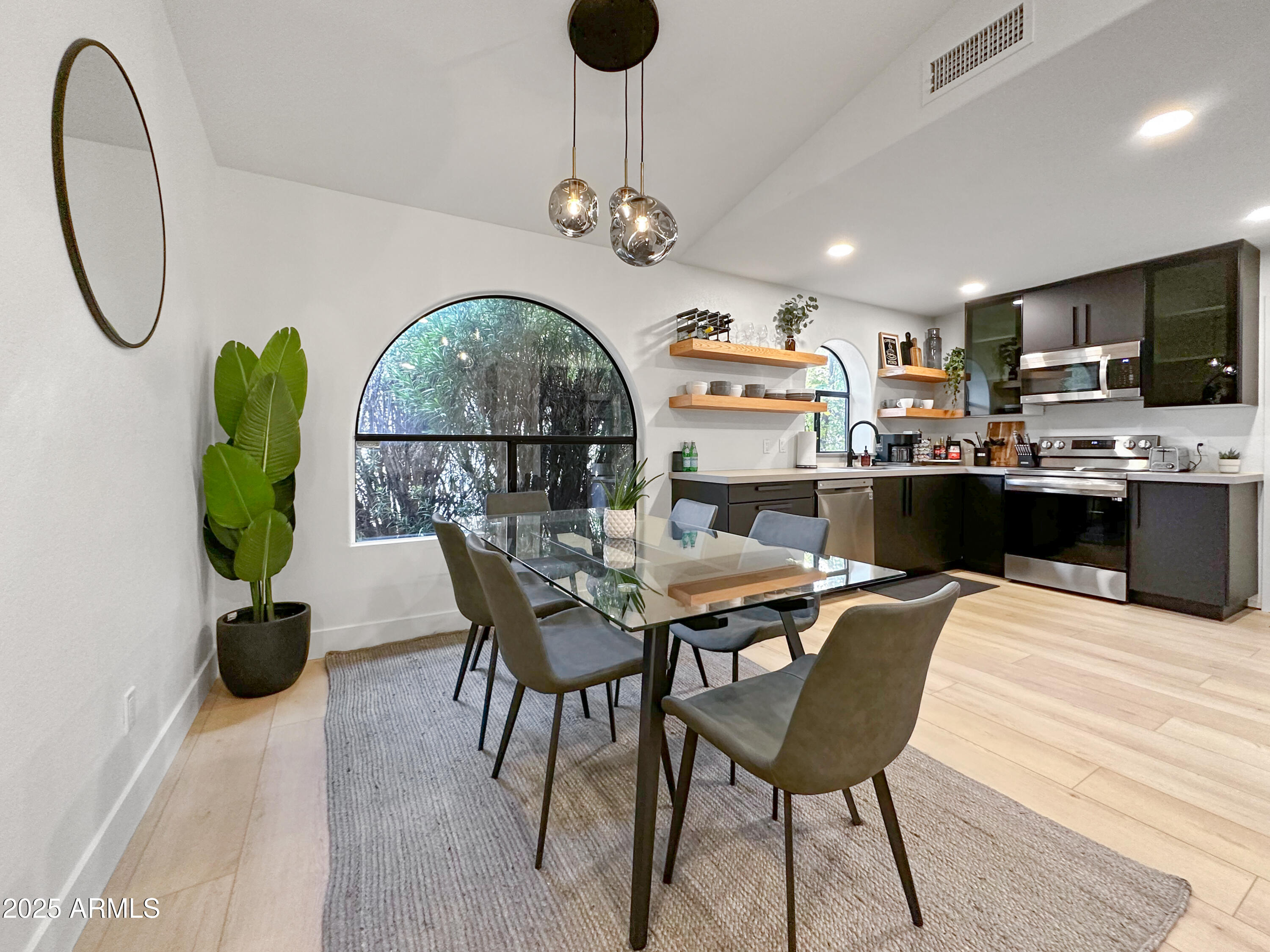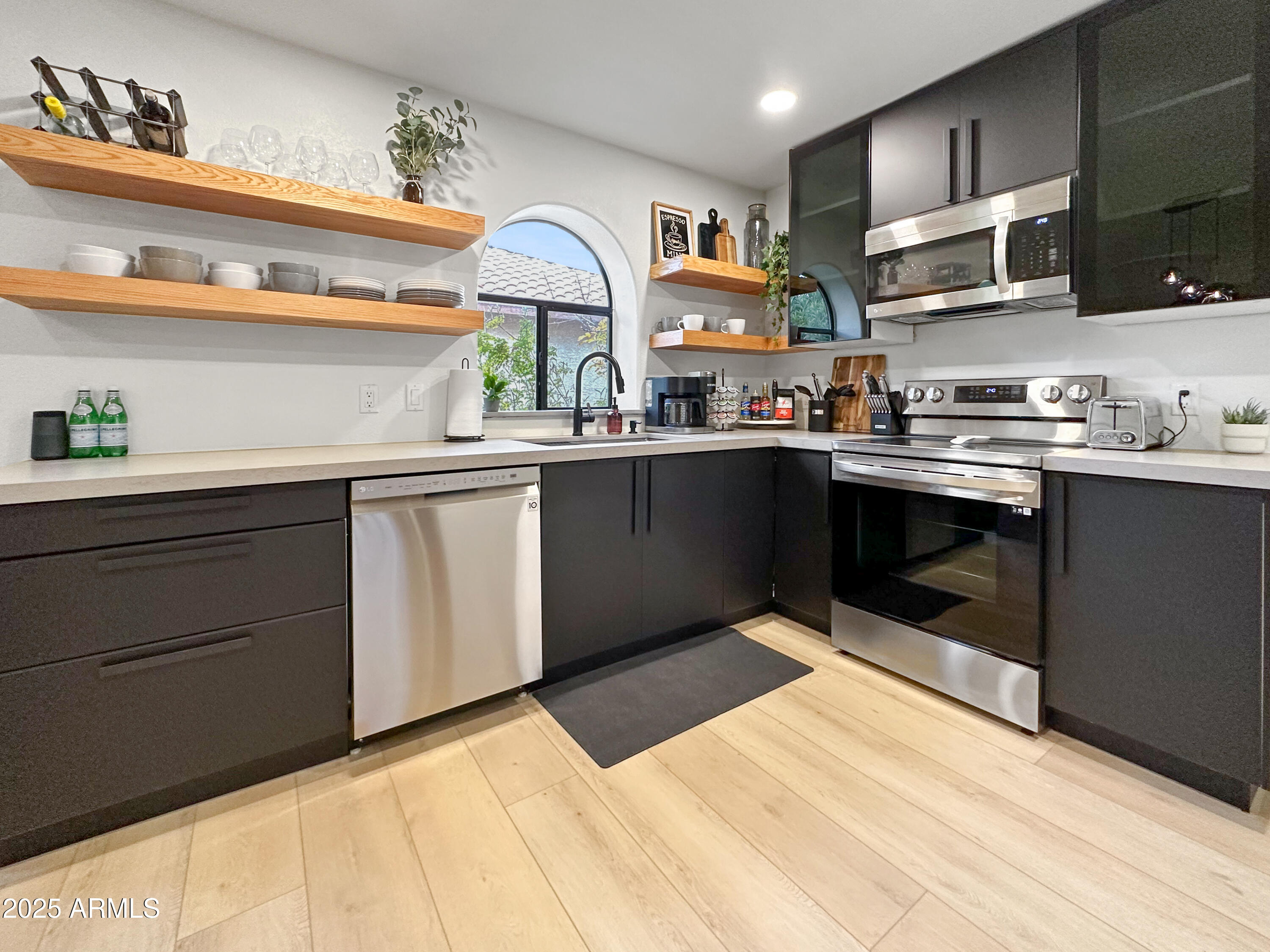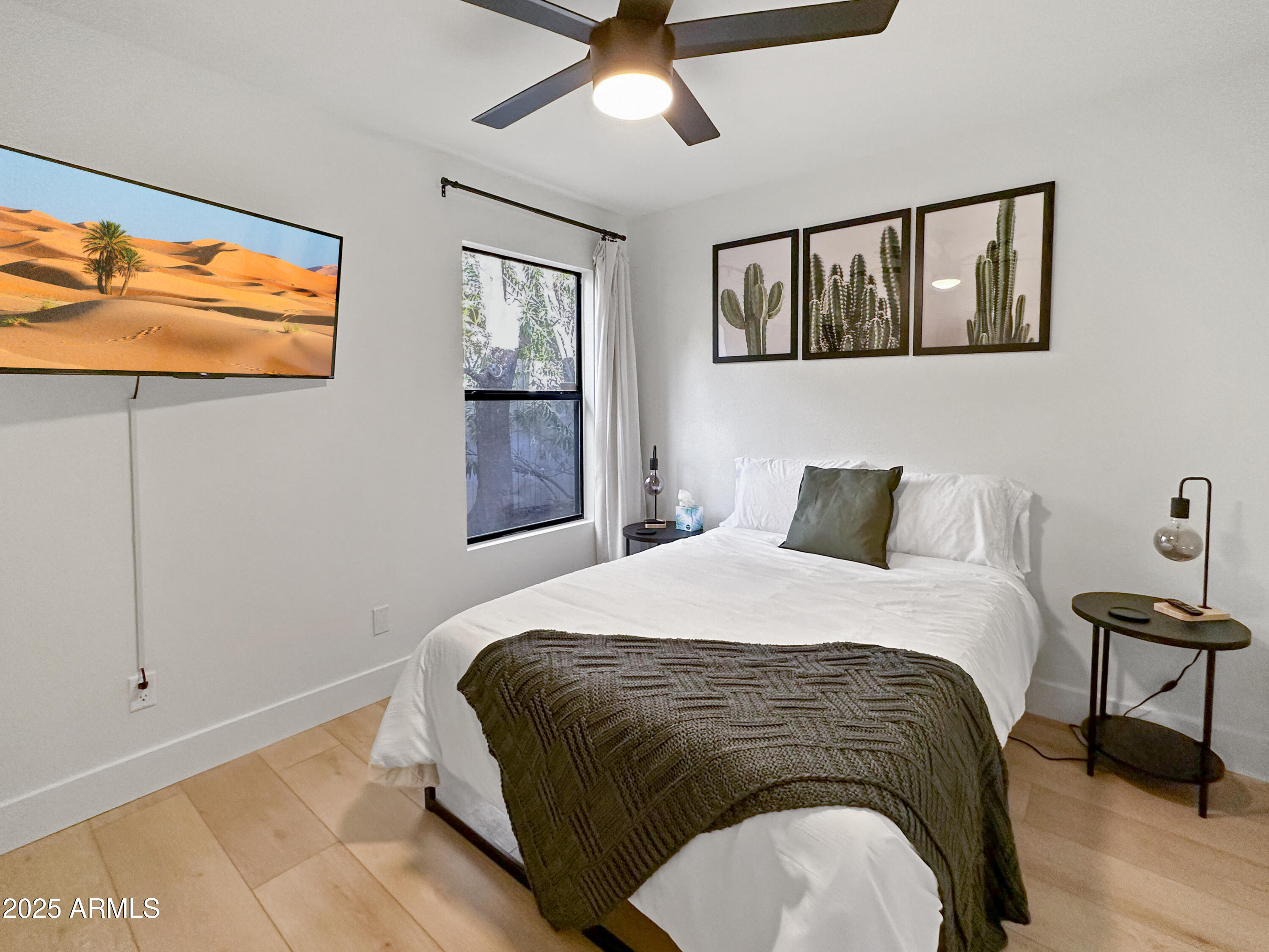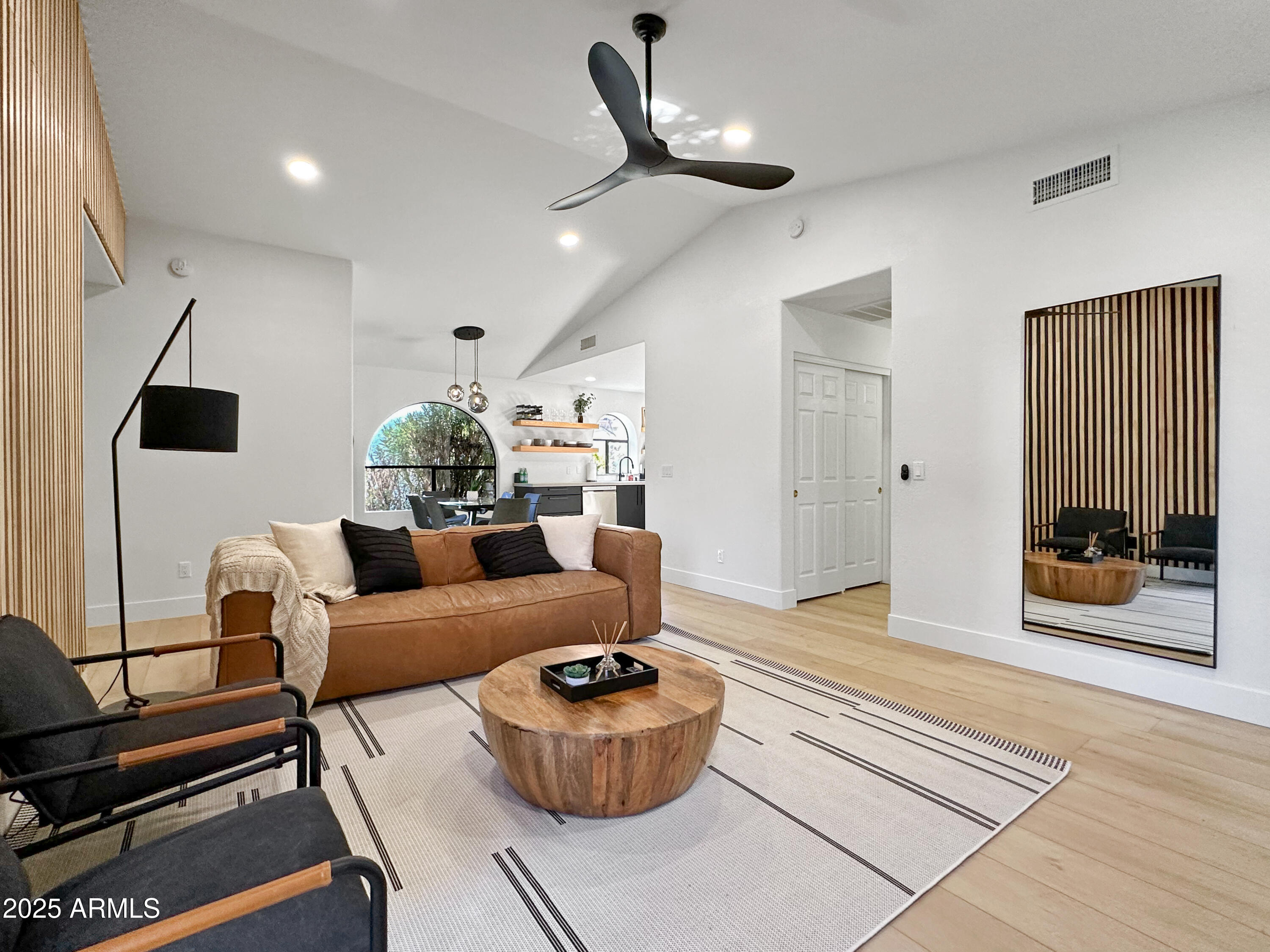 Experience elevated desert living in this beautifully remodeled 3-bedroom, 2-bathroom home--designed with comfort, convenience, and style in mind. This turnkey property is available furnished or unfurnished, offering flexibility for your lifestyle. When furnished, it provides a true move-in-ready experience with high-end pieces, a dedicated workspace, and a sleek coffee bar that make everyday living effortless. The open-concept floor plan showcases a modern Desert aesthetic, vaulted ceilings, and elegant finishes throughout. Outside, the private backyard is built for year-round enjoyment with lush, low-maintenance landscaping, and large paver areas ideal for outdoor dinings, BBQ station, fire pit, lounge area perfect for relaxing or entertaining year-round. Furnishings can be included, making this a true move-in-ready opportunity in one of Scottsdale's most desirable neighborhoods.