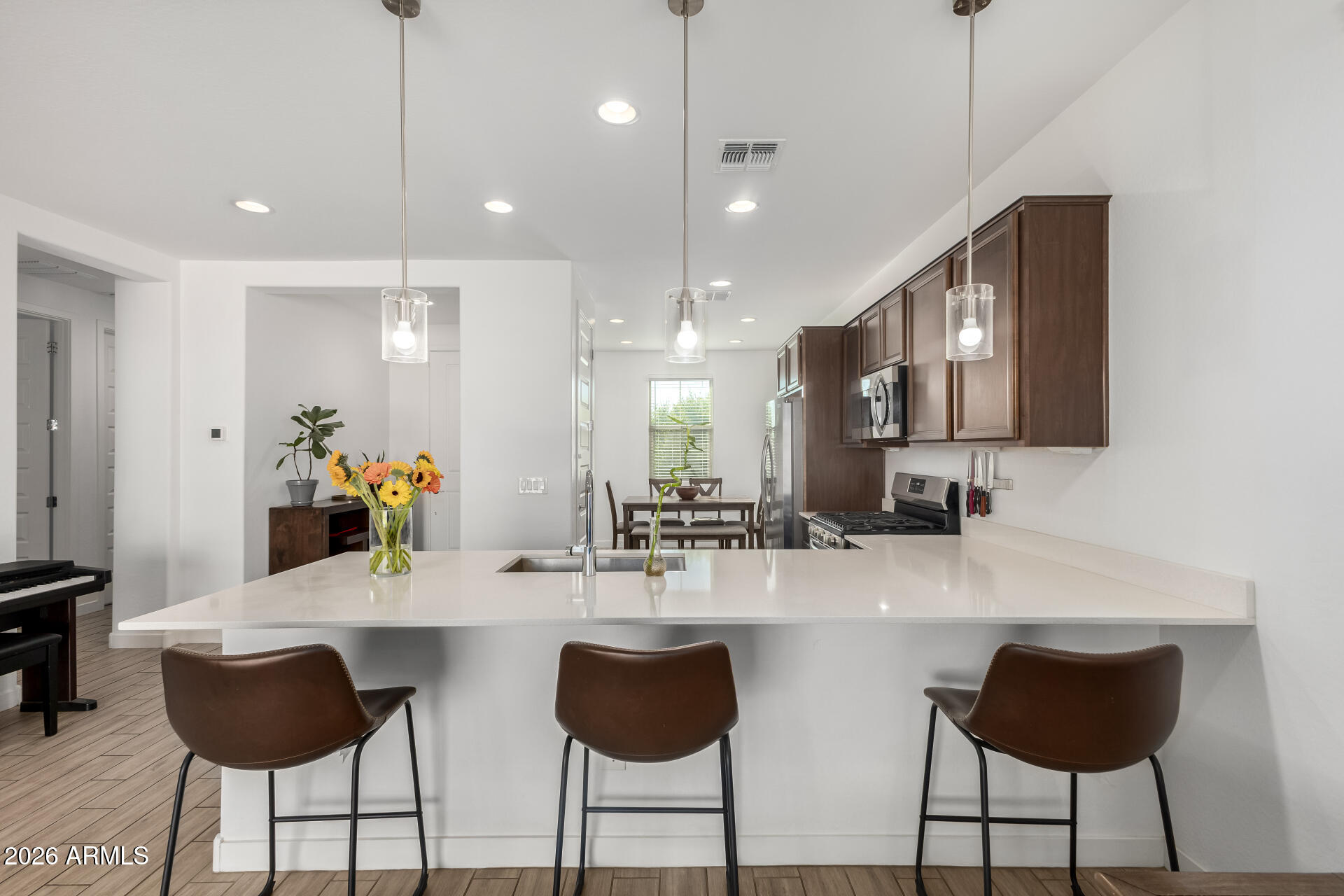 Welcome to this well-maintained 3-bedroom, 2-bath Fully Upgraded home located in the gated community of Northern Crossing. The thoughtfully designed floor plan offers comfortable living and functional space throughout with an eat-in kitchen, granite countertops, stainless steel appliances and a gas range. The home features upgraded wood look tile and a tankless water heater. The living room is wired for surround sound, making it ideal for entertaining. Low-maintenance desert landscaping in front with an artificial turf backyard that complements the property, while the convenient location provides easy access to parks, schools and shopping. A great opportunity to enjoy quality living in the growing West Valley.