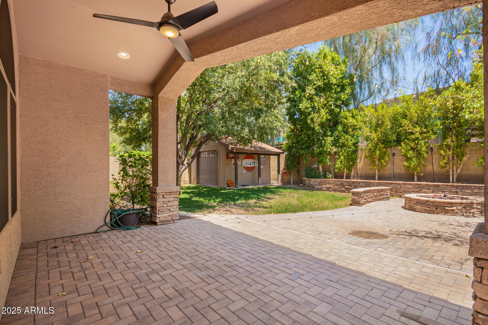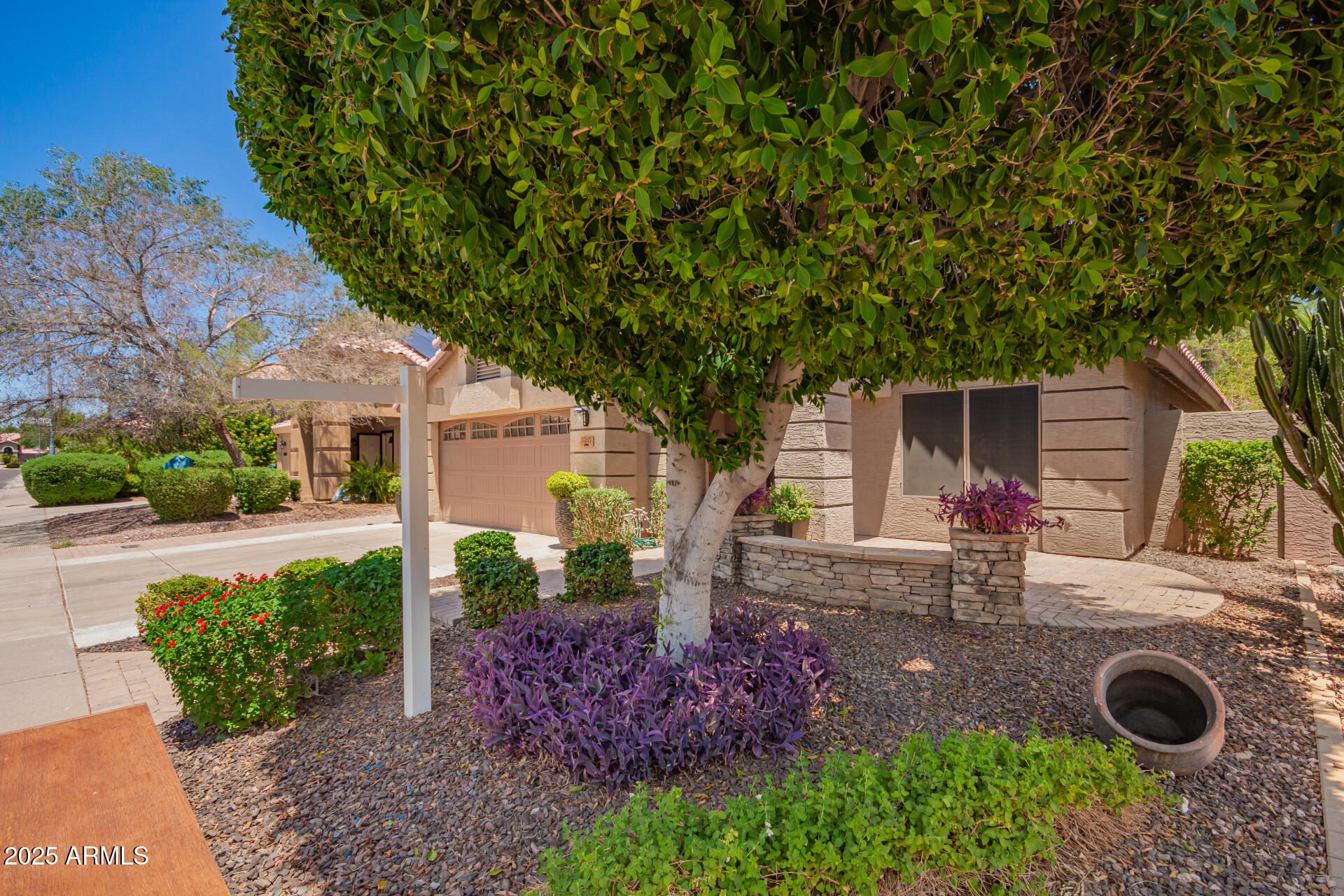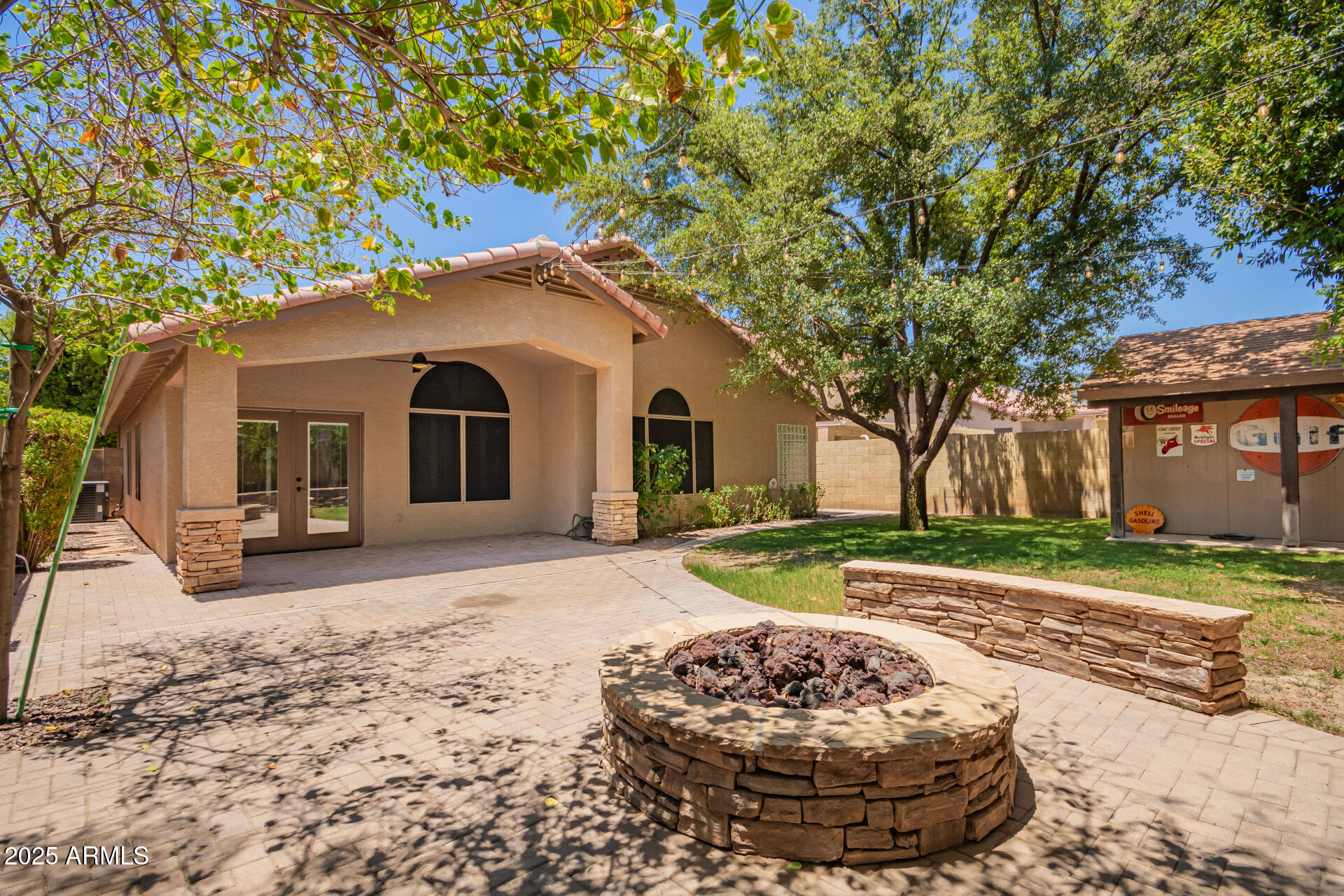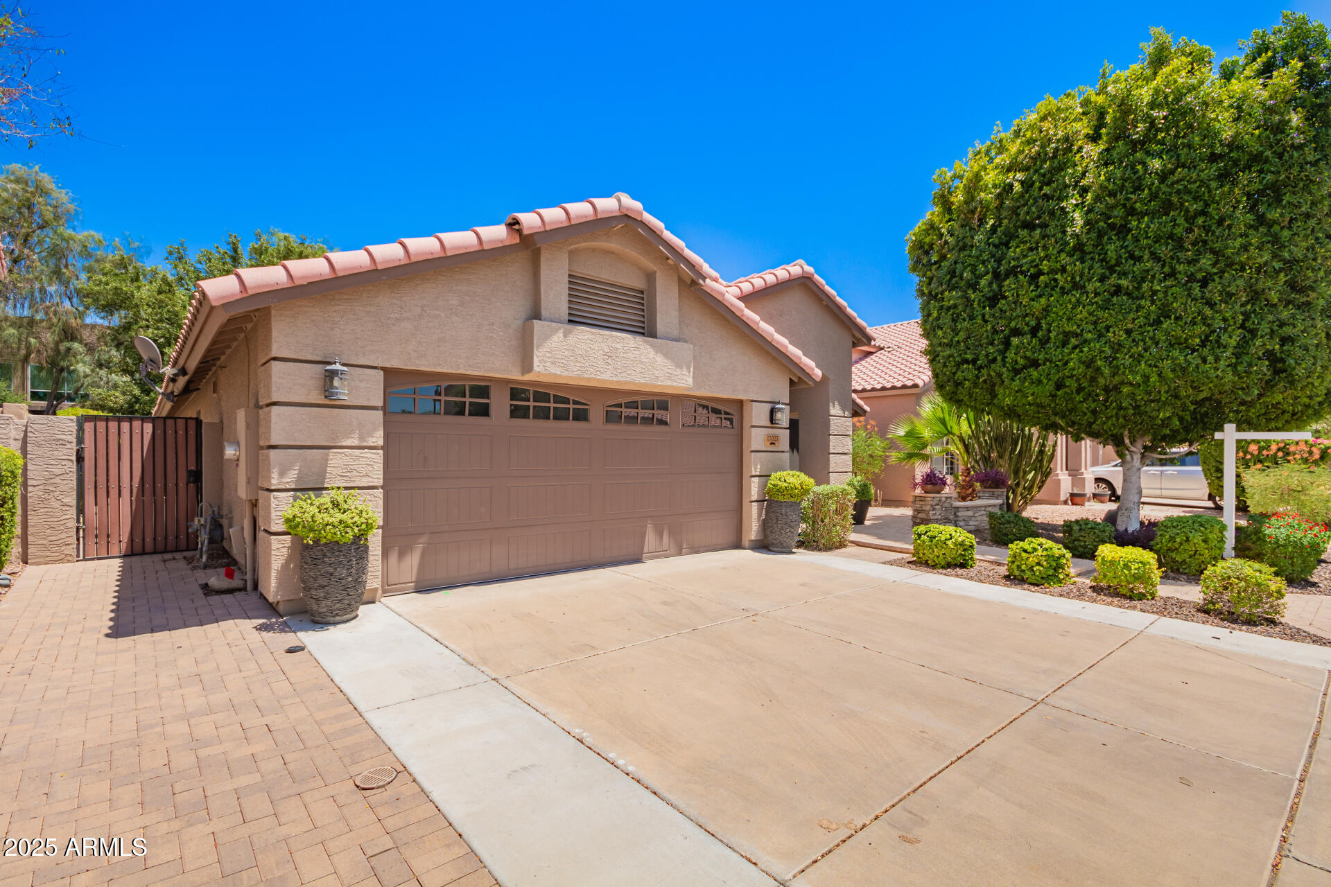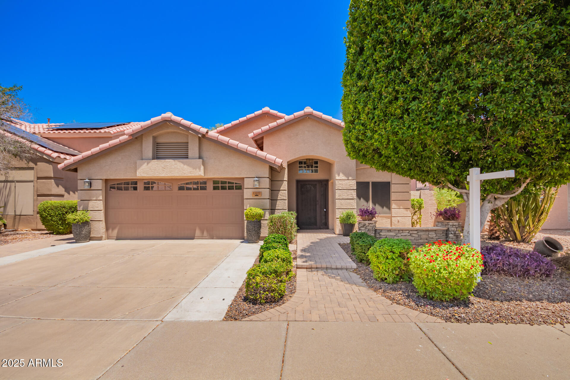 Exquisitely renovated home in the prestigious Sunscape community. Freshly painted, new carpet, interior features recessed lighting, 8-foot doors, elegant plantation shutters, vaulted ceilings & abundant natural light. Premium tile flooring complements the plush carpeting. The open layout seamlessly connects living spaces, Kitchen is a culinary masterpiece with sleek quartz countertops, custom cabinetry with rollout draws & lazy suzan, modern stainless steel appliances, including a 2022 gas stove. The primary suite, accessed through double doors, boasts a luxurious ensuite with dual sinks and a spacious walk-in closet. Enjoy a sophisticated 2-car garage with an insulated door, tankless water heater, water softener & RO system. Exceptional curb appeal, complemented by a lush landscape. Both the primary & secondary bathrooms have been updated as well, featuring new Toto toilets, quartz vanity top, and all-new Kohler faucets PLUS! AC replaced 2023, new screens, New tankless water heater 2022, gas heating, and the interior doors were upgraded from 8-foot to 9-foot. The double French door to the large backyard! It features a gas fire pit & barbecue, a mature tree, natural grass, string lights, and expansive pavers seamlessly extend from the covered patio. An additional perk is the 15x15 permitted shed with shelving, ensuring tools are organized. Ready to move in!