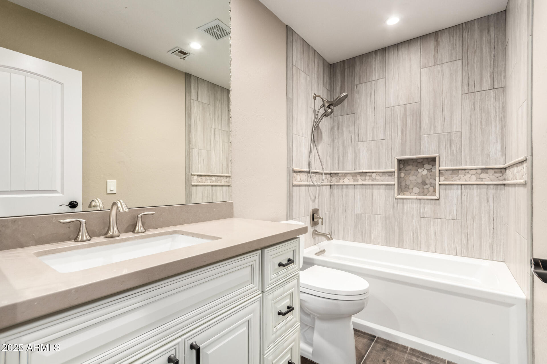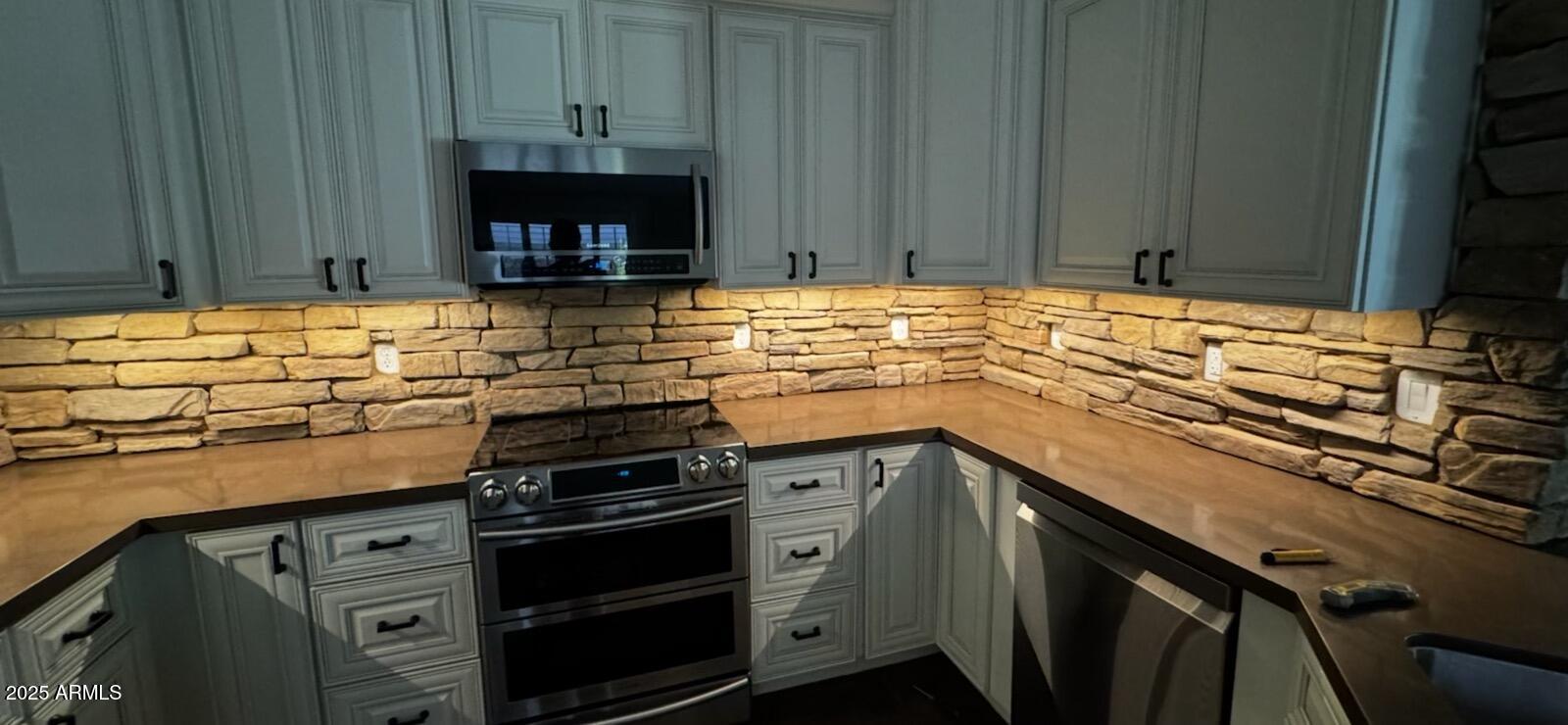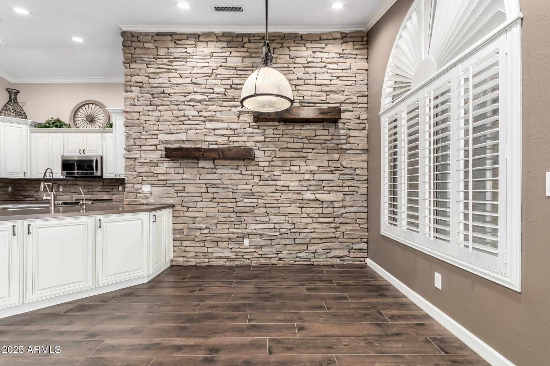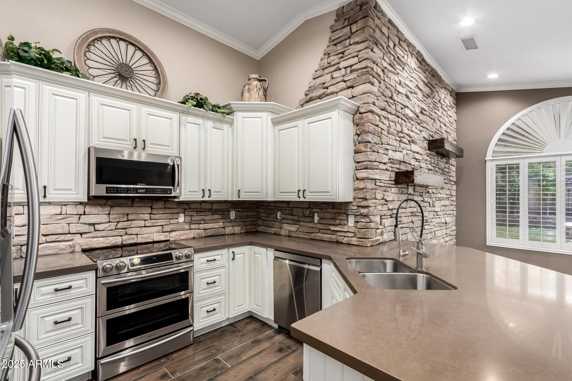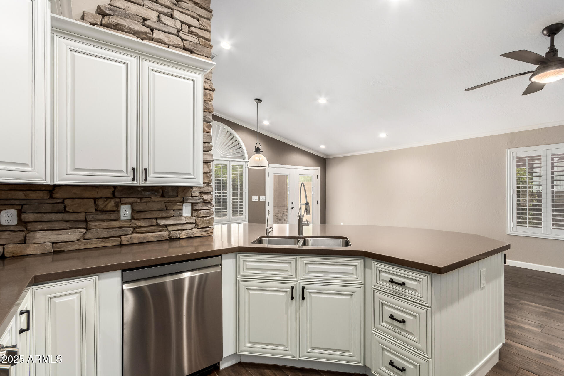 Exquisitely renovated home in the prestigious Sunscape community. Freshly painted, new carpet, interior features recessed lighting, 8-foot doors, elegant plantation shutters, vaulted ceilings & abundant natural light. Premium tile flooring complements the plush carpeting. The open layout seamlessly connects living spaces, Kitchen is a culinary masterpiece with sleek quartz countertops, custom cabinetry with rollout draws & lazy suzan, modern stainless steel appliances, including a 2022 gas stove. The primary suite, accessed through double doors, boasts a luxurious ensuite with dual sinks and a spacious walk-in closet. Enjoy a sophisticated 2-car garage with an insulated door, tankless water heater, water softener & RO system. Exceptional curb appeal, complemented by a lush landscape. Both the primary & secondary bathrooms have been updated as well, featuring new Toto toilets, quartz vanity top, and all-new Kohler faucets PLUS! AC replaced 2023, new screens, New tankless water heater 2022, gas heating, and the interior doors were upgraded from 8-foot to 9-foot. The double French door to the large backyard! It features a gas fire pit & barbecue, a mature tree, natural grass, string lights, and expansive pavers seamlessly extend from the covered patio. An additional perk is the 15x15 permitted shed with shelving, ensuring tools are organized. Ready to move in!