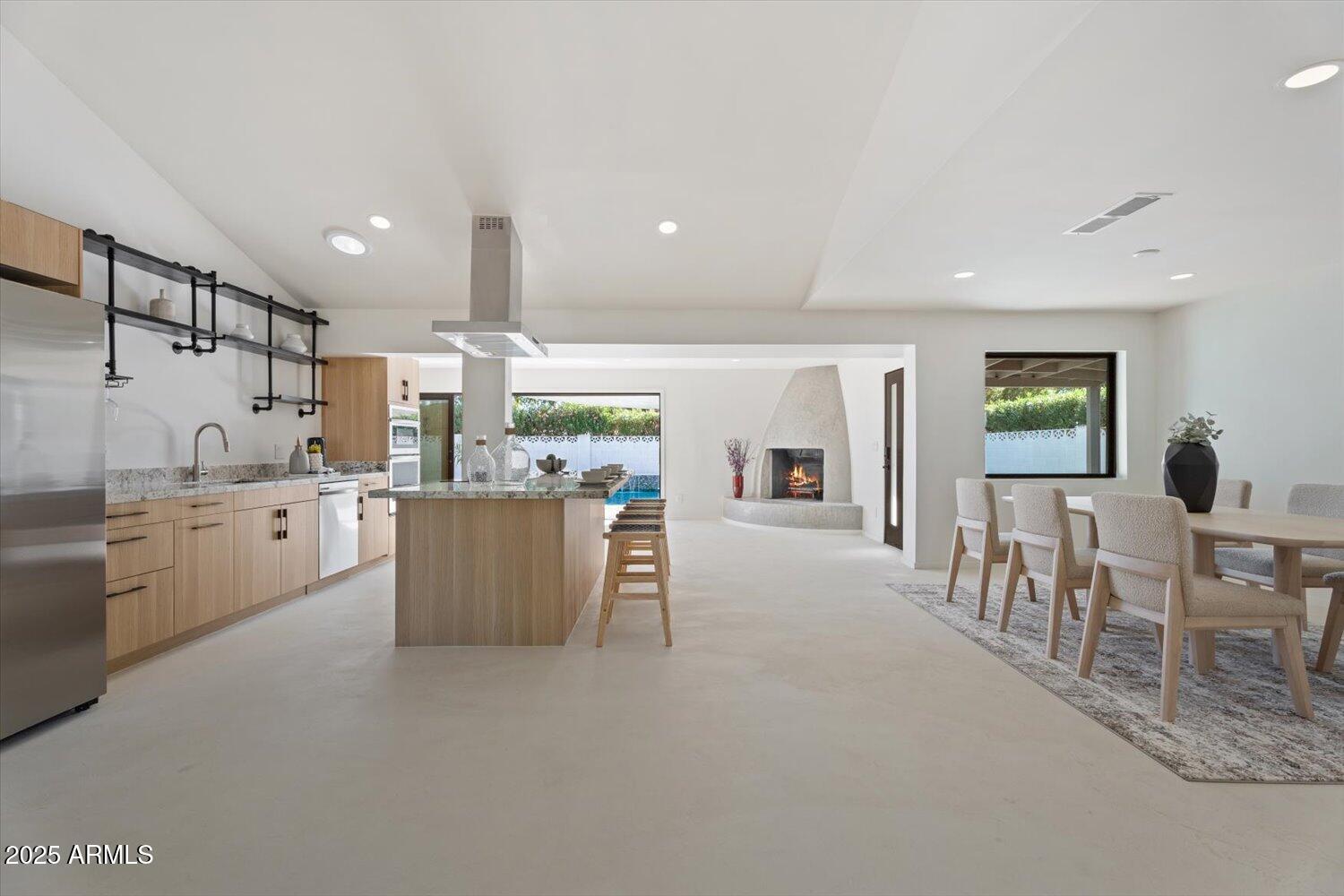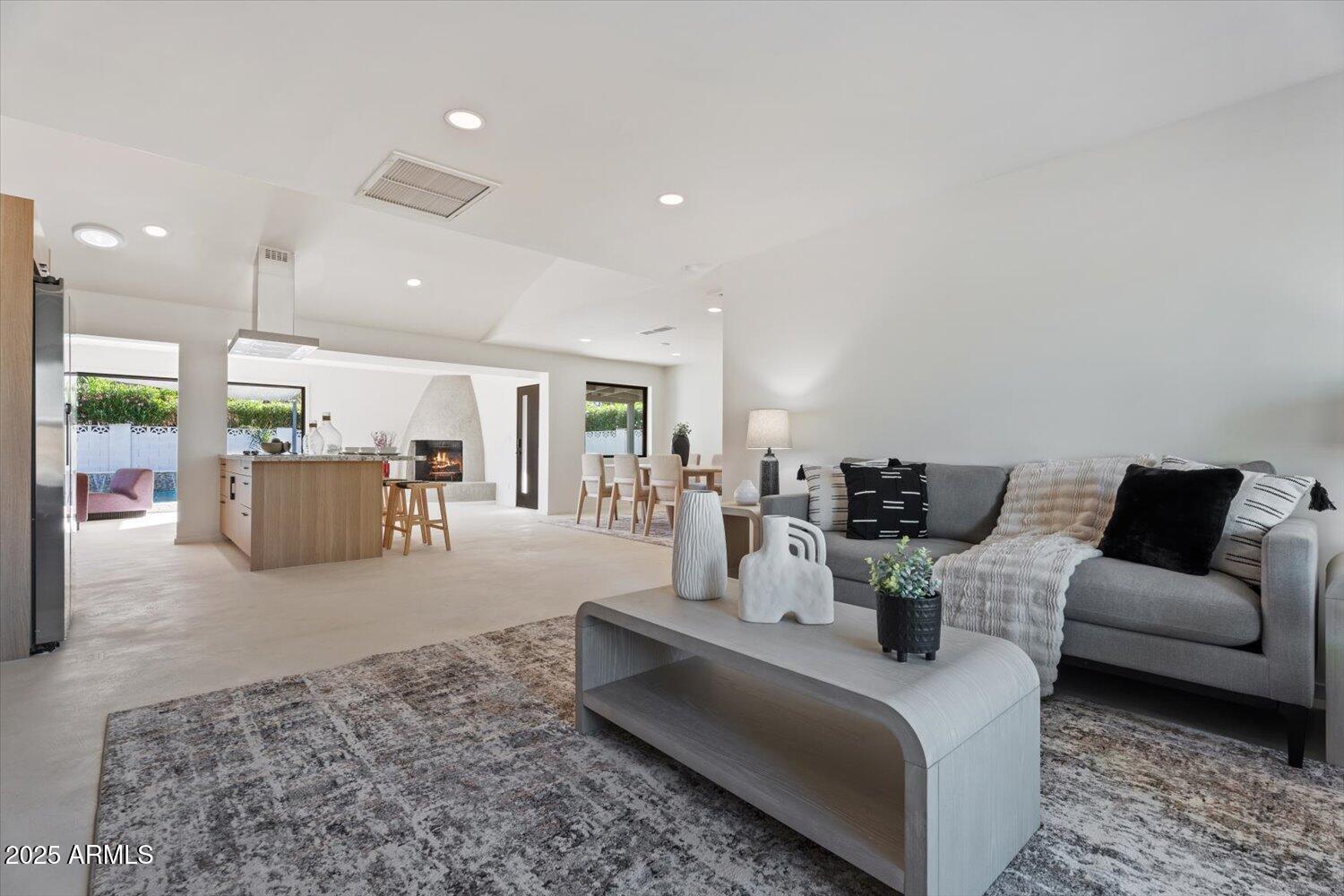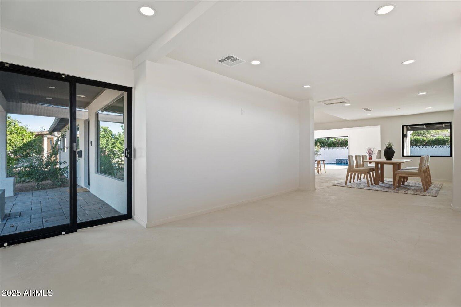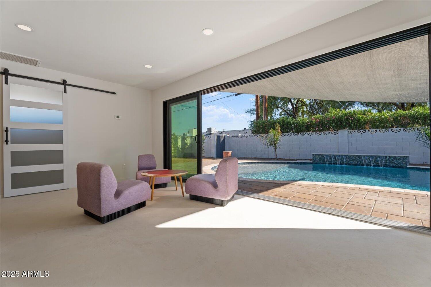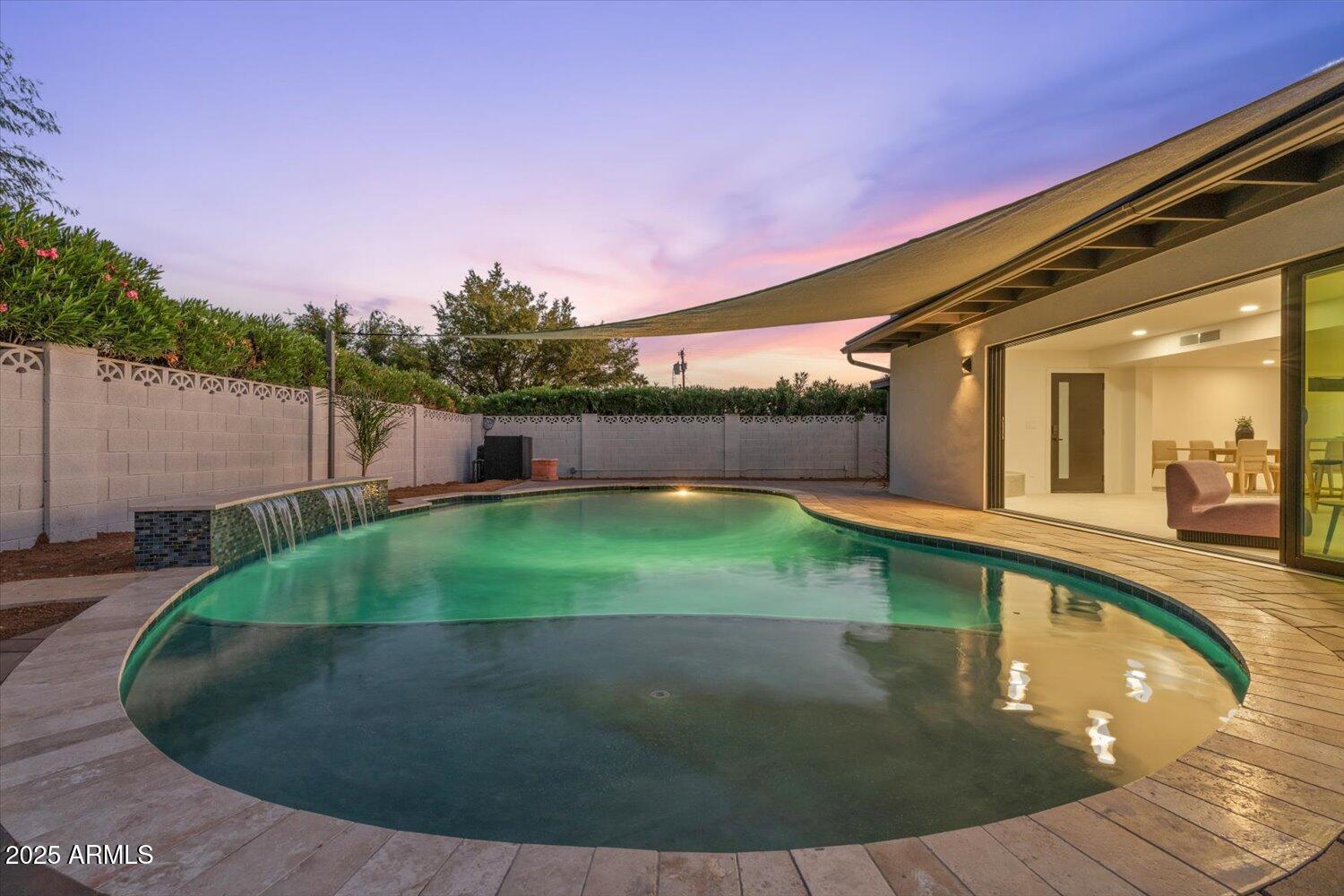 Seamless Indoor/Outdoor Living: A sleek sliding glass door connects your living space to the stunning pool, where the flooring ends, and the water begins. It's a vibrant centerpiece by day and a glowing retreat by night.