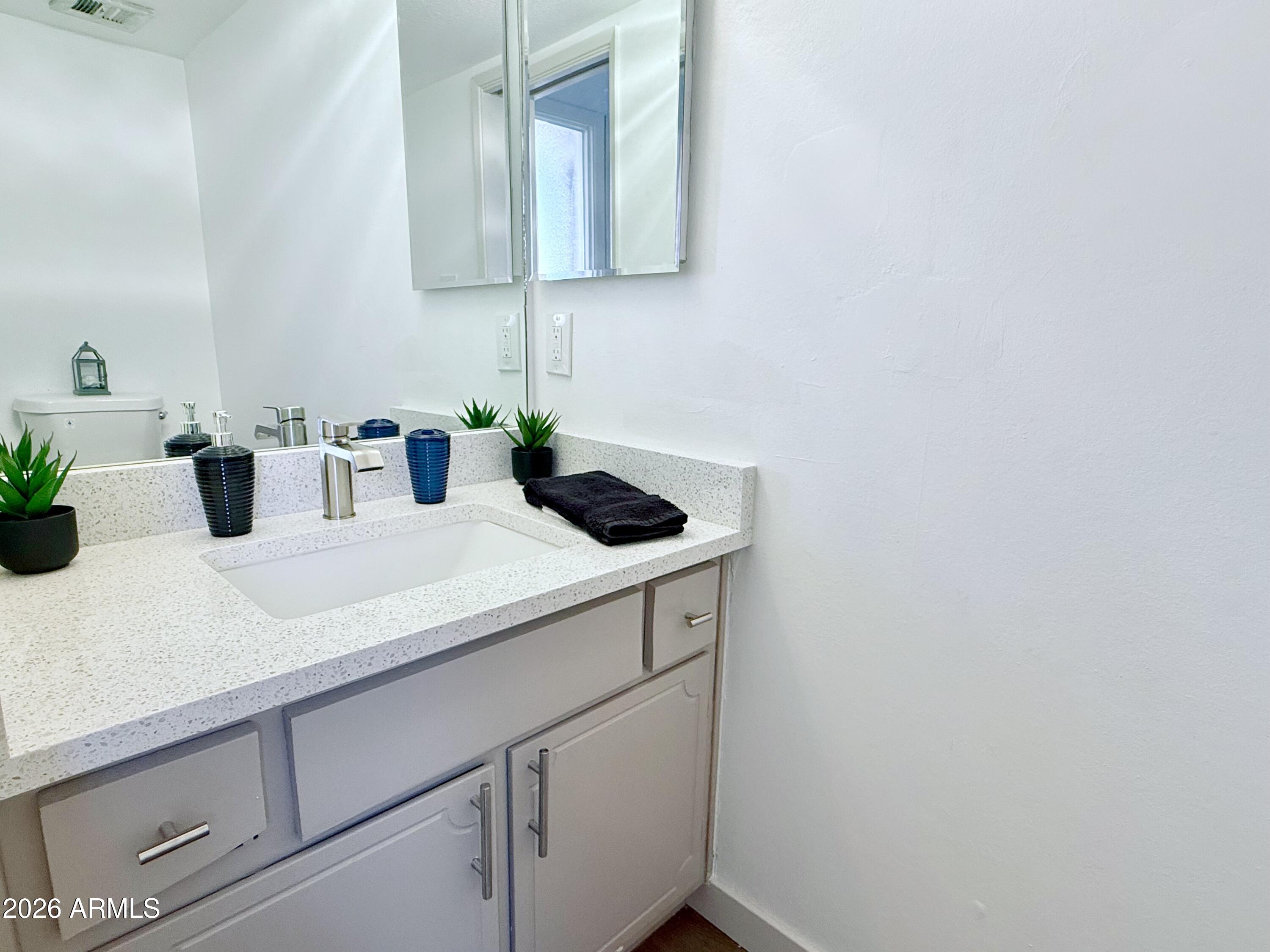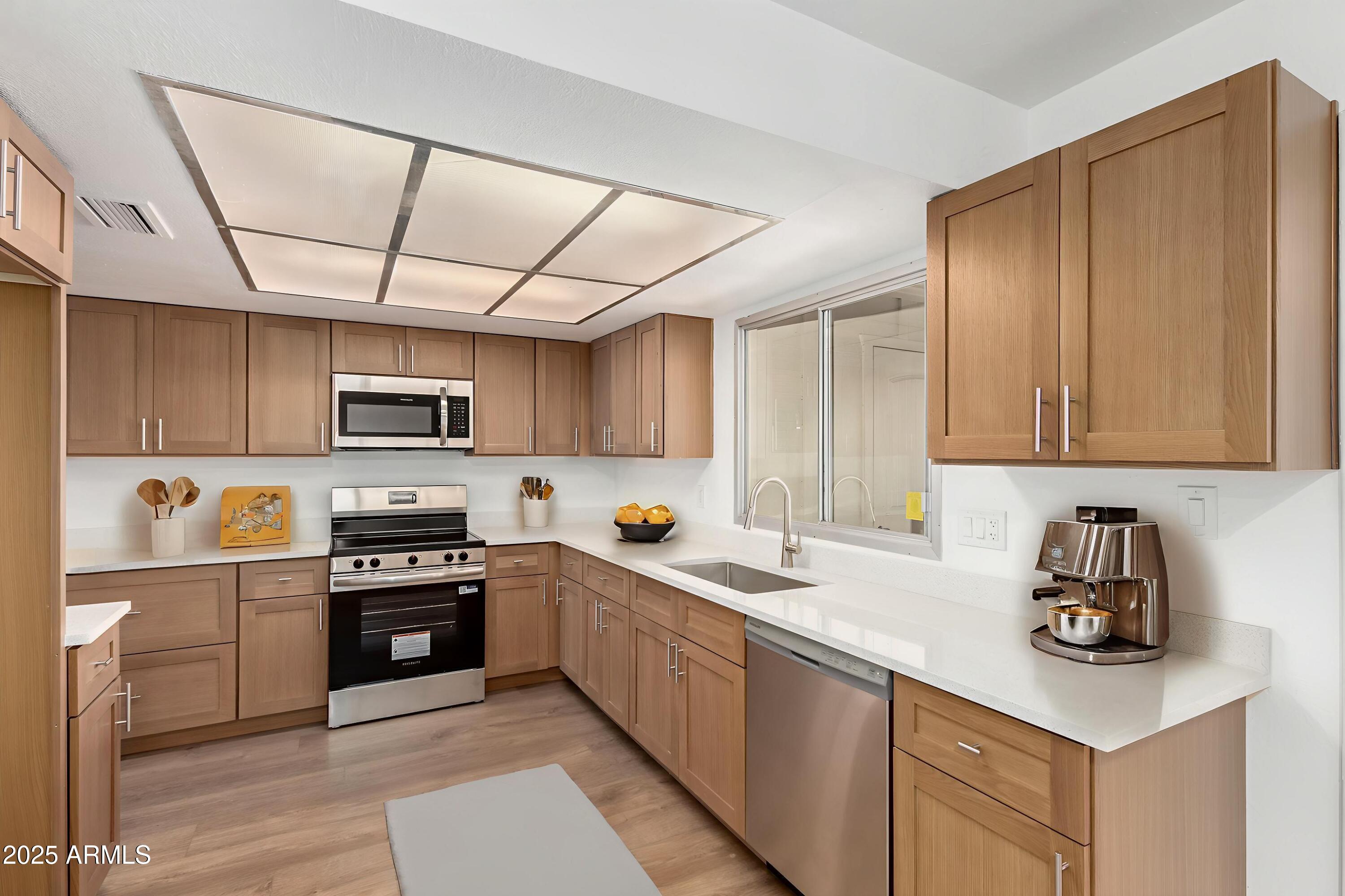 Prime Central Phoenix location in the quiet Continental Villas West community! This beautifully remodeled townhouse features 2025 upgrades throughout, including Luxury Vinyl Plank flooring, new carpet, & a fully renovated kitchen with stainless steel appliances. The main-level primary suite offers convenience & comfort, while all 3 bathrooms have been tastefully updated, including a freshly tiled primary shower. Upstairs includes 3 additional bedrooms, each with a walk-in closet, and a full bath. Fresh interior paint, outside laundry with washer & dryer, a screened-in patio, & two covered parking spaces complete the home.
