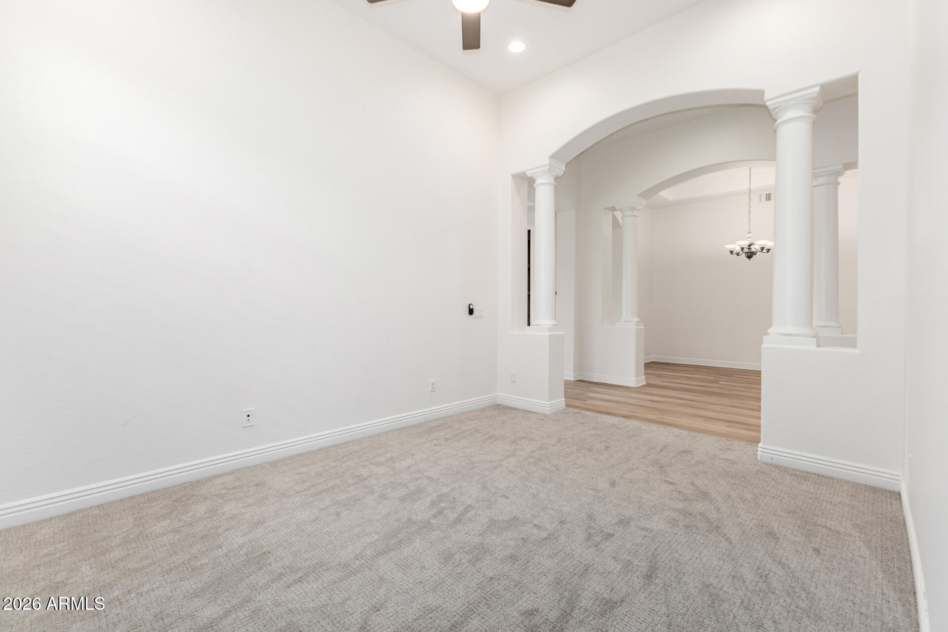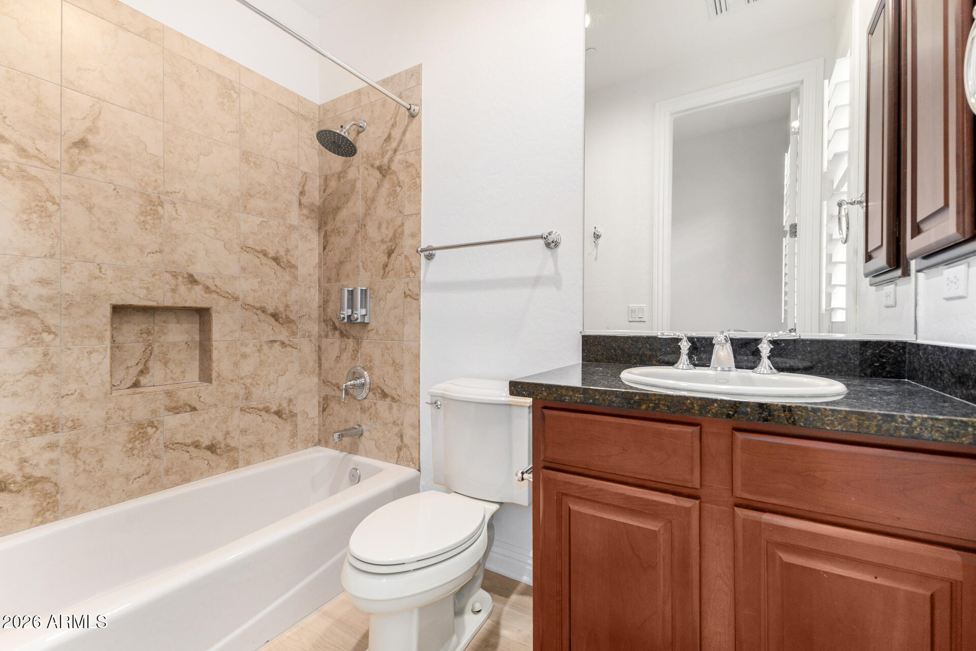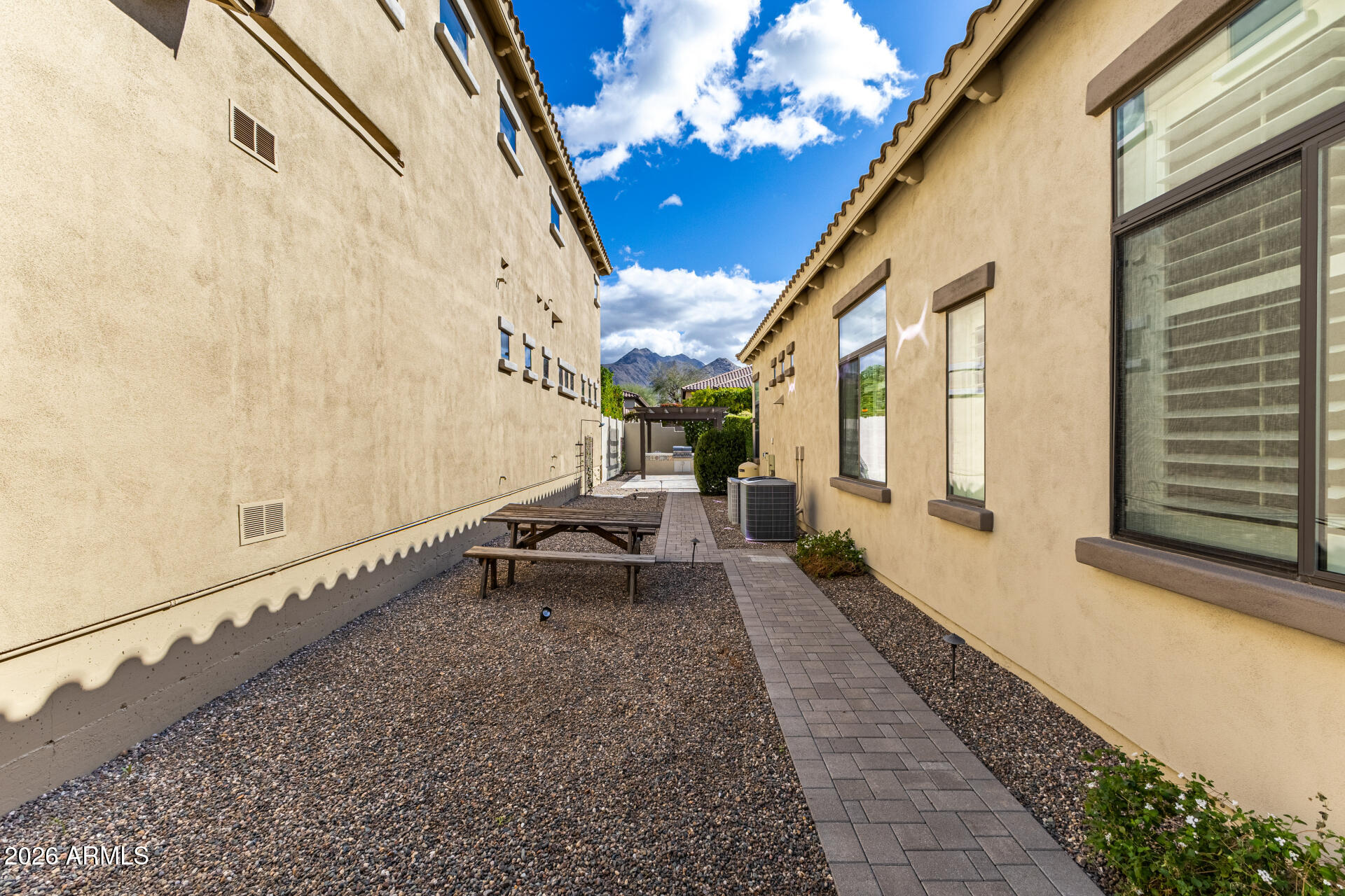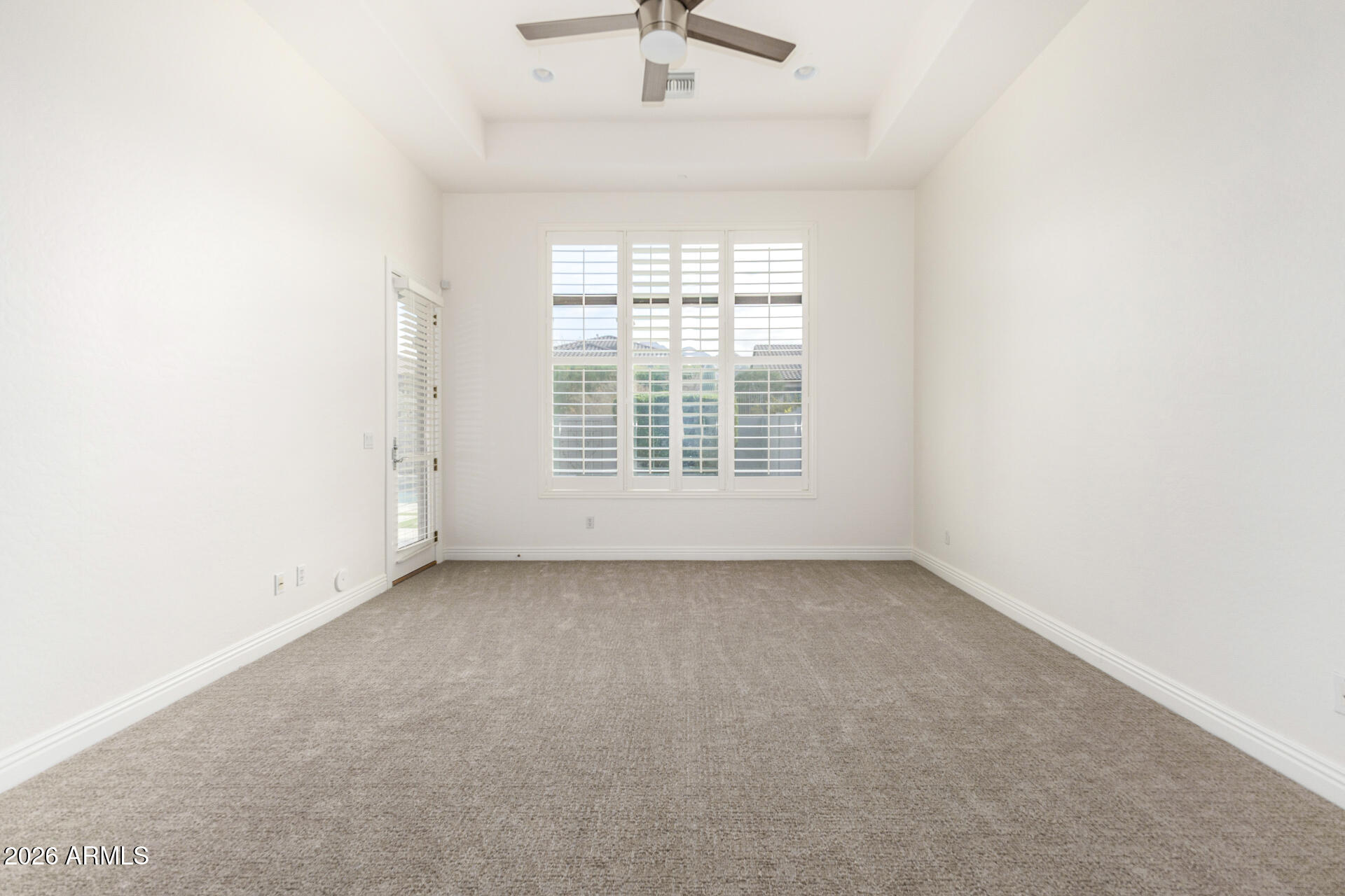 Don't miss this amazing rental opportunity! Gorgeous 3-bedroom home with pool in the sought-after Windgate Ranch, featuring a beautiful stone-accented facade, a gated courtyard, and a 2-car garage with attached storage. The open and inviting living areas blend style and comfort seamlessly, showcasing wood-look floors, abundant natural light, plantation shutters, a surround sound system, and a fireplace in the living room, perfect for cozy movie nights, with 3 TVs provided. The impeccable kitchen awaits your culinary adventures, equipped with custom cabinets adorned with crown molding, tile backsplash, sleek granite countertops, built-in appliances, and an island with a breakfast bar, perfect for entertaining. The tranquil main bedroom includes a two walk-in closets for easy organization and a spa-like bathroom. An oversized dual-sink vanity and a separate shower & tub. The spacious den is perfect for a hobby area or quiet retreat. Out back, you'll have your oasis, complete with a covered patio, elegant travertine pavers, artificial turf, a built-in BBQ with a pergola, and a sparkling pool for a refreshing time! An entertainer's delight!