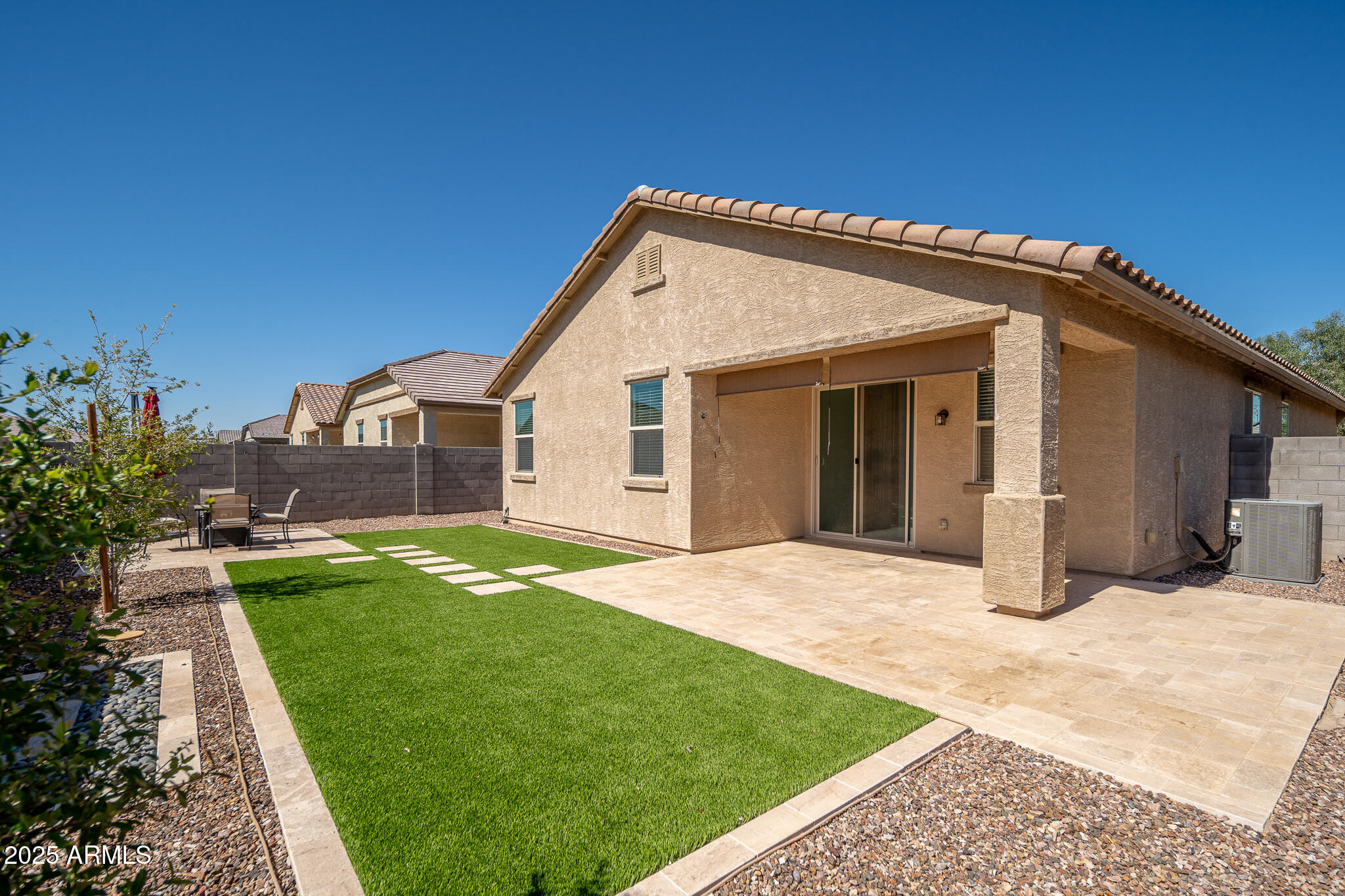 The professionally landscaped backyard transforms outdoor entertaining into an art form. Relax on the extended travertine patio, gather around the custom fire pit, and enjoy the soothing sounds of the fountainall while low-maintenance artificial turf keeps your weekends free. An RV gate provides convenient storage for your toys, while the extra-tall 8-foot garage door accommodates larger vehicles, trucks, or SUVs with ease.