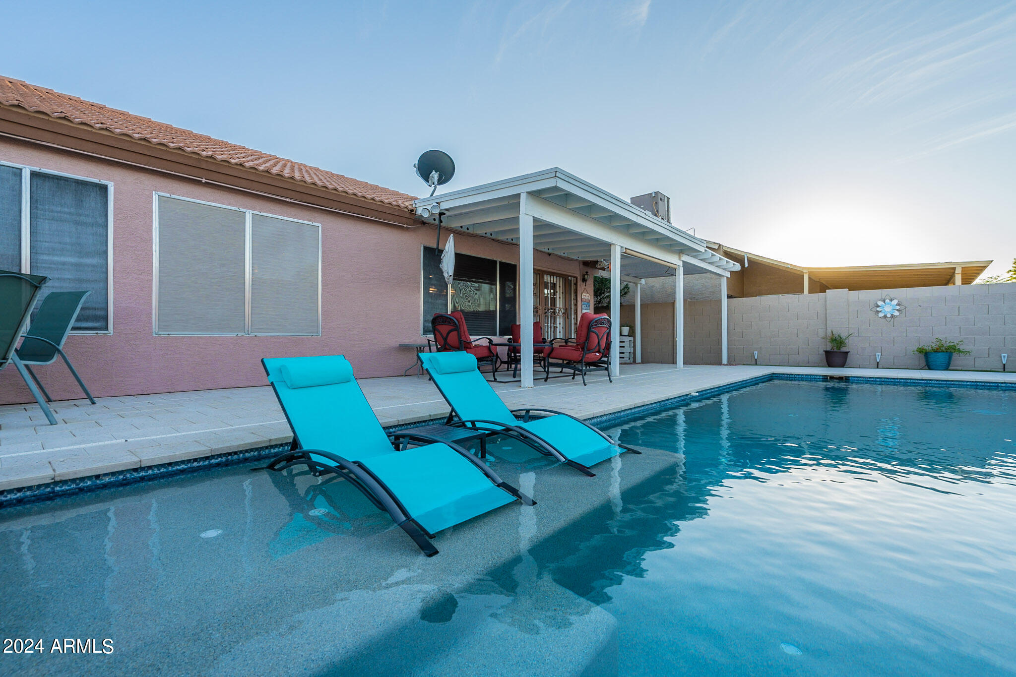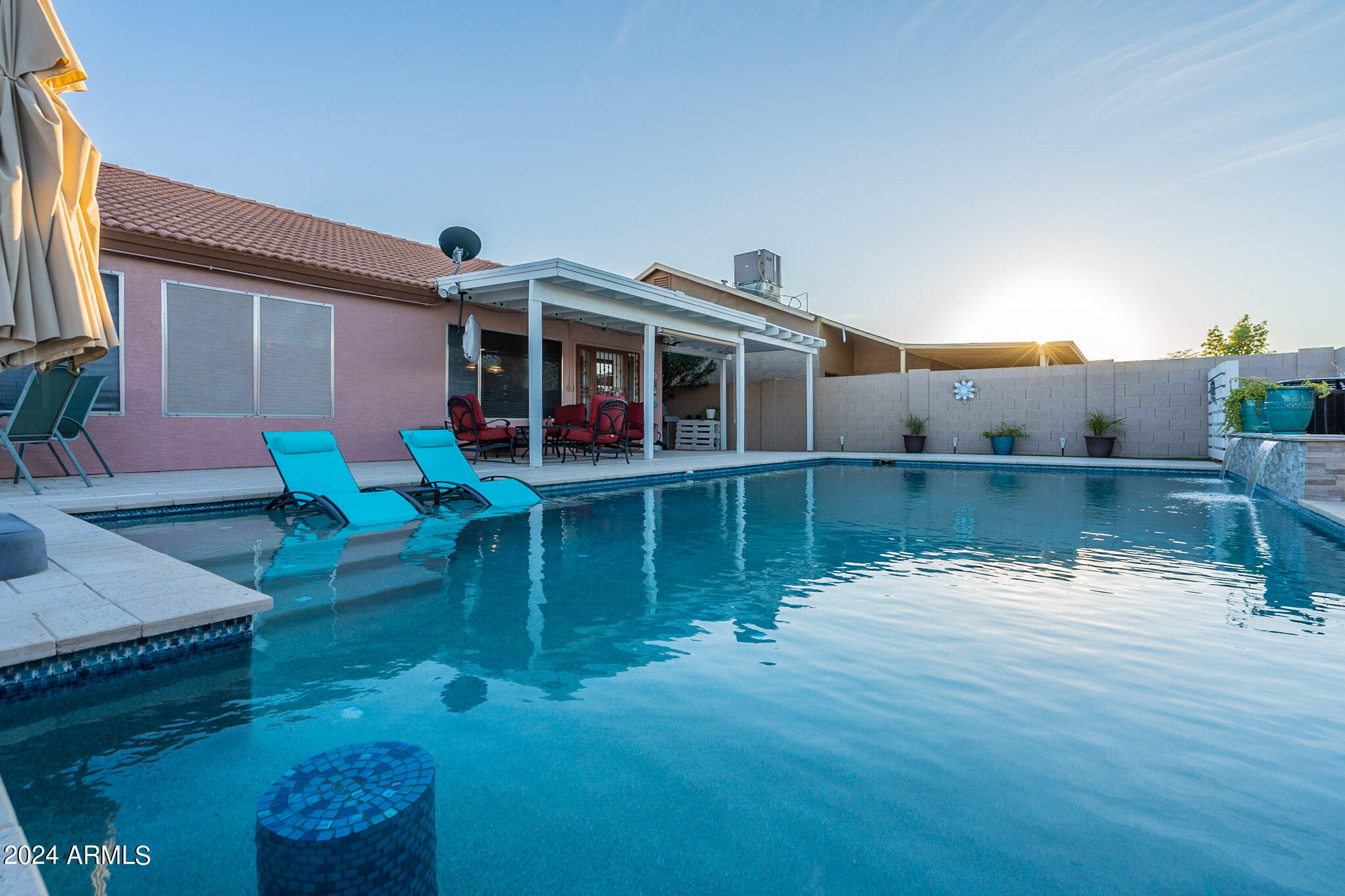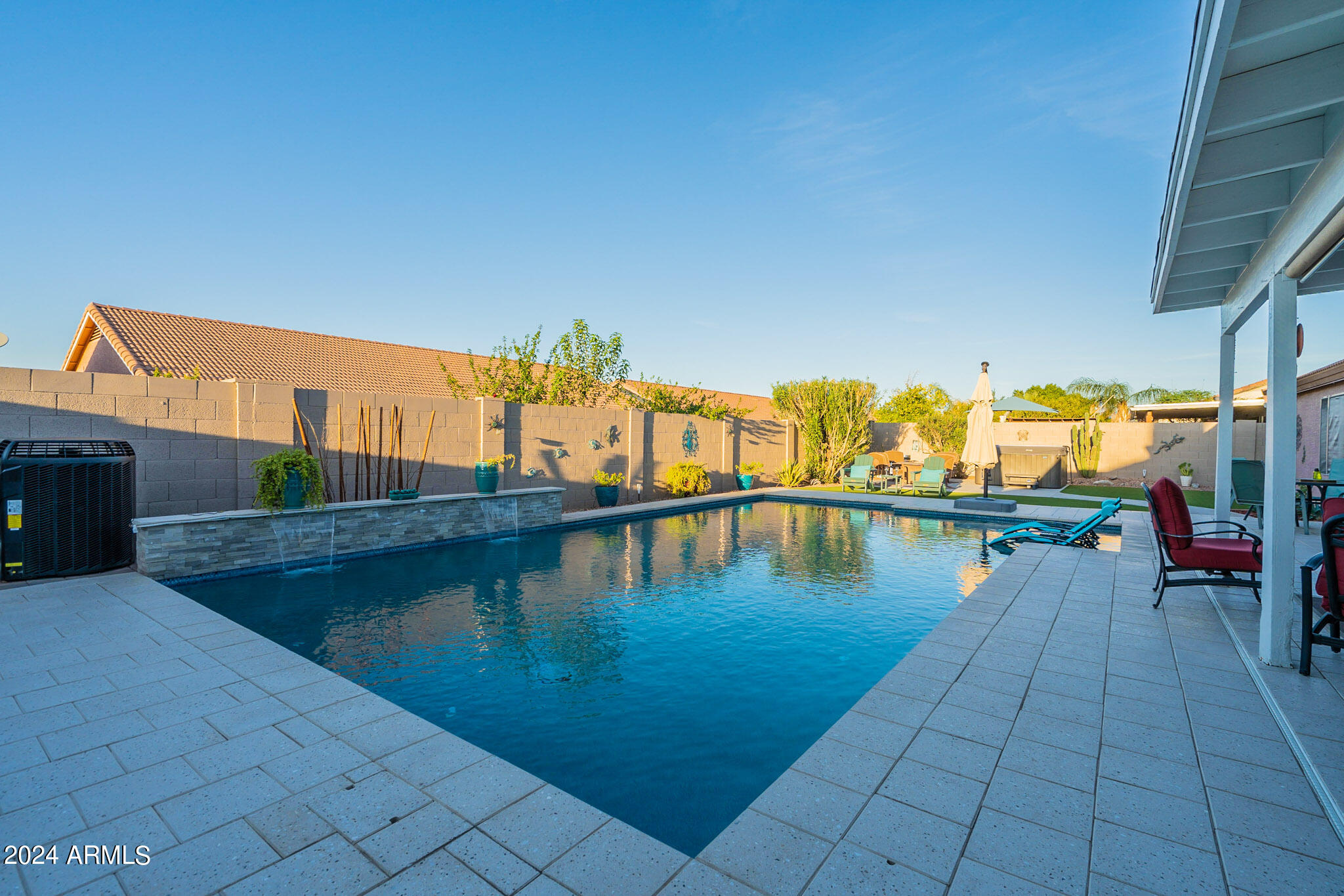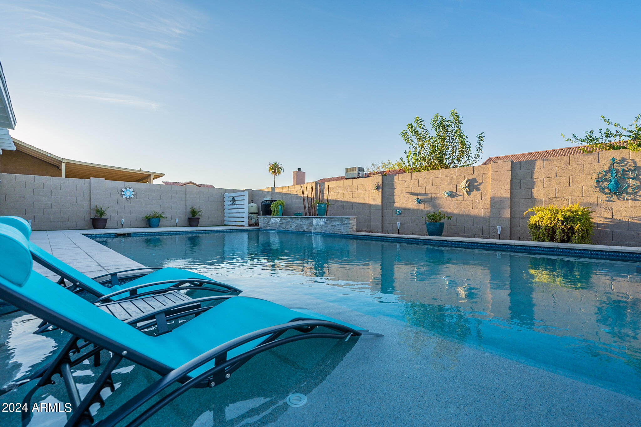 Beautiful and great curb appeal, this home has a resort-like backyard, 3 car garage and No HOA. Home can be purchased fully furnished with full price offer. It's immaculate, with no deferred maintenance, and in excellent condition. Custom 3-tone interior walls, a semi-open floor-plan, and classic travertine and wood laminate plank flooring throughout. The kitchen features large dining area, stainless steel appliances (gas stove), granite countertops and large island for prep-work/gathering. Front and backyard have low maintenance rock landscaping, including turf in the backyard, and newly installed above-ground heated spa. Of course, the main attraction is the heated pool, (supplement) Supplement: which is less than six years old. It has the following features: PebbleTec surface, Baja shelf, cascading waterfalls, sunken tiled barstools, and most importantly, an in-floor jet and vacuum self cleaning system. This cleaning system improves circulation, and reduces chemical and energy cost by as much as 30%. There's also a recently installed pool-side heat-pump, so the pool can be enjoyed year-round at a fraction of the cost of traditional systems. This place has quick and convenient proximity to grocery, restaurants, the forthcoming tram/rail system, as well as, Downtown Phoenix, Sky Harbor Airport and the freeway system.