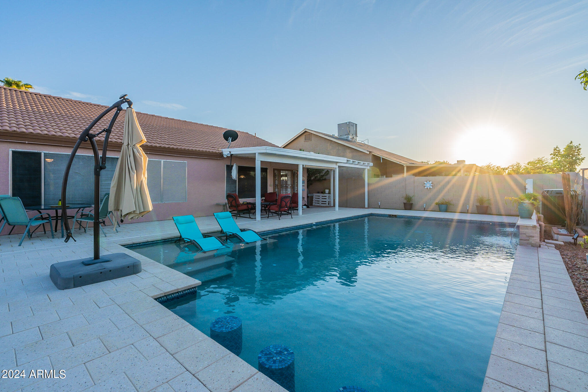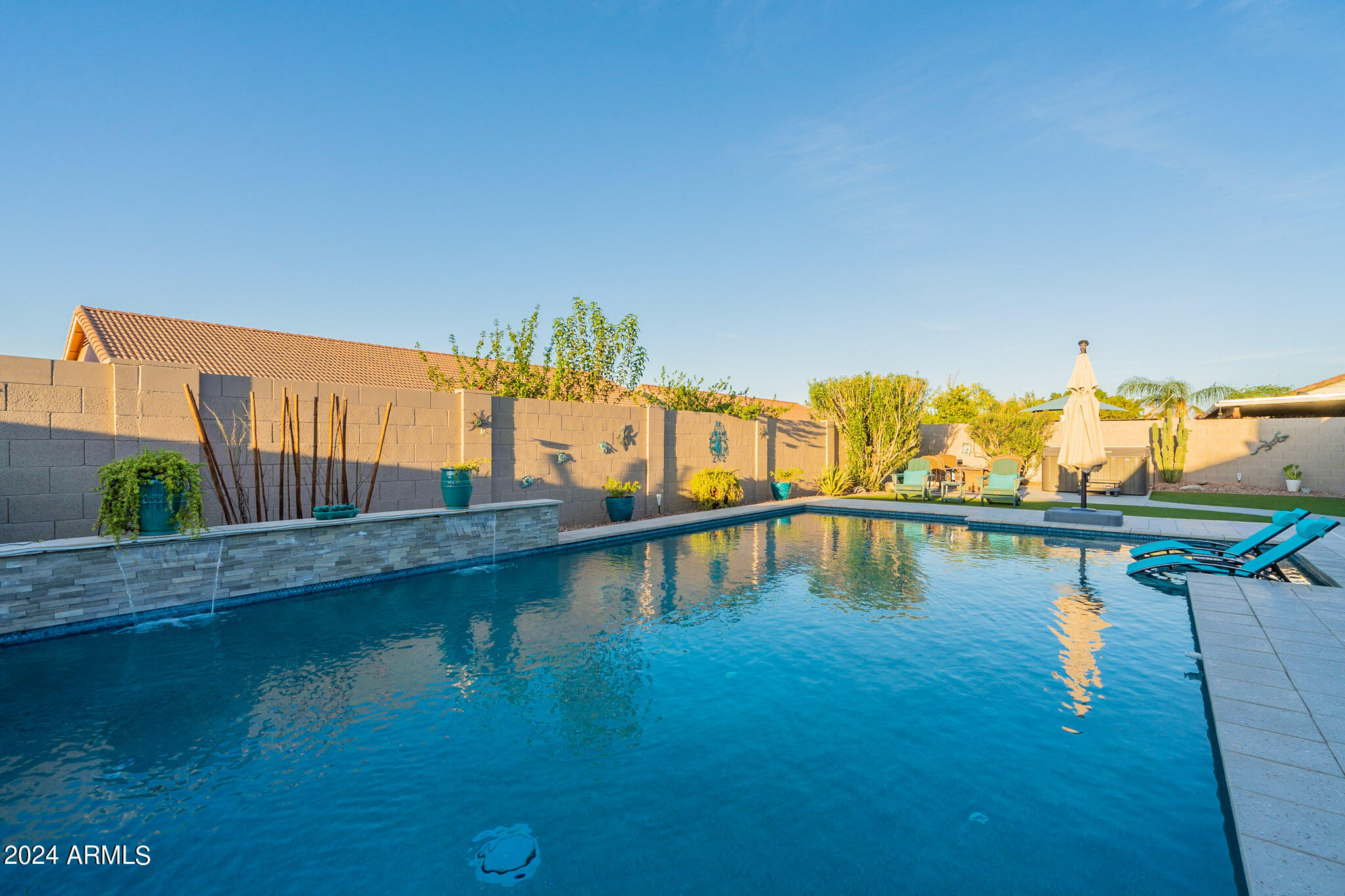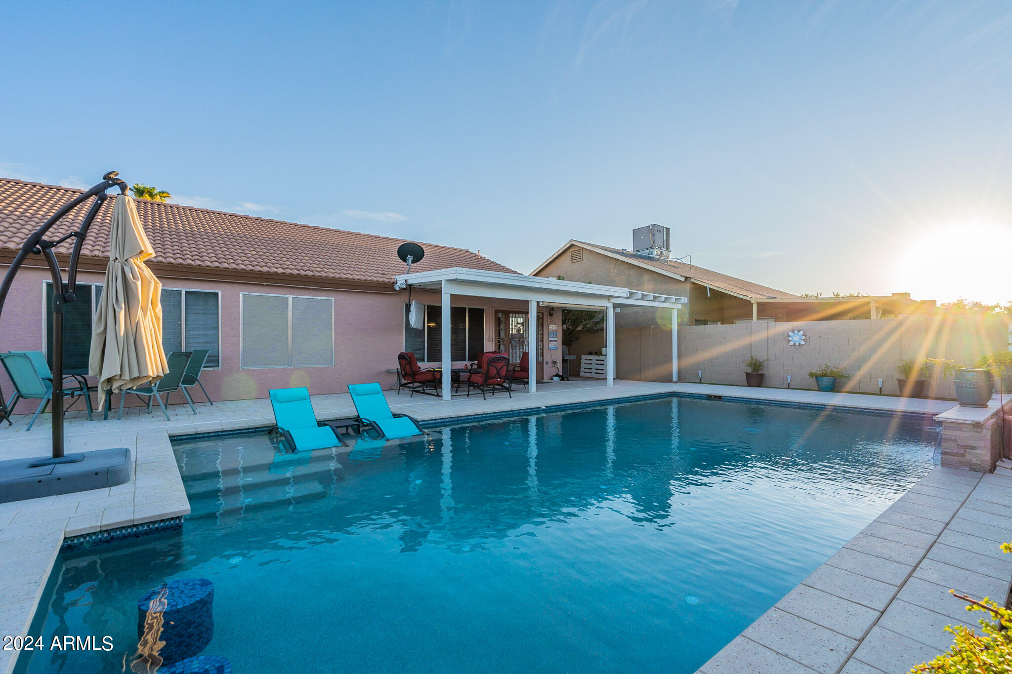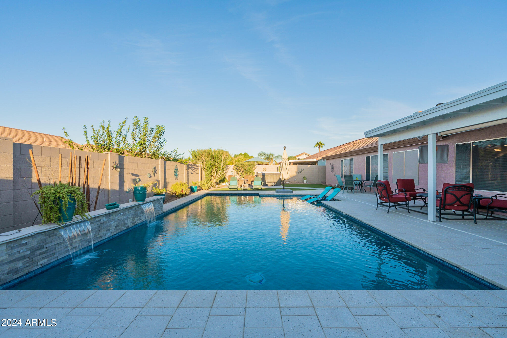 Beautiful and great curb appeal, this home has a resort-like backyard, 3 car garage and No HOA. Home can be purchased fully furnished with full price offer. It's immaculate, with no deferred maintenance, and in excellent condition. Custom 3-tone interior walls, a semi-open floor-plan, and classic travertine and wood laminate plank flooring throughout. The kitchen features large dining area, stainless steel appliances (gas stove), granite countertops and large island for prep-work/gathering. Front and backyard have low maintenance rock landscaping, including turf in the backyard, and newly installed above-ground heated spa. Of course, the main attraction is the heated pool, (supplement) Supplement: which is less than six years old. It has the following features: PebbleTec surface, Baja shelf, cascading waterfalls, sunken tiled barstools, and most importantly, an in-floor jet and vacuum self cleaning system. This cleaning system improves circulation, and reduces chemical and energy cost by as much as 30%. There's also a recently installed pool-side heat-pump, so the pool can be enjoyed year-round at a fraction of the cost of traditional systems. This place has quick and convenient proximity to grocery, restaurants, the forthcoming tram/rail system, as well as, Downtown Phoenix, Sky Harbor Airport and the freeway system.
