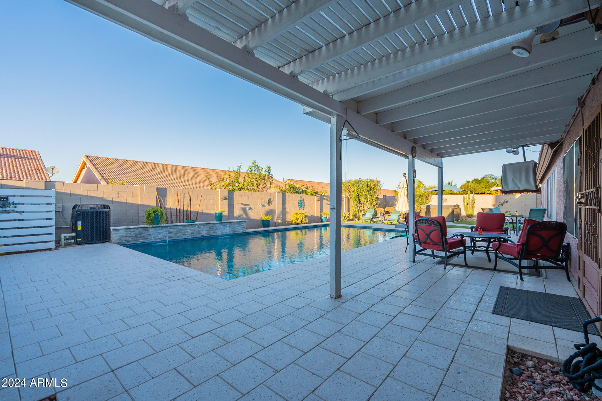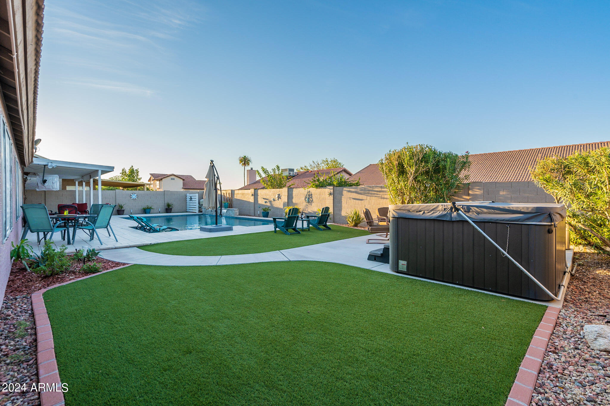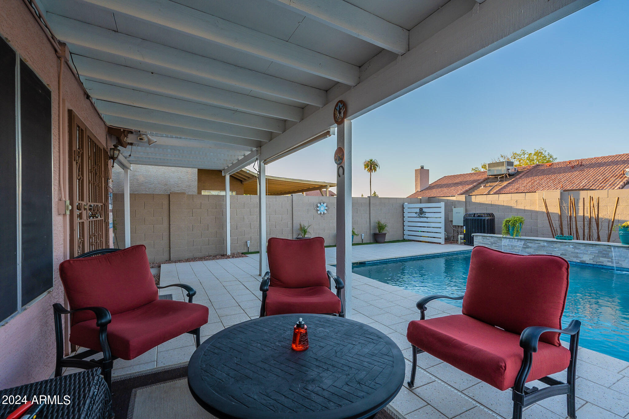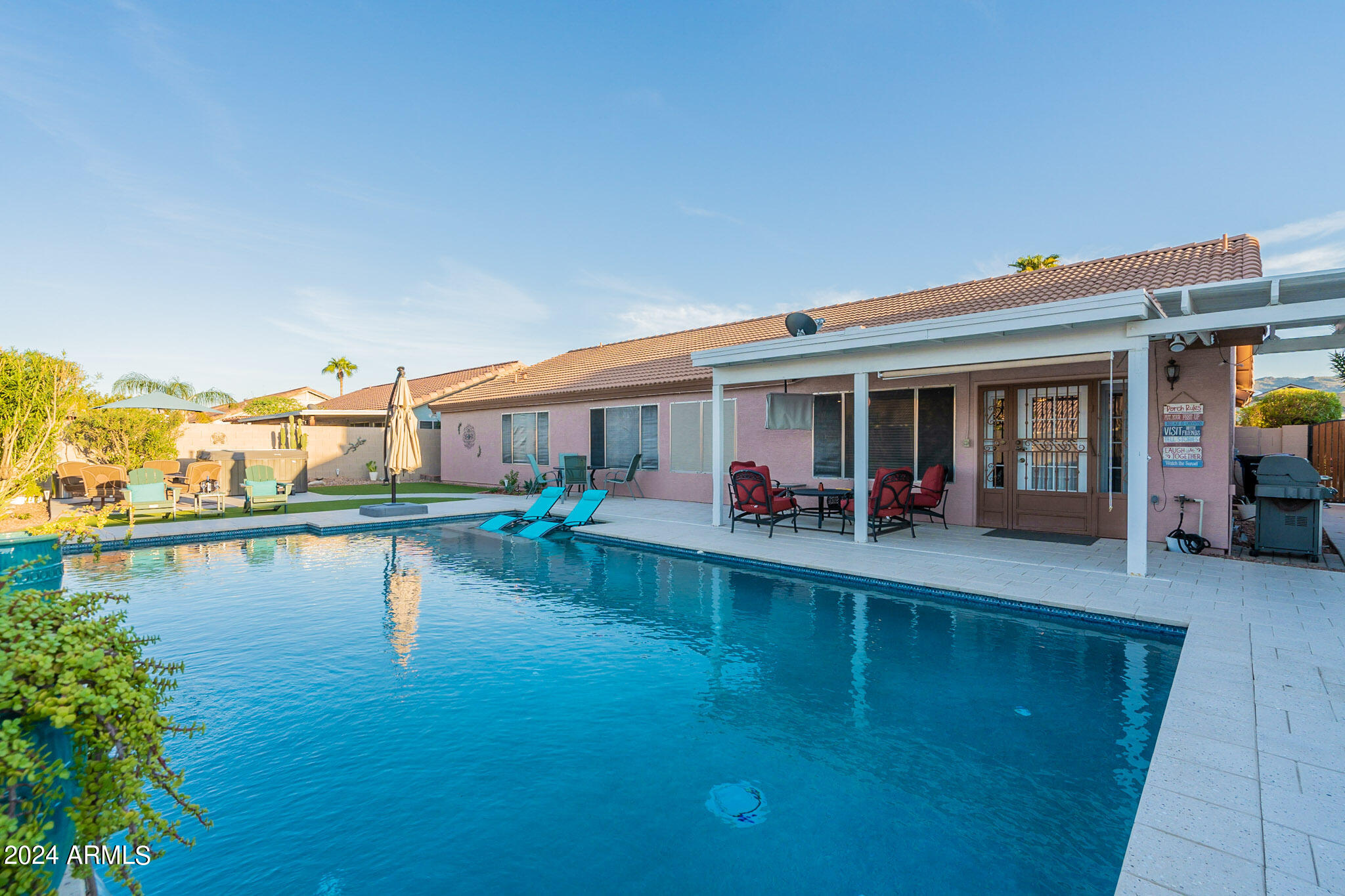 Beautiful and great curb appeal, this home has a resort-like backyard, 3 car garage and No HOA. Home can be purchased fully furnished with full price offer. It's immaculate, with no deferred maintenance, and in excellent condition. Custom 3-tone interior walls, a semi-open floor-plan, and classic travertine and wood laminate plank flooring throughout. The kitchen features large dining area, stainless steel appliances (gas stove), granite countertops and large island for prep-work/gathering. Front and backyard have low maintenance rock landscaping, including turf in the backyard, and newly installed above-ground heated spa. Of course, the main attraction is the heated pool, (supplement) Supplement: which is less than six years old. It has the following features: PebbleTec surface, Baja shelf, cascading waterfalls, sunken tiled barstools, and most importantly, an in-floor jet and vacuum self cleaning system. This cleaning system improves circulation, and reduces chemical and energy cost by as much as 30%. There's also a recently installed pool-side heat-pump, so the pool can be enjoyed year-round at a fraction of the cost of traditional systems. This place has quick and convenient proximity to grocery, restaurants, the forthcoming tram/rail system, as well as, Downtown Phoenix, Sky Harbor Airport and the freeway system.