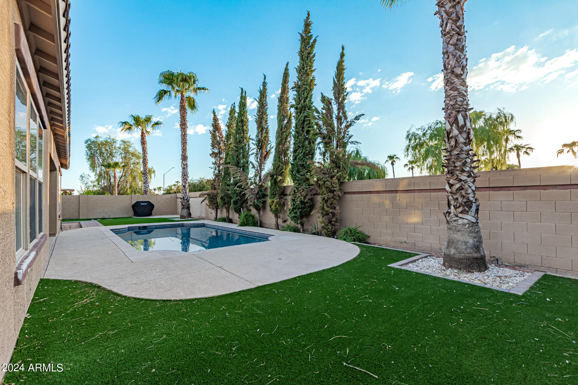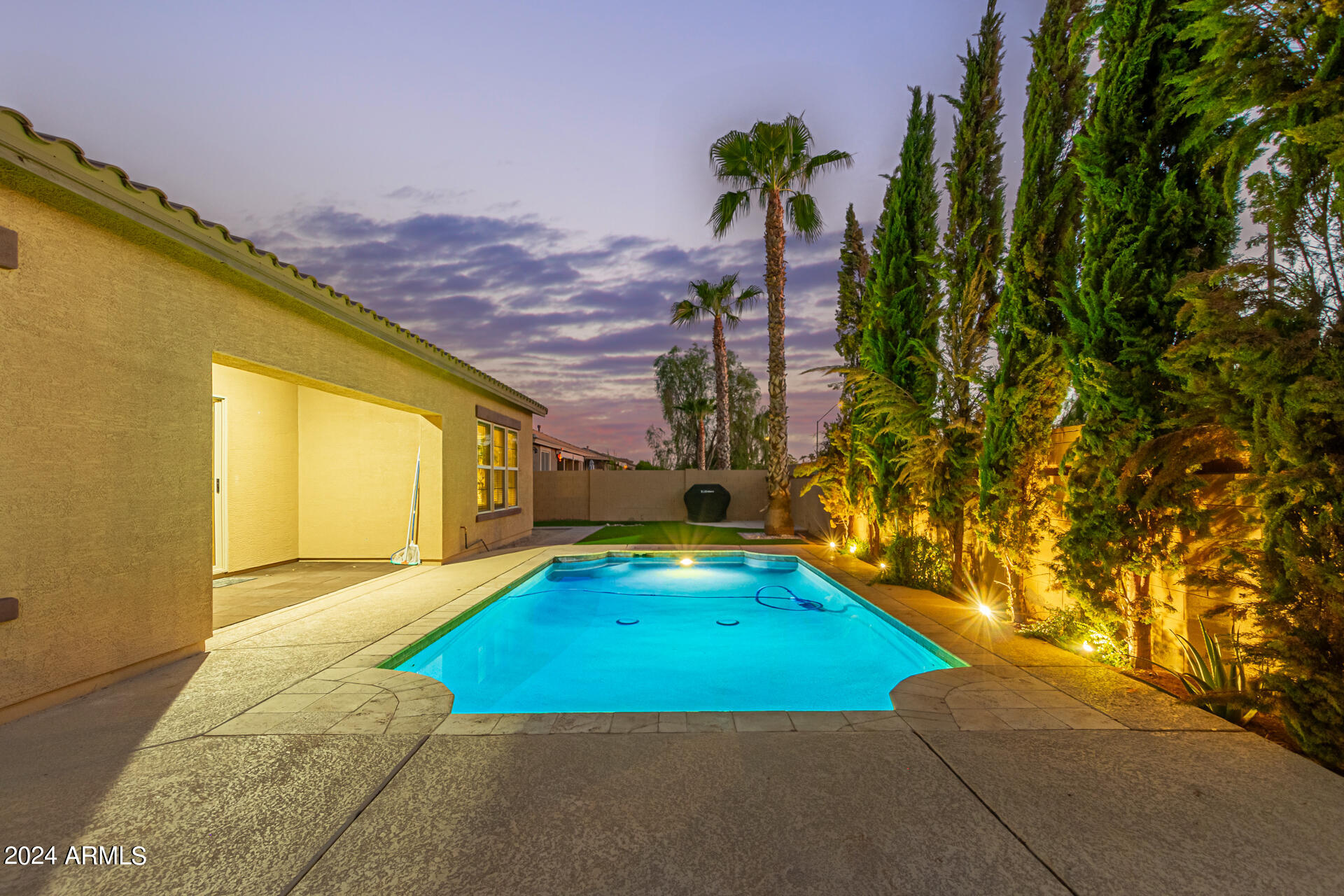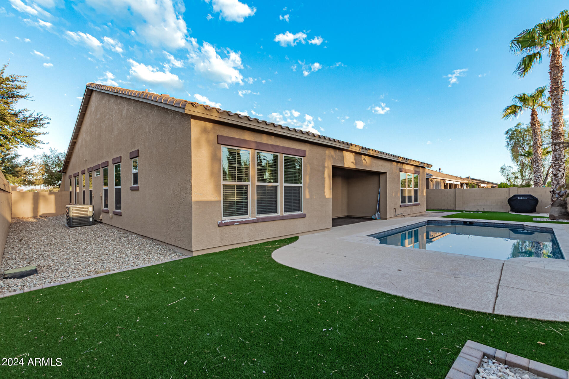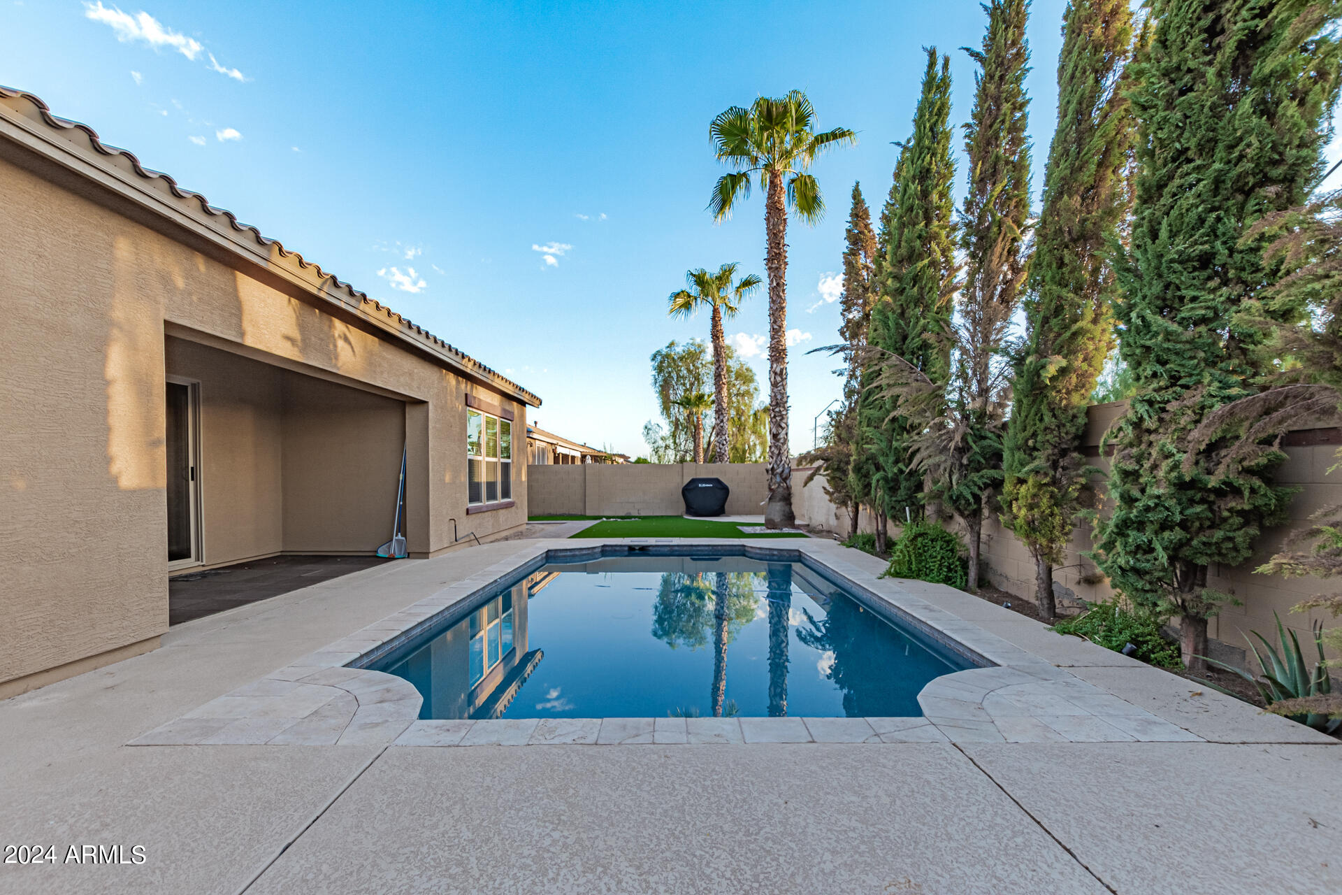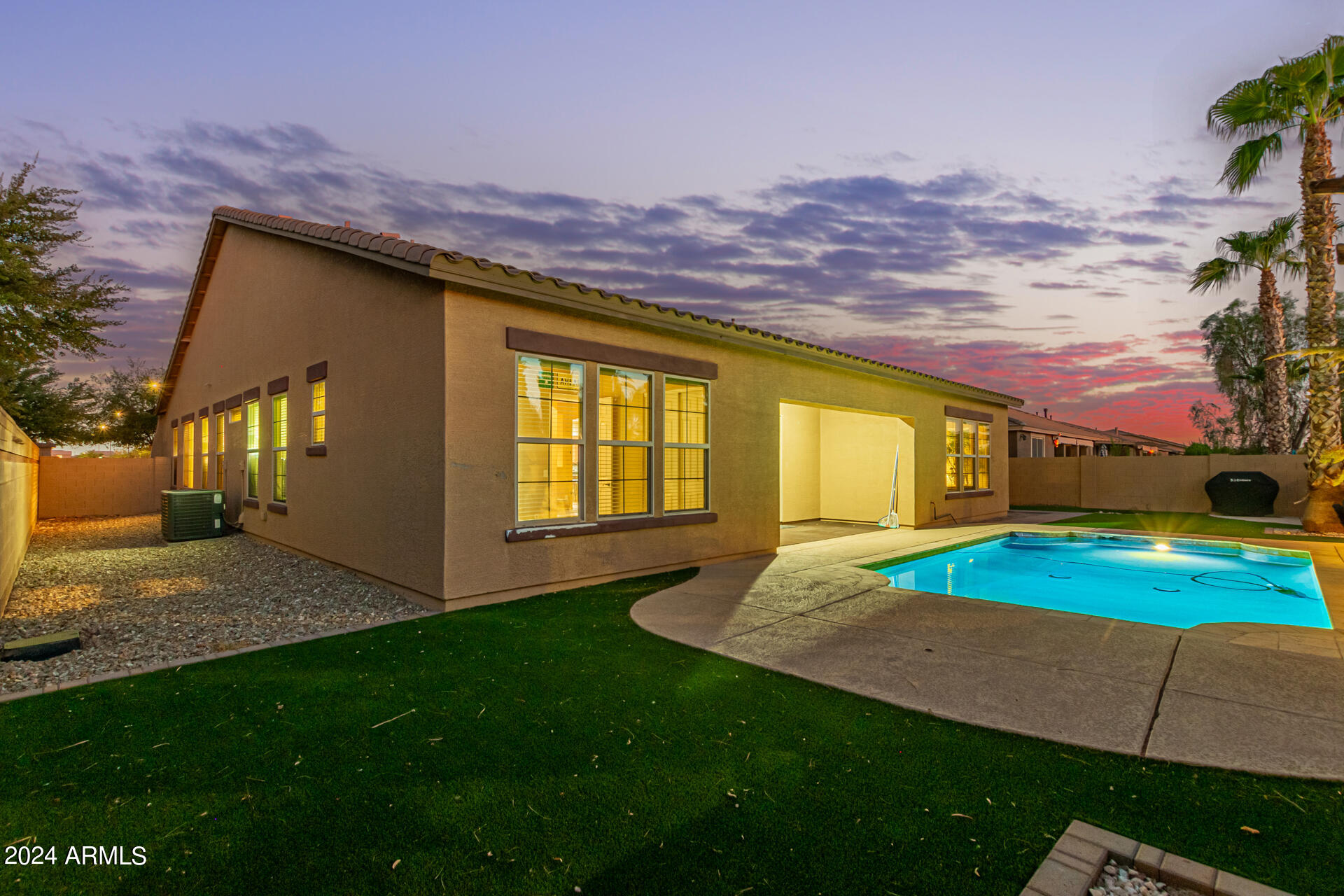 The primary suite is a true retreat, featuring a luxurious bath with a double vanity, a separate tub, and a shower. Bedroom 2 enjoys an adjoining bath, while Bedrooms 3 and 4 conveniently share a Jack-and-Jill bathroom, ensuring privacy and comfort for all. The home also includes a versatile den/ office space, perfect for working from home or relaxing. 3car The 3-car tandem garage provides plenty of room for vehicles and storage. Step outside to a beautifully landscaped, low-maintenance backyard with synthetic grass and a sparkling pool, creating a serene space to unwind. Ideally located close to shopping, freeway access (303 and I-10), and just minutes from downtown Phoenix, this home offers both convenience and luxury living.
