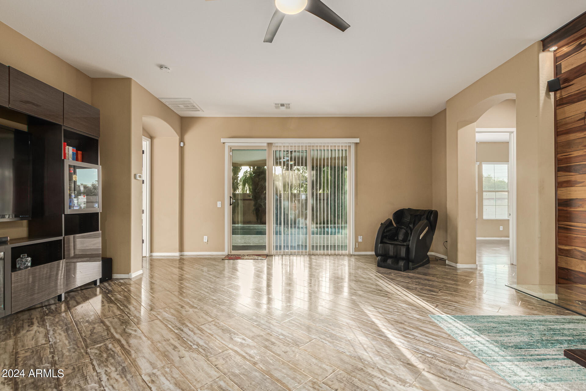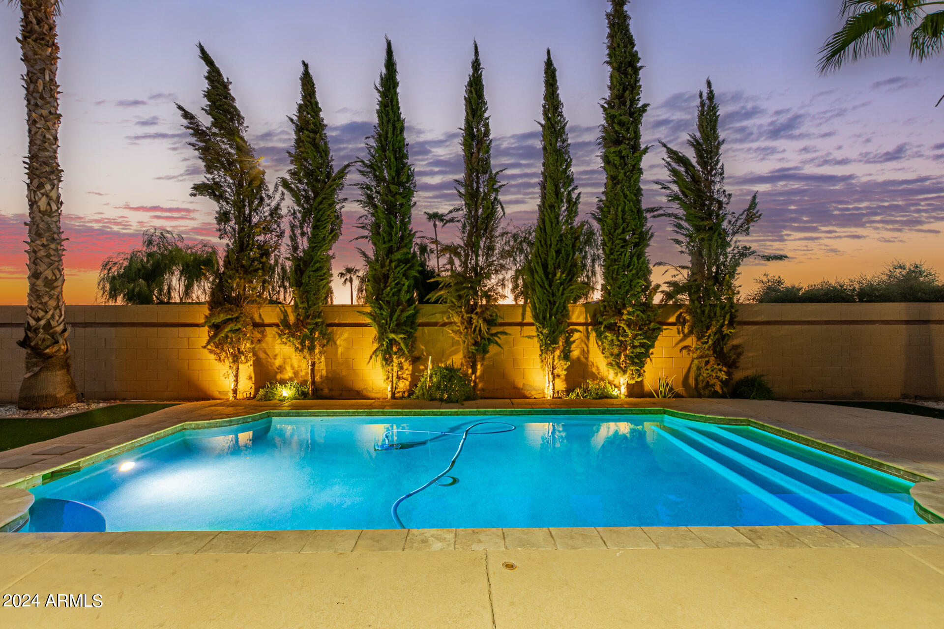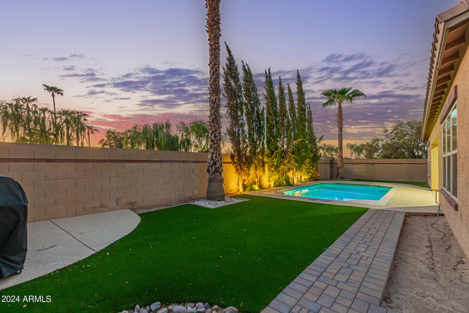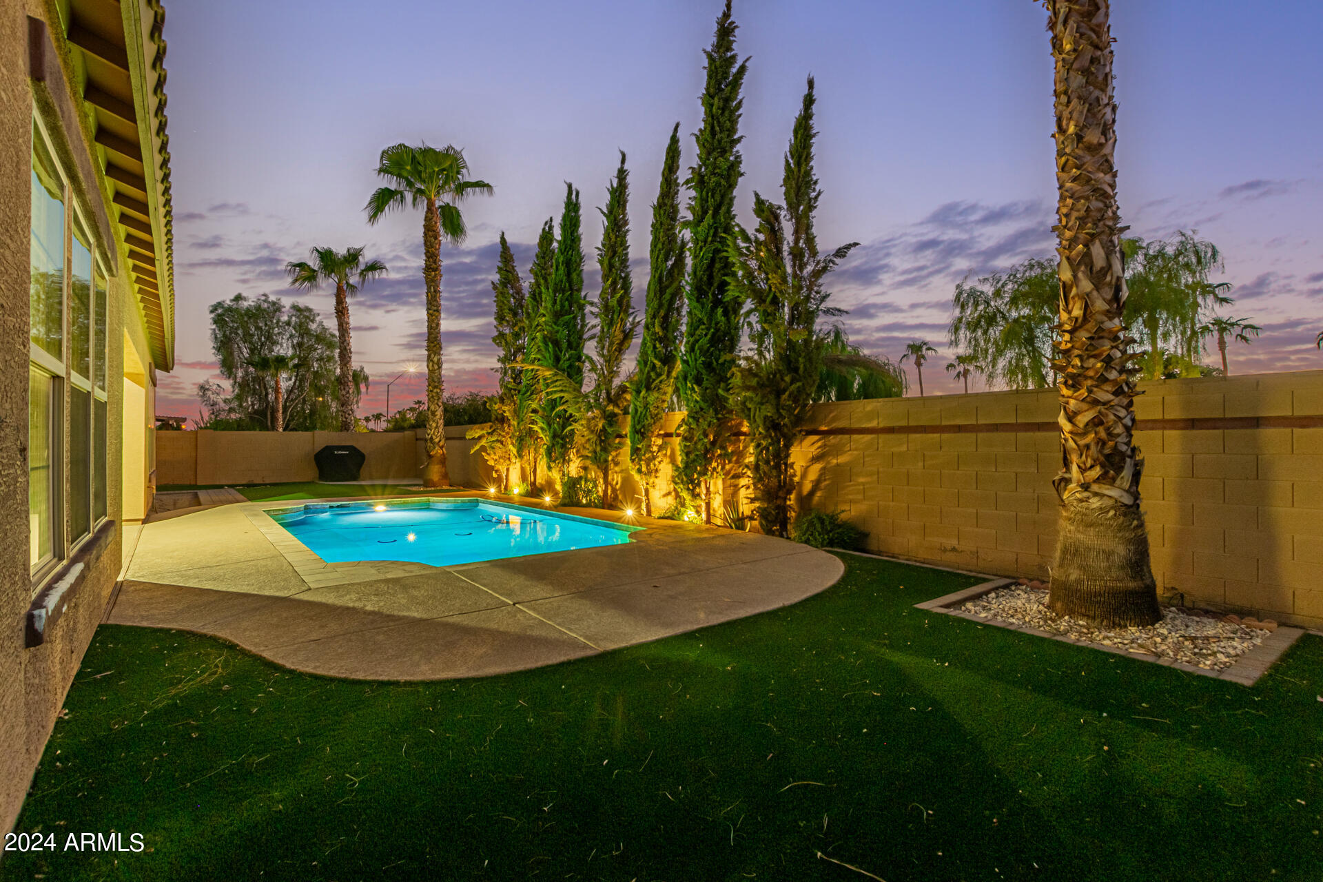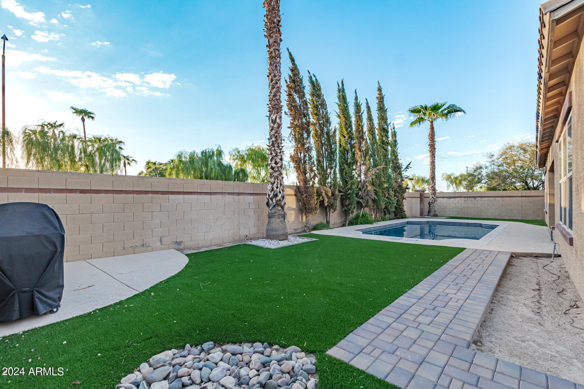 The primary suite is a true retreat, featuring a luxurious bath with a double vanity, a separate tub, and a shower. Bedroom 2 enjoys an adjoining bath, while Bedrooms 3 and 4 conveniently share a Jack-and-Jill bathroom, ensuring privacy and comfort for all. The home also includes a versatile den/ office space, perfect for working from home or relaxing. 3car The 3-car tandem garage provides plenty of room for vehicles and storage. Step outside to a beautifully landscaped, low-maintenance backyard with synthetic grass and a sparkling pool, creating a serene space to unwind. Ideally located close to shopping, freeway access (303 and I-10), and just minutes from downtown Phoenix, this home offers both convenience and luxury living.