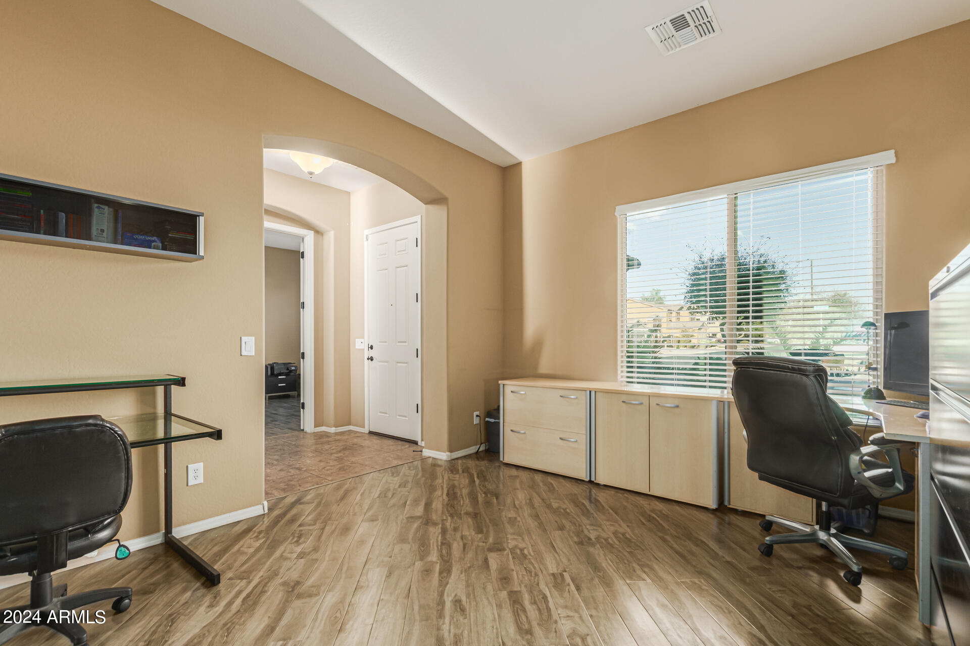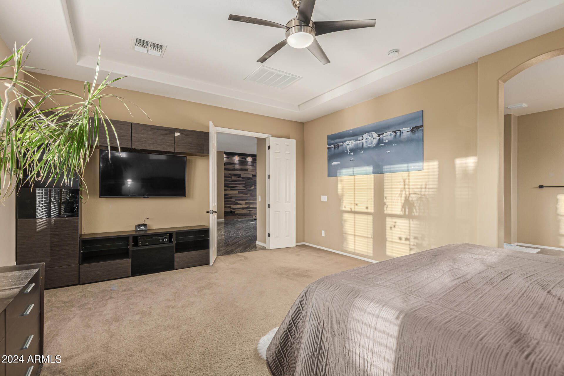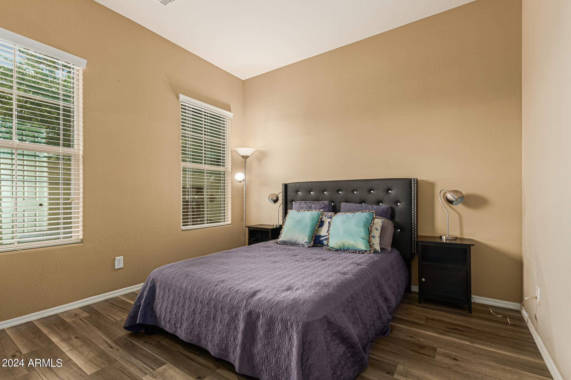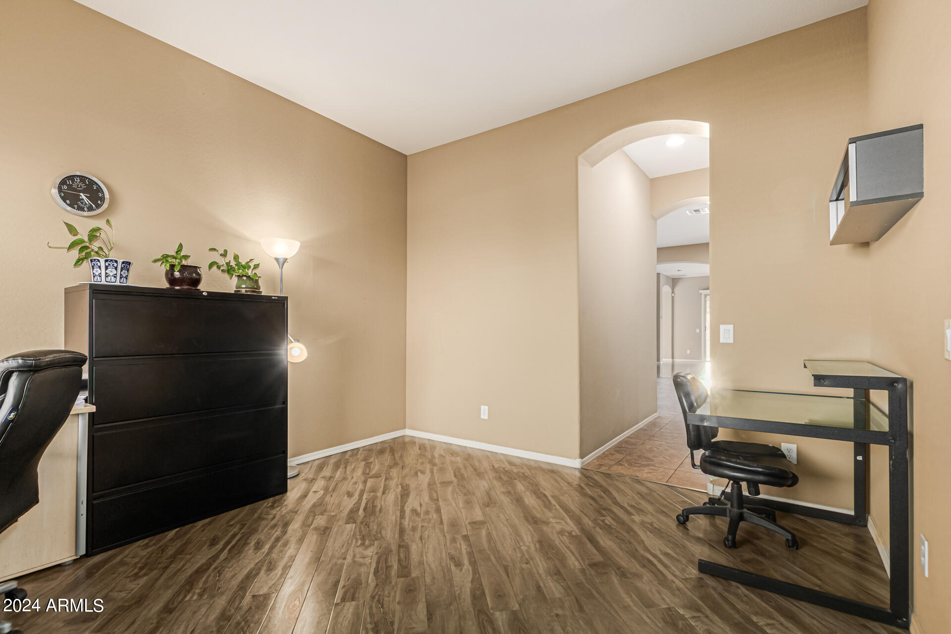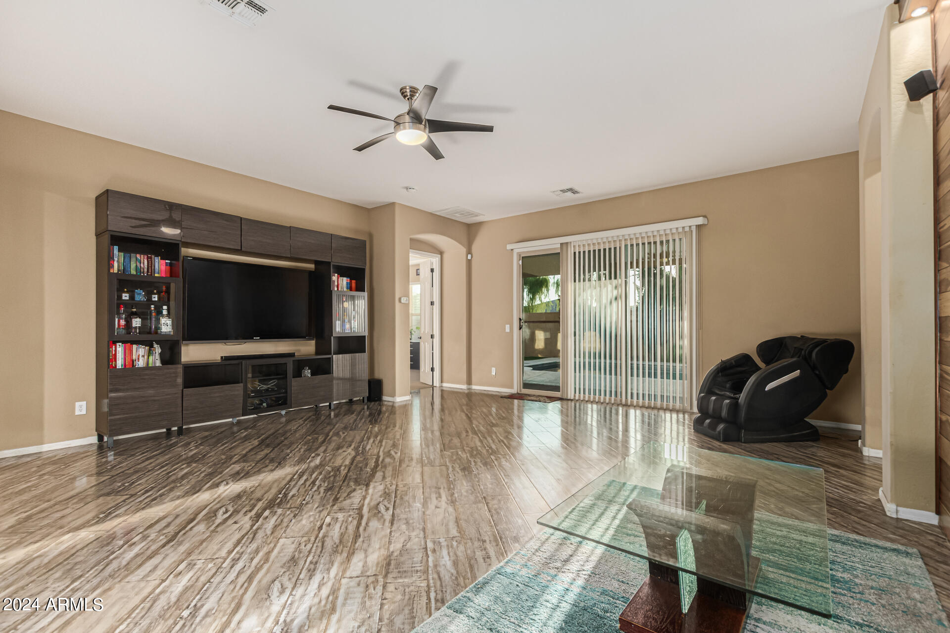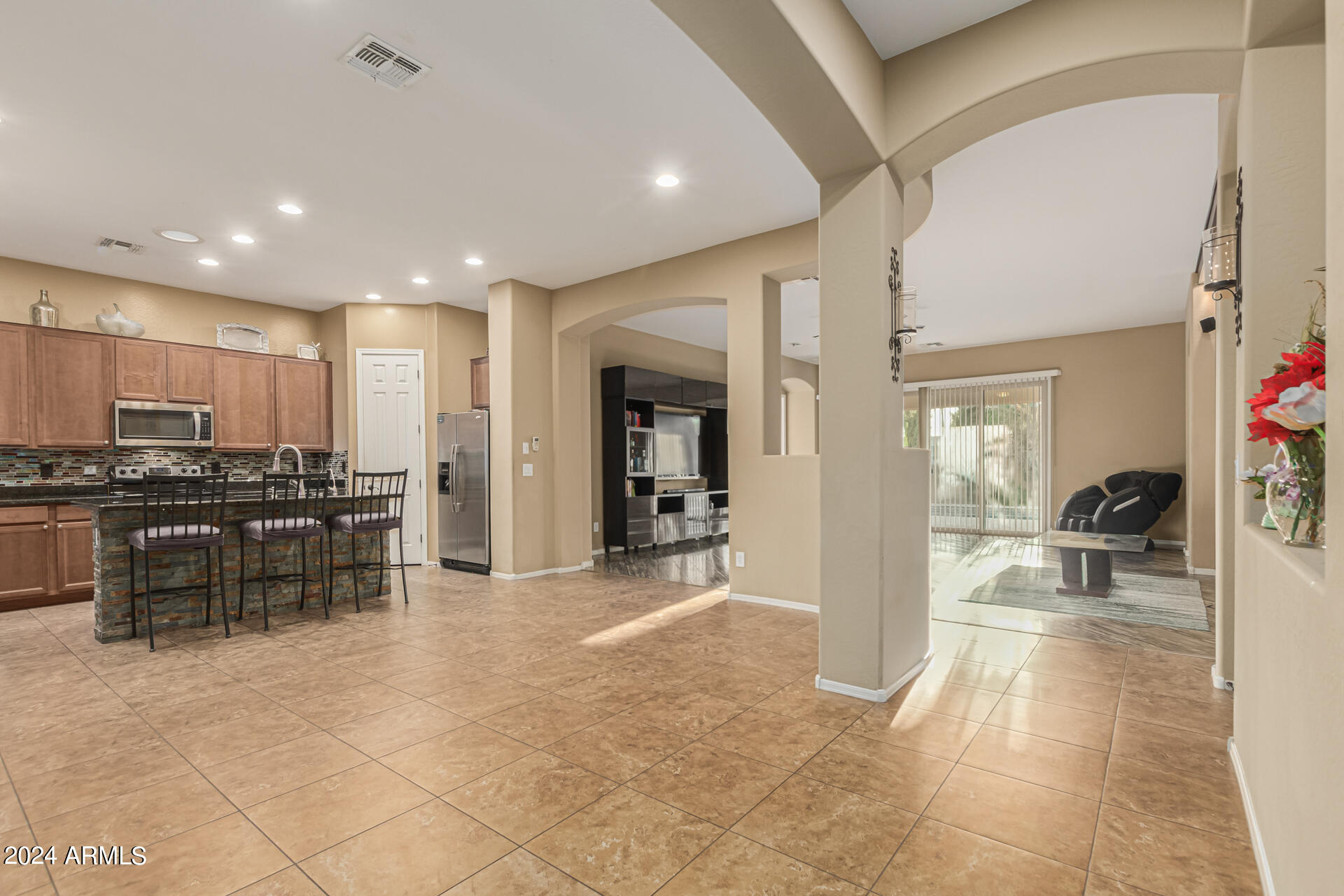 The primary suite is a true retreat, featuring a luxurious bath with a double vanity, a separate tub, and a shower. Bedroom 2 enjoys an adjoining bath, while Bedrooms 3 and 4 conveniently share a Jack-and-Jill bathroom, ensuring privacy and comfort for all. The home also includes a versatile den/ office space, perfect for working from home or relaxing. 3car The 3-car tandem garage provides plenty of room for vehicles and storage. Step outside to a beautifully landscaped, low-maintenance backyard with synthetic grass and a sparkling pool, creating a serene space to unwind. Ideally located close to shopping, freeway access (303 and I-10), and just minutes from downtown Phoenix, this home offers both convenience and luxury living.