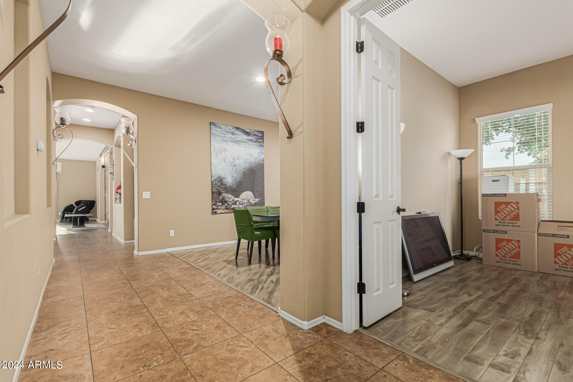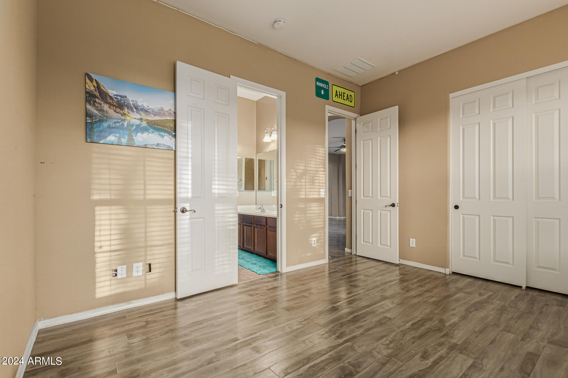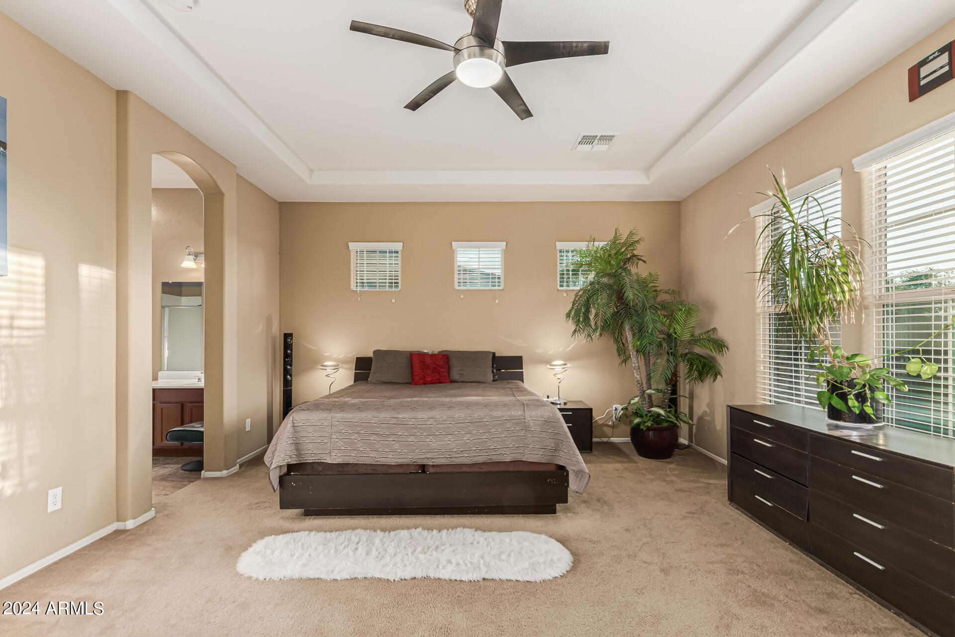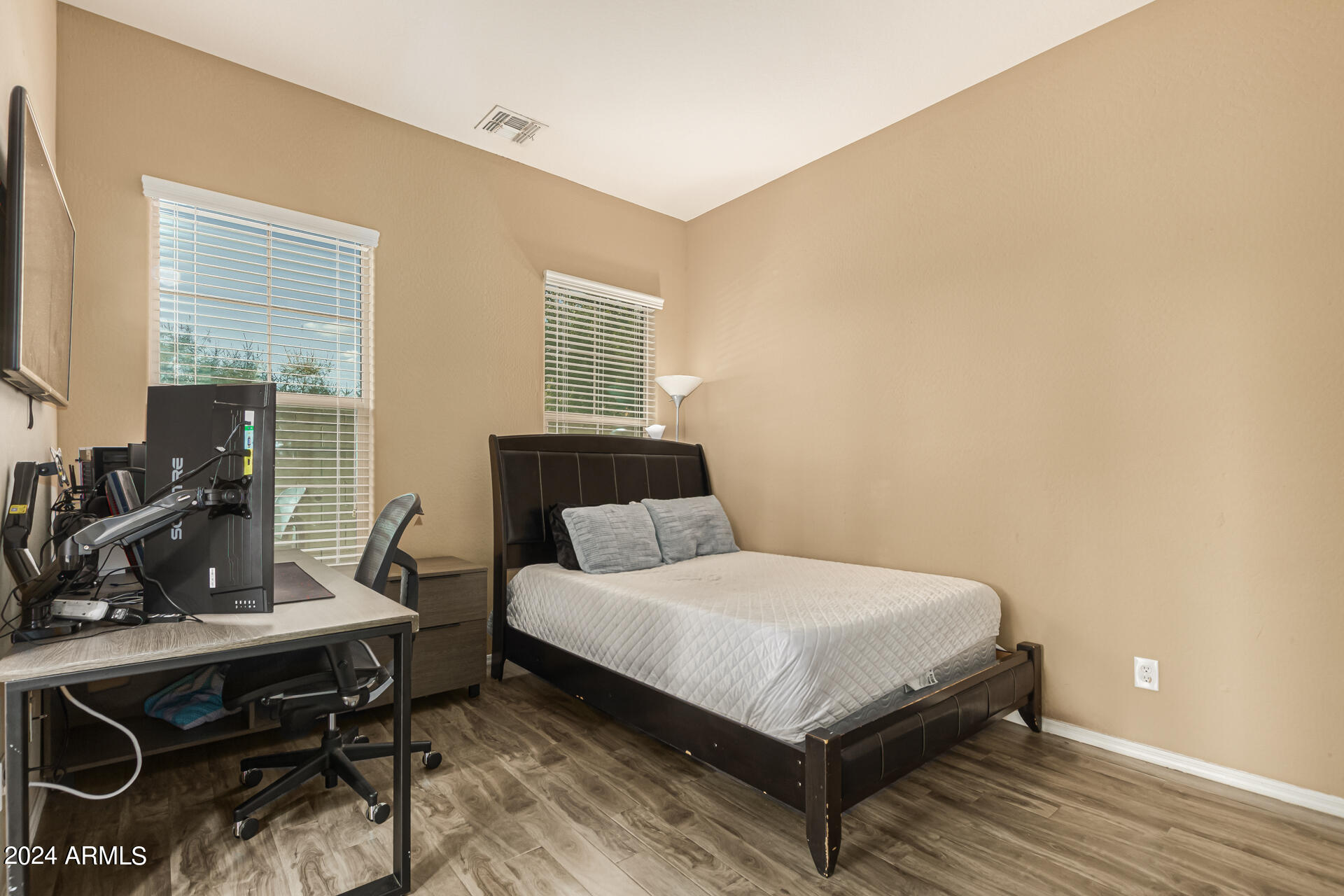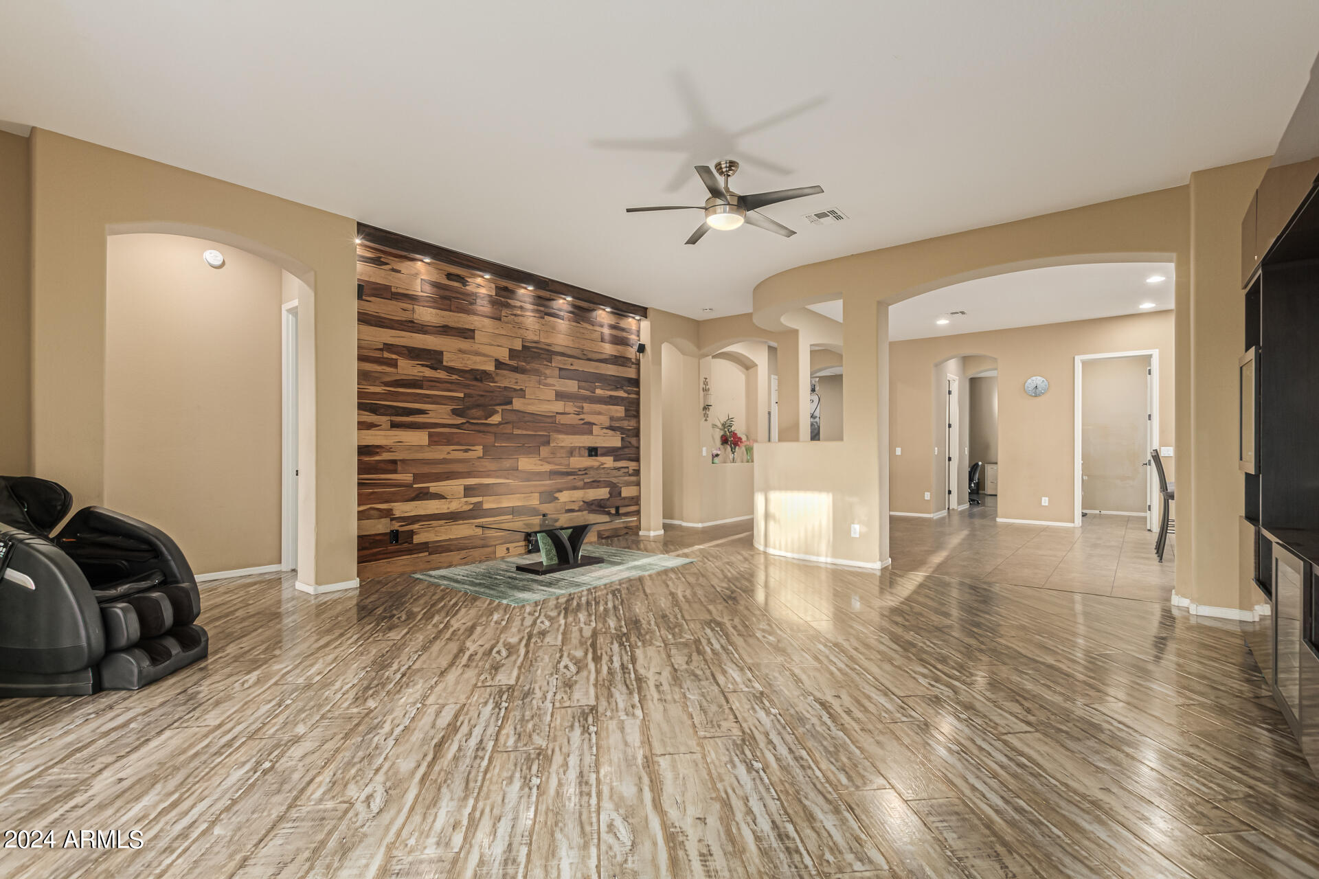 The primary suite is a true retreat, featuring a luxurious bath with a double vanity, a separate tub, and a shower. Bedroom 2 enjoys an adjoining bath, while Bedrooms 3 and 4 conveniently share a Jack-and-Jill bathroom, ensuring privacy and comfort for all. The home also includes a versatile den/ office space, perfect for working from home or relaxing. 3car The 3-car tandem garage provides plenty of room for vehicles and storage. Step outside to a beautifully landscaped, low-maintenance backyard with synthetic grass and a sparkling pool, creating a serene space to unwind. Ideally located close to shopping, freeway access (303 and I-10), and just minutes from downtown Phoenix, this home offers both convenience and luxury living.