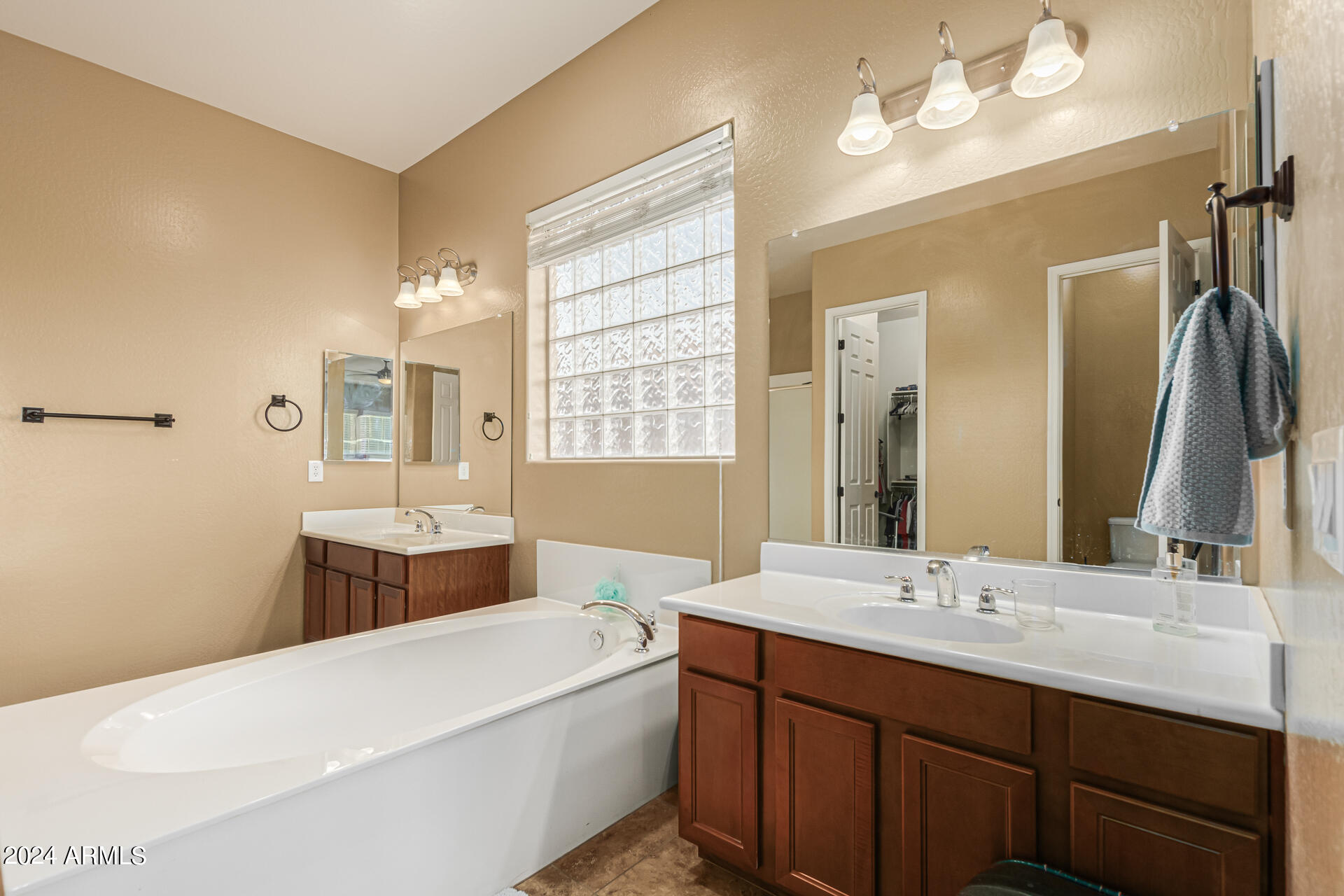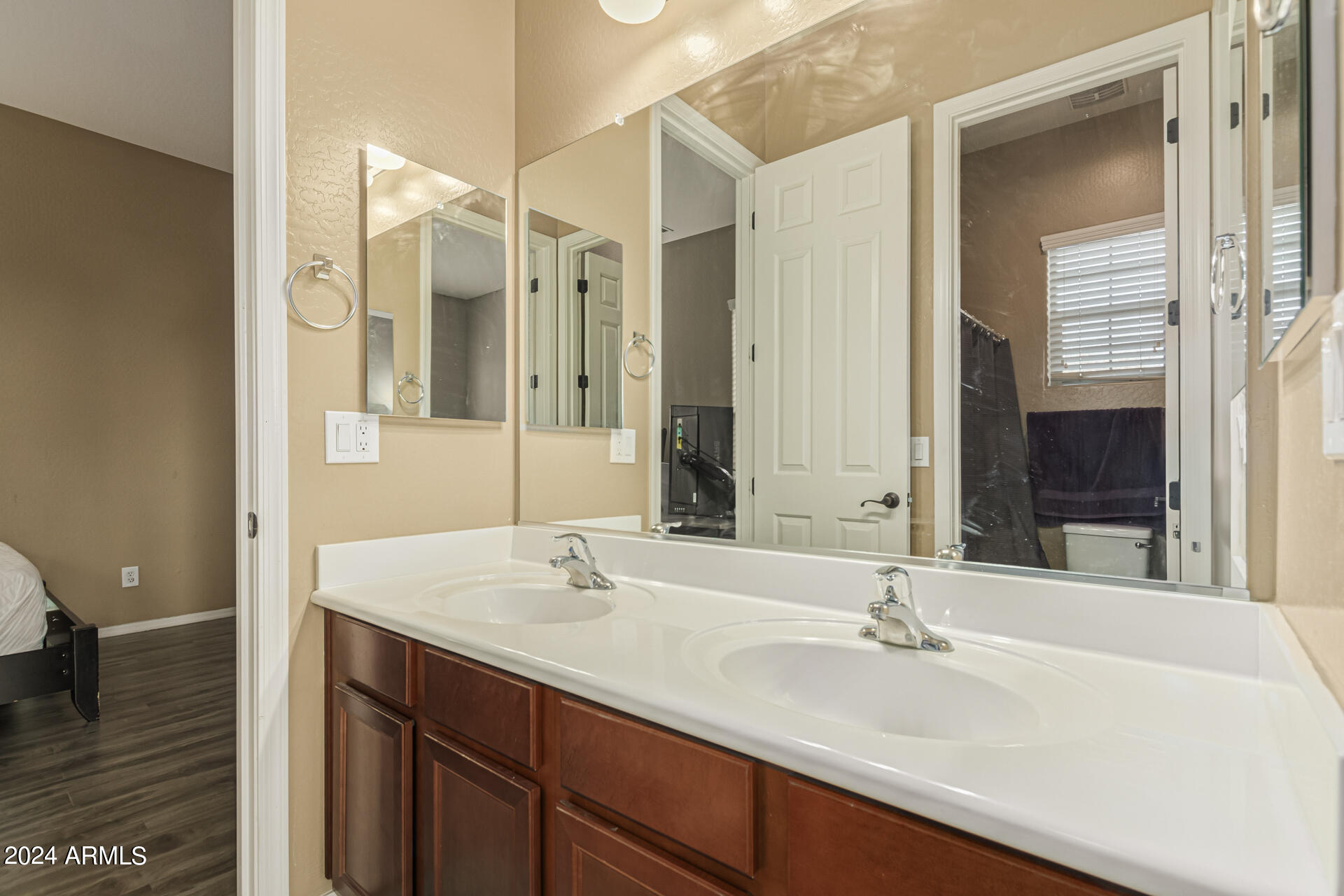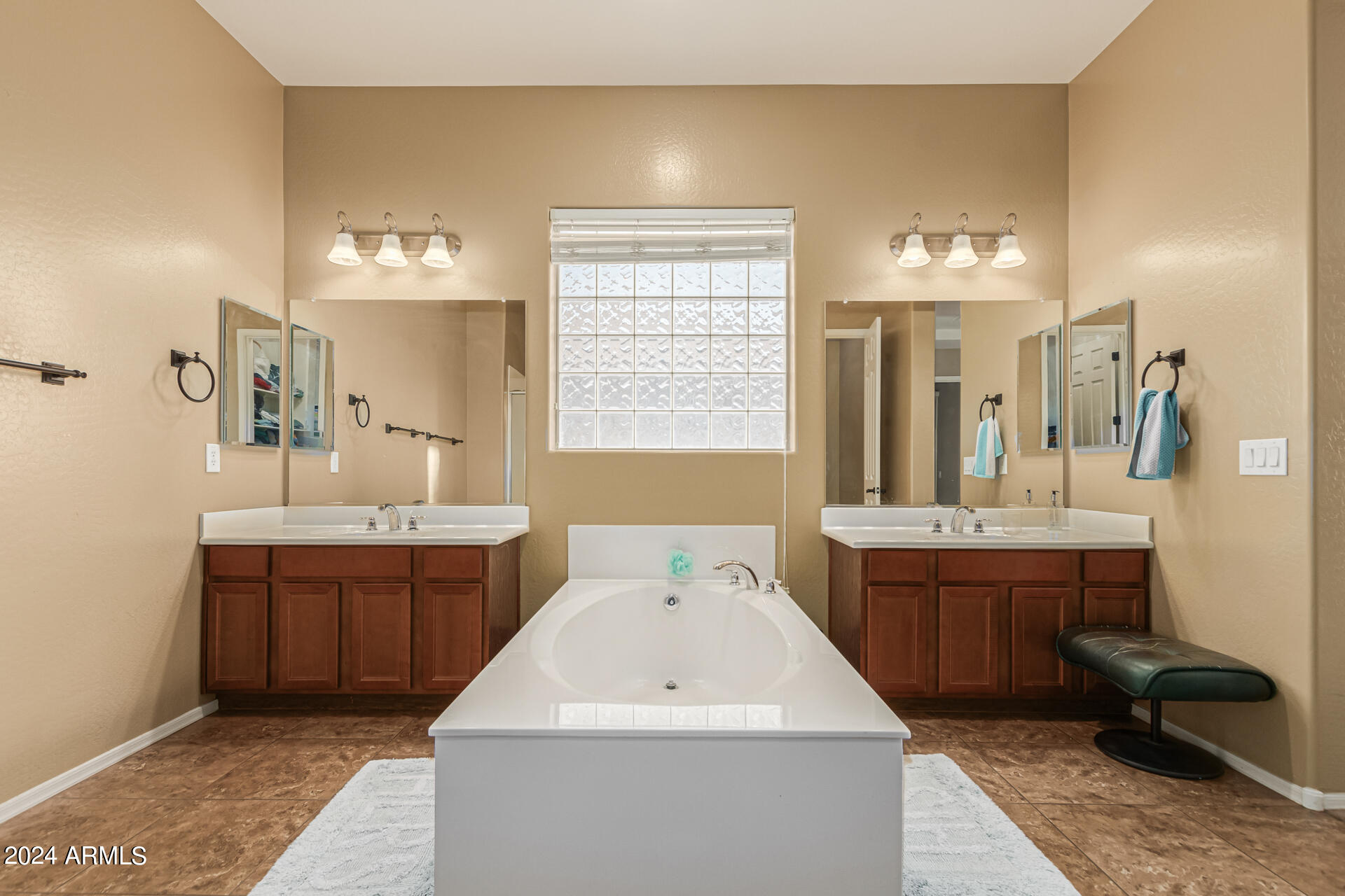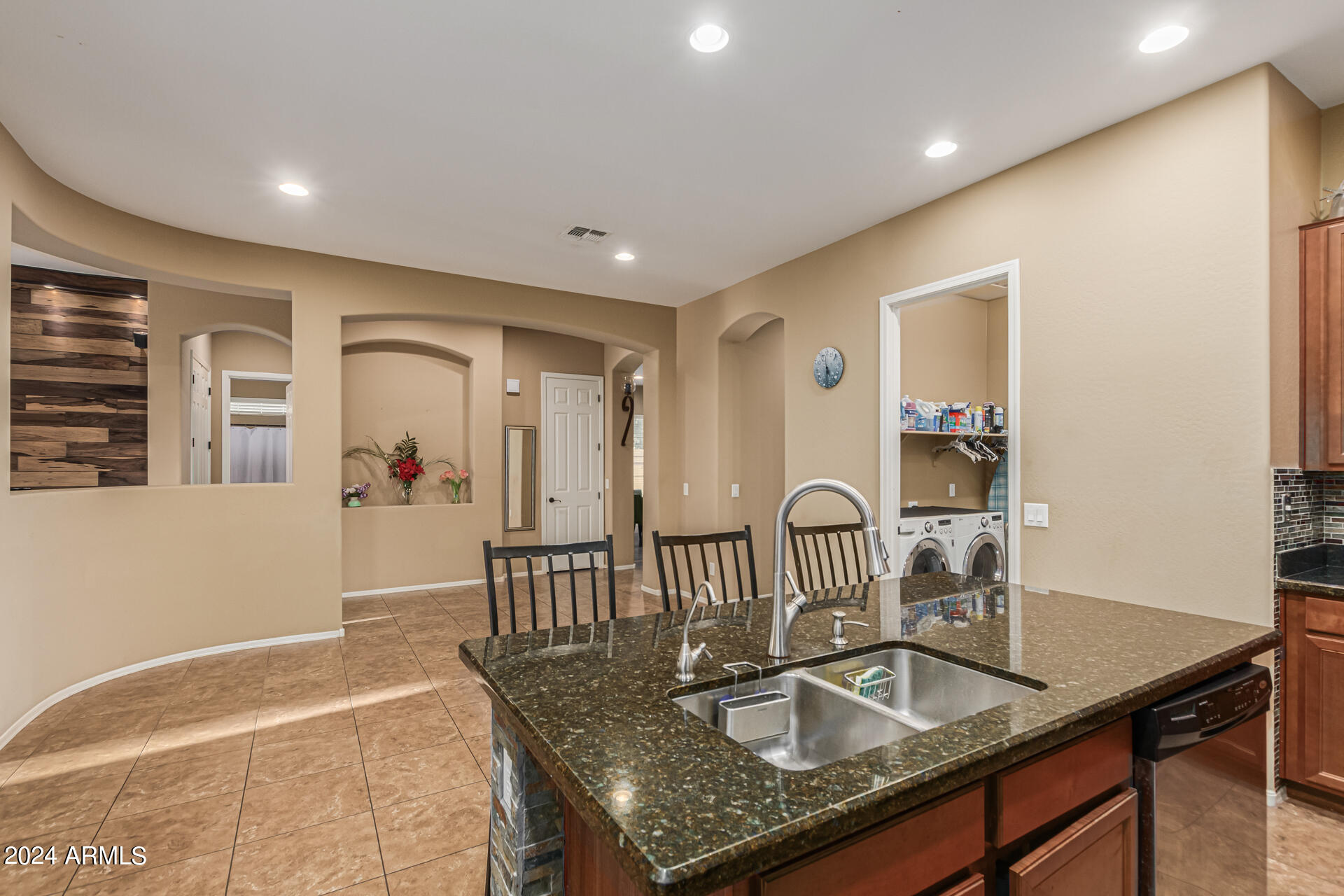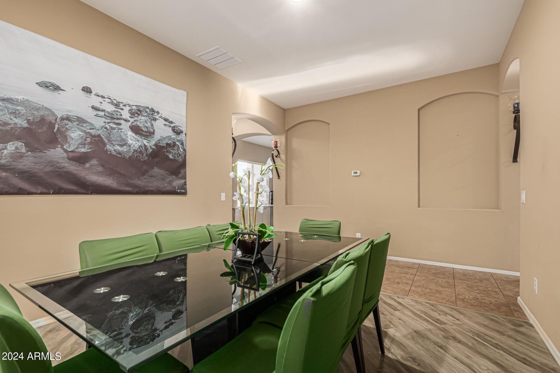 The primary suite is a true retreat, featuring a luxurious bath with a double vanity, a separate tub, and a shower. Bedroom 2 enjoys an adjoining bath, while Bedrooms 3 and 4 conveniently share a Jack-and-Jill bathroom, ensuring privacy and comfort for all. The home also includes a versatile den/ office space, perfect for working from home or relaxing. 3car The 3-car tandem garage provides plenty of room for vehicles and storage. Step outside to a beautifully landscaped, low-maintenance backyard with synthetic grass and a sparkling pool, creating a serene space to unwind. Ideally located close to shopping, freeway access (303 and I-10), and just minutes from downtown Phoenix, this home offers both convenience and luxury living.