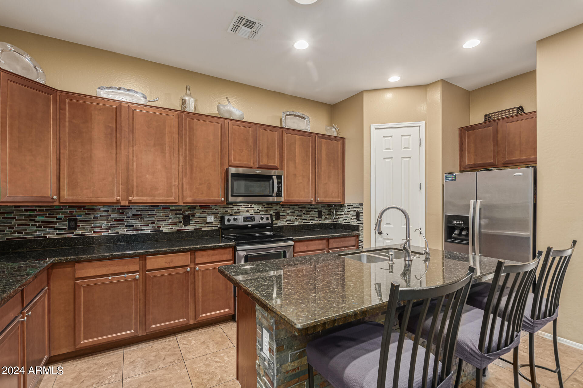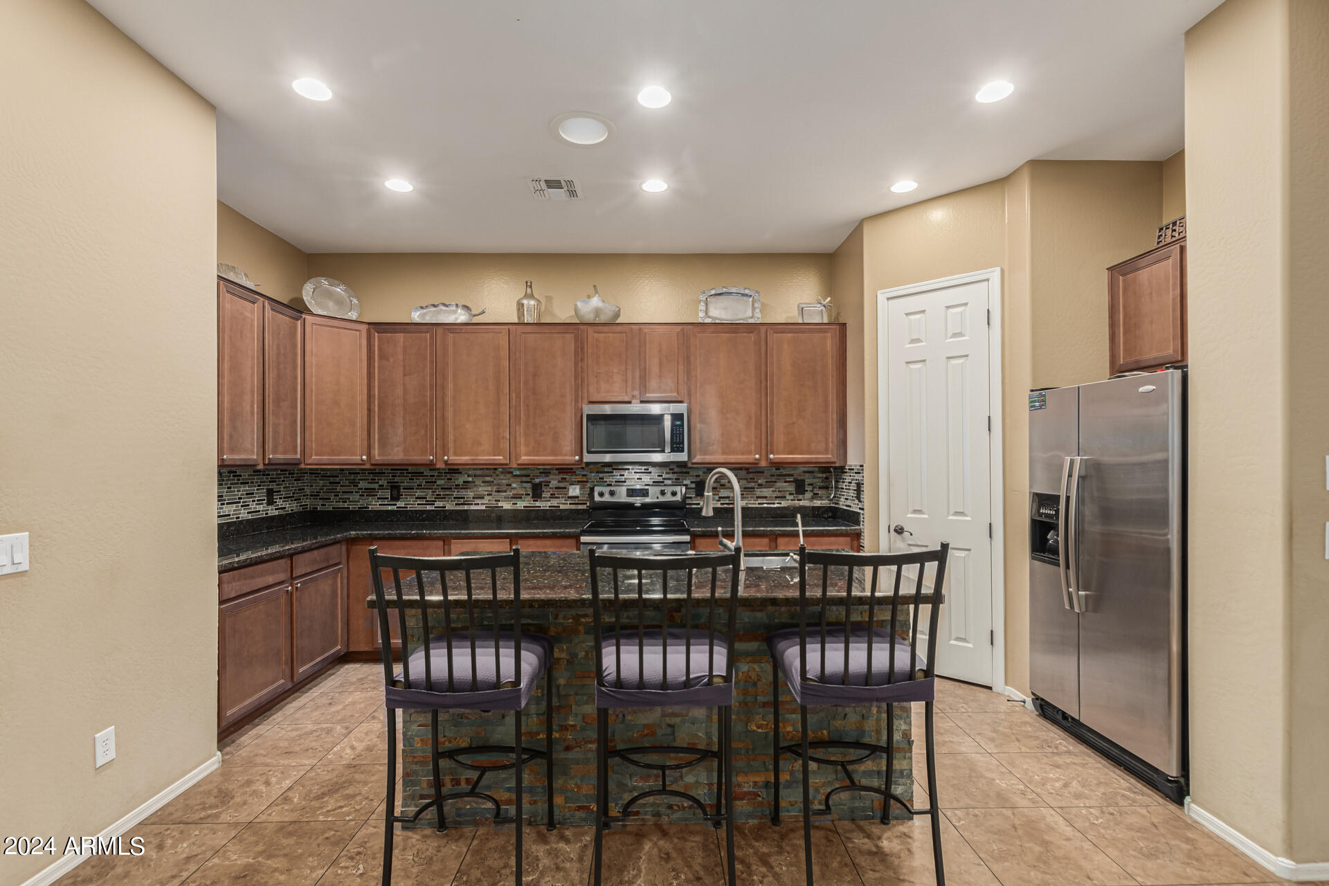 This STUNNING 4-bedroom, 3.5-bathroom home spans 2,959 square feet, offering a luxurious and open split floor plan perfect for modern living. The spacious kitchen boasts elegant spice maple cabinetry, gleaming granite countertops, and stainless steel appliances, ideal for both everyday meals and entertaining. A walk-in pantry provides ample storage, and the combination of tile and wood flooring adds sophistication throughout the home.
