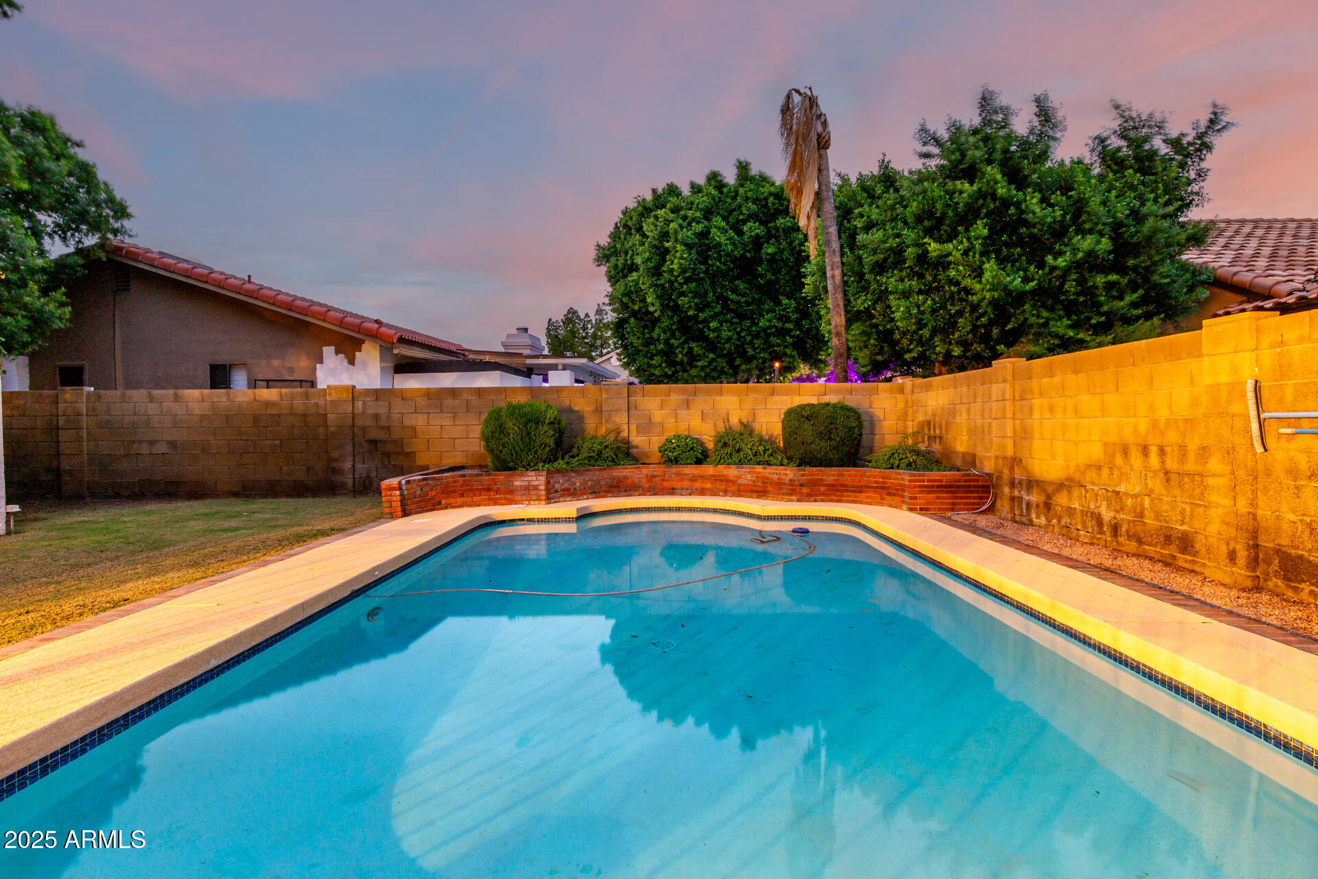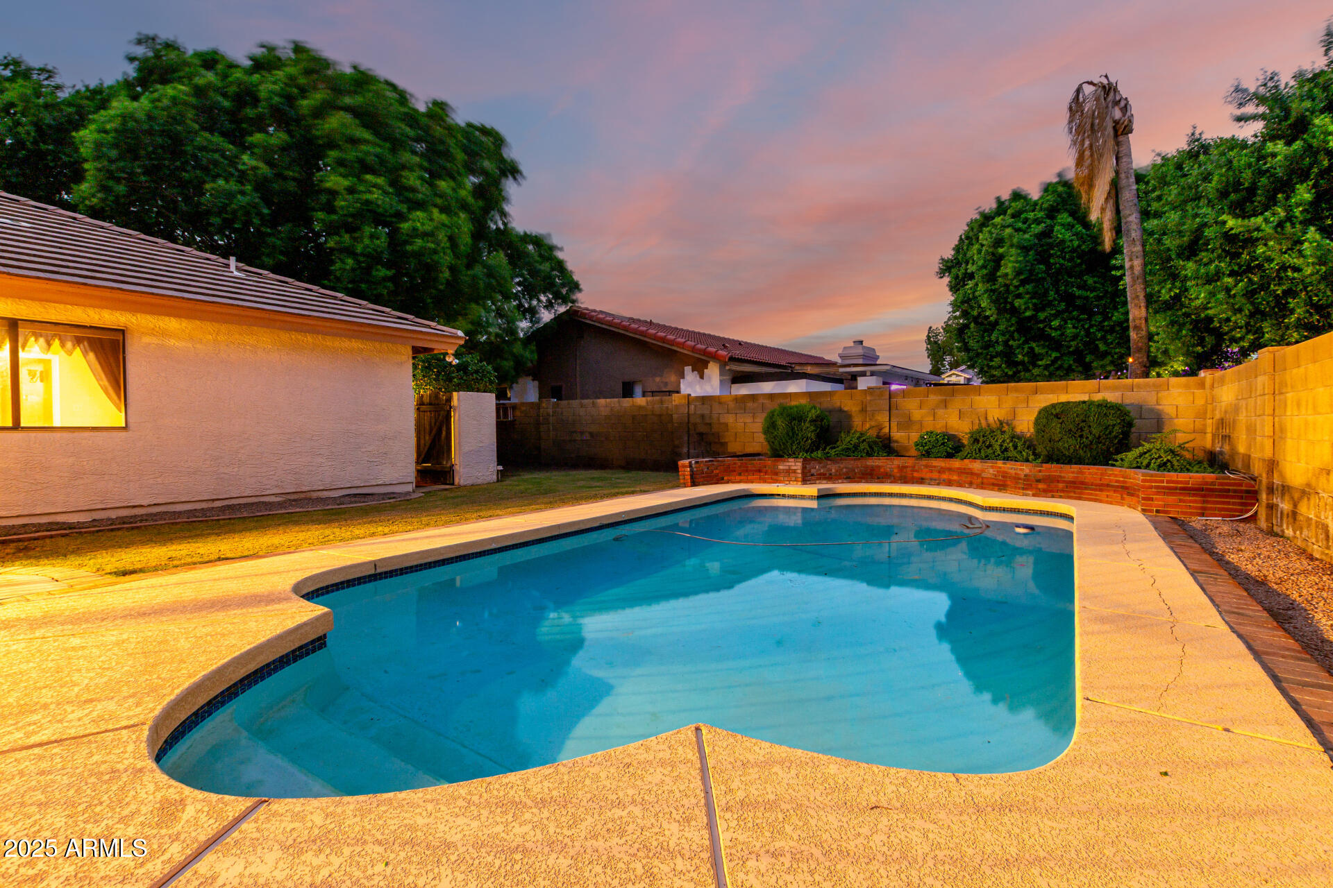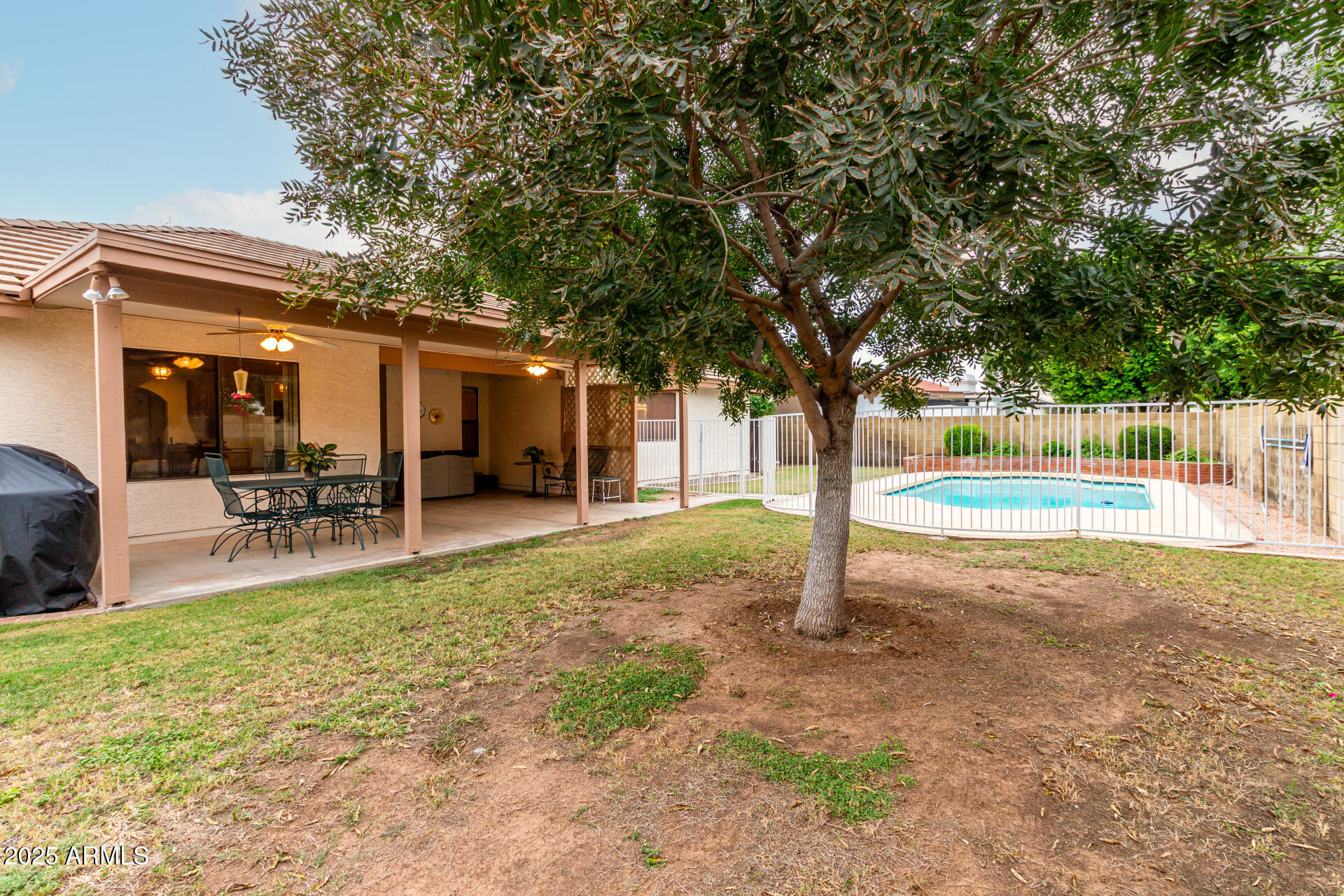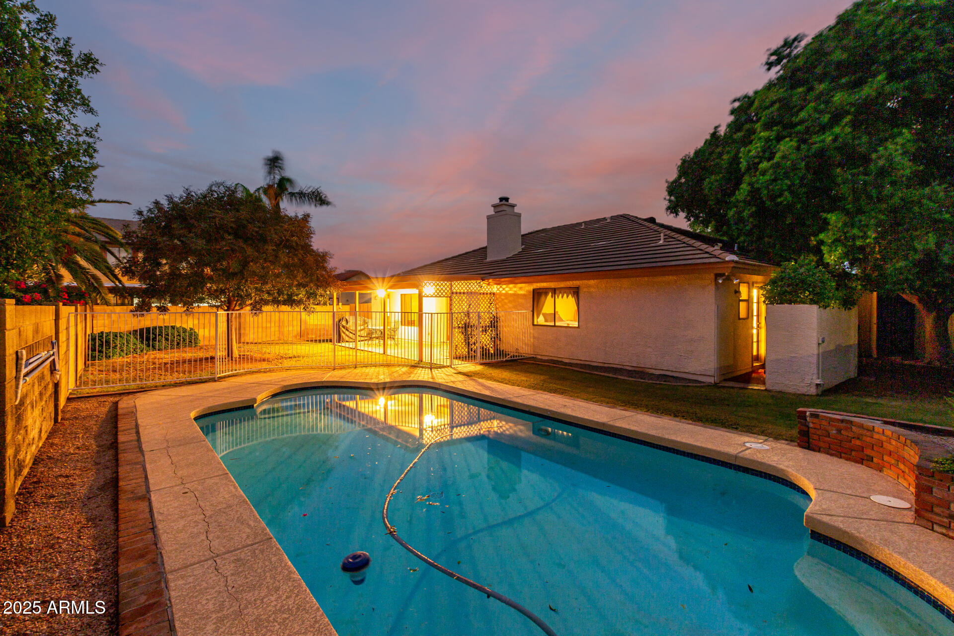 A beautiful freshly painted residence in the sought after Coury Estates is now for sale! Featuring a charming facade w/brick veneer accents, a lush green landscape, 2 car garage, and an RV gate, it's sure to be the home for you! Discover sizeable dining & living areas w/vaulted ceilings and a fireplace to keep you warm & cozy. Wood-look flooring, soft carpet in all the right places, and neutral palette throughout! You will also find a formal dining room w/stylish French doors, perfect for hosting a dinner party! The gorgeous kitchen offers ample cabinetry, granite counters, tile backsplash, and SS appliances. The primary suite showcases a private bath w/dual sinks and direct outdoor access. Also including a sizeable backyard w/a covered patio and a fenced pool, this home is a true gem! Don't miss out!