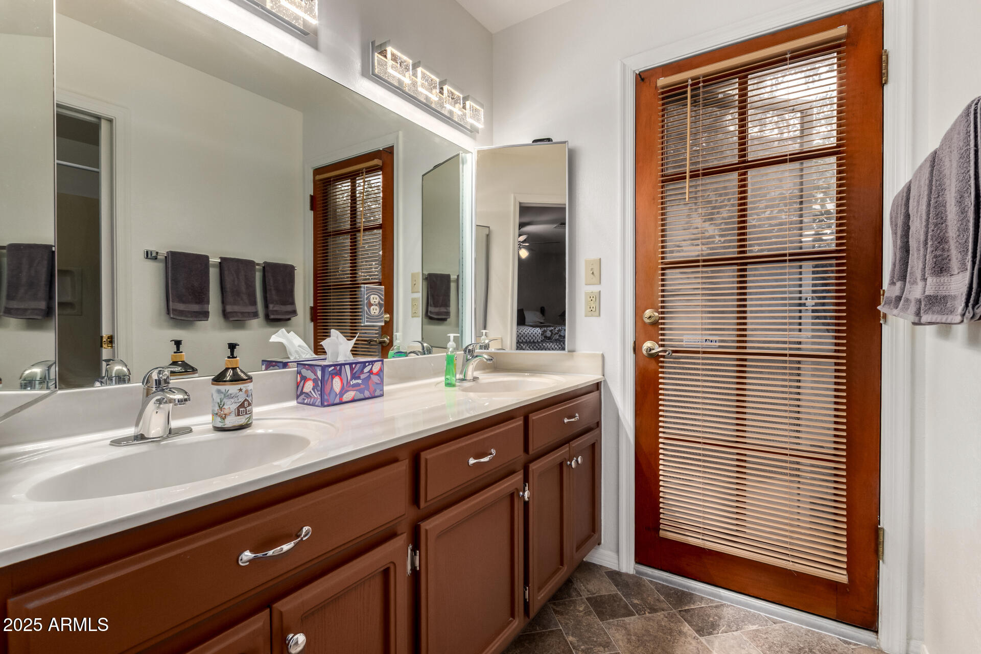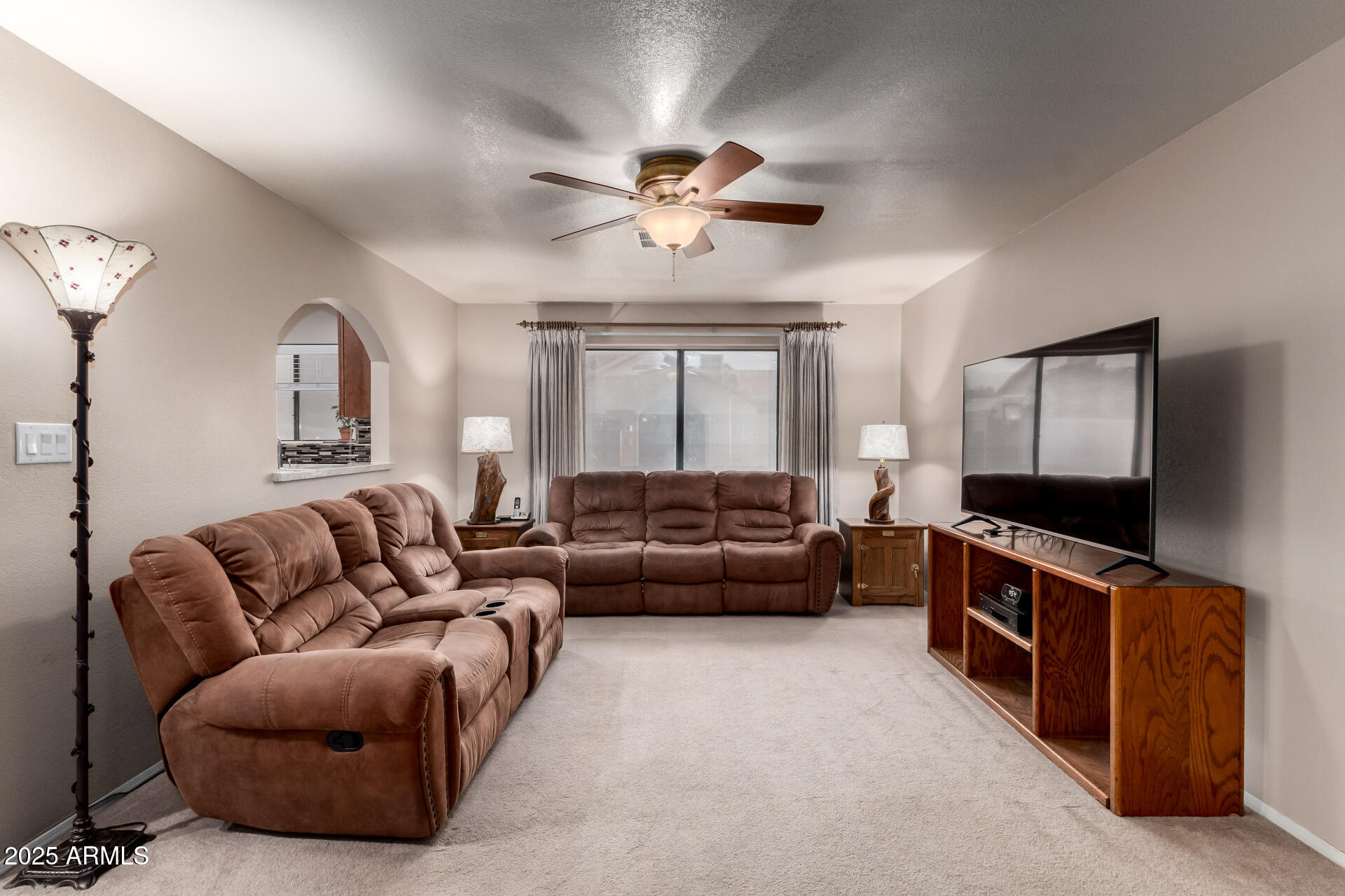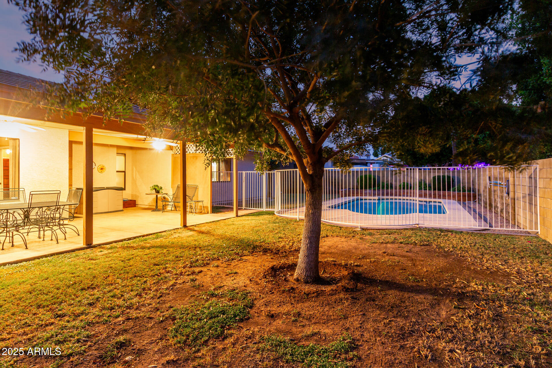 A beautiful freshly painted residence in the sought after Coury Estates is now for sale! Featuring a charming facade w/brick veneer accents, a lush green landscape, 2 car garage, and an RV gate, it's sure to be the home for you! Discover sizeable dining & living areas w/vaulted ceilings and a fireplace to keep you warm & cozy. Wood-look flooring, soft carpet in all the right places, and neutral palette throughout! You will also find a formal dining room w/stylish French doors, perfect for hosting a dinner party! The gorgeous kitchen offers ample cabinetry, granite counters, tile backsplash, and SS appliances. The primary suite showcases a private bath w/dual sinks and direct outdoor access. Also including a sizeable backyard w/a covered patio and a fenced pool, this home is a true gem! Don't miss out!