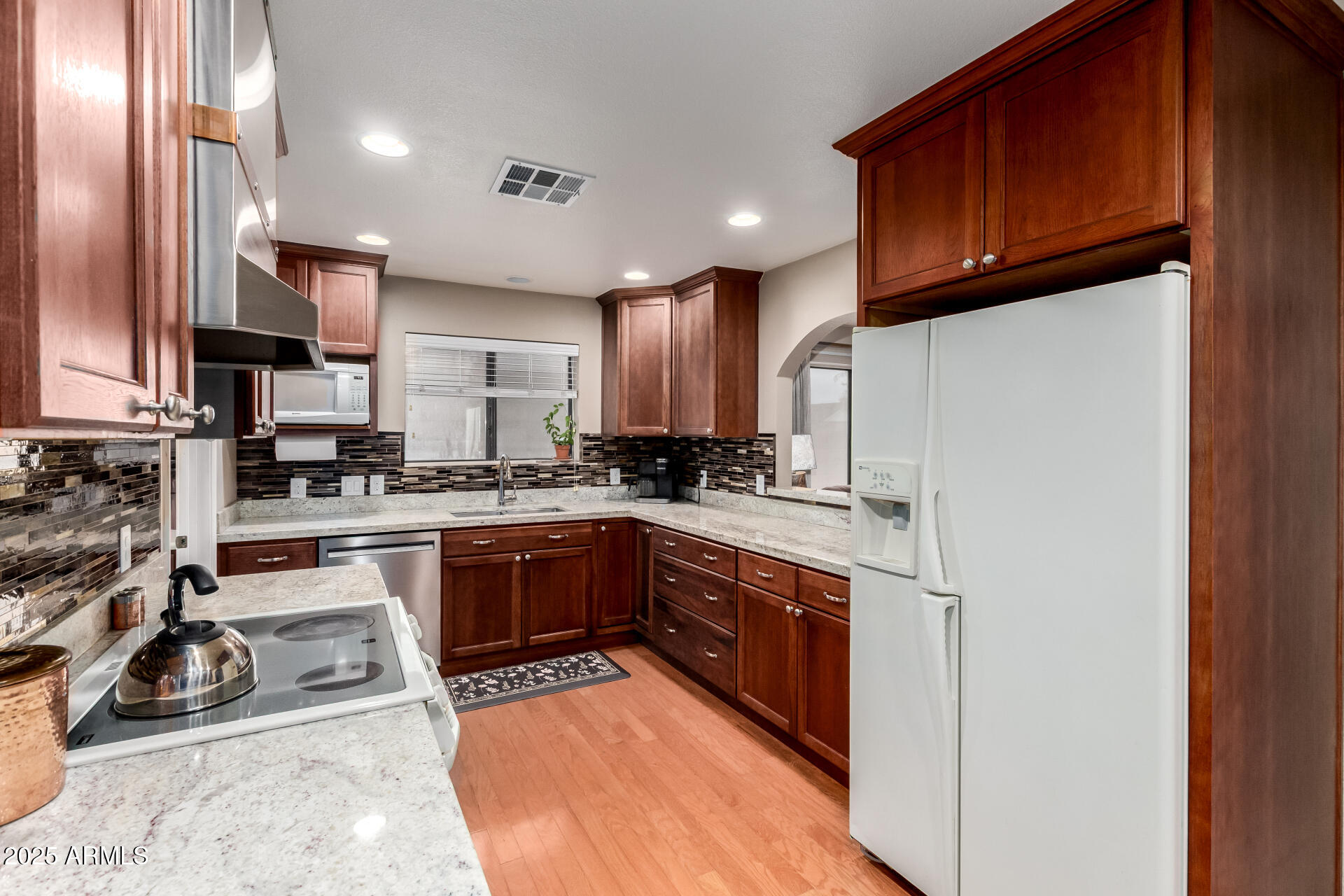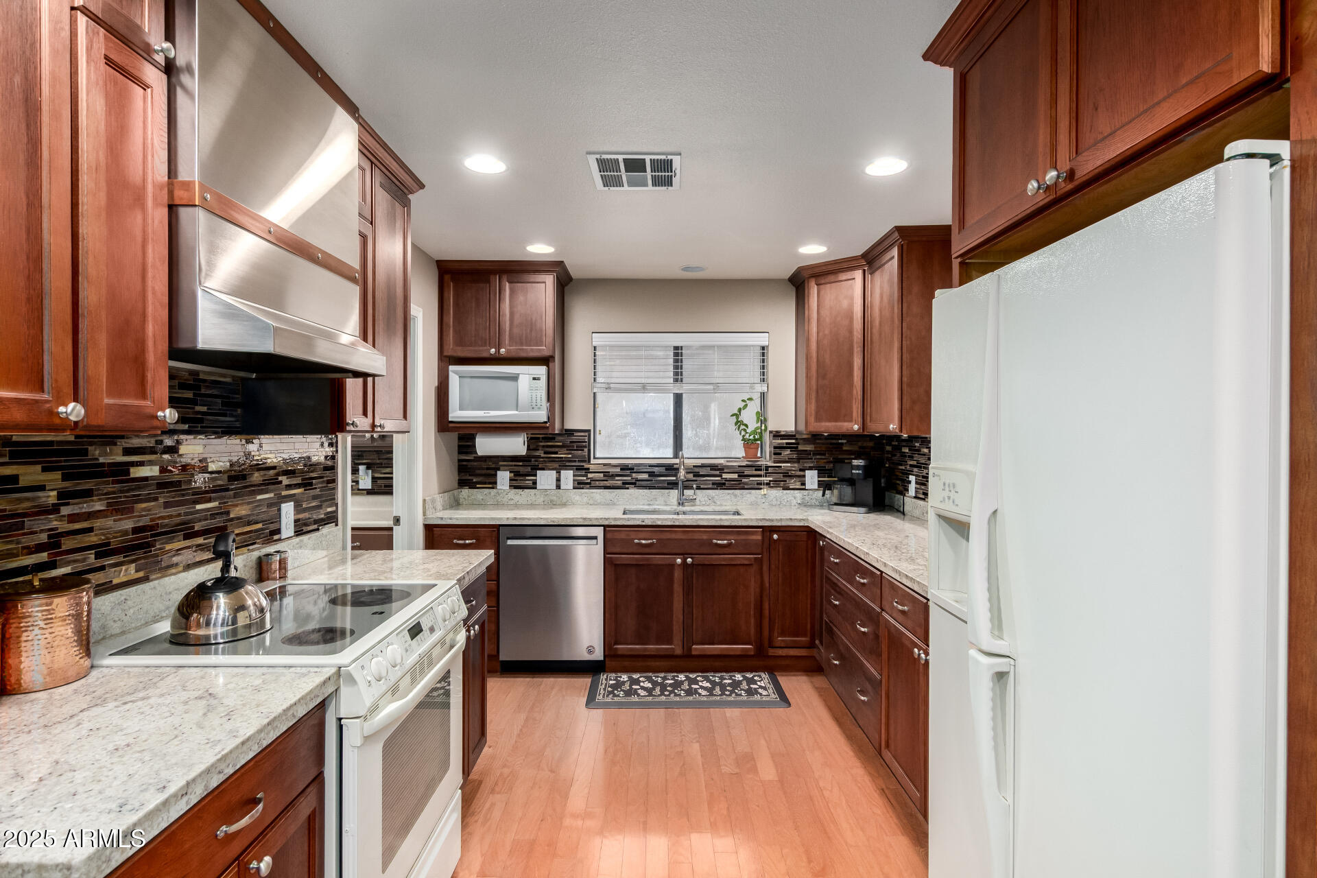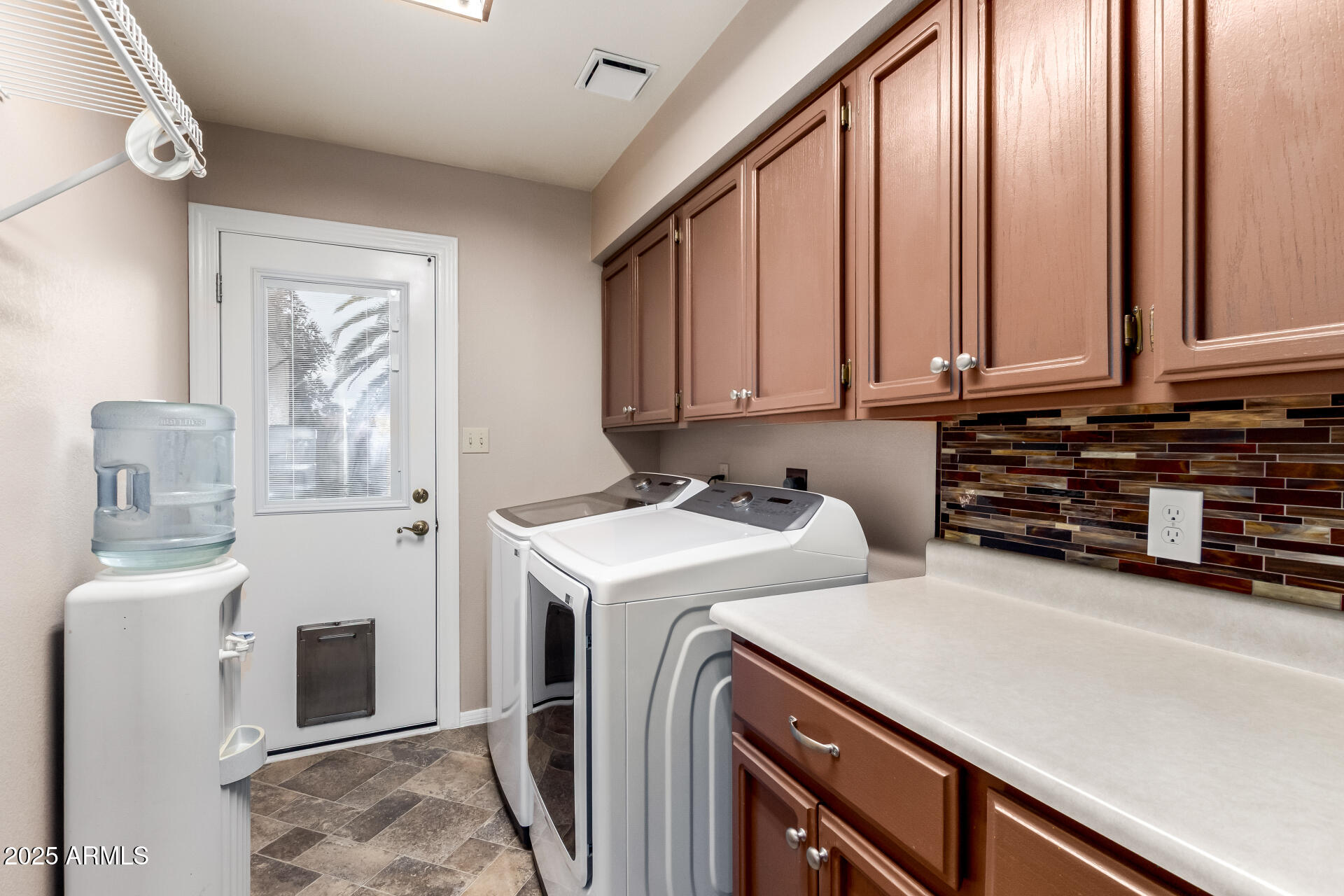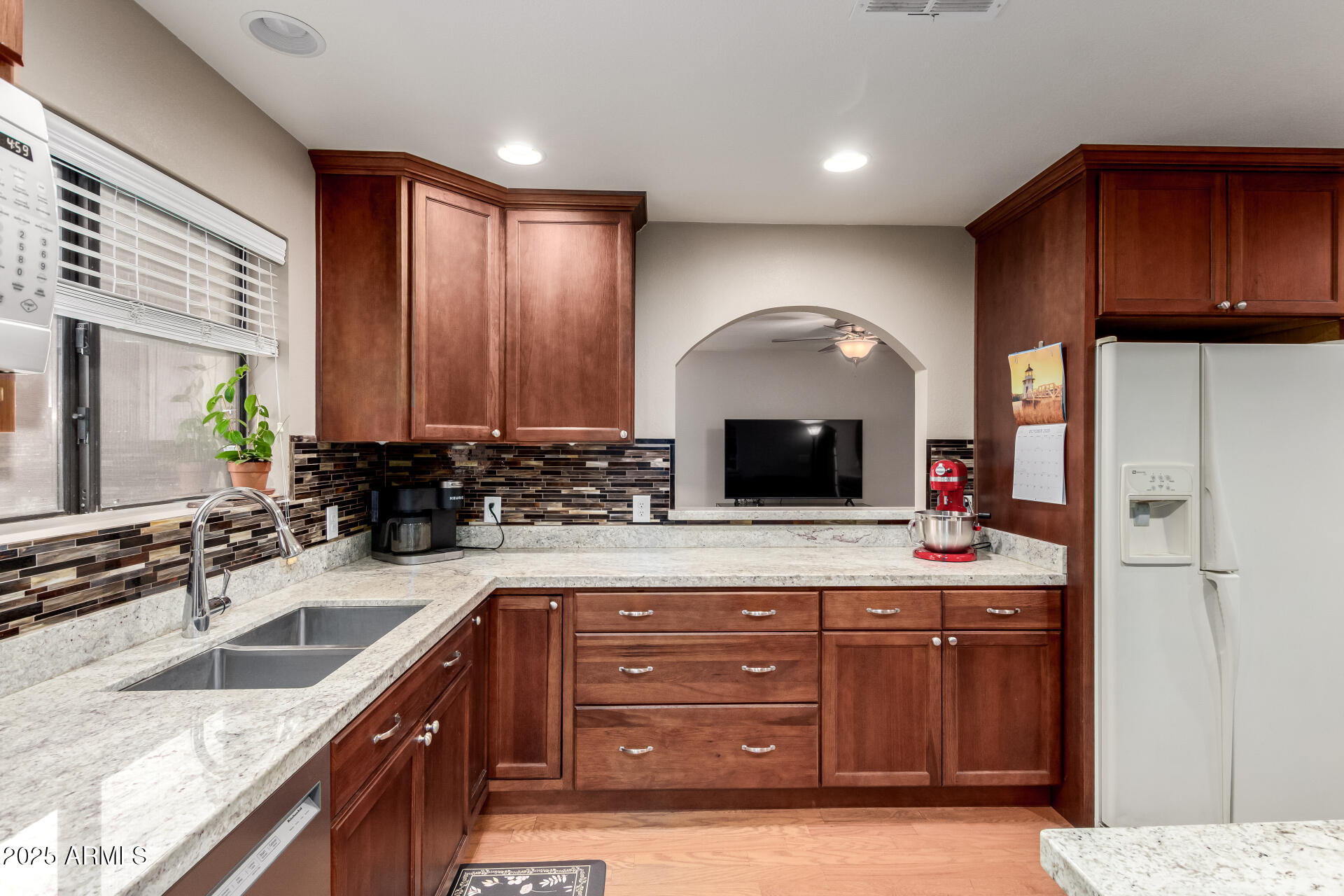 A beautiful freshly painted residence in the sought after Coury Estates is now for sale! Featuring a charming facade w/brick veneer accents, a lush green landscape, 2 car garage, and an RV gate, it's sure to be the home for you! Discover sizeable dining & living areas w/vaulted ceilings and a fireplace to keep you warm & cozy. Wood-look flooring, soft carpet in all the right places, and neutral palette throughout! You will also find a formal dining room w/stylish French doors, perfect for hosting a dinner party! The gorgeous kitchen offers ample cabinetry, granite counters, tile backsplash, and SS appliances. The primary suite showcases a private bath w/dual sinks and direct outdoor access. Also including a sizeable backyard w/a covered patio and a fenced pool, this home is a true gem! Don't miss out!