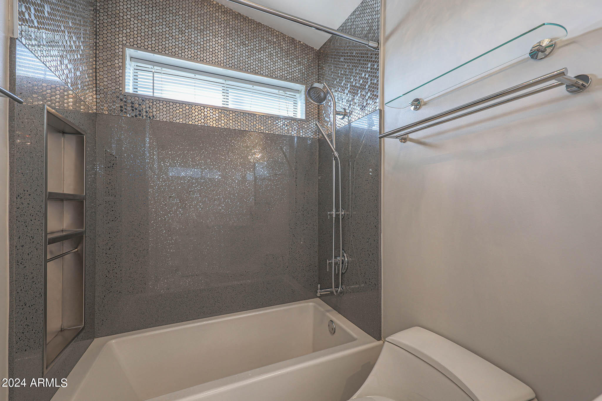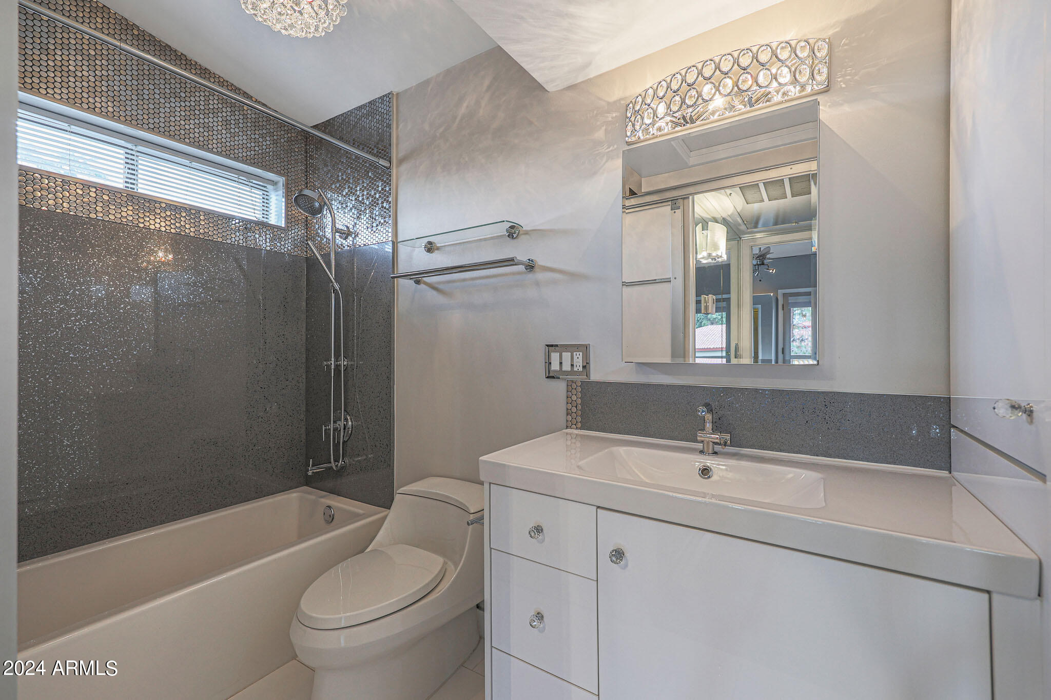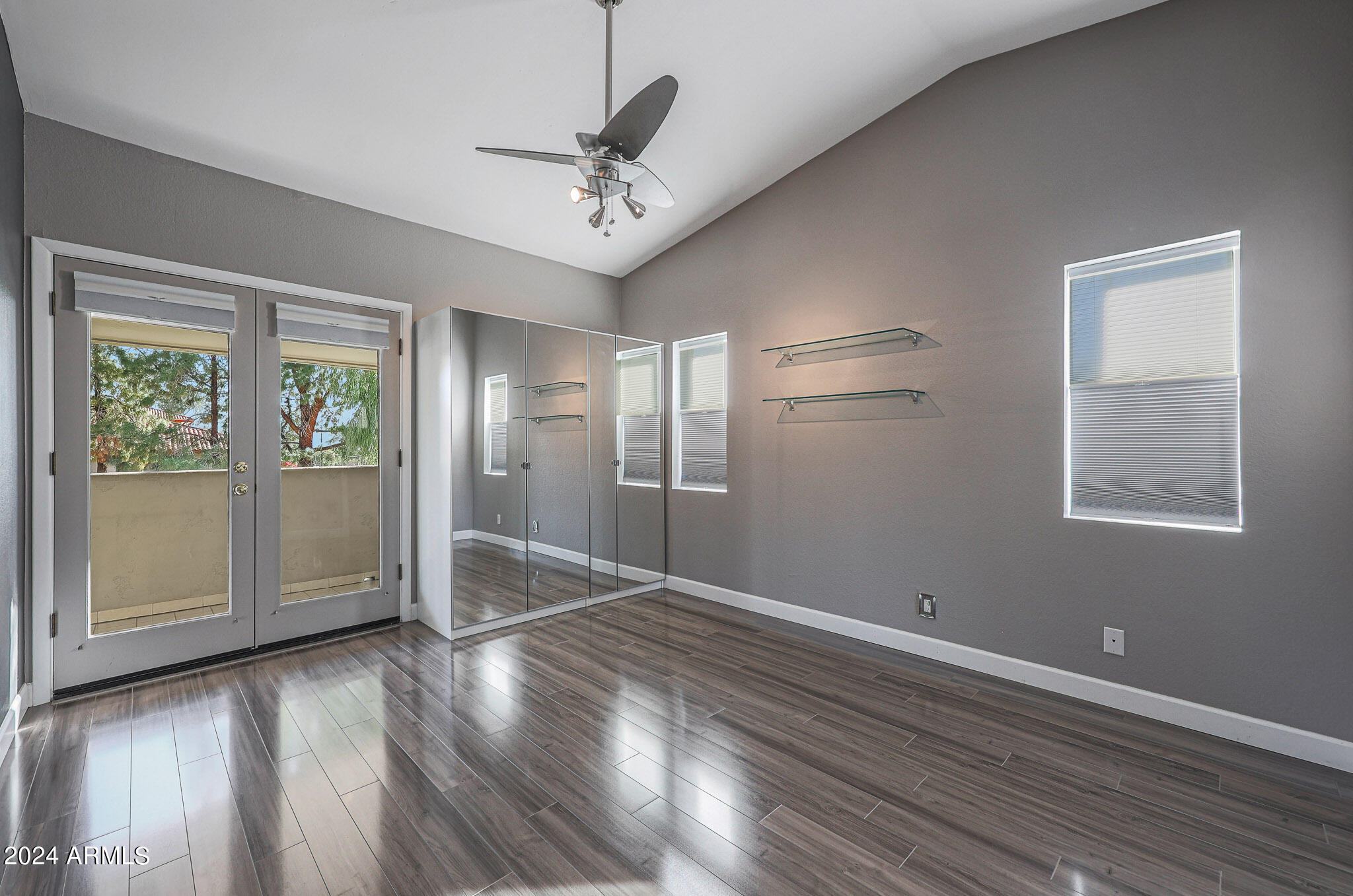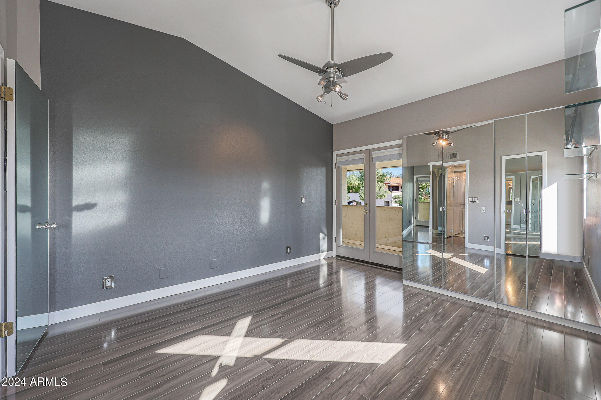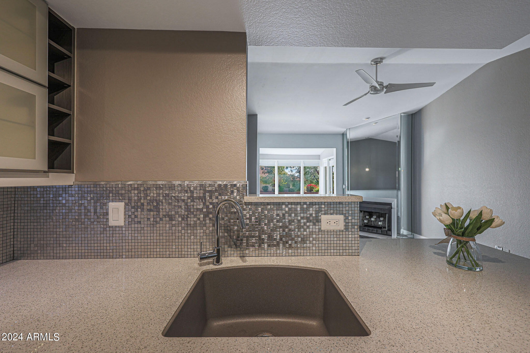 Upon entering this stylish residence, you'll immediately appreciate the custom paint that imparts a touch of personality and charm to the living space. This 1/1 features an alcove/nook/flex-space near windows for ample light and inspiration. The vaulted ceilings elevate the sense of openness. Armstrong high-gloss laminate flooring, extends seamlessly throughout, accompanied by 3.5-inch baseboards, adding a touch of sophistication to every room. The beautifully remodeled kitchen is adorned with granite Transformations Trend Stone countertops featuring ForeverSeal tm, a BLANCO SILGRANIT sink, lazy Susans, integrated cabinet lighting, and modern cabinets. The attention to detail continues into the full bath remodel, boasting a custom sliding door, a modern bathtub, Granite Transformations Trend Stone shower walls, stainless + polished steel penny round tile extending to the ceiling, a shower rail with high-end Grohe fixtures + hand wand.