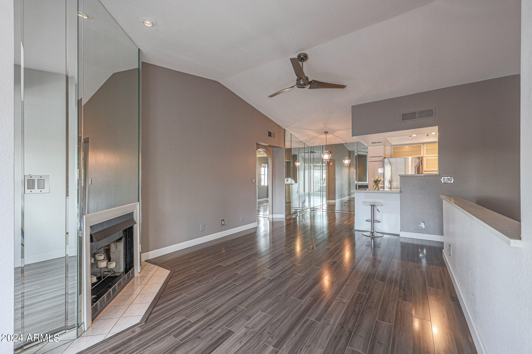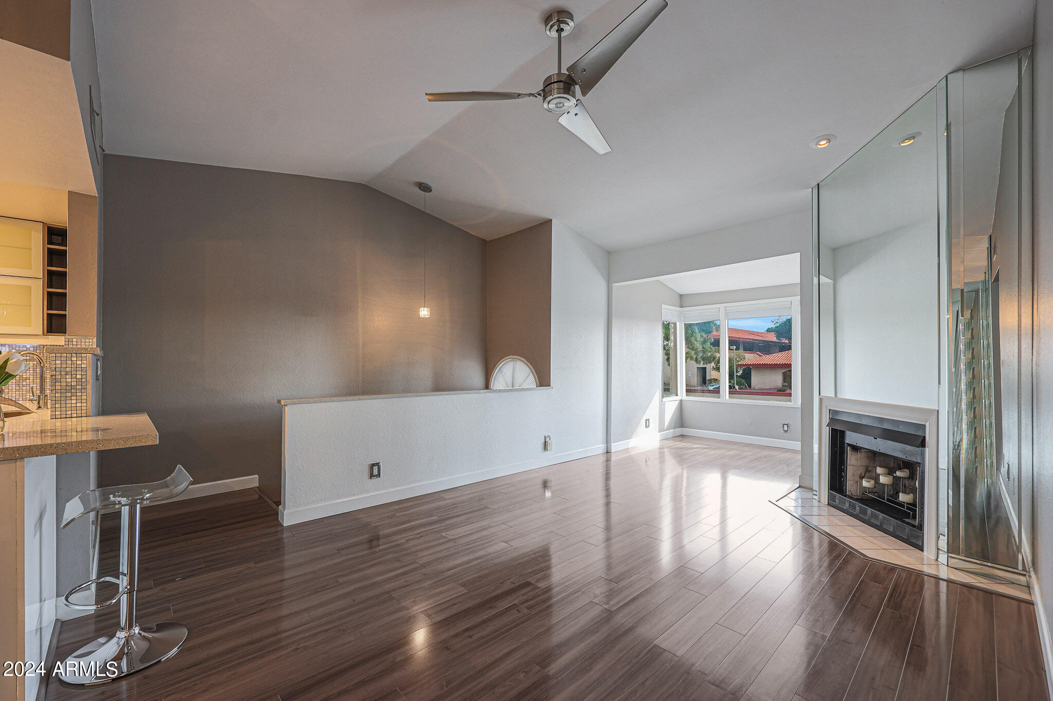 The cozy fireplace invites you to unwind in the living area, while the balcony provides a perfect spot to enjoy the breathtaking Arizona sunsets and stunning mountain views. This particular unit, located on the corner of Dreamy Draw and Morten Ave, offers easy access to walking, hiking, and biking trails at the nearby Dreamy Draw Recreation Area, part of the Phoenix Mountains Preserve. The community is exceptionally dog-friendly and is also close to Sumida Park, which features a playground and exercise equipment.