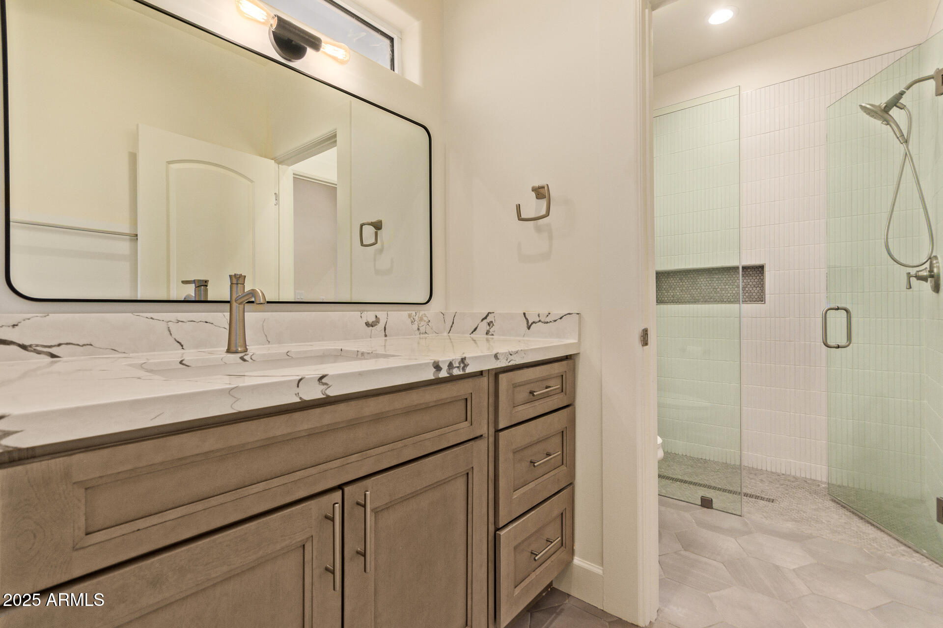 2 LOTS SOLD TOGETHER! LAND+ LISTING 6908963. Newly built 4-bedroom residence on over an acre lot with a 3-car garage and extended driveway. The open concept design features vaulted ceilings, recessed lighting, wood-look flooring, and a gourmet kitchen with quartz countertops, custom cabinetry, stainless steel appliances, a stylish backsplash, and a walk-in pantry. The primary suite offers private patio access and a spa-inspired bath with dual vanities, a soaking tub, tiled shower, and walk-in closet. Outside, enjoy a full-length covered patio with panoramic mountain views and endless space to design your outdoor oasis. This home is ideally located near shopping, dining, golf, and hiking trails with convenient access to Loop 303, providing both a luxury lifestyle and long-term value!
