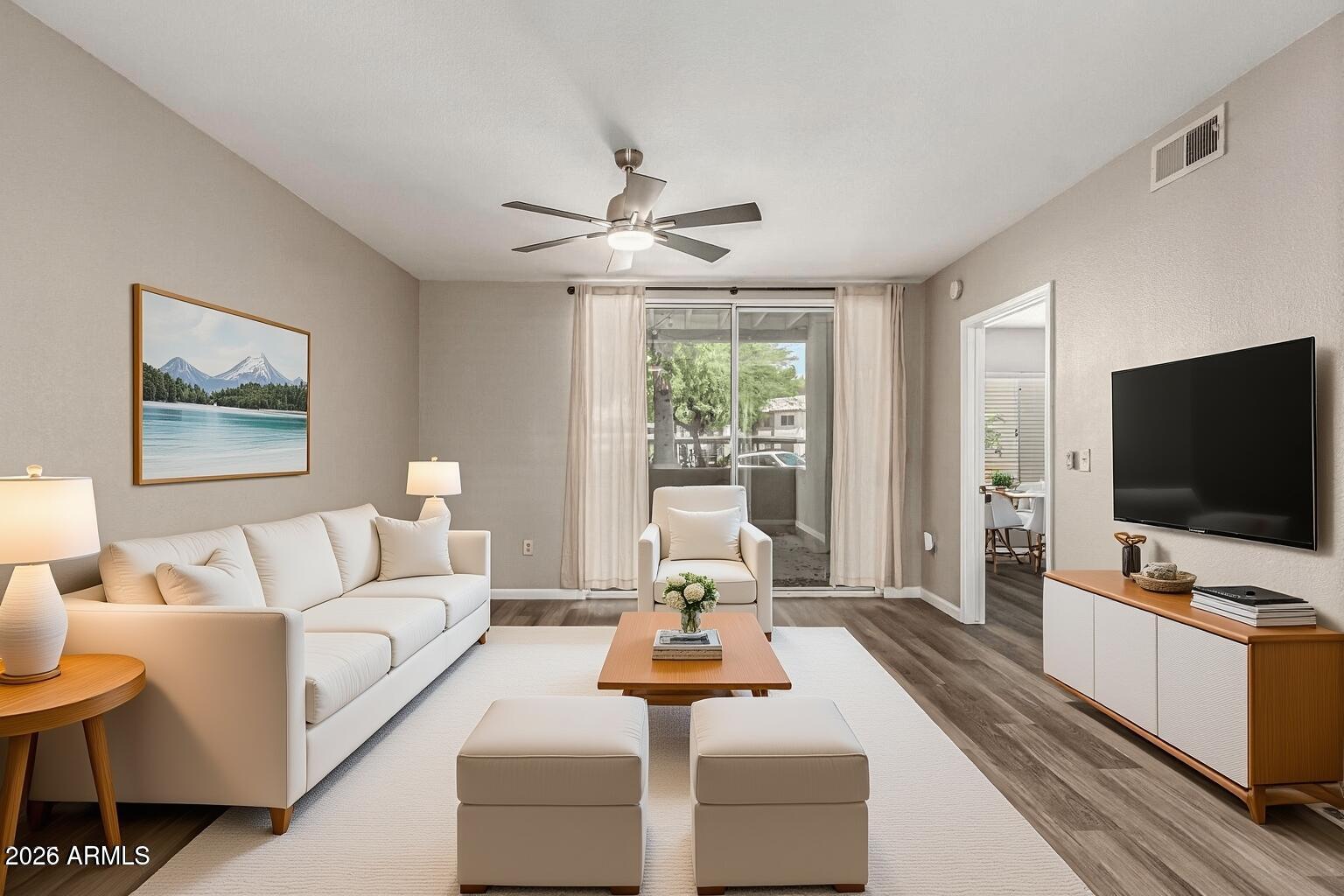 Charming 2-bedroom condo in Lakeshore at Andersen Springs is now on the market! This lovely unit features a great room with wood-look flooring, abundant natural light, neutral paint, and sliding doors to the covered patio, where you can enjoy your morning coffee and peaceful evenings. A nicely sized kitchen awaits your culinary adventures, showcasing shaker cabinetry, a granite peninsula, and built-in appliances. The primary bedroom has a bathroom and a walk-in closet. This gated community's amenities include a pool, tennis court, spa, pickleball, a lake, and more! Don't miss it! Also Available For Sale