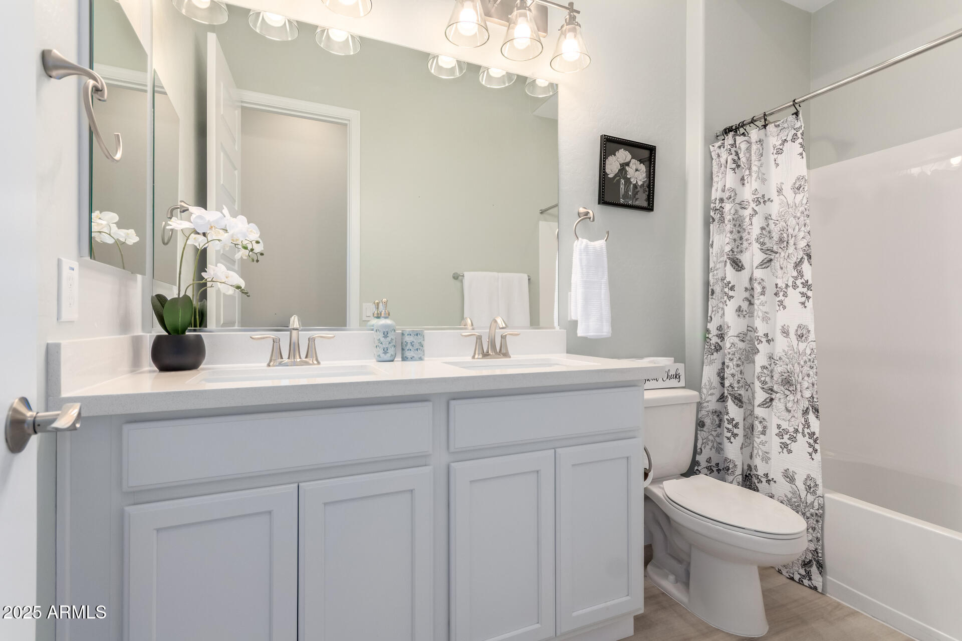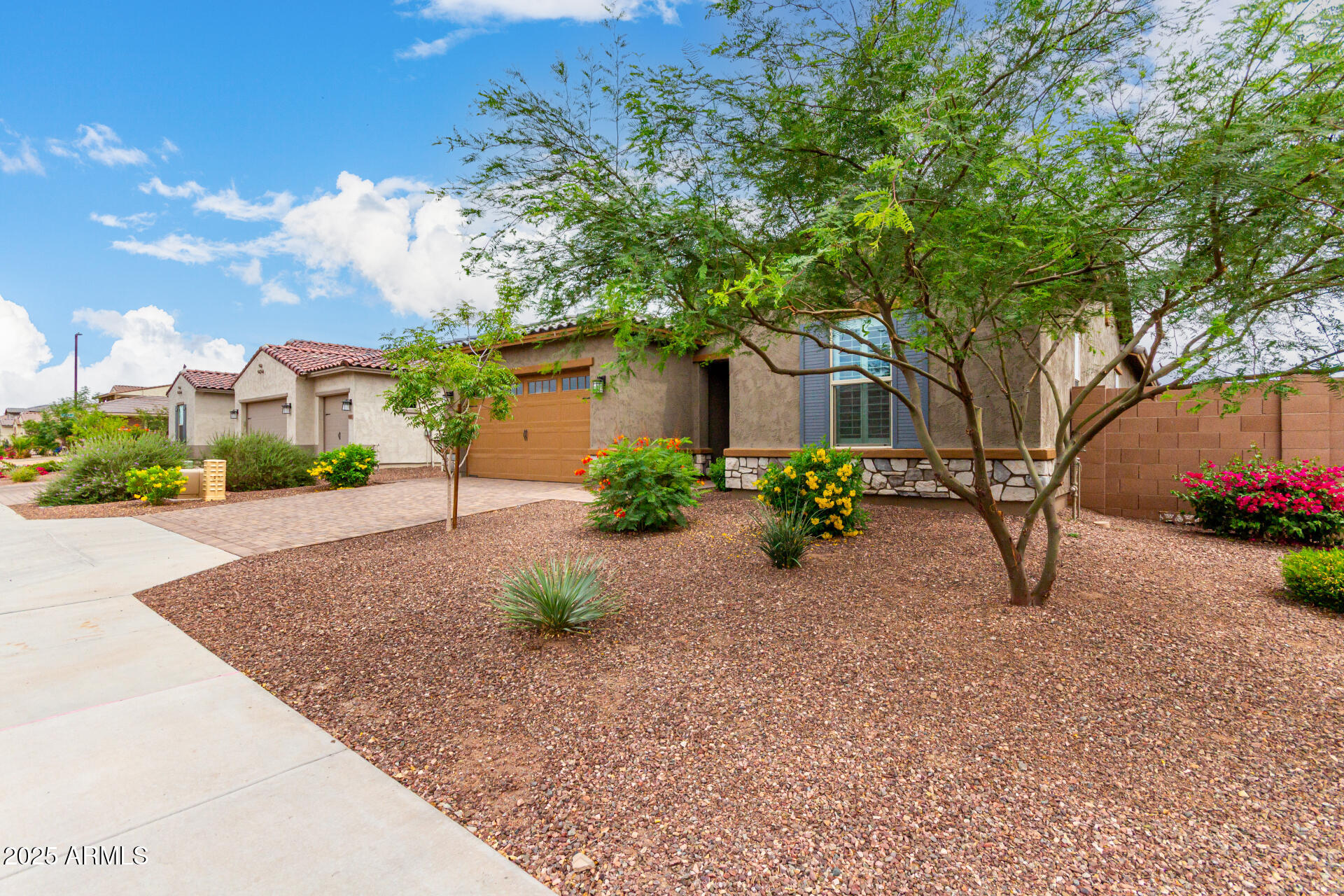 BUYER will receive 55k PAID OFF solar, which means FREE electricity! Welcome to this beautiful 4 bedroom 3.5 bath home in Las Brisas! Vibrant landscape, paver driveway & a 3-car garage invites you into the charming home. The interior showcases bright and airy living areas with wood-look flooring, sliding doors to the back patio, plantation shutters, and neutral colors. The pristine culinary space boasts white cabinets with crown molding, solid-surface counters, a pantry, an island, and stainless steel appliances. The spacious main bedroom offers a walk-in closet for optimal storage and a full bathroom with double sinks. The backyard features a sizable covered patio perfect for entertaining and sitting areas with pavers, perfect for fun weekend barbecues and relaxing evenings outdoors