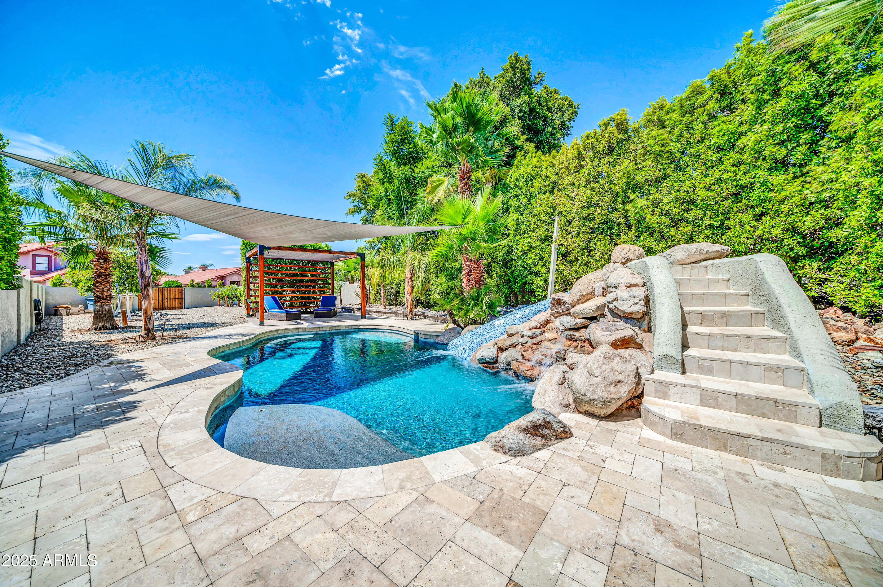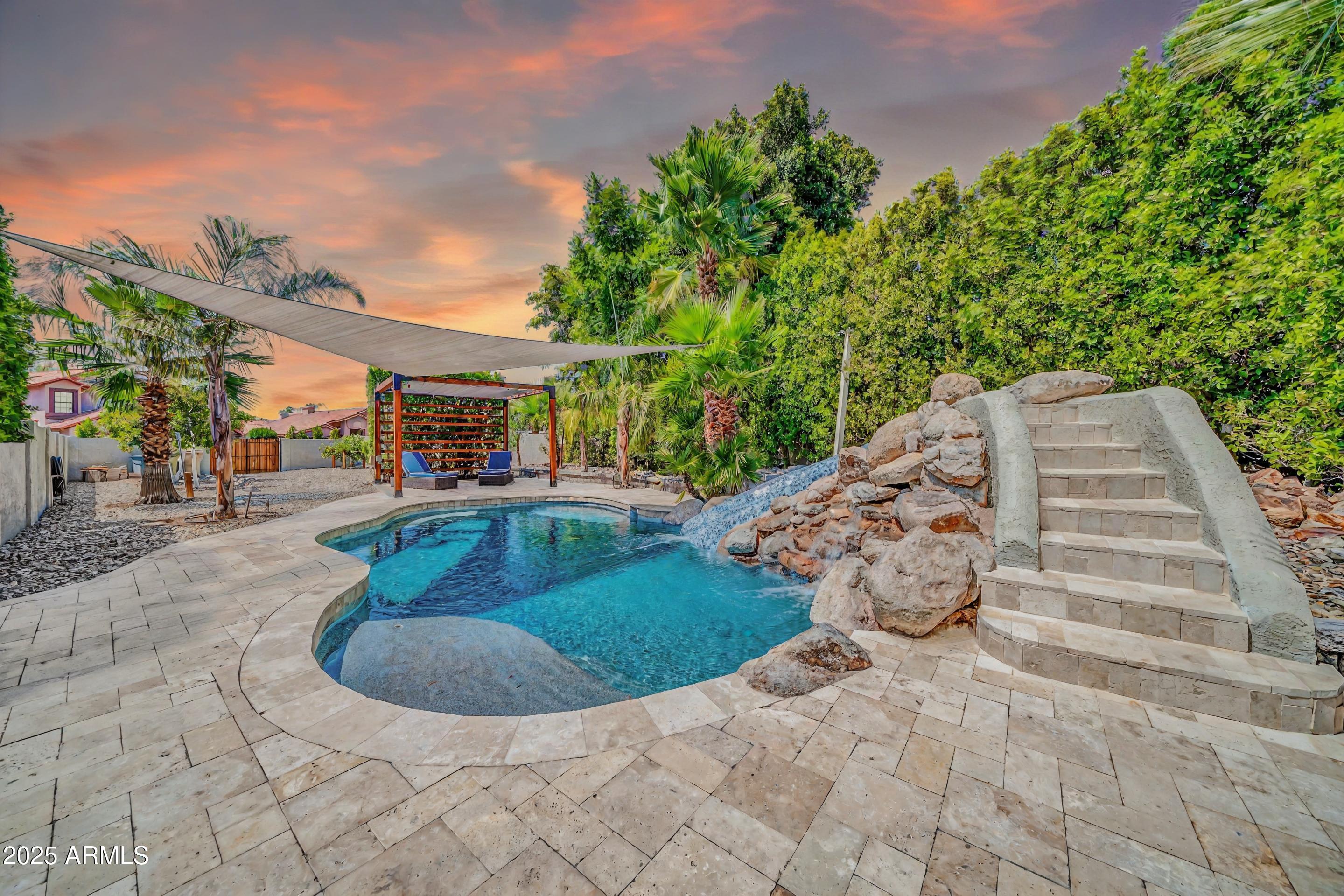 Welcome to this beautifully upgraded 4-bedroom, 2.5-bathroom home tucked away on a cul-de-sac lot in Glendale! This spacious residence features a stunning backyard designed for entertaining, complete with a sparkling private pool and slide, travertine patio, pergola, putting green, horseshoe pit, fruit trees, and more. Inside, you'll find a generous layout that includes a formal living room with fireplace, a separate oversized family room, a formal dining area. Two bedrooms are conveniently located on the first floor and two bedrooms upstairs. The kitchen boasts granite countertops, an oversized island, ample cabinetry, a ceramic cooktop, built-in microwave, refrigerator, and dishwasher. This home has it all both inside and out!