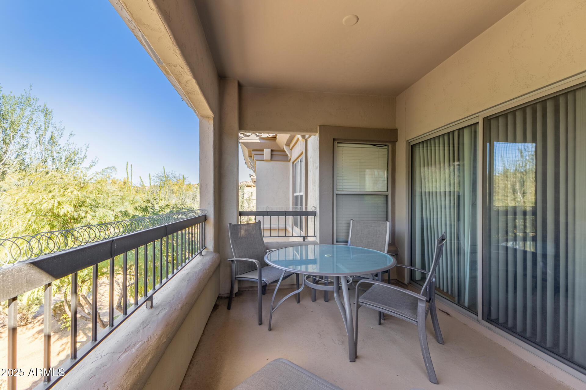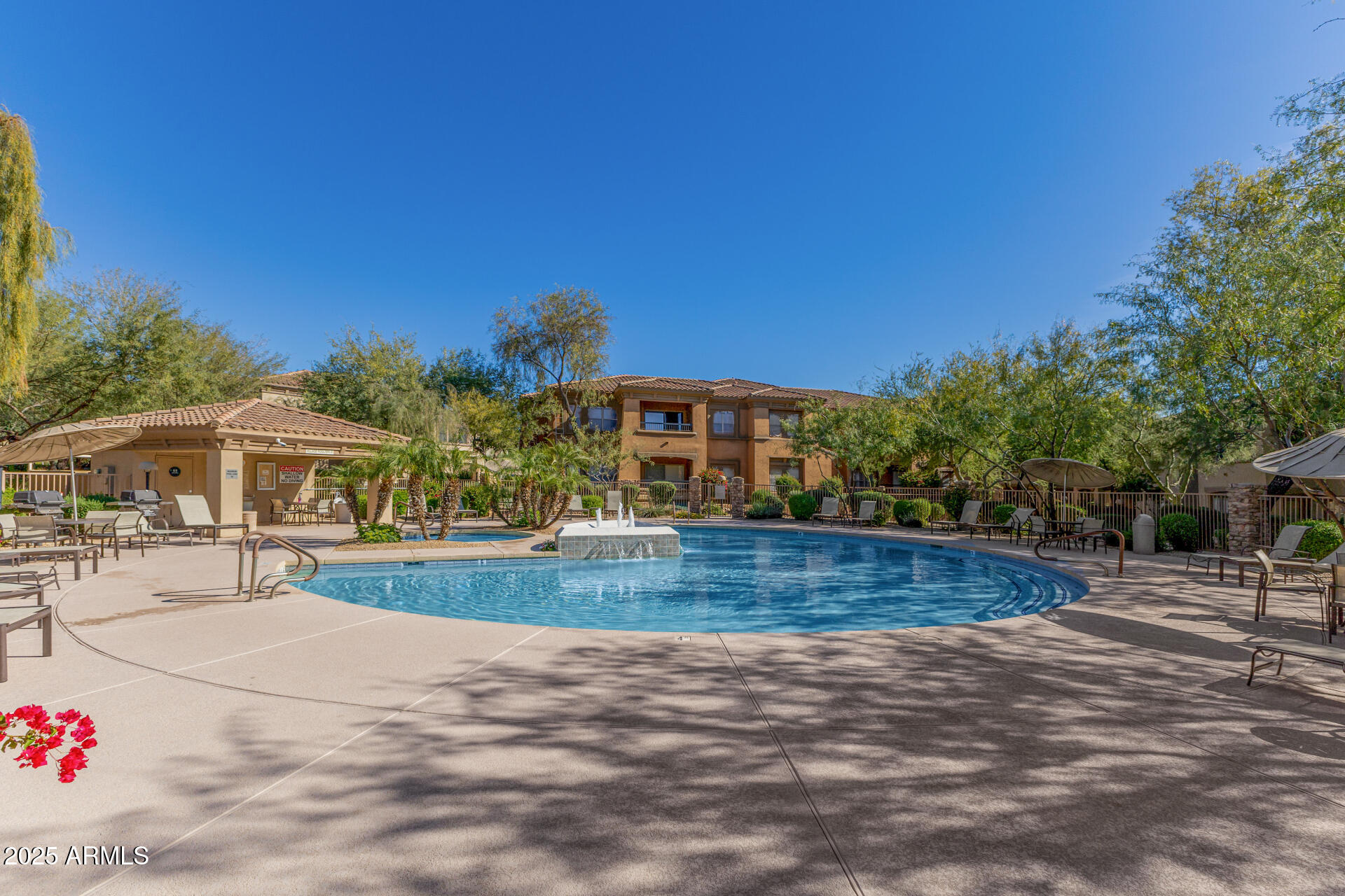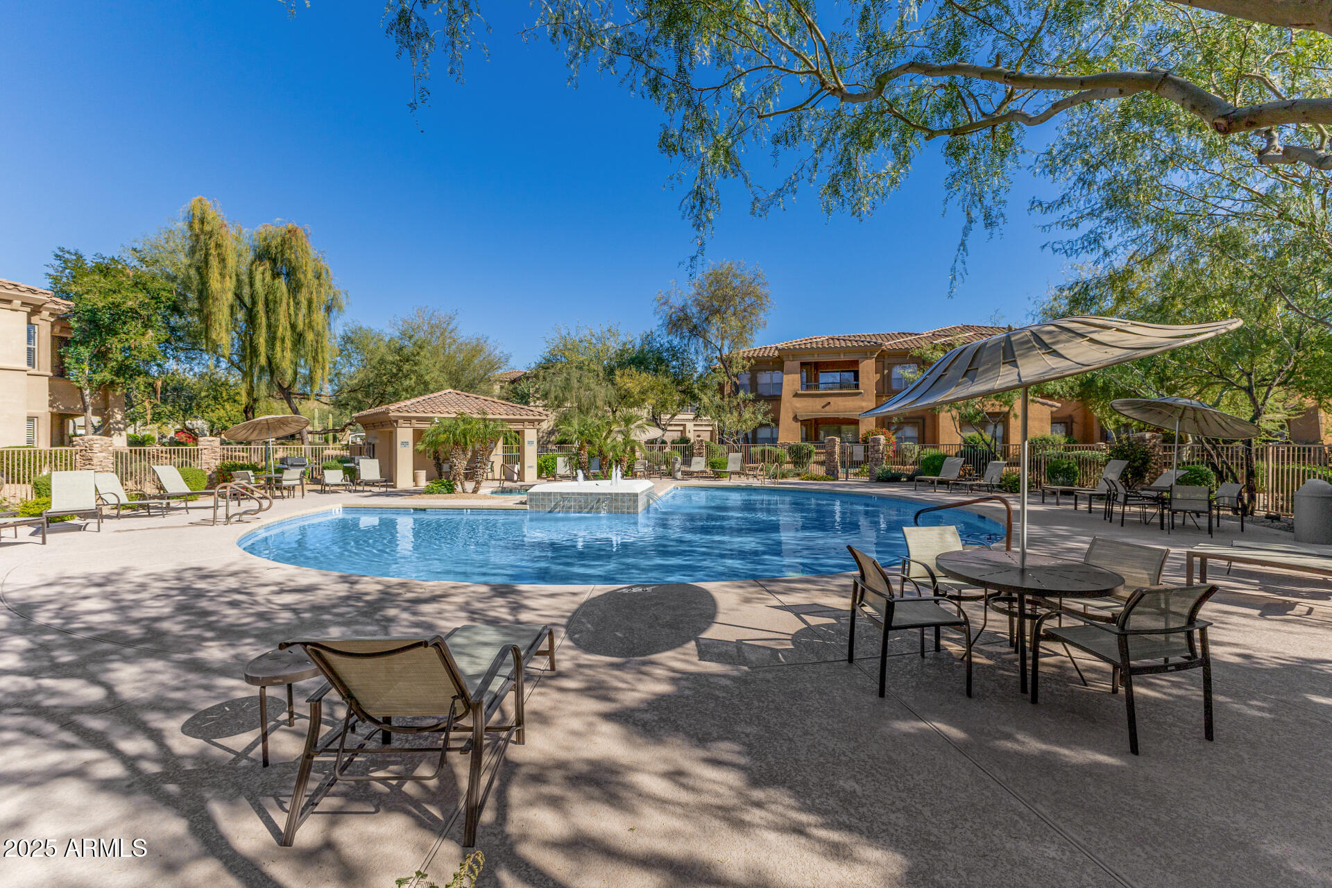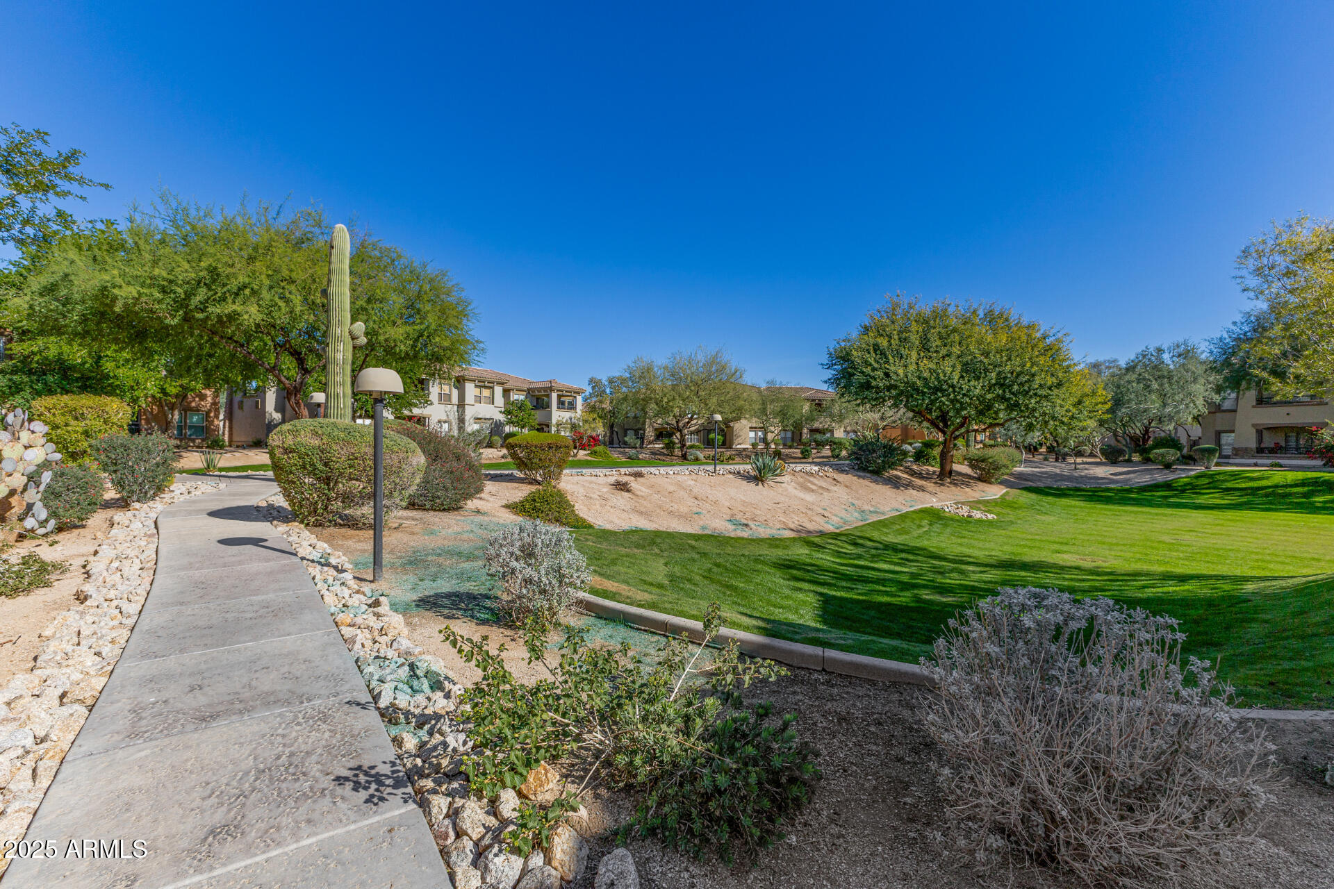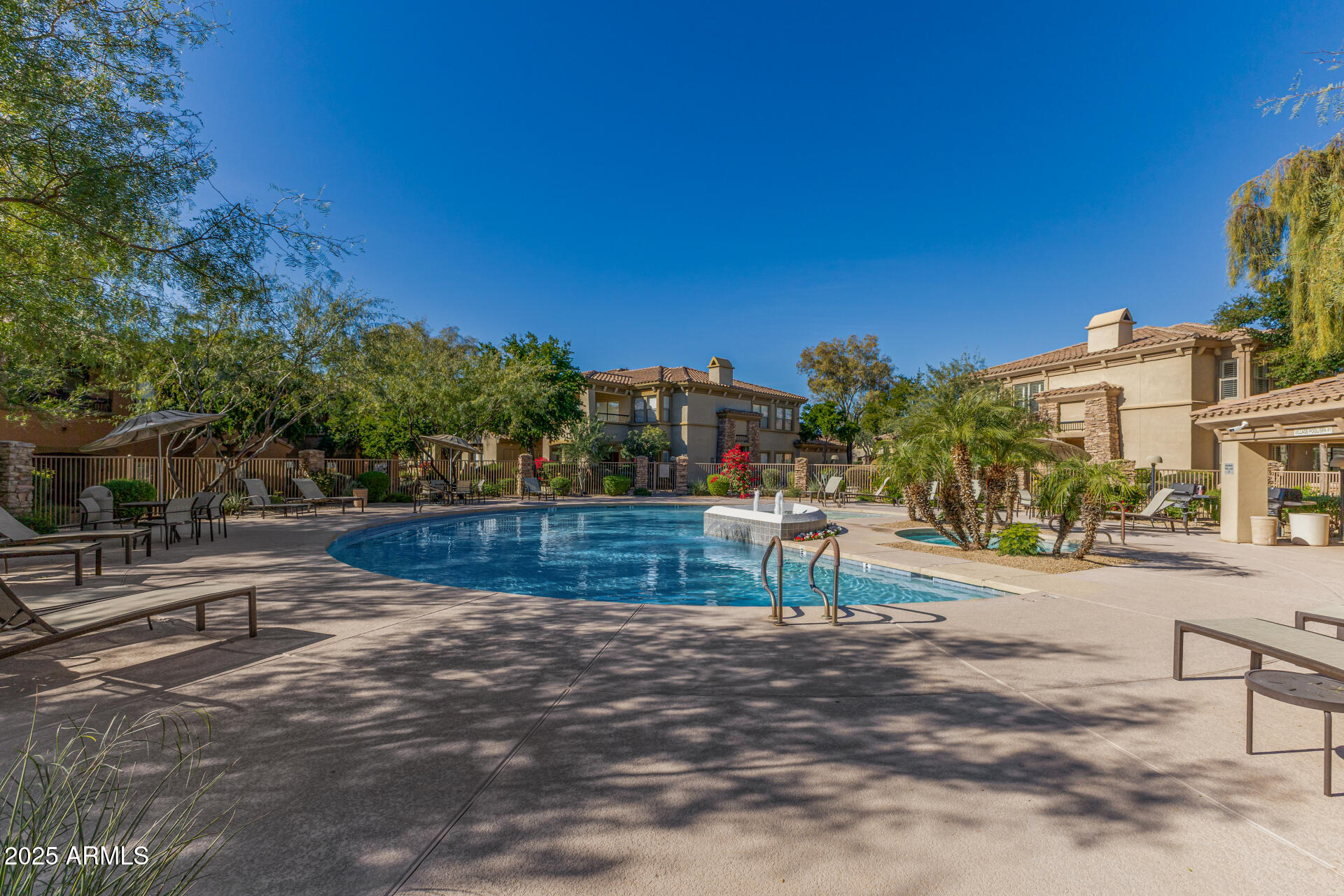 Fantastic opportunity to own this lovely apartment unit in the Village at Grayhawk! Discover a serene living room with high ceilings, a soothing palette, blinds, soft carpeting, and an inviting fireplace for intimate evenings with loved ones. The well-appointed kitchen comes with granite counters, ample wood cabinetry with crown moulding, recessed lighting, stainless steel appliances, and a two-tier peninsula with a breakfast bar. You'll also find a den ideal for an office or a lounge. The cozy main bedroom includes an ensuite with double sinks and a convenient walk-in closet. Unwind on the balcony, offering tranquil views of the surroundings. The Community boasts walking/biking paths, lush greenbelts, a refreshing pool, and more. Don't miss out on this one! Can be sold fully furnished Third bedroom does NOT have a closet.