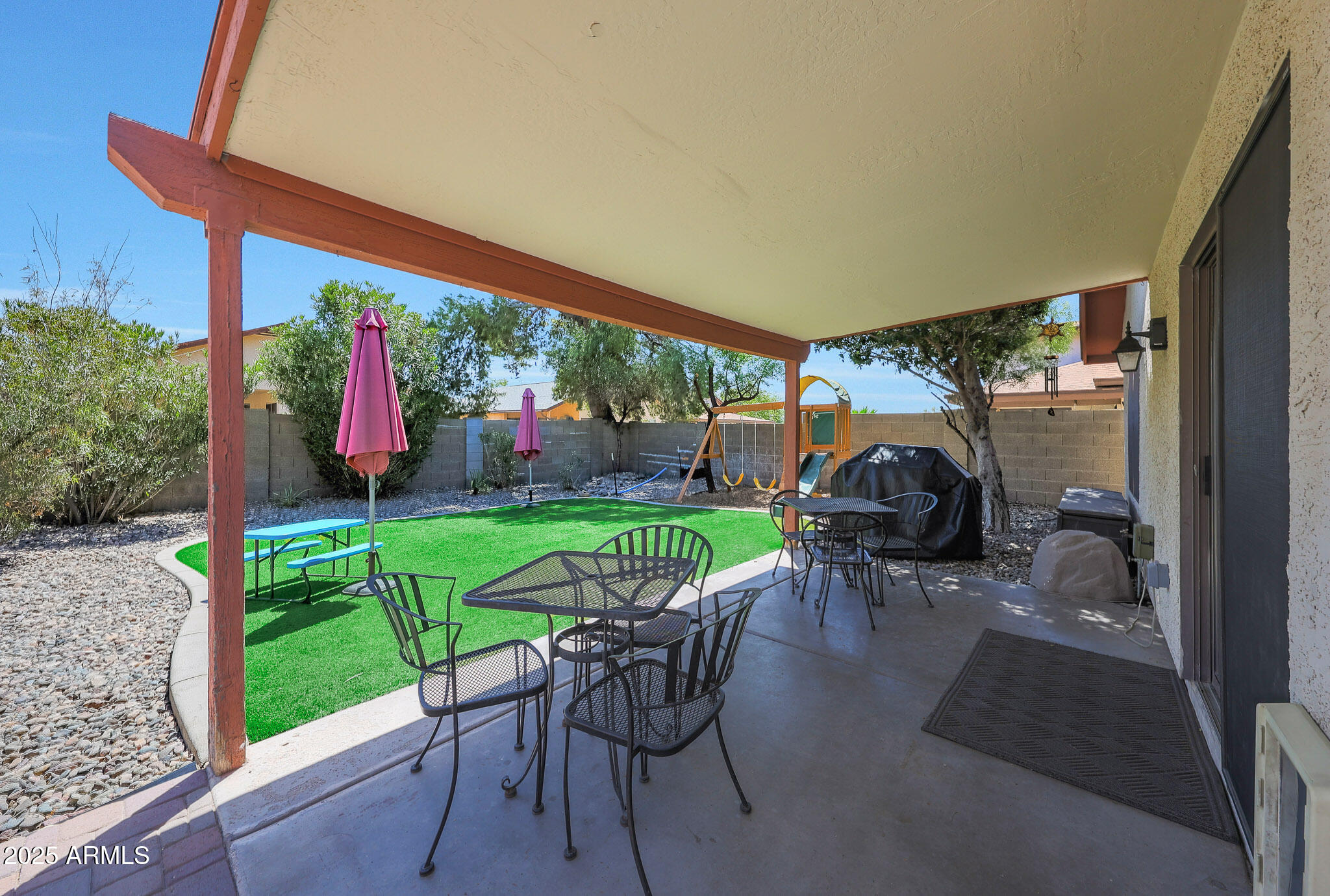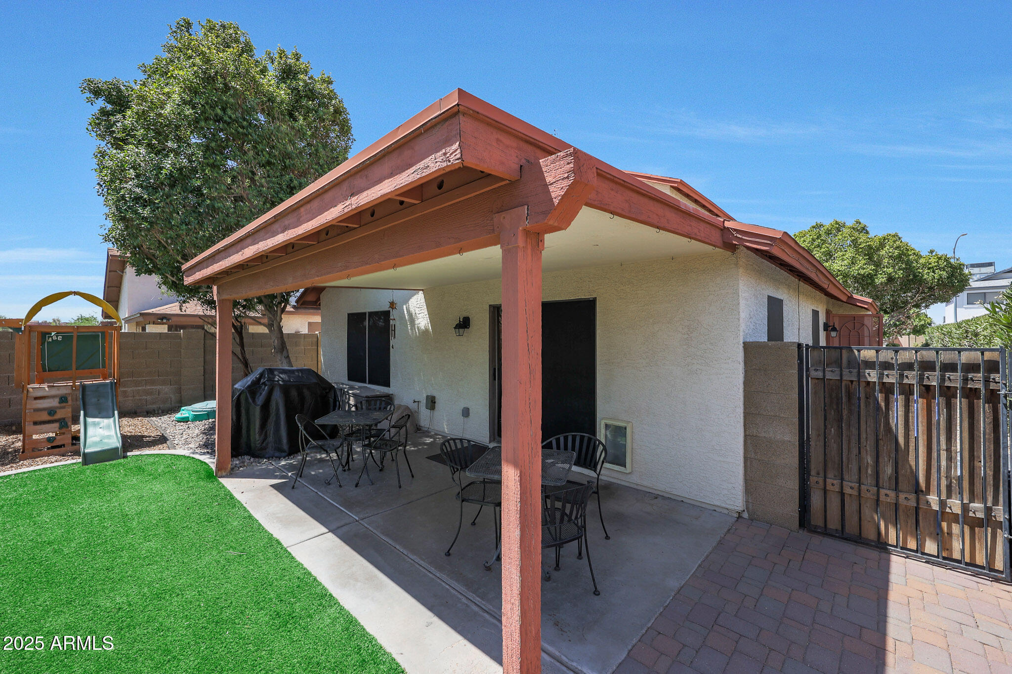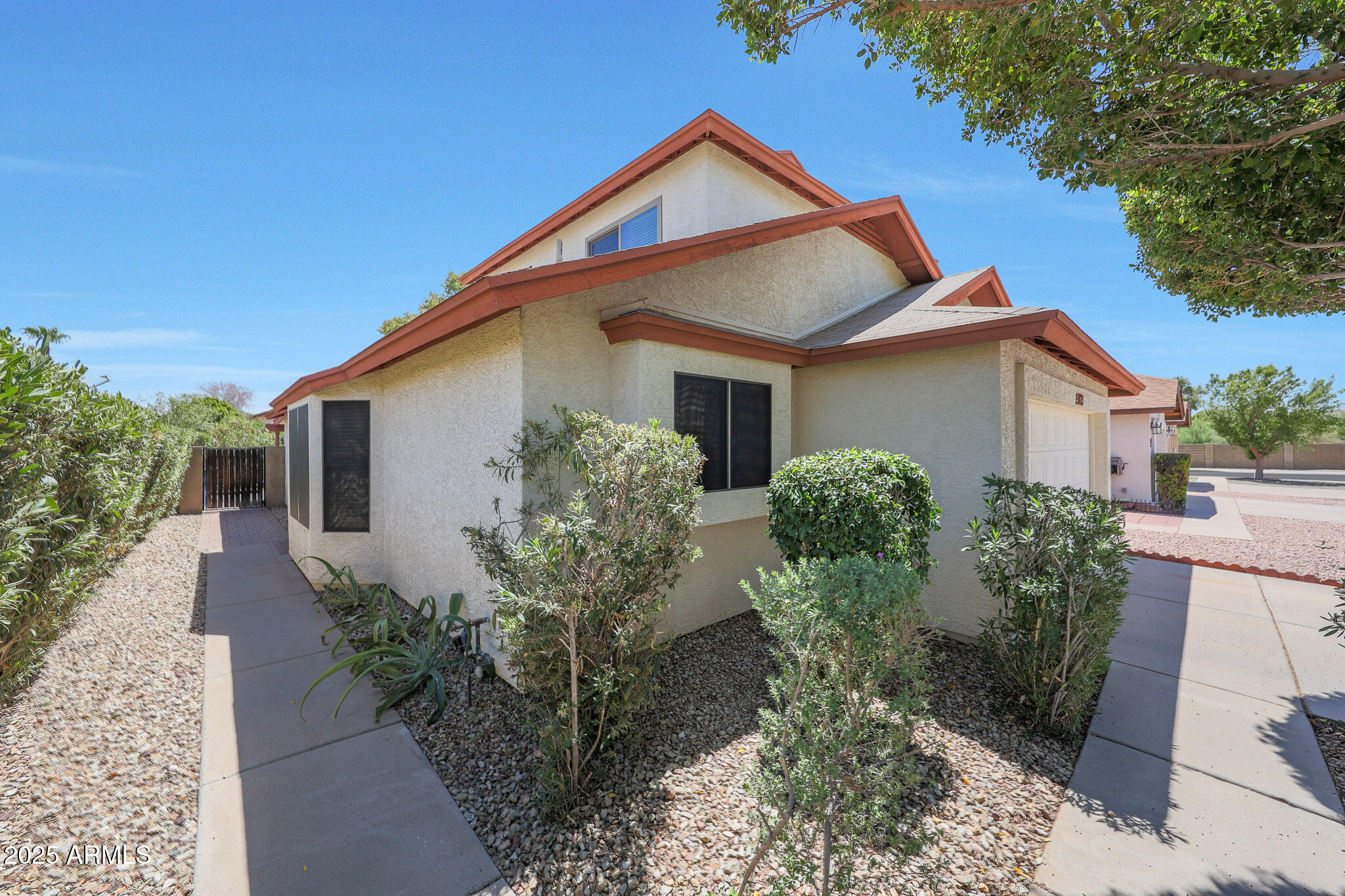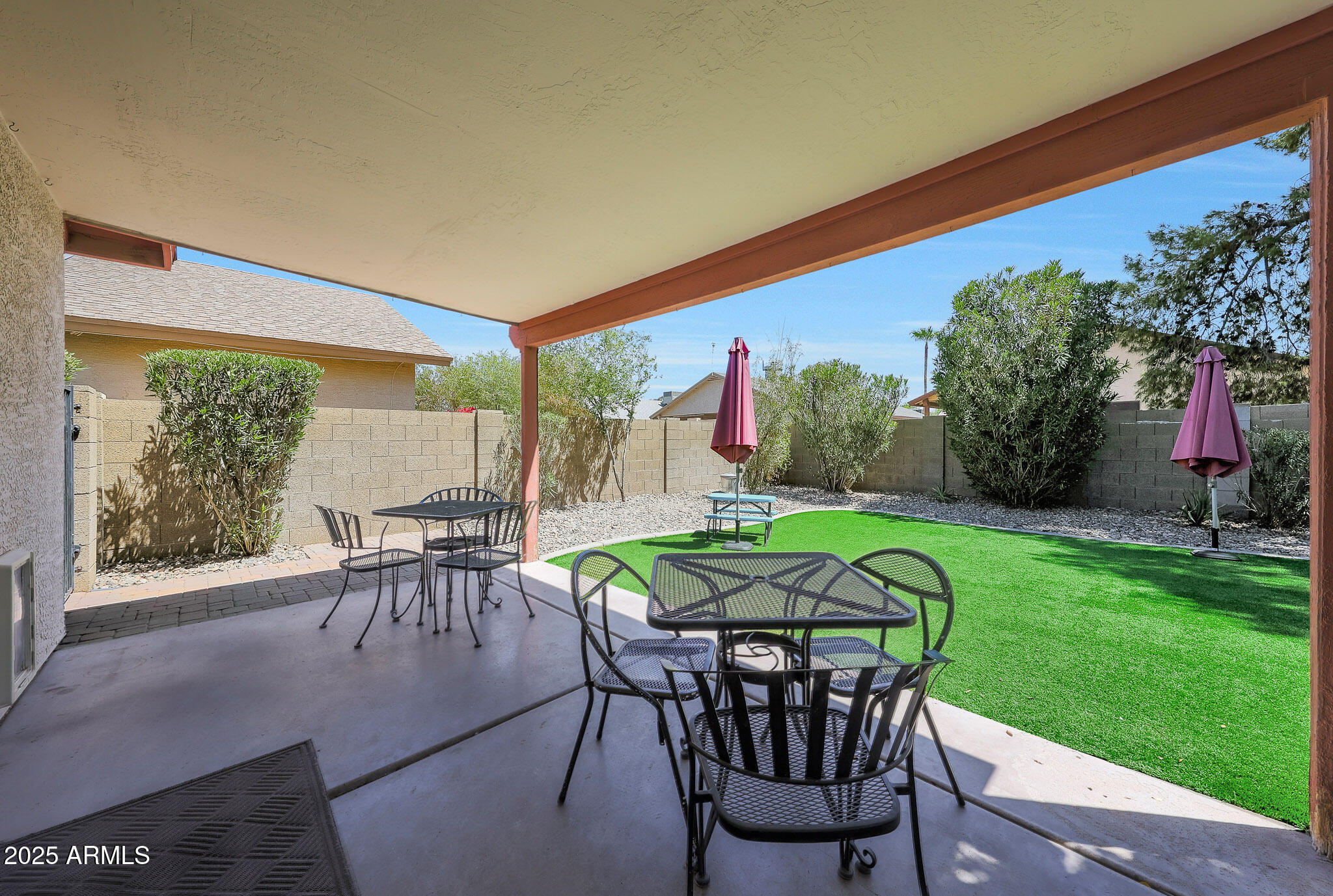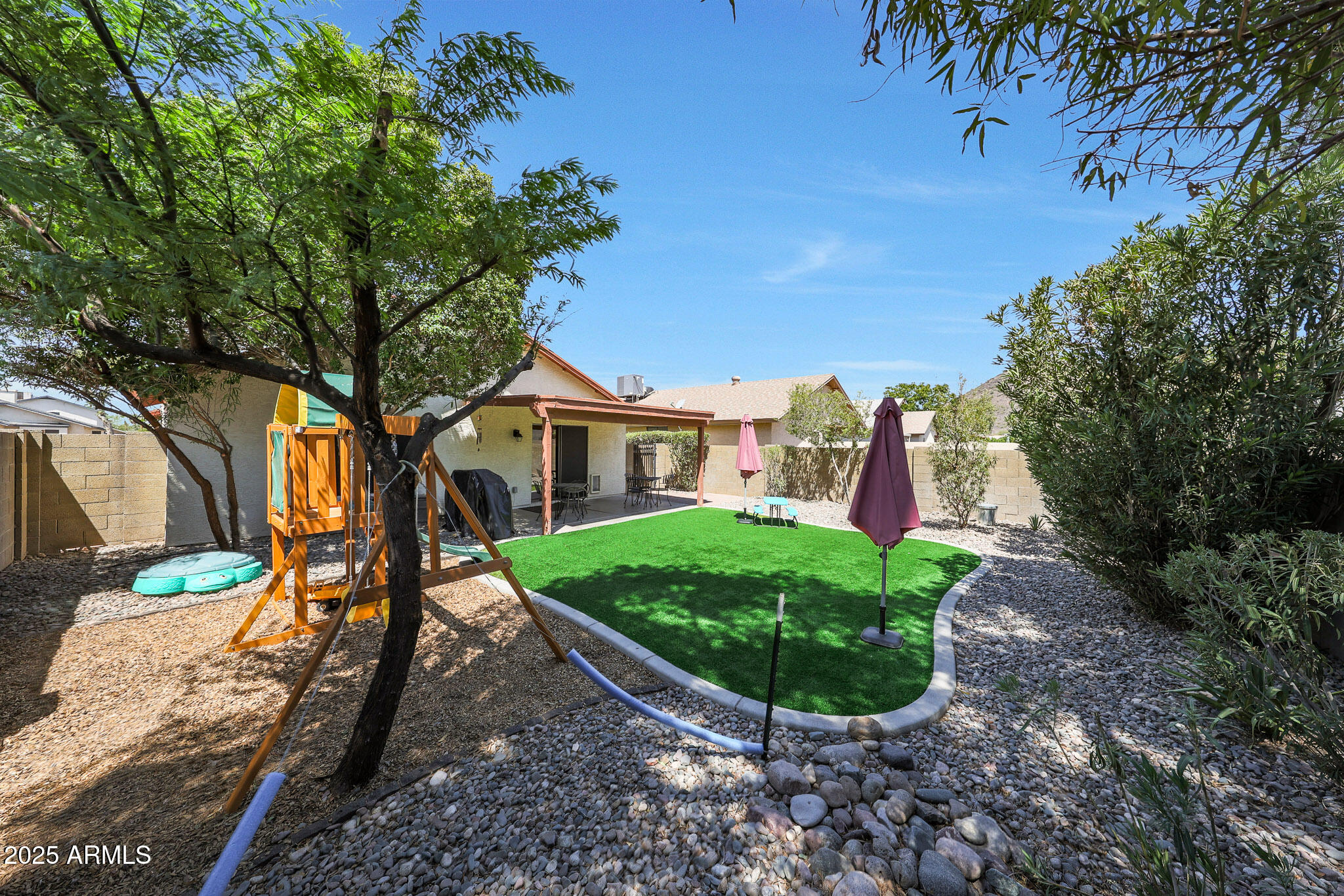 Bright, Cozy, and Full of Charm! This inviting 3-bedroom, 2-bathroom home perfectly balances comfort, character, and thoughtful design. From the moment you arrive, the curb appeal stands out with mature landscaping and a welcoming entry that offers both privacy and warmth--setting the tone for the rest of the home. Step inside to a bright, airy layout filled with natural light and a relaxed sense of flow. The open living areas connect seamlessly, offering the ideal mix of comfort and functionality. Whether you're sipping morning coffee or hosting friends in the evening, this layout is as easy to love as it is to live in. The primary suite offering a comfortable retreat complete with its own en-suite bathroom. Both bathrooms have been maintained with care and feature clean, timeless finishes. The heart of the home opens up to the backyard a private, low-maintenance escape you'll enjoy year-round. Thoughtfully designed with artificial turf and a spacious covered patio, the space is ideal for relaxing evenings, weekend BBQs, or simply enjoying a quiet moment outdoors. Whether you're entertaining or unwinding, this backyard delivers both function and charm with ease. The front yard landscaping not only adds curb appeal, but also provides an added layer of privacy, creating a peaceful buffer from the street while still feeling warm and welcoming. This home has been lovingly cared for and it shows from the maintained exterior to the fresh interiors, it's move-in ready and waiting for its next chapter. If you're looking for a home that offers comfort, character, and outdoor space designed for Arizona living, this one checks all the boxes.