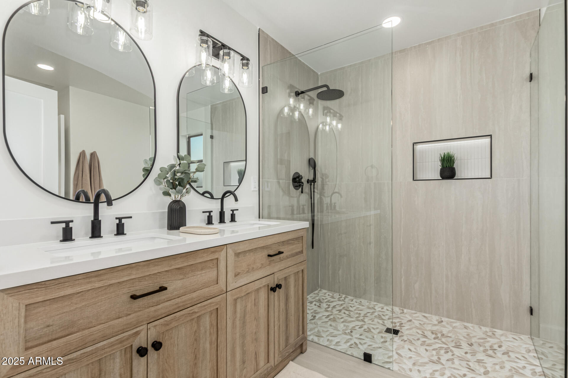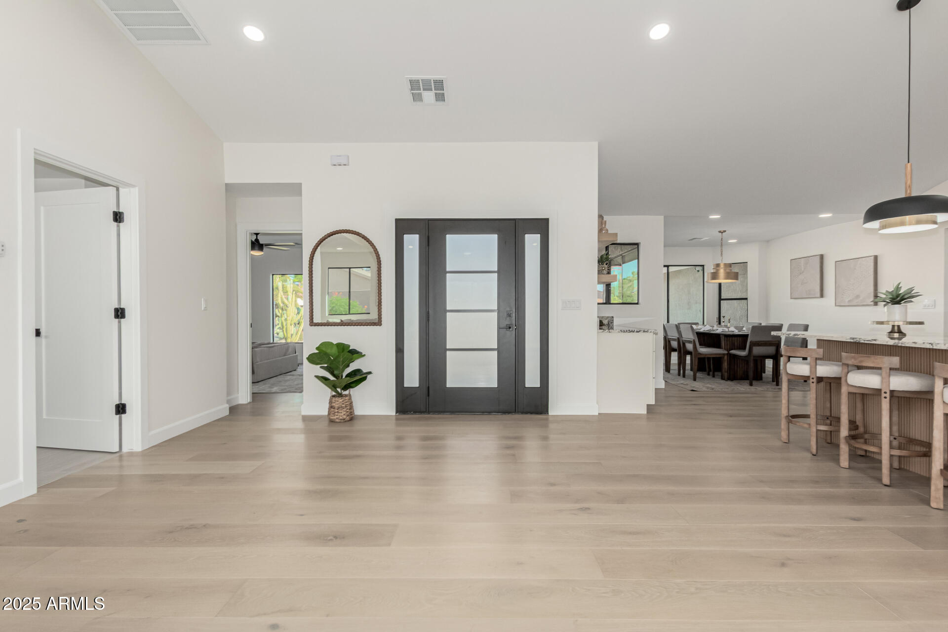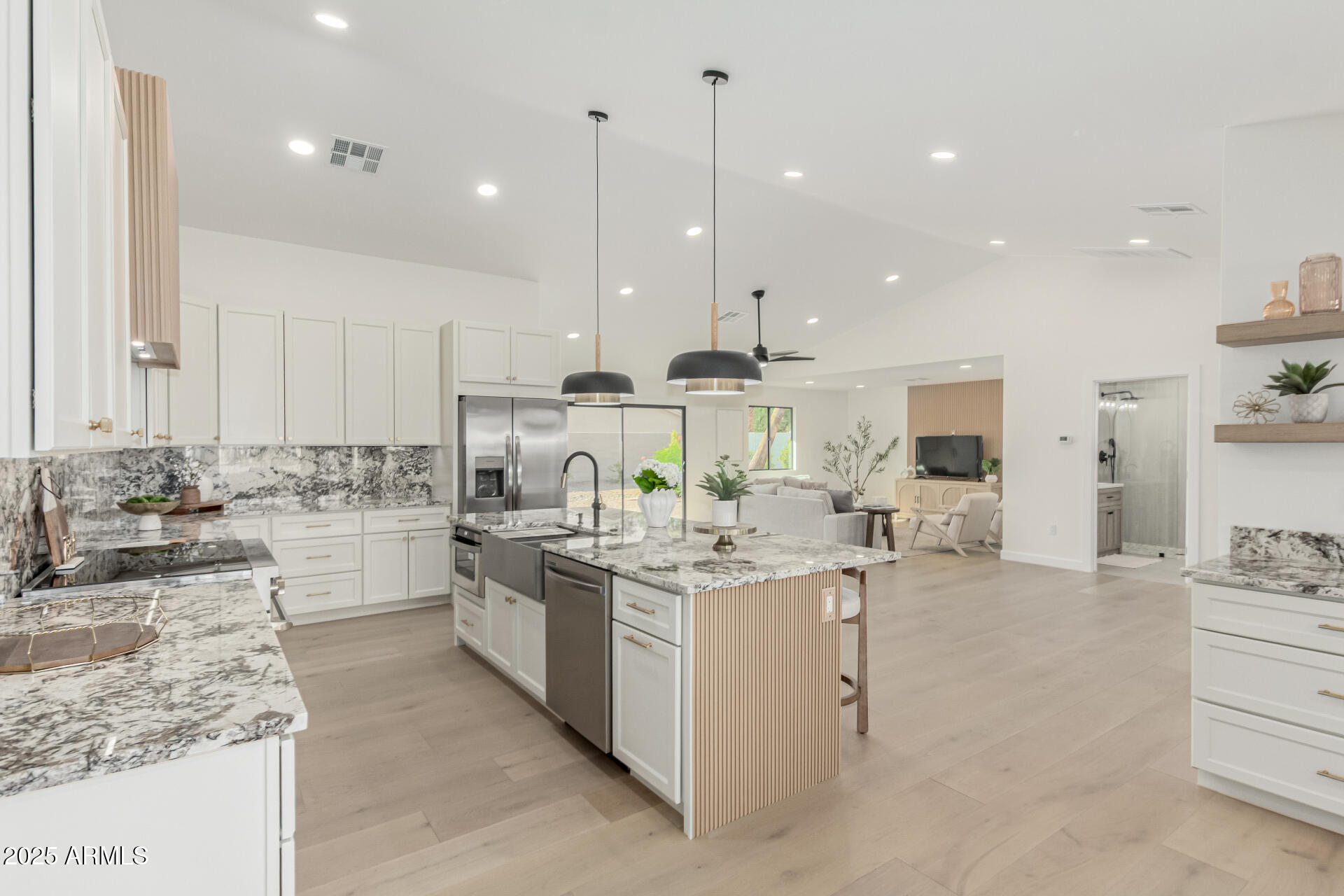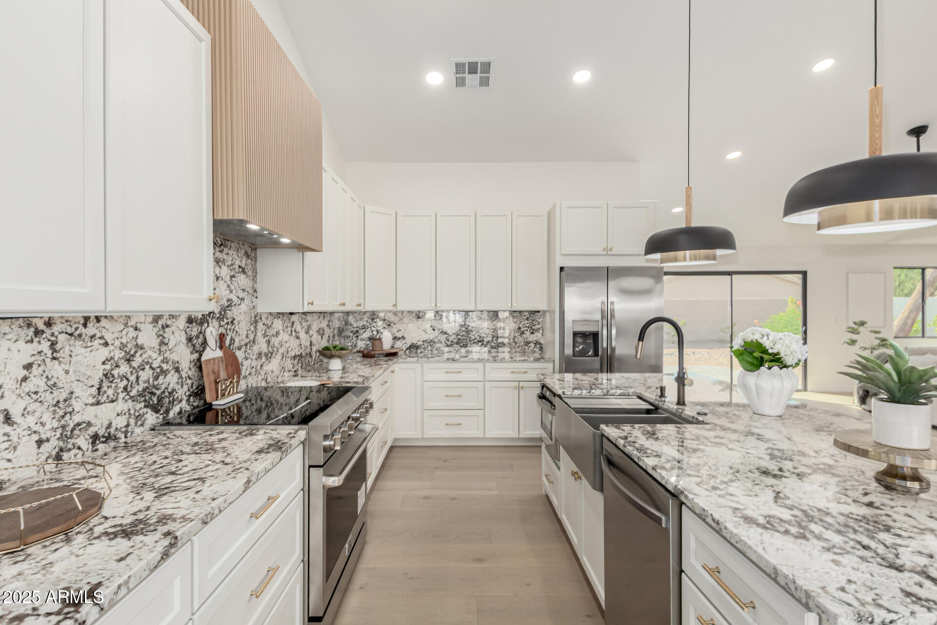 E X Q U I S I T E Residence. Inside, you'll find a perfectly flowing layout showcasing clean lines in favor of a sleek & modern design. Soothing palette, recessed lighting t/o, & 9'' wide plank glue down wood flooring are features you'll love! The stunning New kitchen boasts granite counters, white shaker cabinets with custom accents, SS appliances, pendant lighting, under cabinet lighting, under cabinet plugs & large custom island. End your busy day in one of three primary luxurious master suites. Lavish spa-like bathrooms, custom vanities, expansive custom showers with large rain shower heads, custom niche with lighting. Large custom closets in each room. Spending relaxing afternoons in the stunning private backyard, it will be your favorite spot for relaxing, casual dining, or hosting reunions. Discover everything the community offers, such as the pool, golf courses, pickleball courts, media room & more! You don't want to miss it!