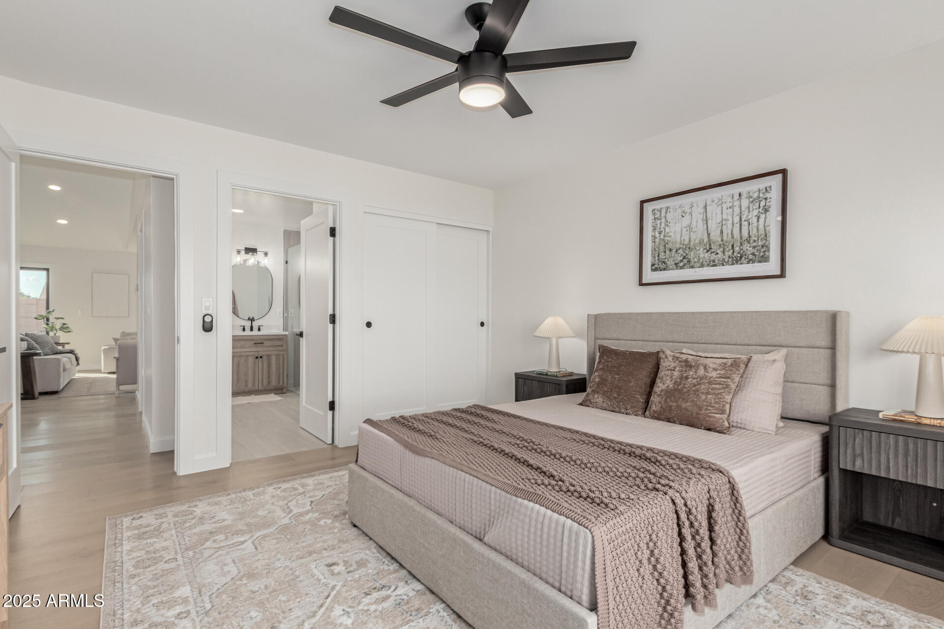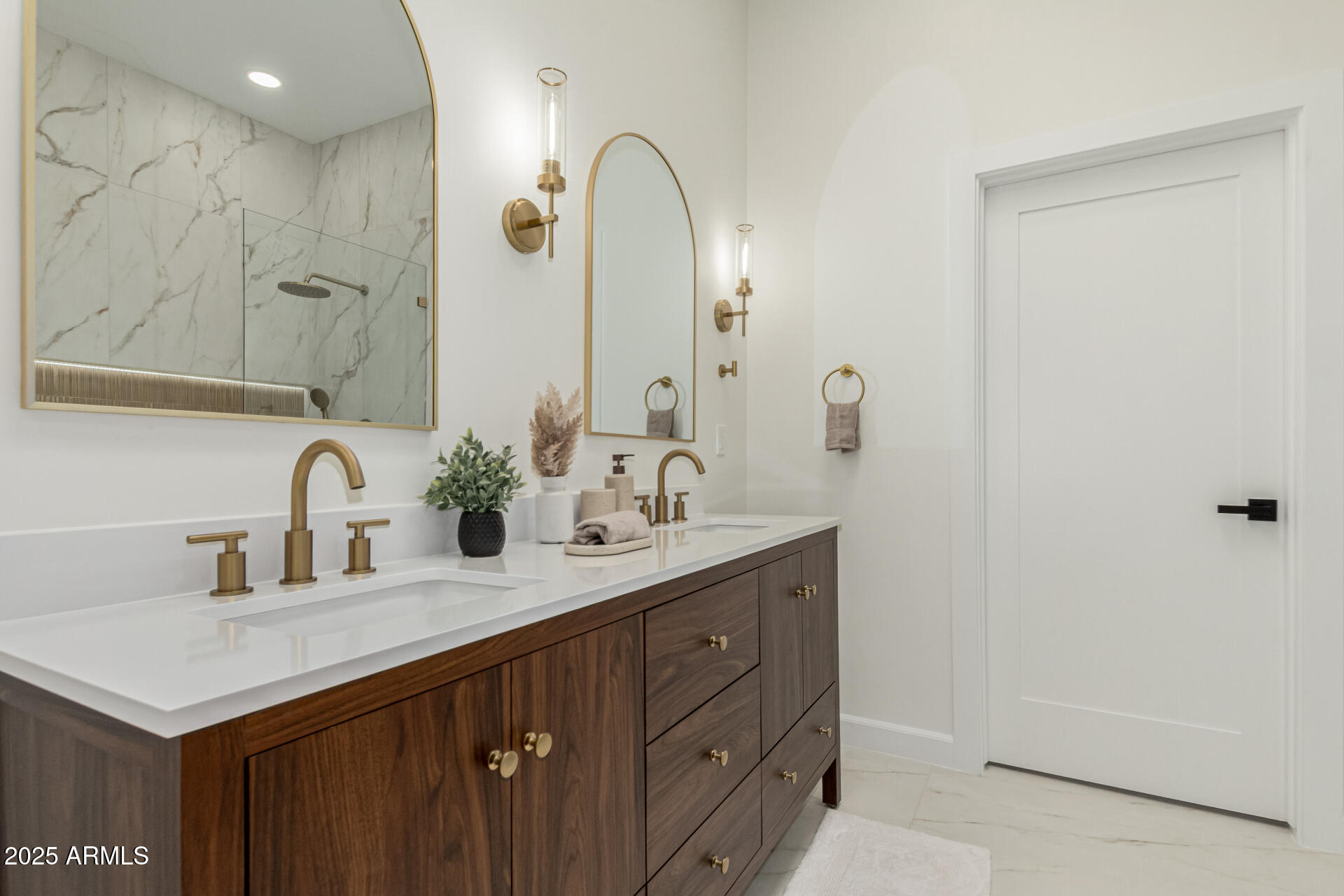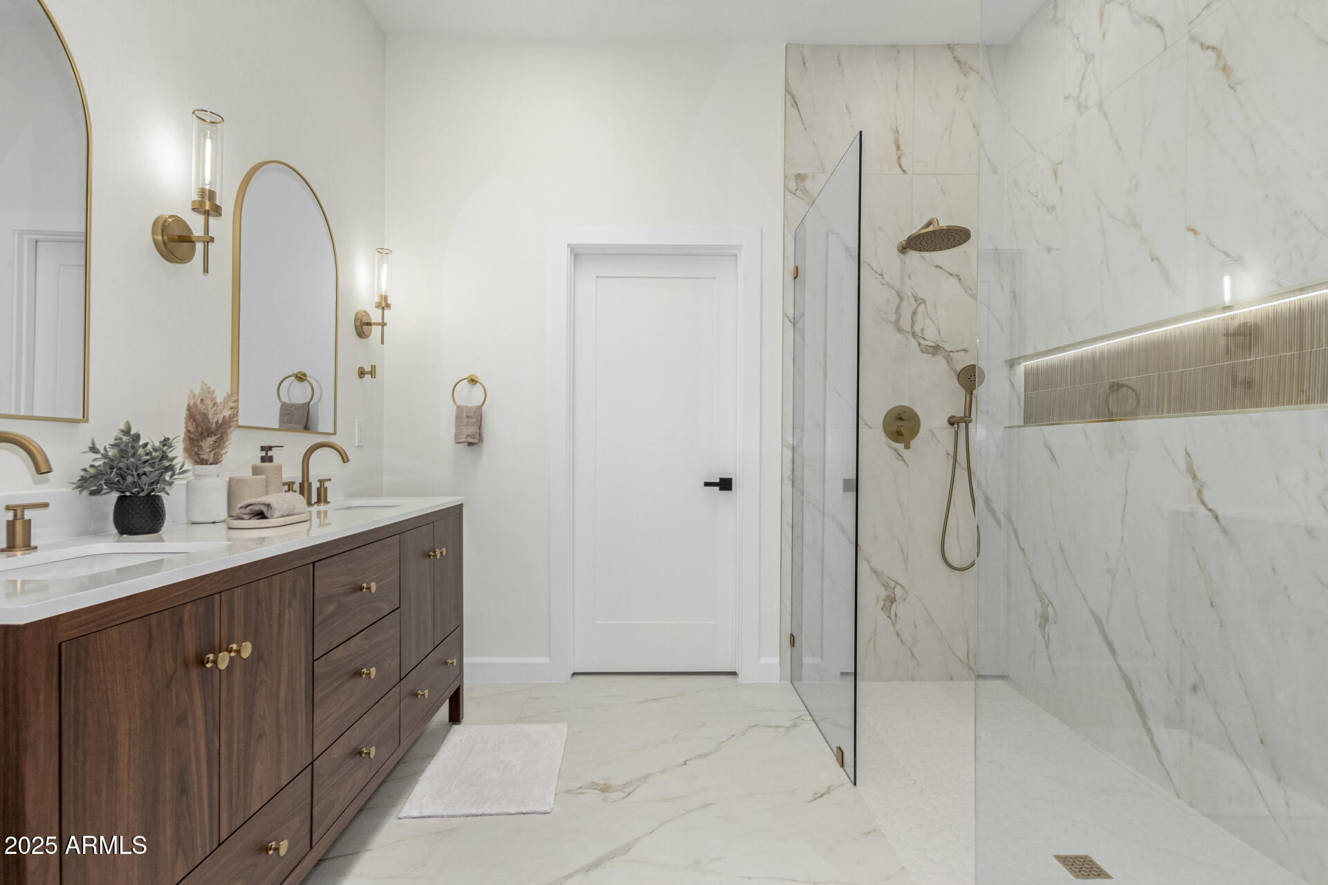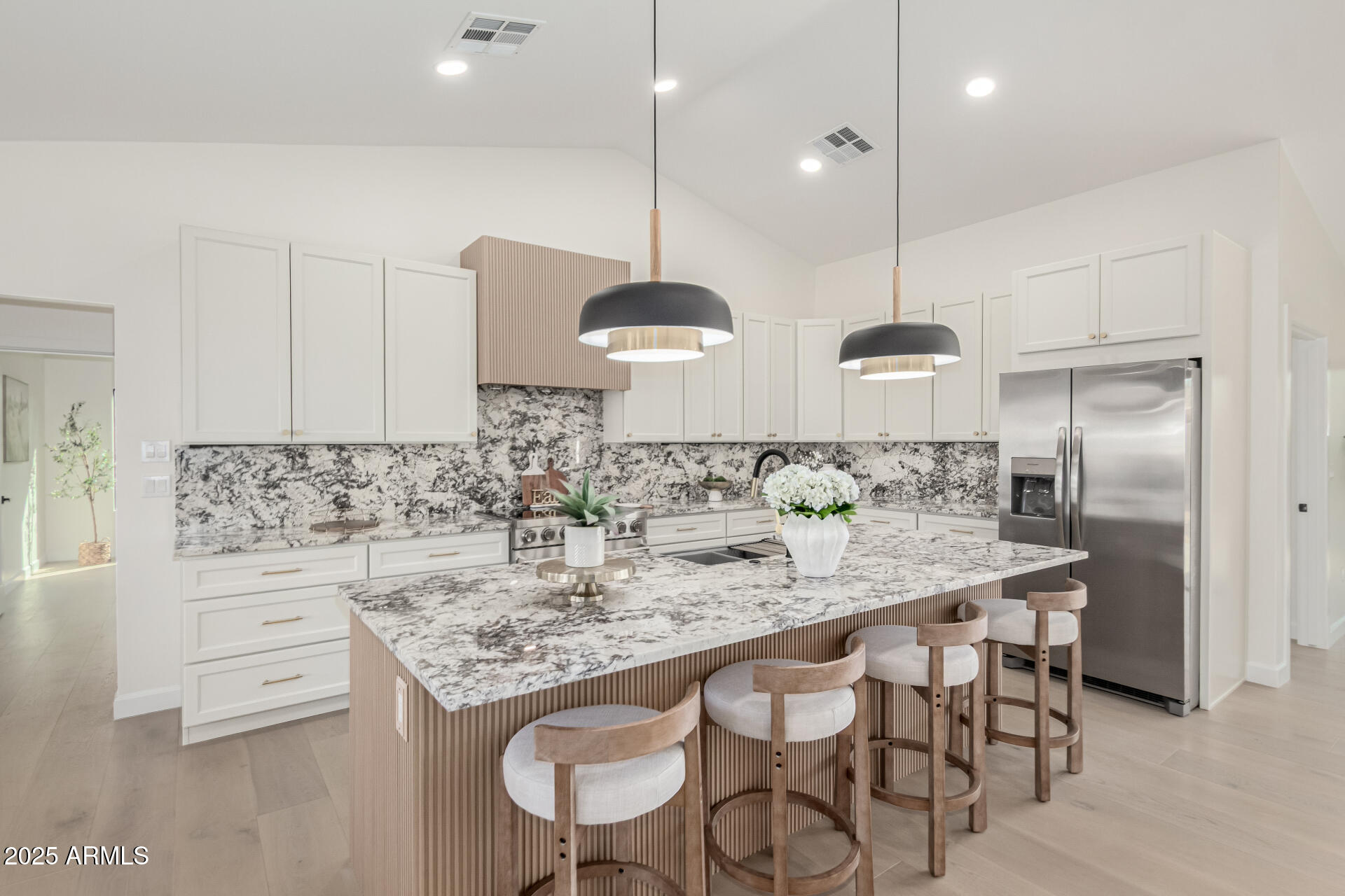 E X Q U I S I T E Residence. Inside, you'll find a perfectly flowing layout showcasing clean lines in favor of a sleek & modern design. Soothing palette, recessed lighting t/o, & 9'' wide plank glue down wood flooring are features you'll love! The stunning New kitchen boasts granite counters, white shaker cabinets with custom accents, SS appliances, pendant lighting, under cabinet lighting, under cabinet plugs & large custom island. End your busy day in one of three primary luxurious master suites. Lavish spa-like bathrooms, custom vanities, expansive custom showers with large rain shower heads, custom niche with lighting. Large custom closets in each room. Spending relaxing afternoons in the stunning private backyard, it will be your favorite spot for relaxing, casual dining, or hosting reunions. Discover everything the community offers, such as the pool, golf courses, pickleball courts, media room & more! You don't want to miss it!