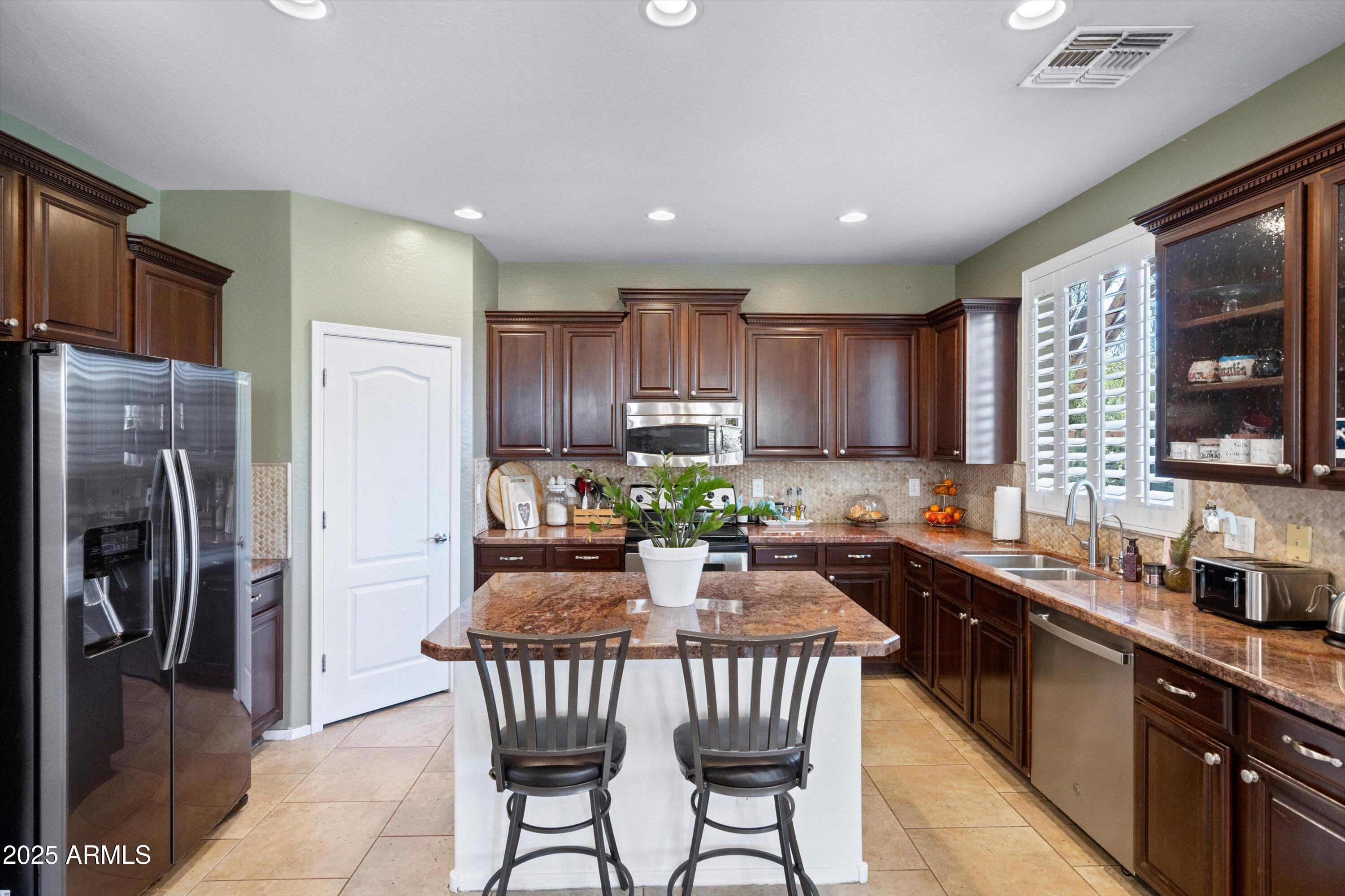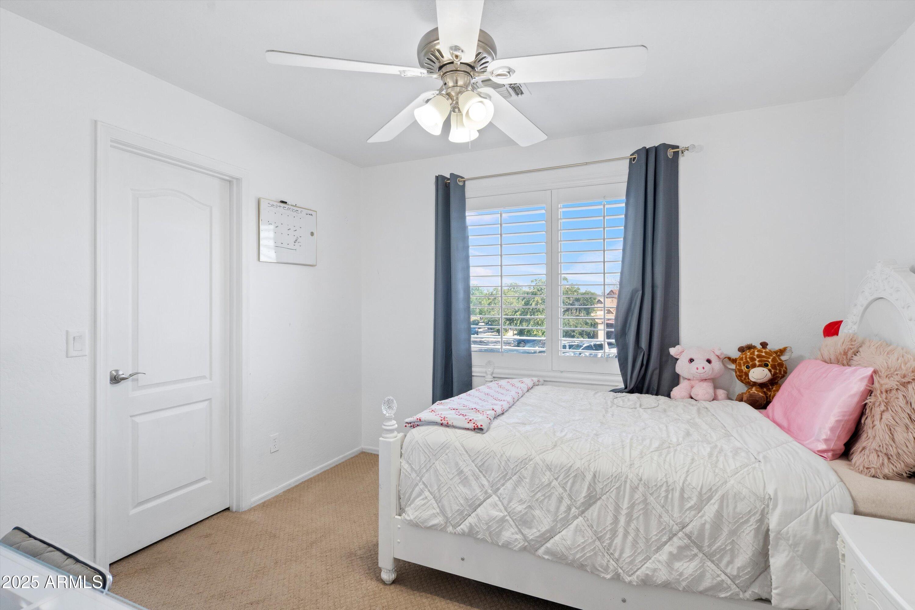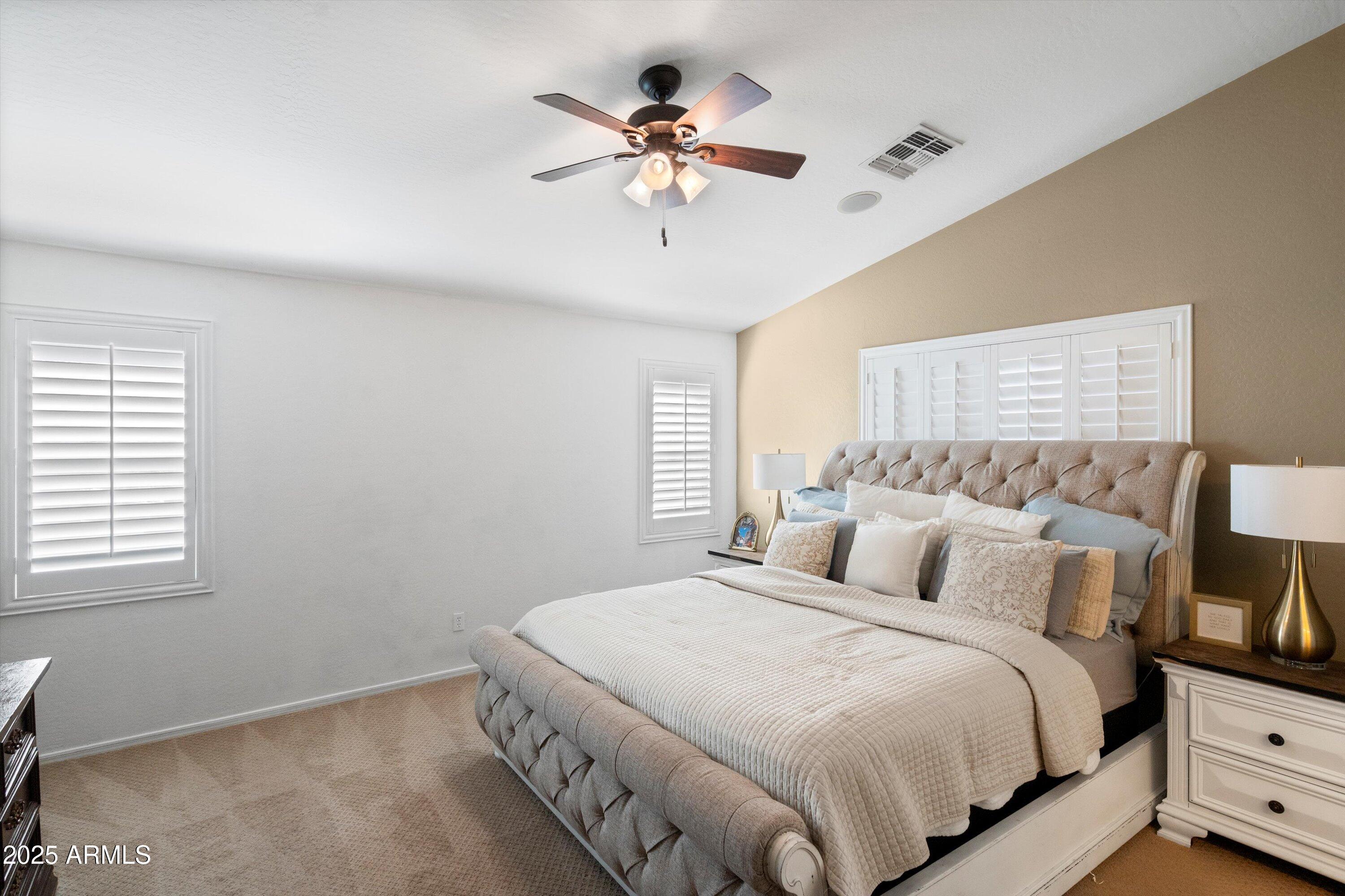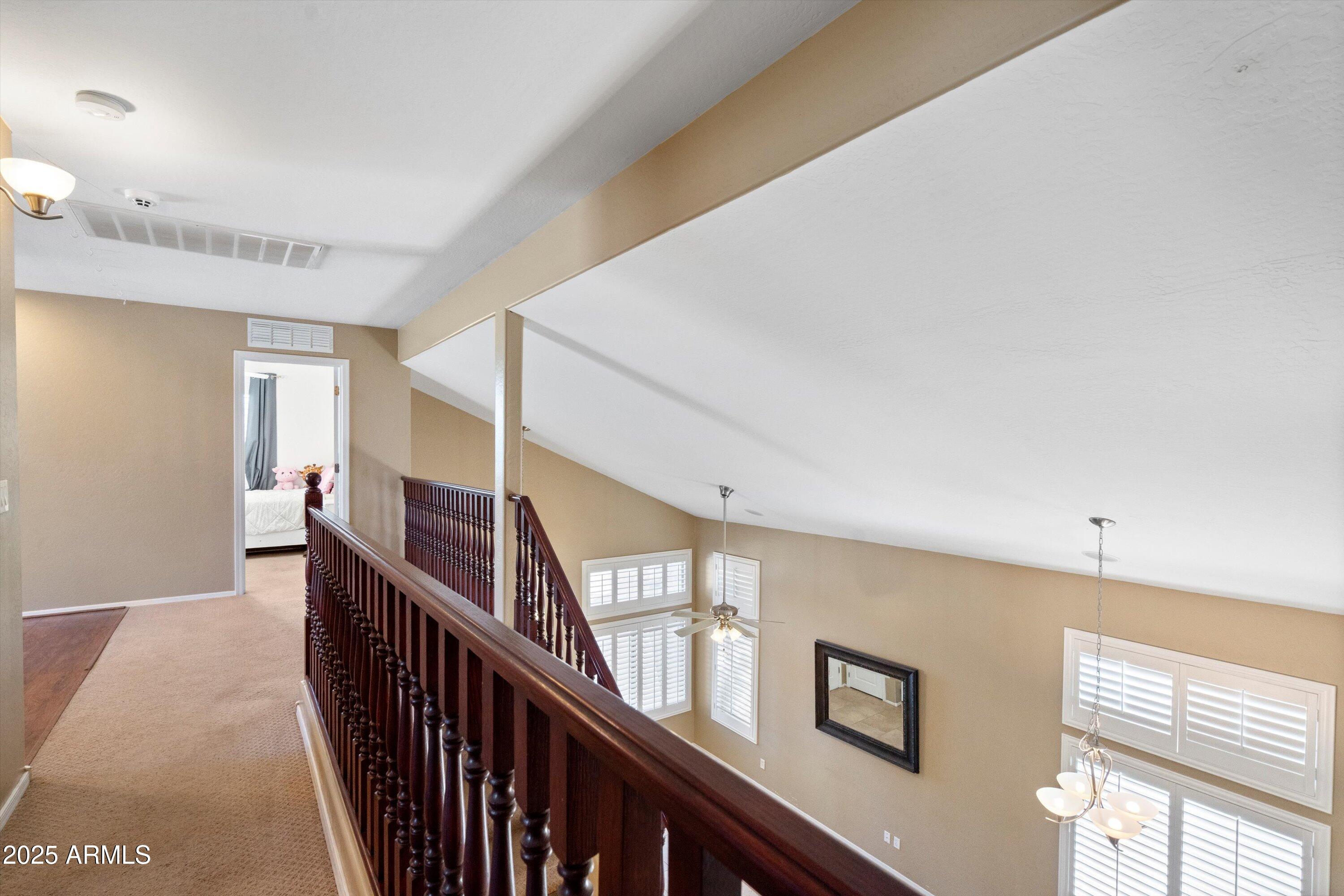 Former model home offering space, comfort, and endless potential. This well-designed home features 4 bedrooms, 3 full baths, and generous closet space in three of the bedrooms. Large windows with plantation shutters fill the home with natural light, complemented by beautiful tile flooring in the main living areas and carpet in the right places. A staircase with Brazilian cherry-style railing leads to an open loft; perfect as a playroom, home office, or media space. The kitchen is finished with granite countertops and ample cabinetry, creating a great flow for entertaining. Step outside to the covered patio overlooking a fenced-in pool and a large backyard. with RV Gate ready for your personal touch. Located in a desirable neighborhood close to shopping, dining, and entertainment, enjoy quick access to restaurants, local parks, and nearby schools. The home also features solar panels, helping reduce energy costs year-round.