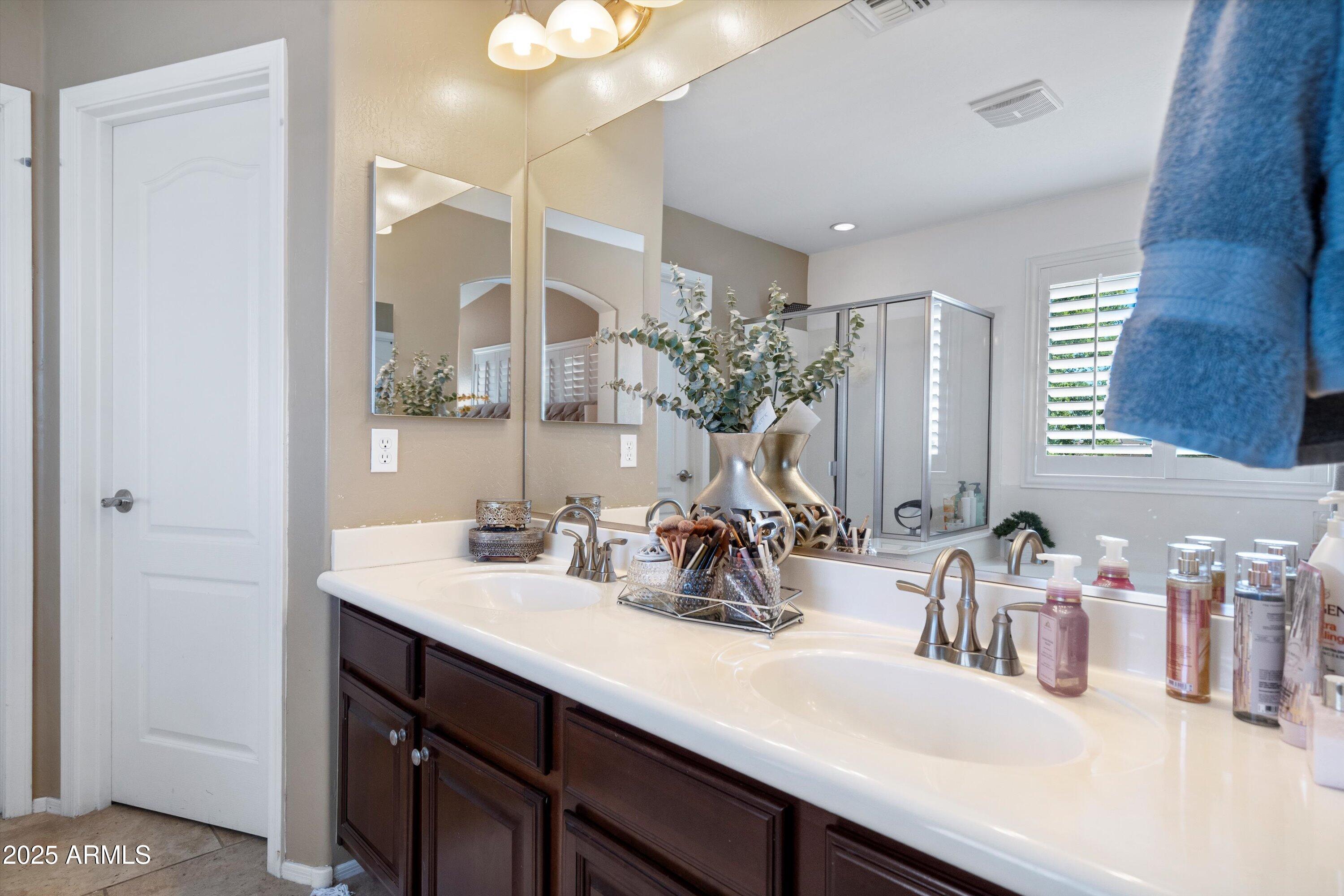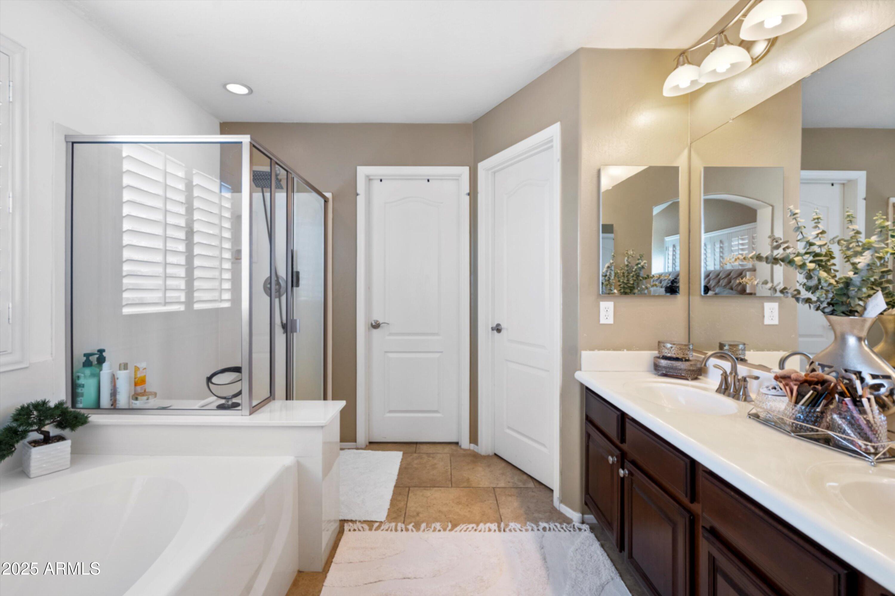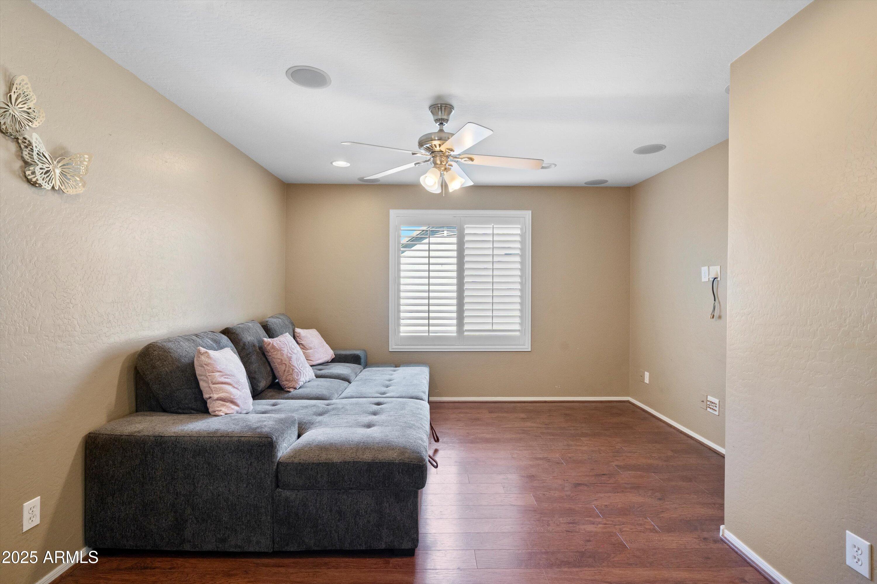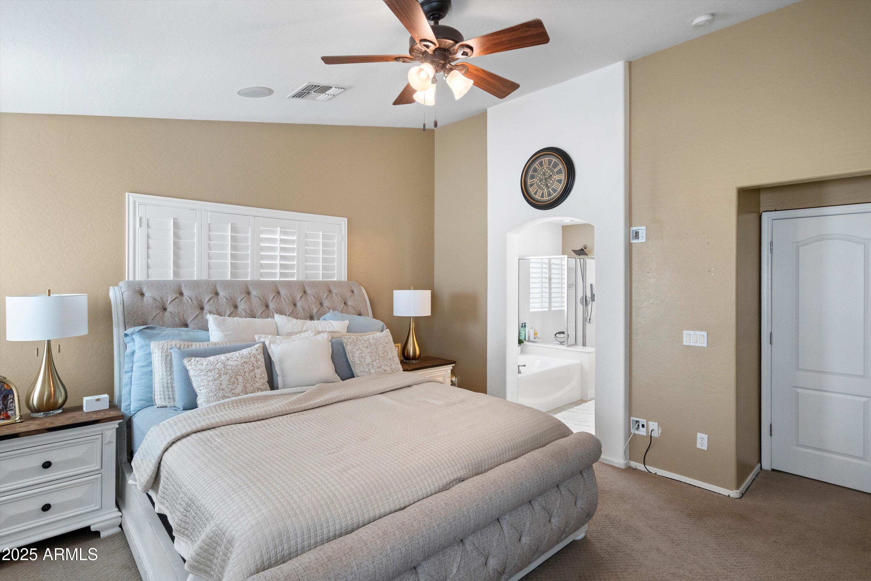Former model home offering space, comfort, and endless potential. This well-designed home features 4 bedrooms, 3 full baths, and generous closet space in three of the bedrooms. Large windows with plantation shutters fill the home with natural light, complemented by beautiful tile flooring in the main living areas and carpet in the right places. A staircase with Brazilian cherry-style railing leads to an open loft; perfect as a playroom, home office, or media space. The kitchen is finished with granite countertops and ample cabinetry, creating a great flow for entertaining. Step outside to the covered patio overlooking a fenced-in pool and a large backyard. with RV Gate ready for your personal touch. Located in a desirable neighborhood close to shopping, dining, and entertainment, enjoy quick access to restaurants, local parks, and nearby schools. The home also features solar panels, helping reduce energy costs year-round.