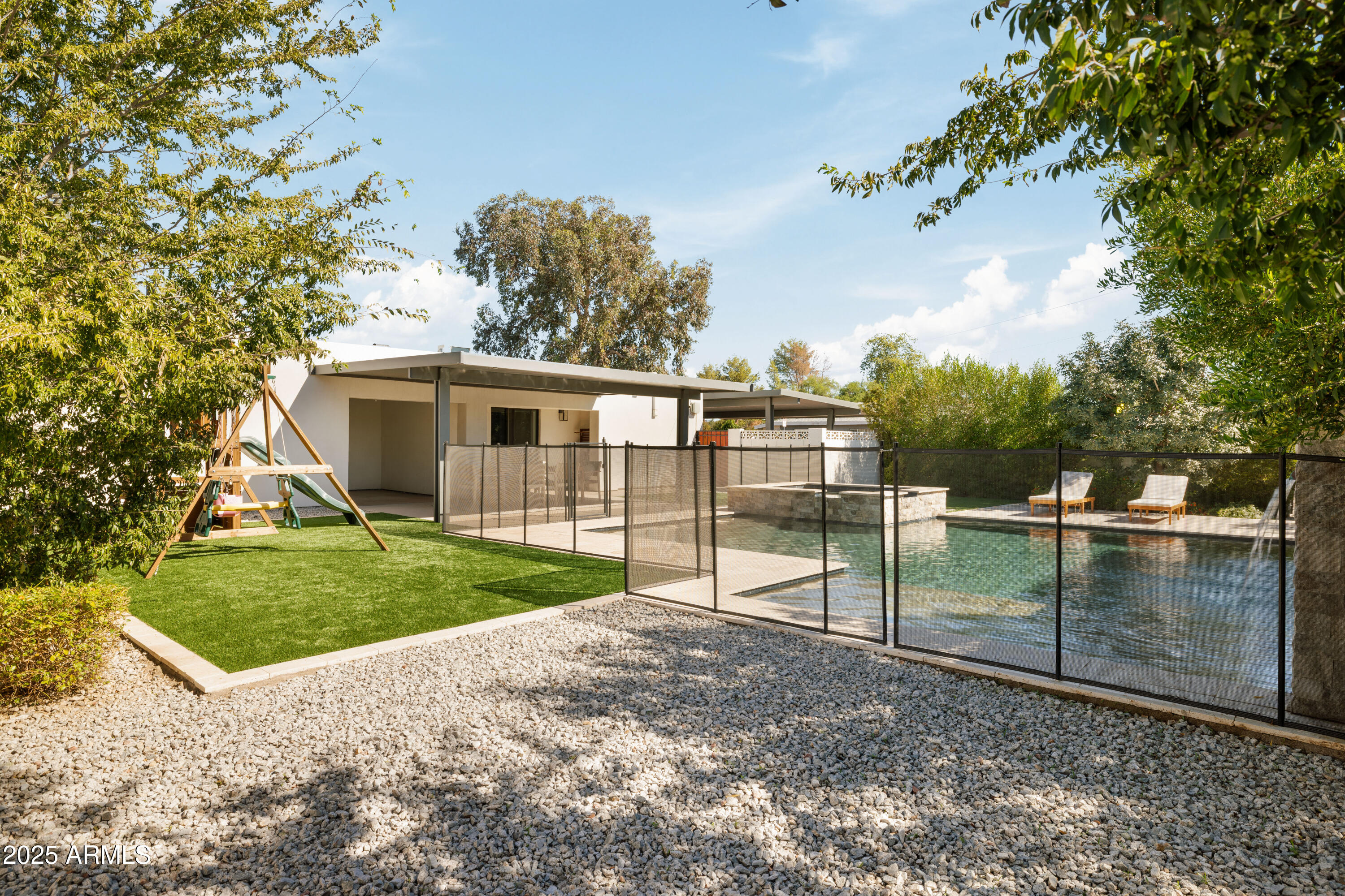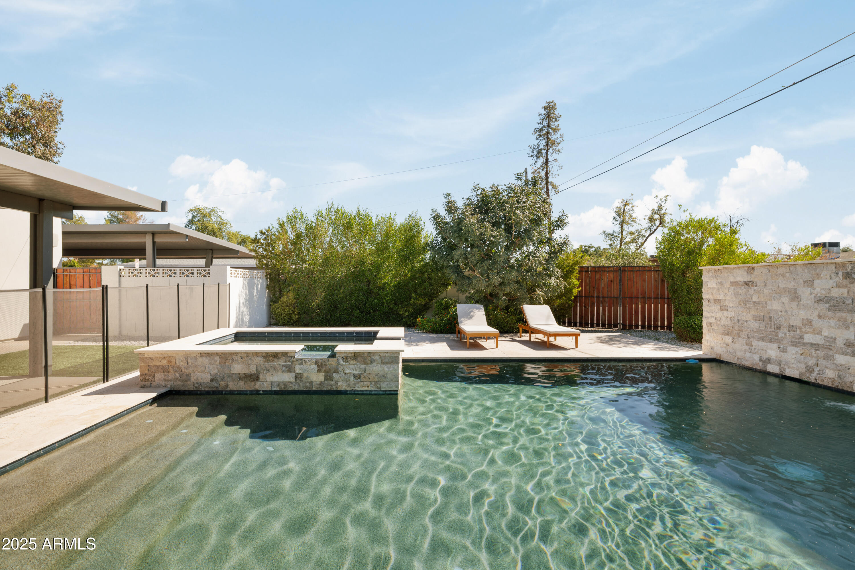This one's got it all: design, location, & the kind of upgrades you actually want. Inside, at nearly 2,000 SqFt, you'll find an open floor plan with 4 beds & 3 baths & a beautiful updated kitchen. There are 2 incredible bedrooms with highly updated en suites. Outside, on an almost 9,000 SqFt lot, the backyard is the showstopper--new pool + spa, a huge covered patio, turf, & plenty of room to play or lounge. The updated roof & sewer lines give you some peace of mind when looking at this home that was built in 1956. This one has beautiful finishes from top to bottom that you have to see! Well located in Central Phoenix near the 51 freeway, and close by to good hiking, great dining, and the Biltmore Fashion Park! Don't miss this home!