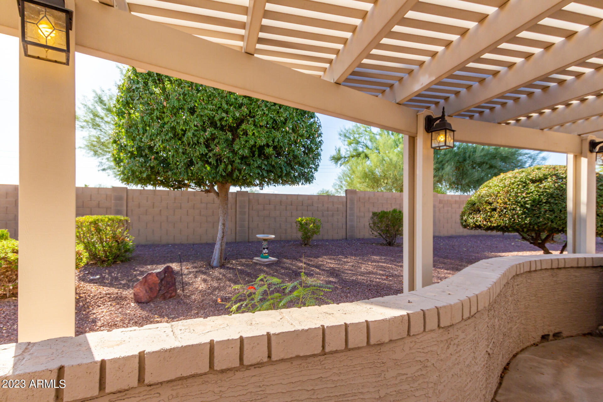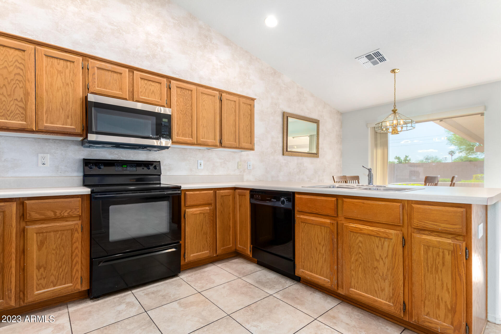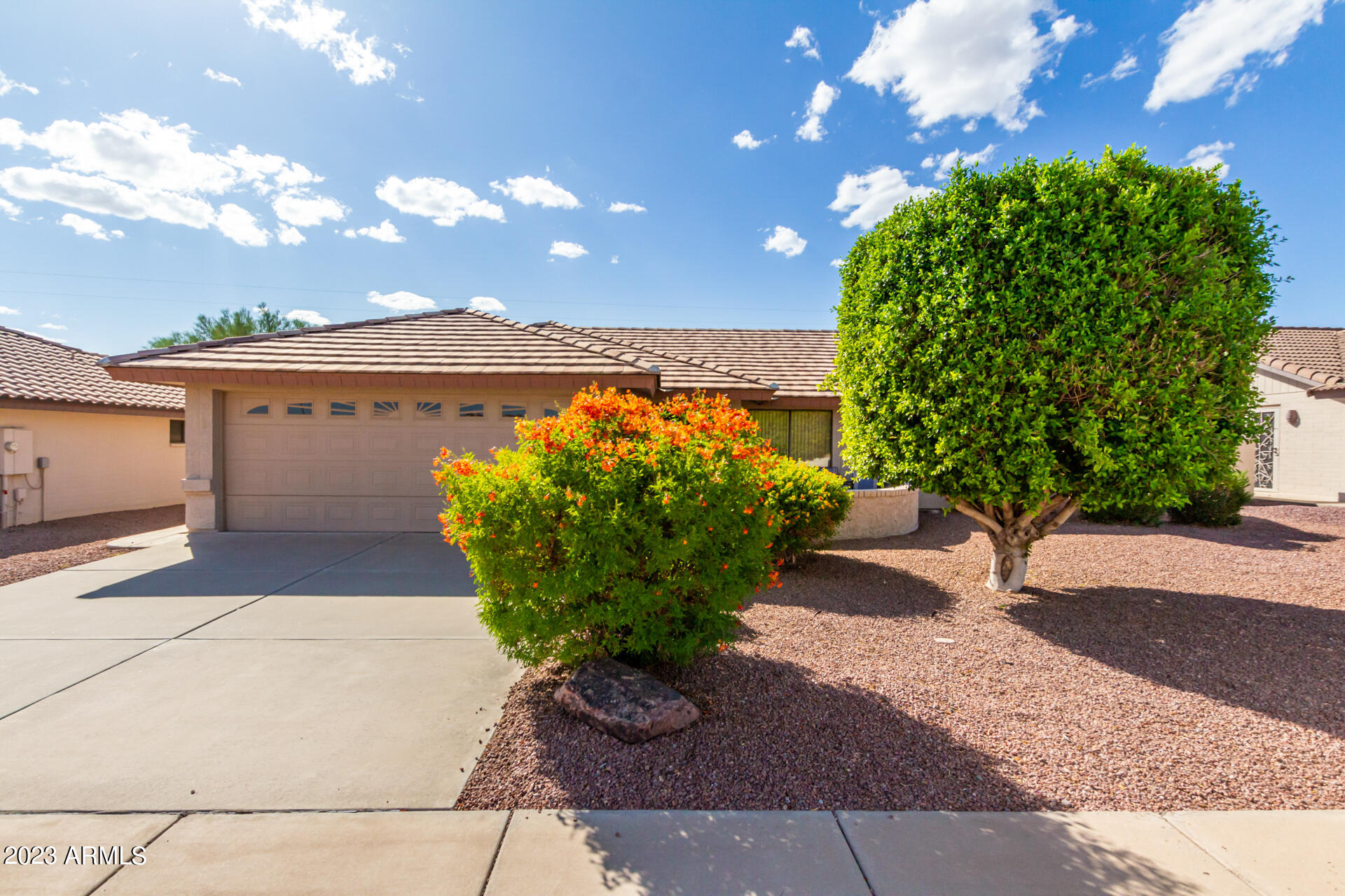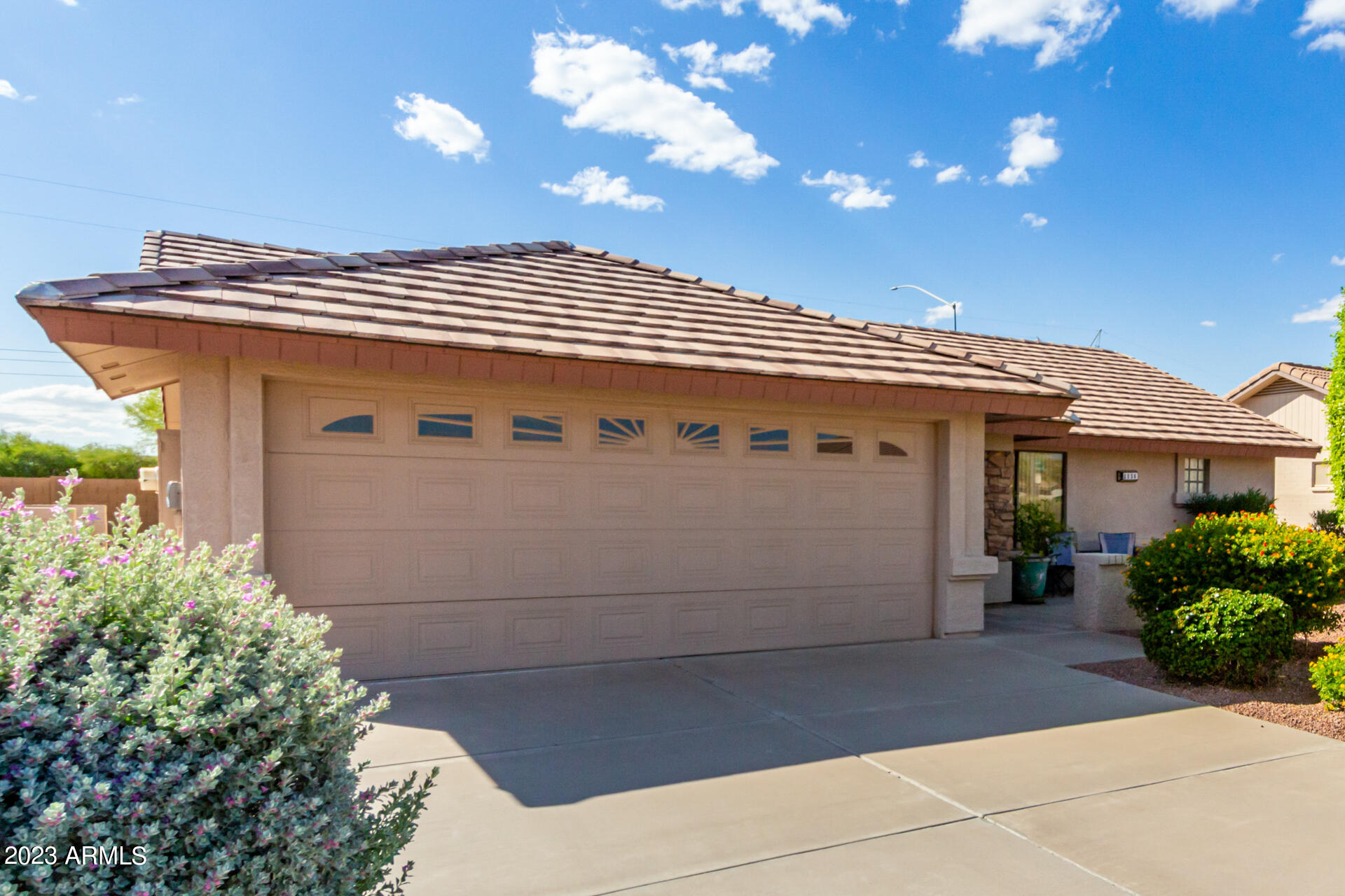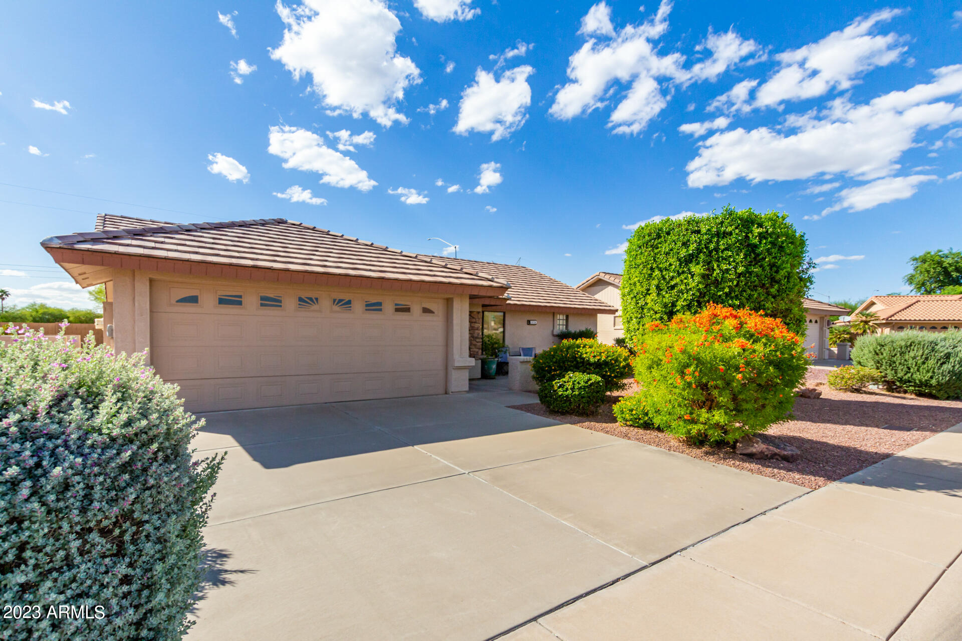 Charming 2-bedroom home in the sought-after adult community of Sunland Springs Village. Inside, you'll find a luminous living room adorned with tile floors and vaulted ceilings. The eat-in kitchen boasts recessed lighting, oak cabinets, built-in appliances, and a peninsula with a breakfast bar for leisurely mornings. The main bedroom offers privacy with its own bathroom and a spacious walk-in closet. Added storage is provided with attached cabinets in the garage. Relax outdoors on a covered patio, under the attached Ramada, or in the cozy seating areas - perfect for sipping your favorite beverage. Enjoy the neighborhood's amenities, such as a pool, spa, fitness center, and more! Don't let this gem slip away!