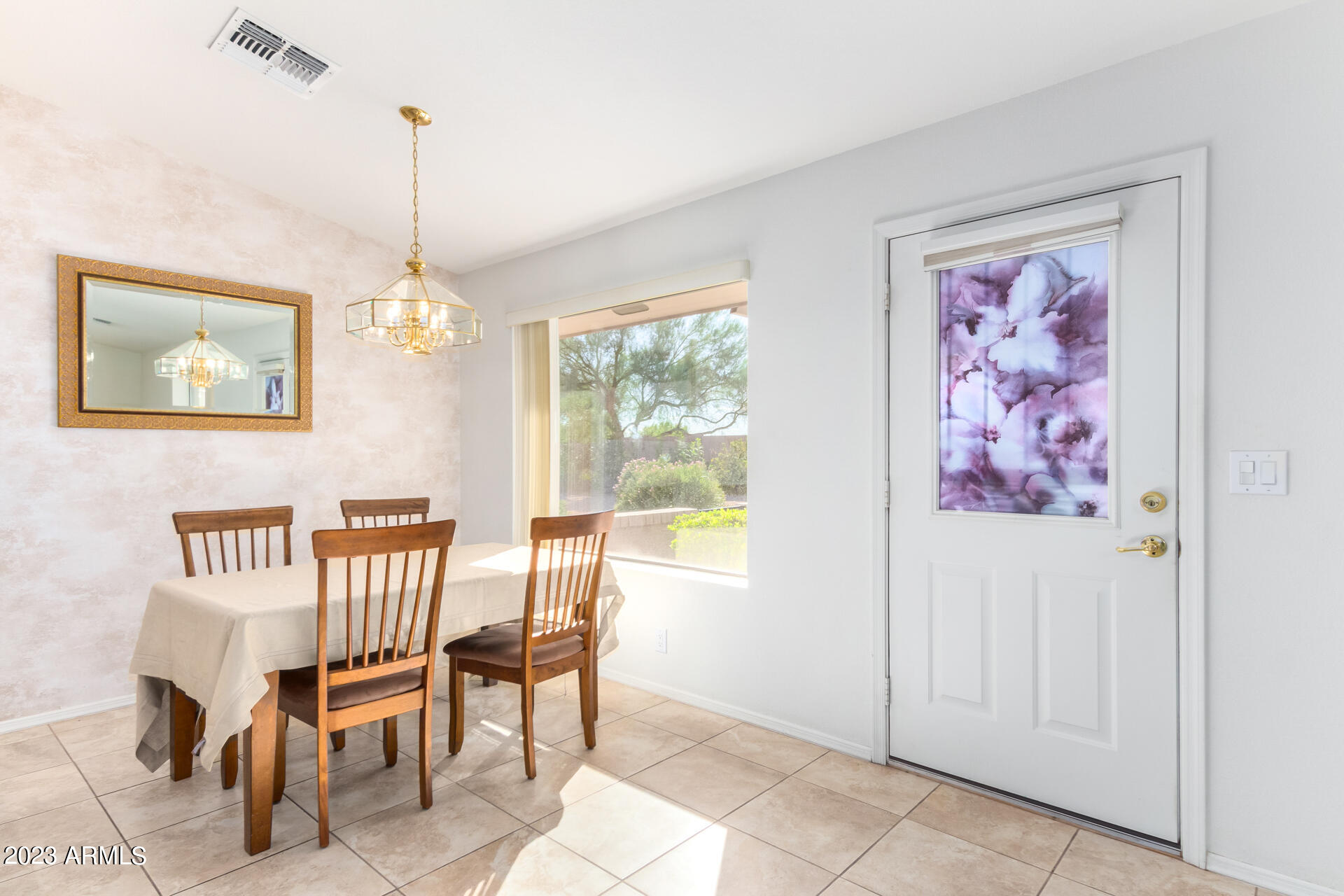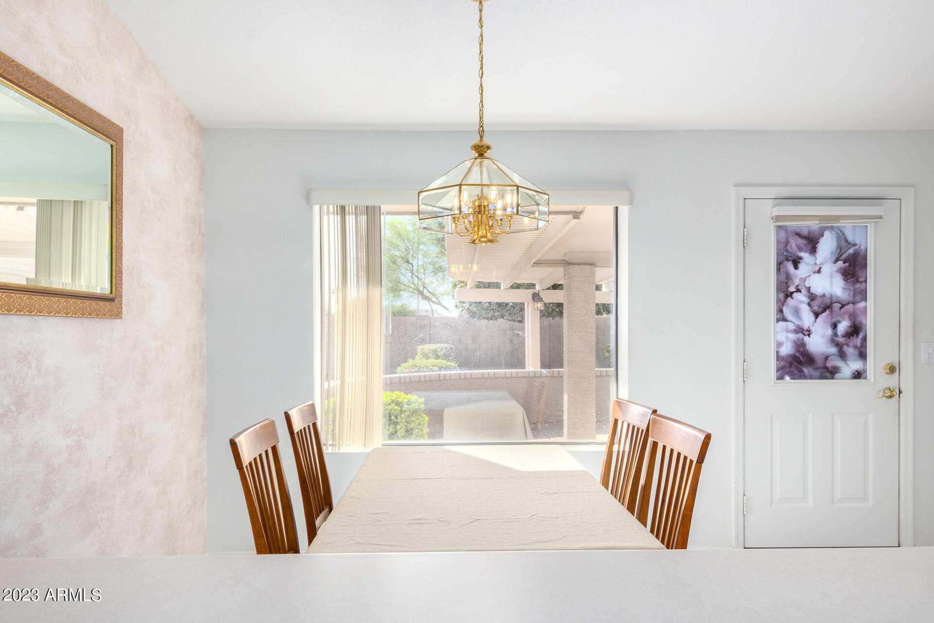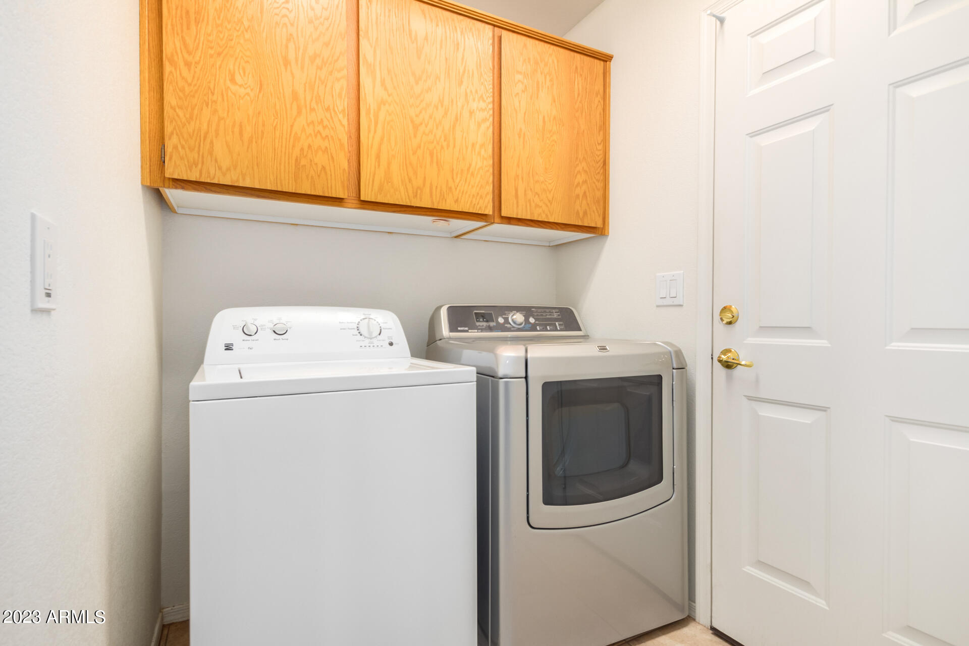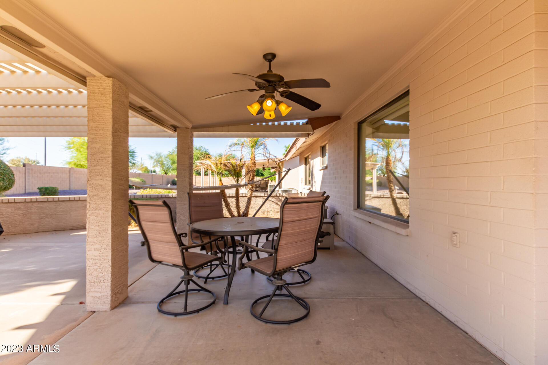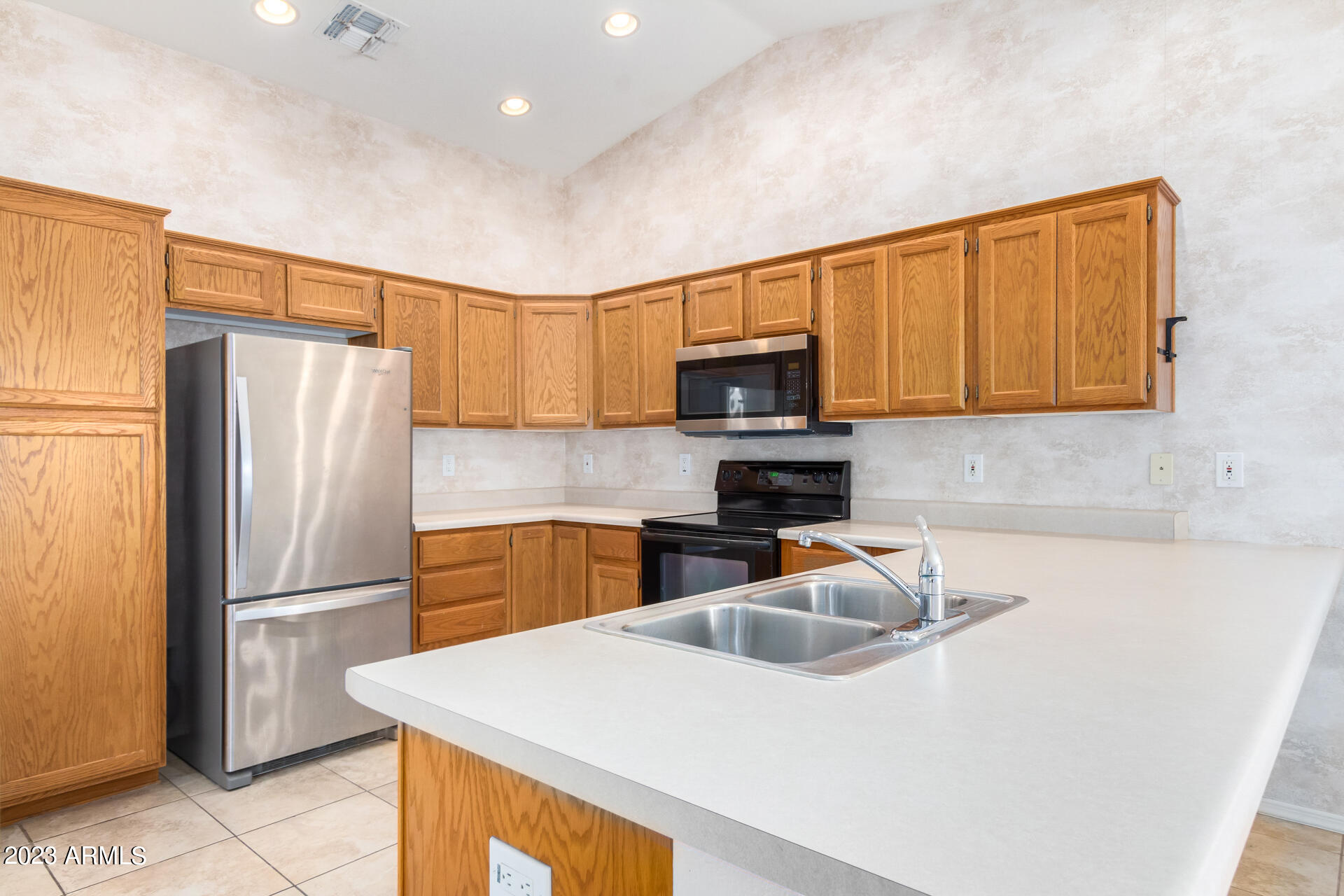 Charming 2-bedroom home in the sought-after adult community of Sunland Springs Village. Inside, you'll find a luminous living room adorned with tile floors and vaulted ceilings. The eat-in kitchen boasts recessed lighting, oak cabinets, built-in appliances, and a peninsula with a breakfast bar for leisurely mornings. The main bedroom offers privacy with its own bathroom and a spacious walk-in closet. Added storage is provided with attached cabinets in the garage. Relax outdoors on a covered patio, under the attached Ramada, or in the cozy seating areas - perfect for sipping your favorite beverage. Enjoy the neighborhood's amenities, such as a pool, spa, fitness center, and more! Don't let this gem slip away!
