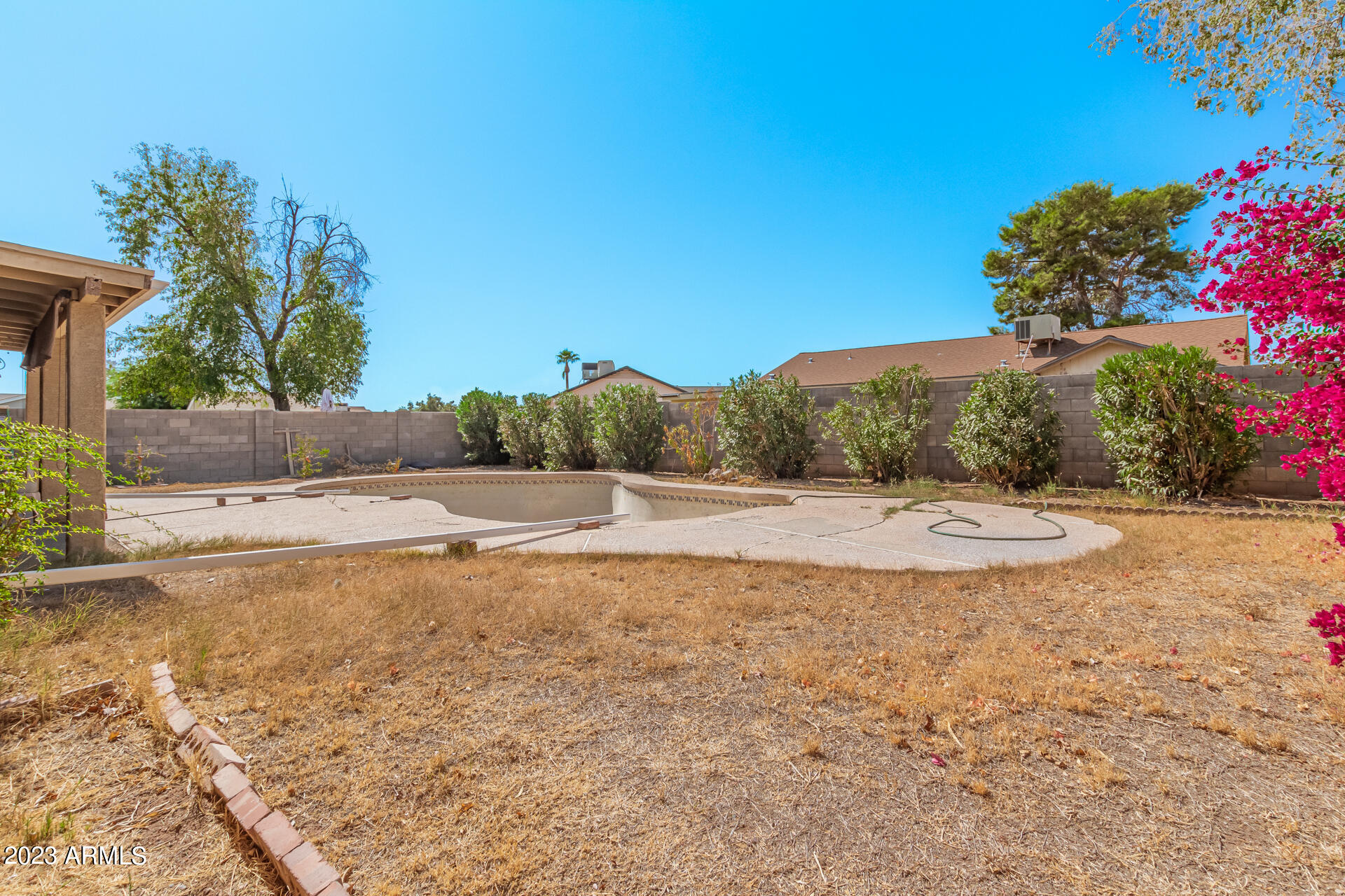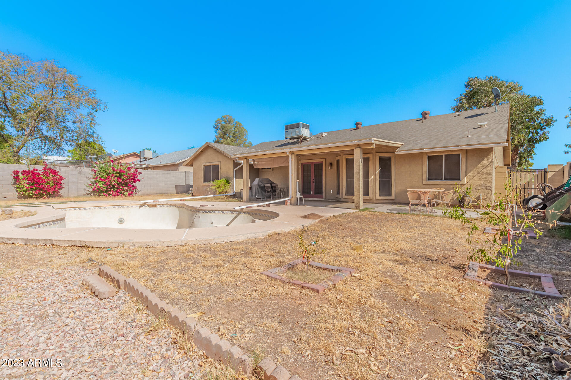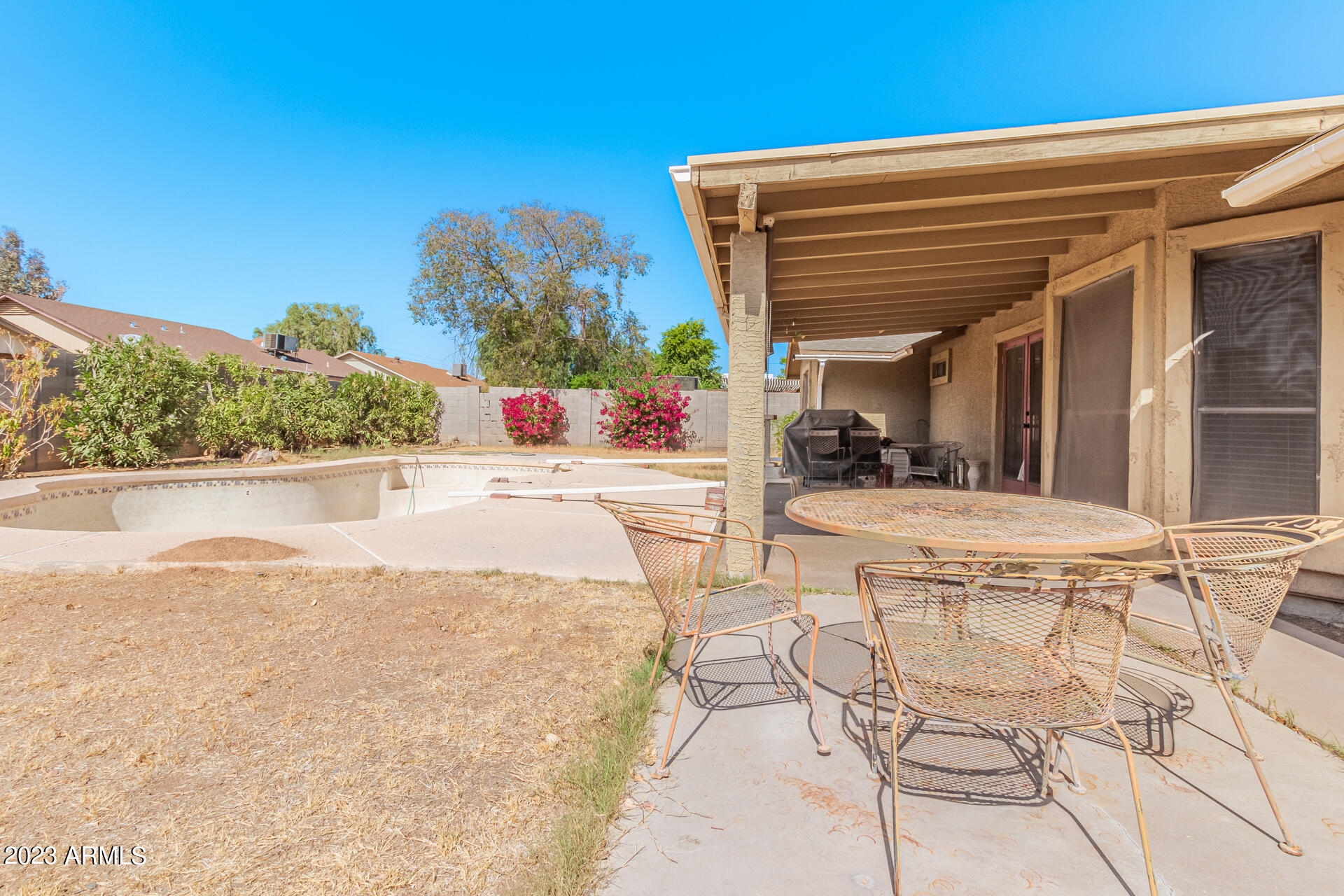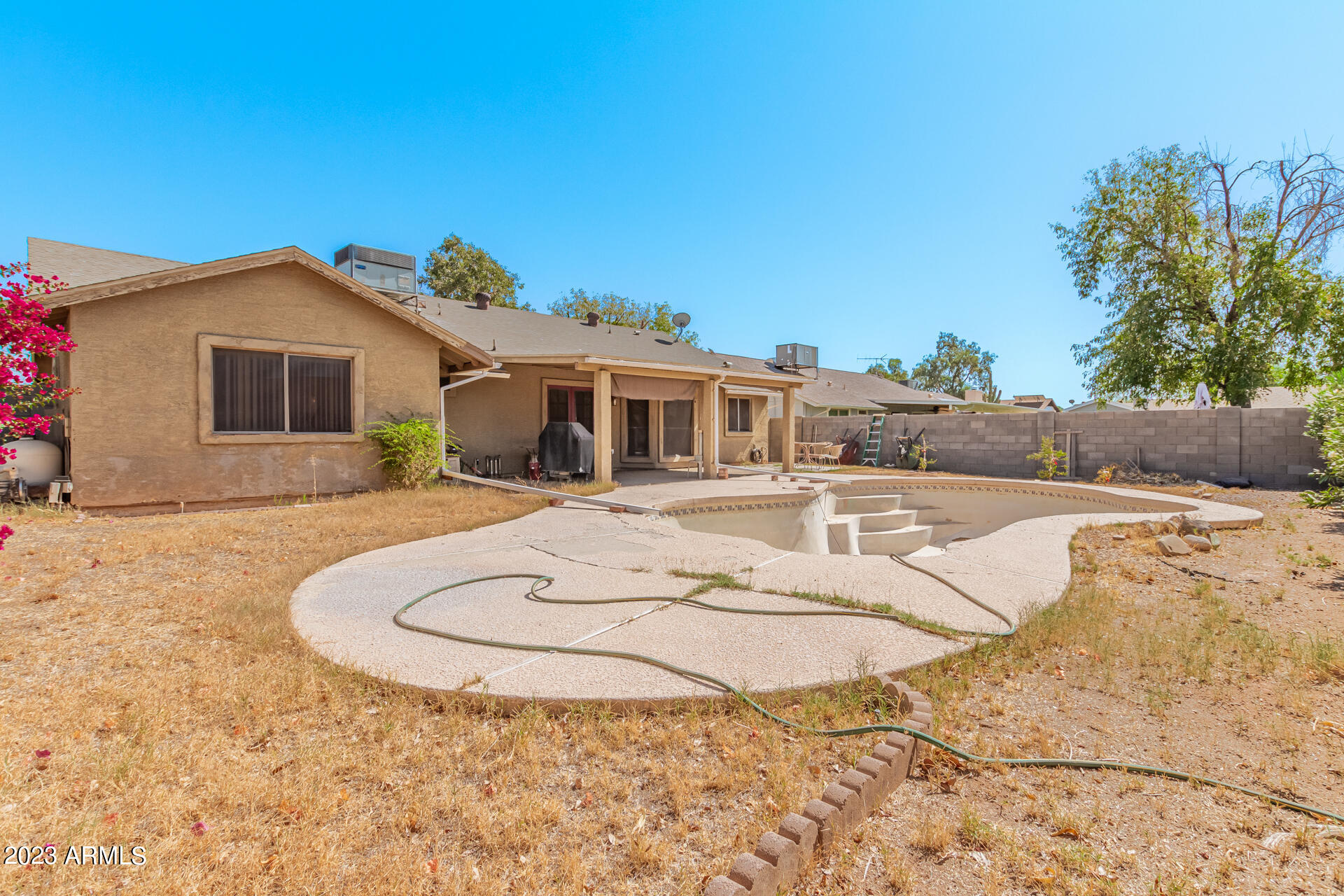 Delightful one-story home in Phoenix for sale! Light & bright interior features a mix of cozy carpet and sleek tile floors for added ease and convenience. The spacious living room flows seamlessly into the intimate family room, adorned with a calming color palette. Beautiful kitchen boasts oak cabinets, stainless steel appliances, glossy laminate counters, a convenient pantry, a breakfast bar peninsula, and a breakfast nook with a sunny bay window. Retreat to the main bedroom, highlighting double closets and an ensuite with dual sinks and grab bars. The generous backyard awaits, with a covered patio, private pool, and lovely desert plants. A move-in-ready gem not to be missed!