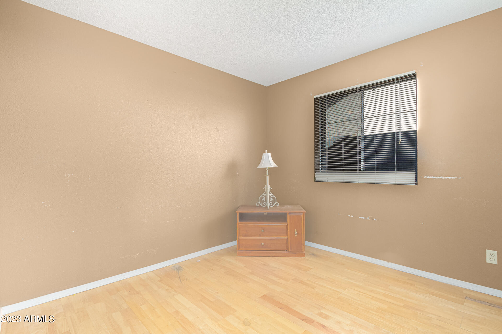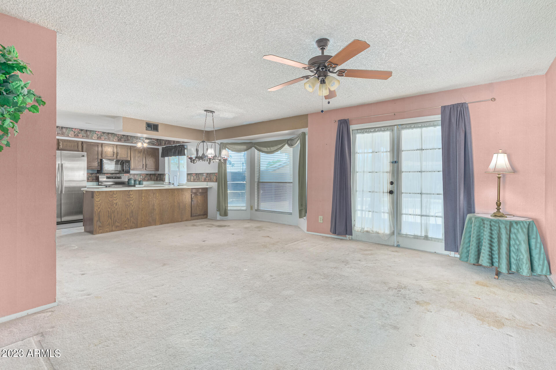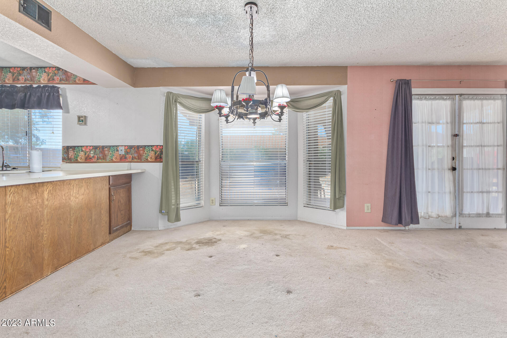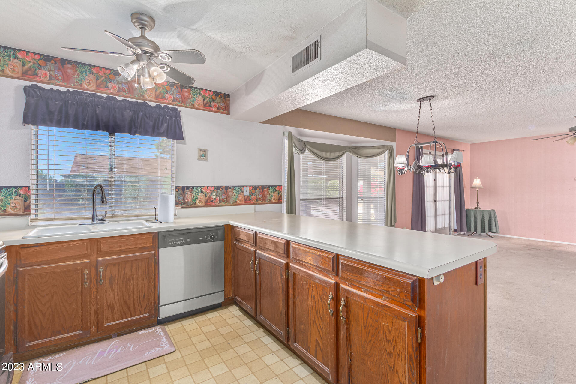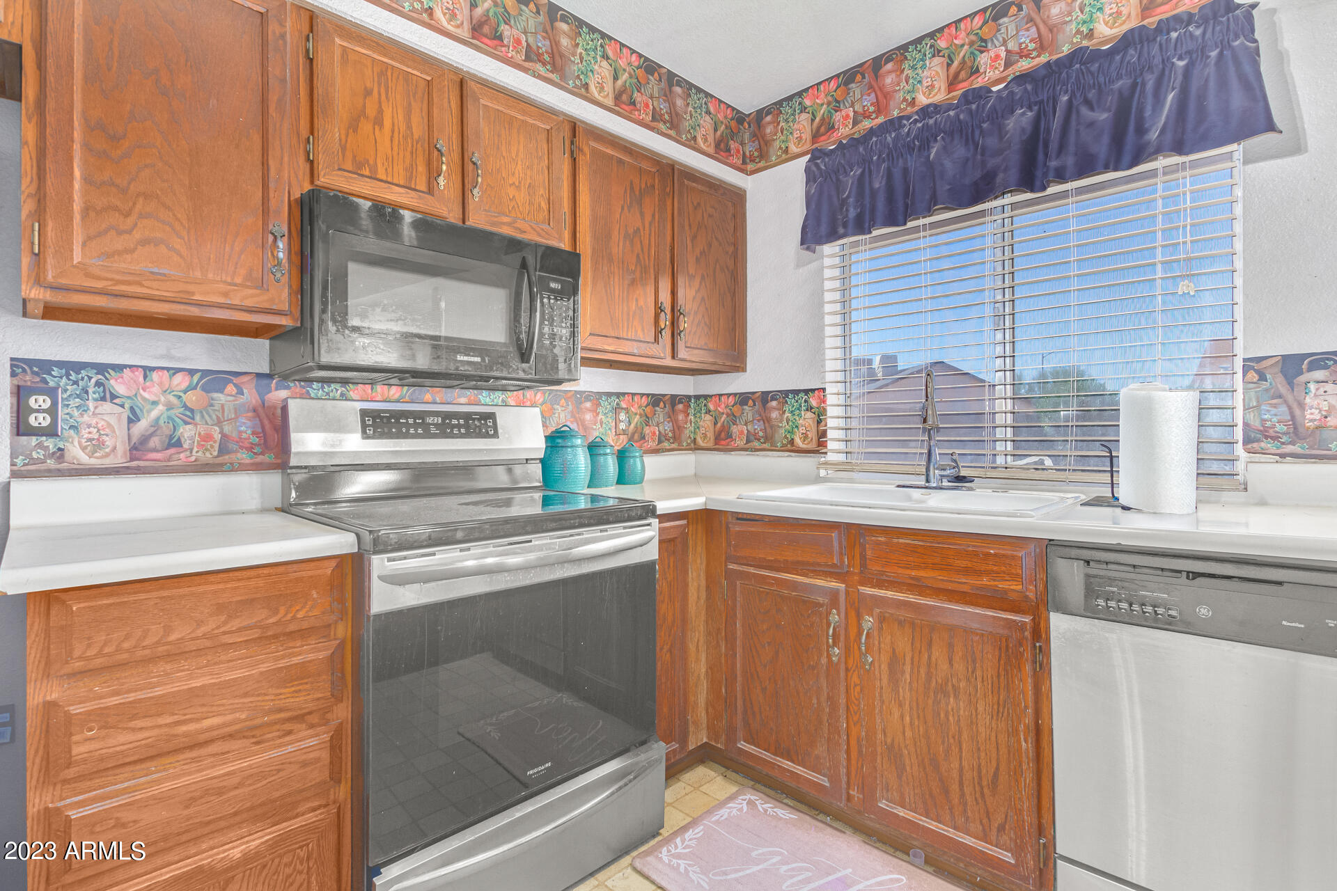 Delightful one-story home in Phoenix for sale! Light & bright interior features a mix of cozy carpet and sleek tile floors for added ease and convenience. The spacious living room flows seamlessly into the intimate family room, adorned with a calming color palette. Beautiful kitchen boasts oak cabinets, stainless steel appliances, glossy laminate counters, a convenient pantry, a breakfast bar peninsula, and a breakfast nook with a sunny bay window. Retreat to the main bedroom, highlighting double closets and an ensuite with dual sinks and grab bars. The generous backyard awaits, with a covered patio, private pool, and lovely desert plants. A move-in-ready gem not to be missed!