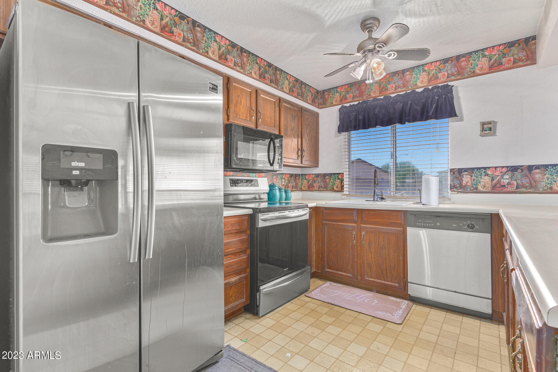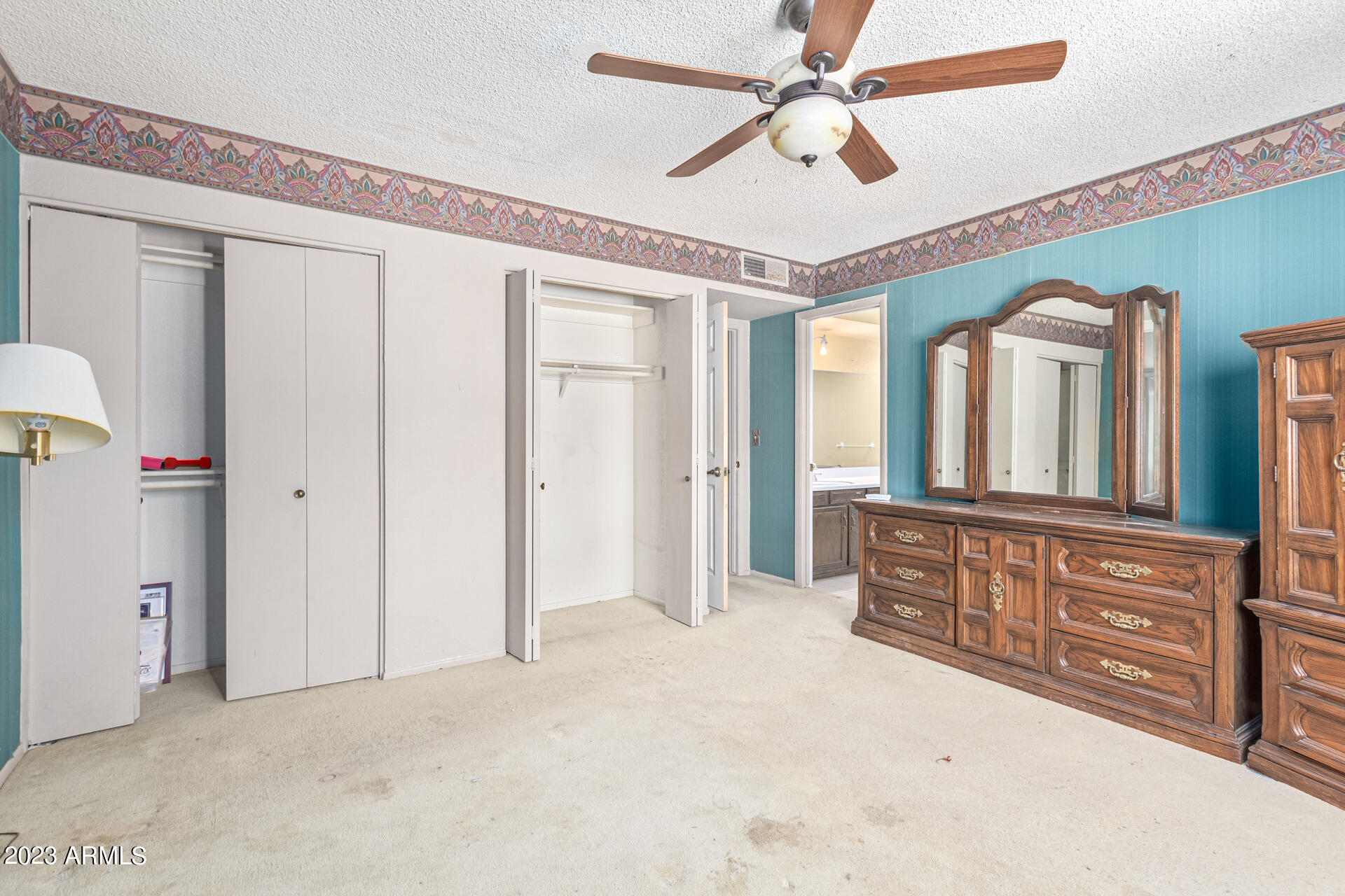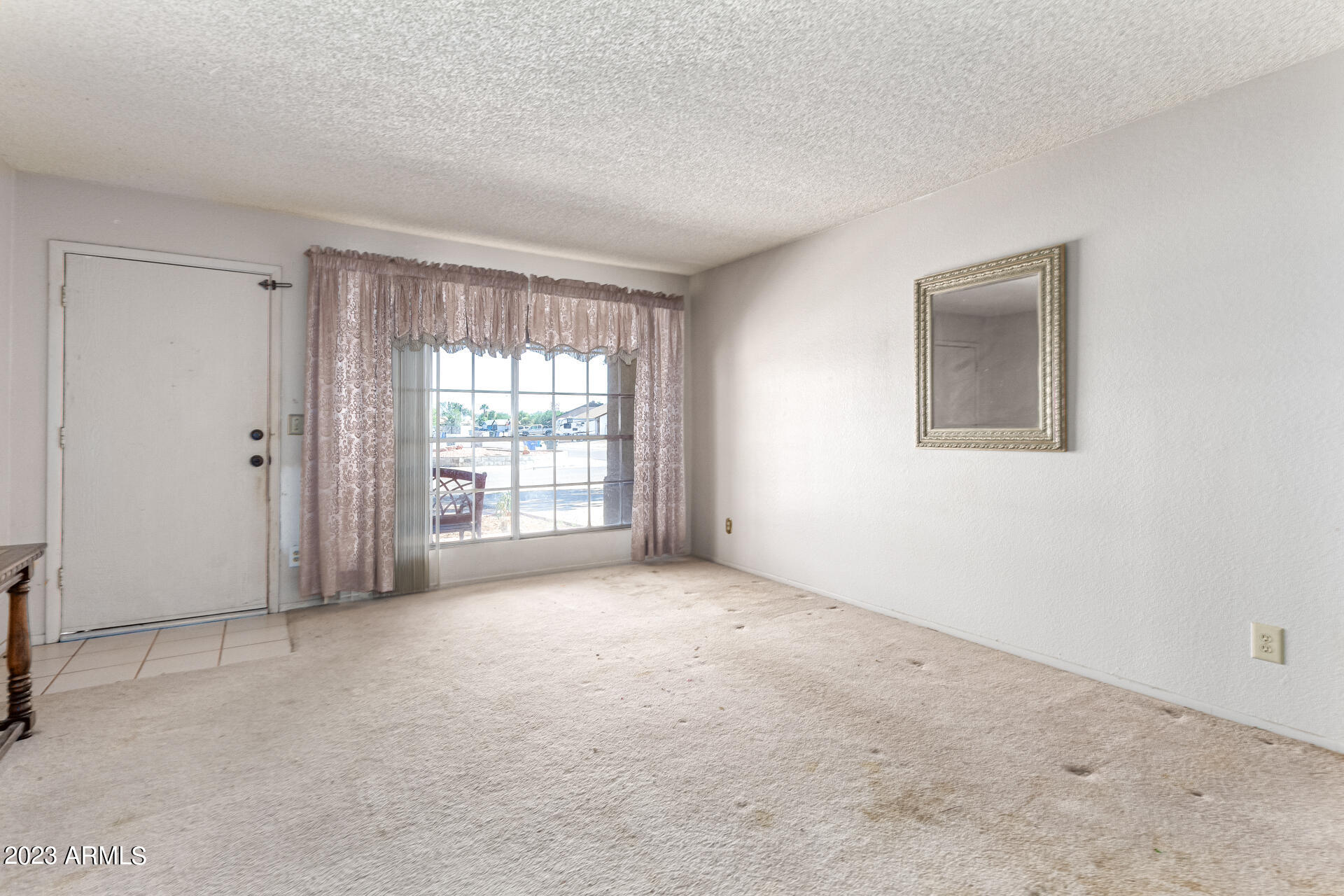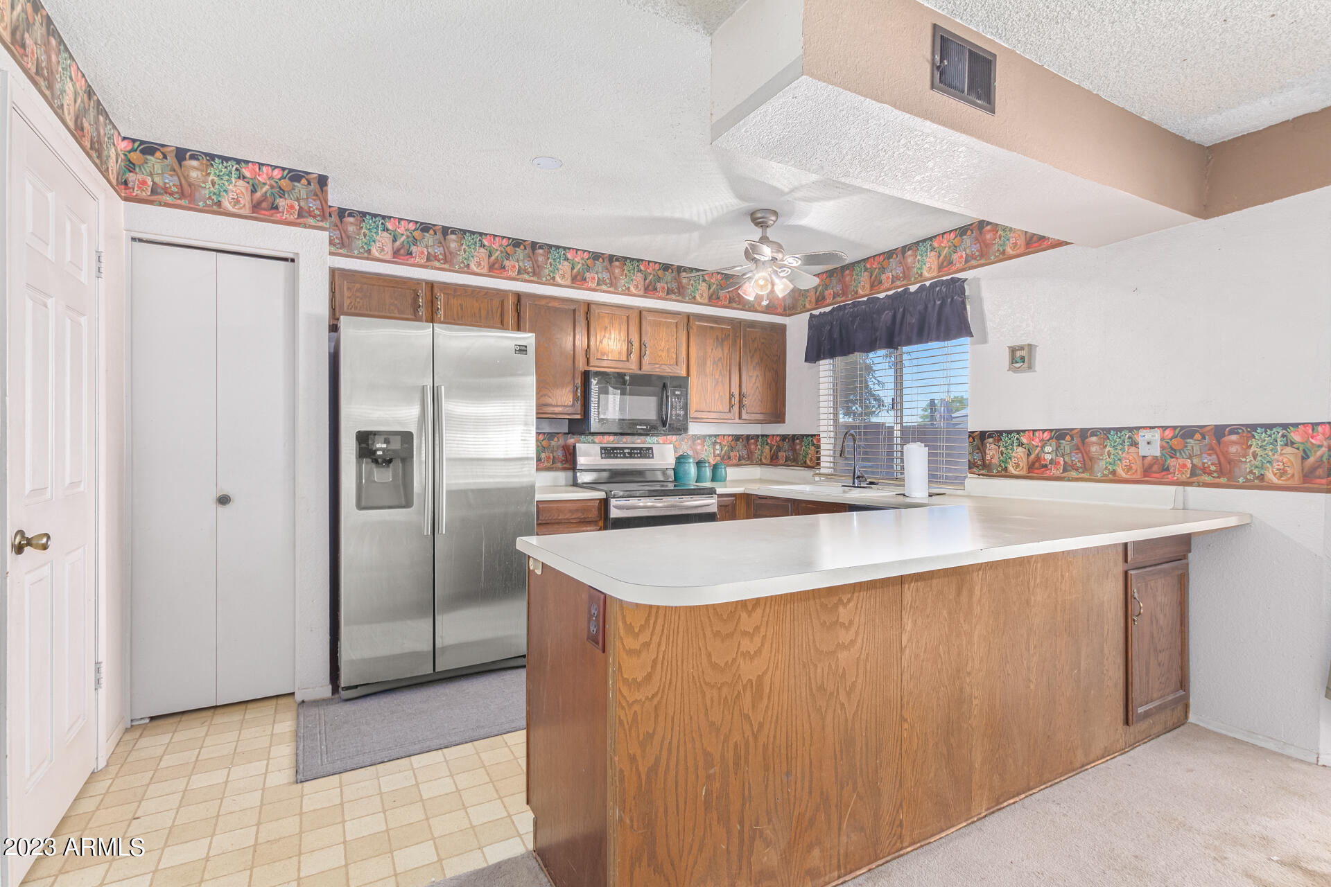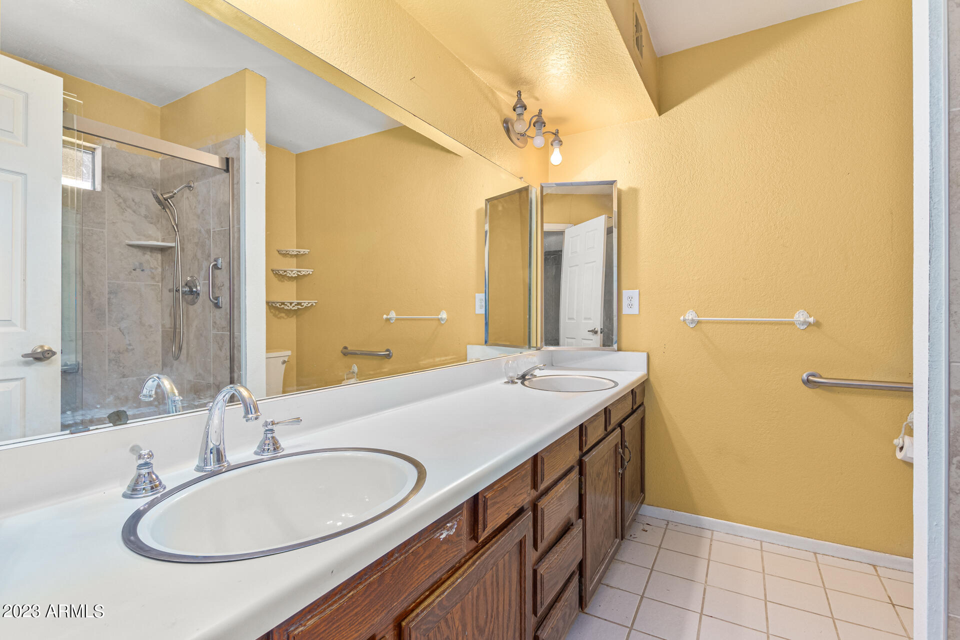 Delightful one-story home in Phoenix for sale! Light & bright interior features a mix of cozy carpet and sleek tile floors for added ease and convenience. The spacious living room flows seamlessly into the intimate family room, adorned with a calming color palette. Beautiful kitchen boasts oak cabinets, stainless steel appliances, glossy laminate counters, a convenient pantry, a breakfast bar peninsula, and a breakfast nook with a sunny bay window. Retreat to the main bedroom, highlighting double closets and an ensuite with dual sinks and grab bars. The generous backyard awaits, with a covered patio, private pool, and lovely desert plants. A move-in-ready gem not to be missed!