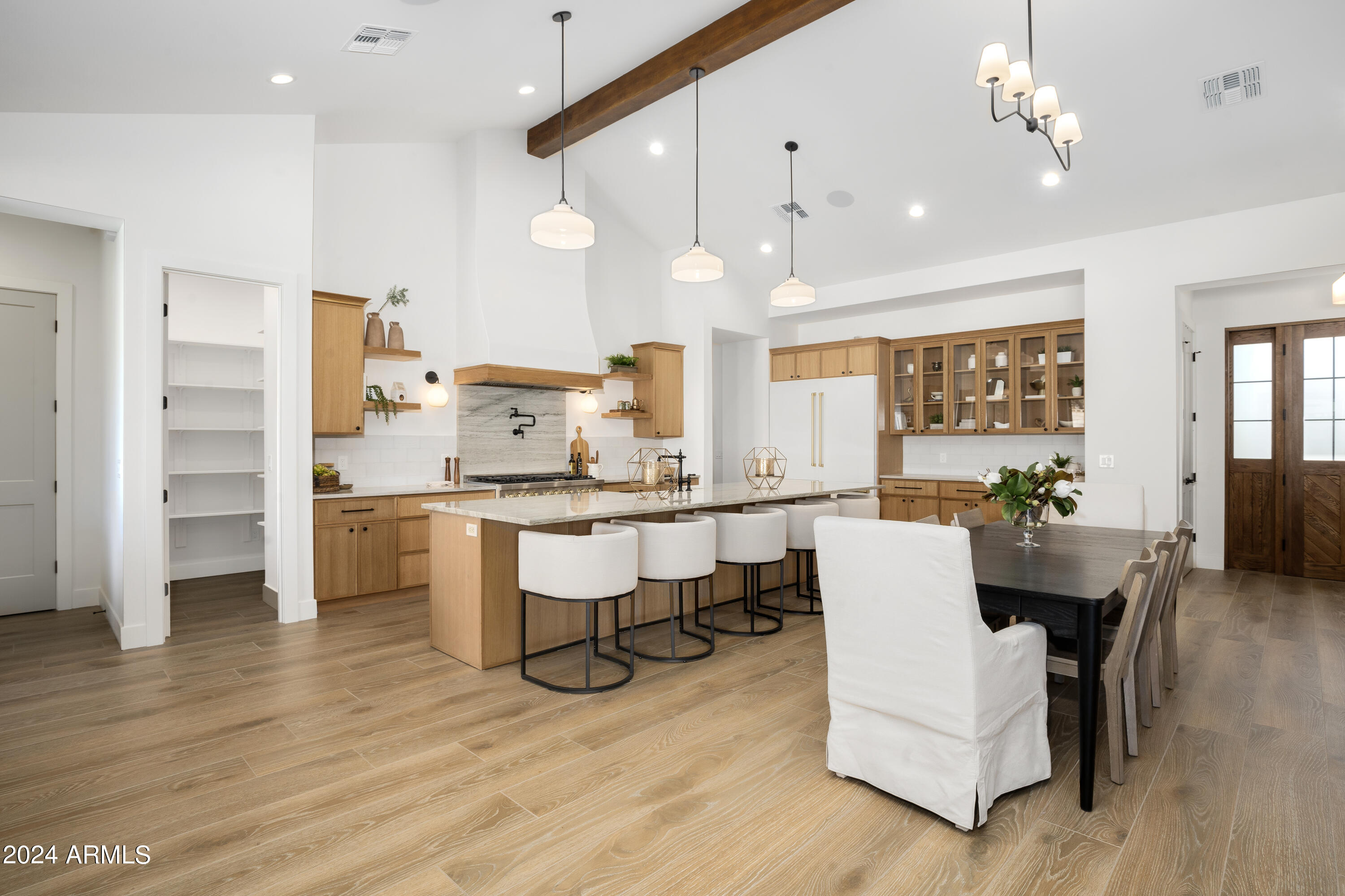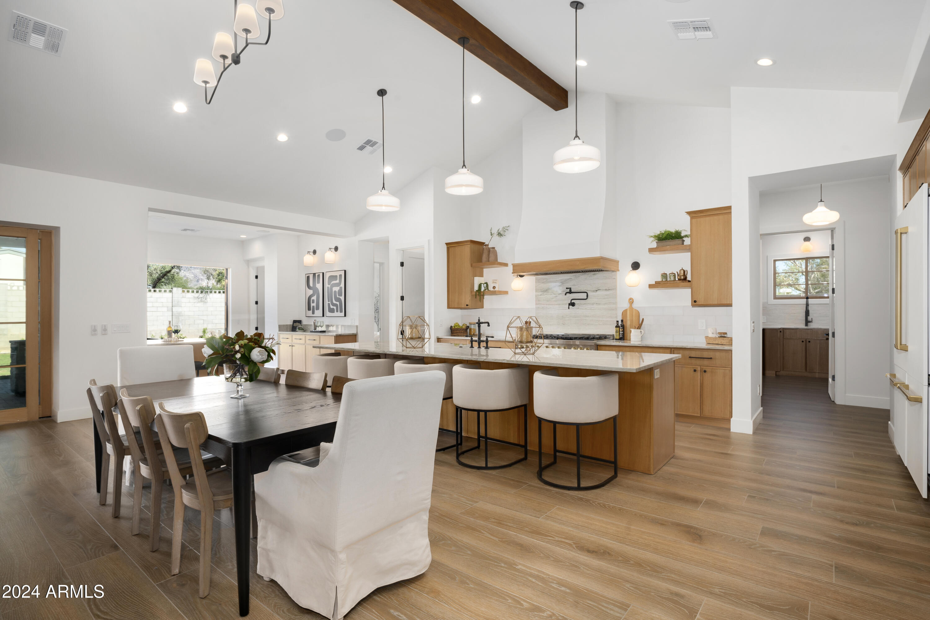 This stunning 5-bedroom, 5.5-bathroom home offers modern elegance in one of the most desirable neighborhoods in Phoenix. Featuring an open-concept layout, the gourmet kitchen includes high-end finishes, a large walk-in pantry, and a spacious island.