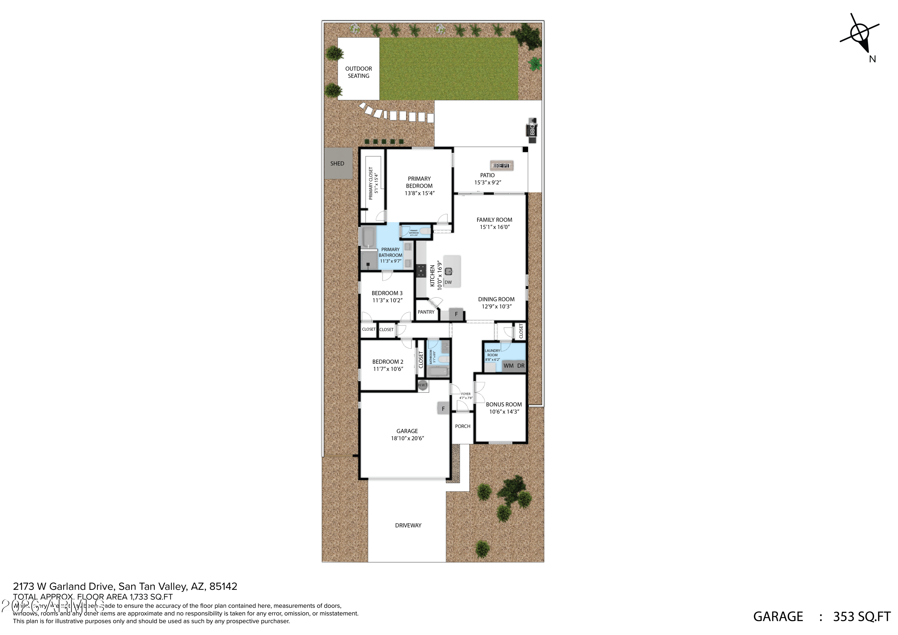 | LIVING SPACE | 1,733 Sq.Ft. |