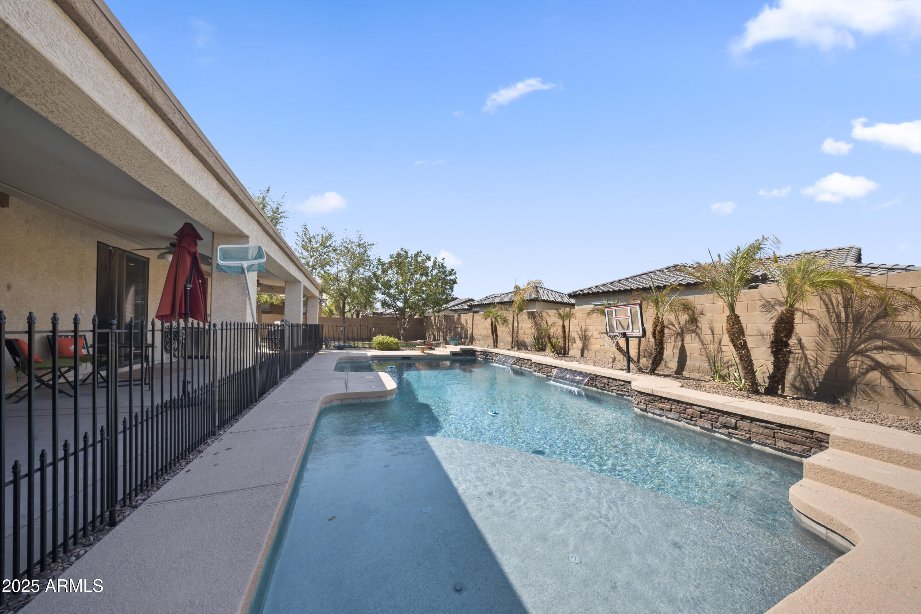 Live the Luxury Lifestyle in Canyon Trails! Step into this Spectacular 5-bedroom, 3-bath Showpiece boasting 41 paid-off Solar Panels INCLUDED--energy efficiency meets high-end living! Your Resort-inspired Backyard is pure paradise: a Sparkling Diving Pool with Baja shelf, Diving board, Basketball hoop, and Newer Pool Motor--perfect for both relaxation and entertainment. Inside, you'll love the Gourmet Kitchen with SS appliances, Granite counters, Island, Large pantry, and a MAXX Ice Maker. One Bedroom and a Newly Upgraded Designer Bathroom with Custom Shower are conveniently located downstairs. Upstairs, the Primary Suite is a retreat in itself, with Dramatic Double-door entry, Two large closets, a Spa-Style Bath with Separate Tub & Shower, and Dual Vanities. An Oversized Loft offers endless possibilities. Extras include: New Interior Window Shades, Updated Lighting & Ceiling Fans in every room, Fresh Paint inside, Tile Floors throughout, and a Fully Updated Laundry Room! Garage lovers rejoice Epoxy flooring, Built-in Cabinets, a Service door, and a Newer Opener offer both style and function. HOA includes a Community Pool & Recreational Center! Only moments away from your doorstep! Conveniently located close to SR303 & I10! This is more than a home, it's your everyday getaway.